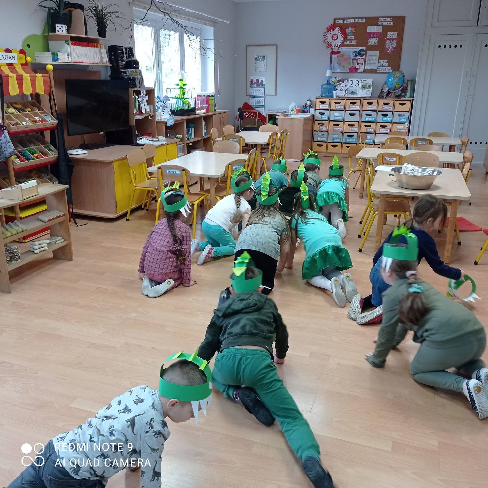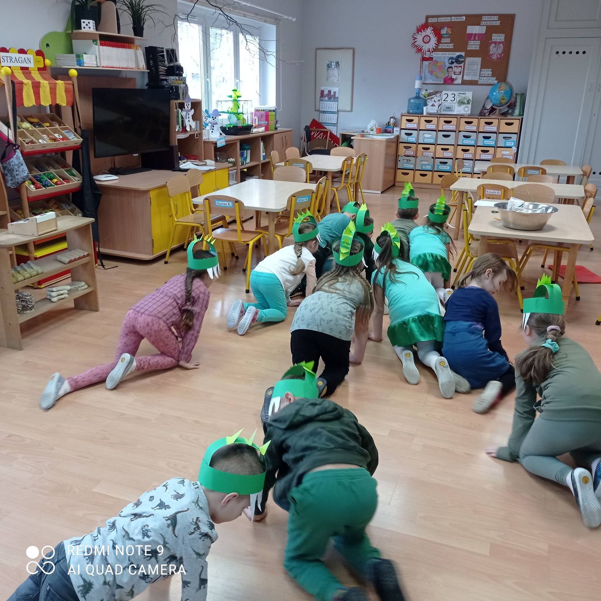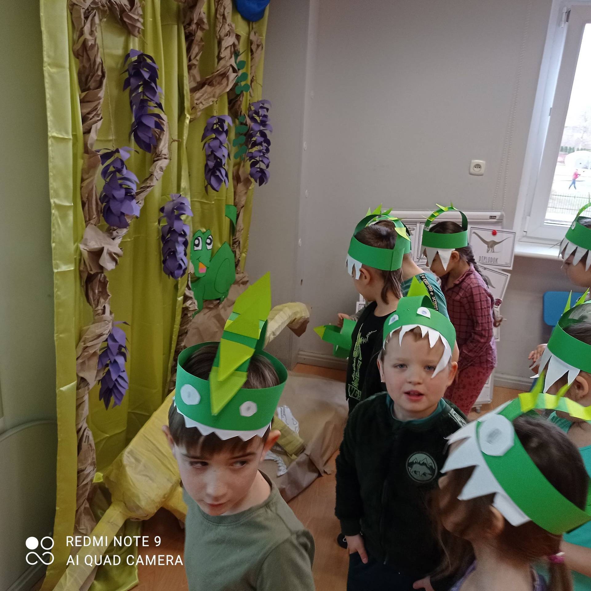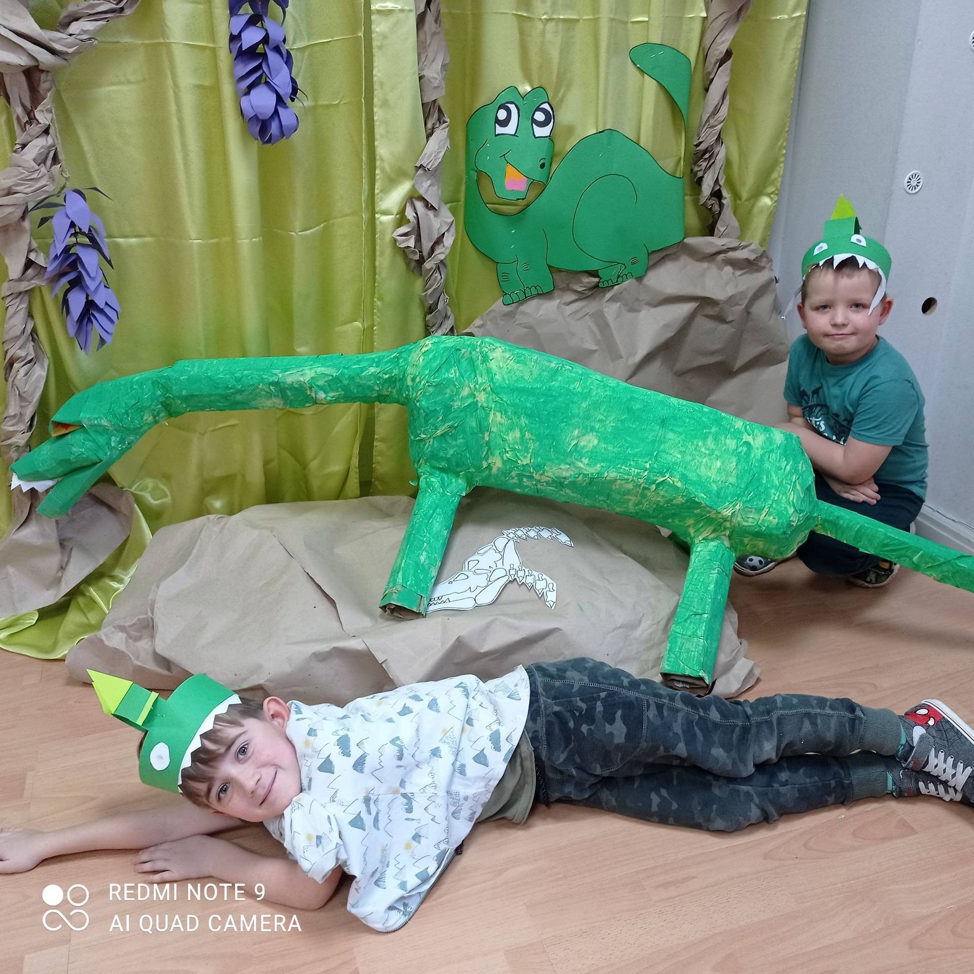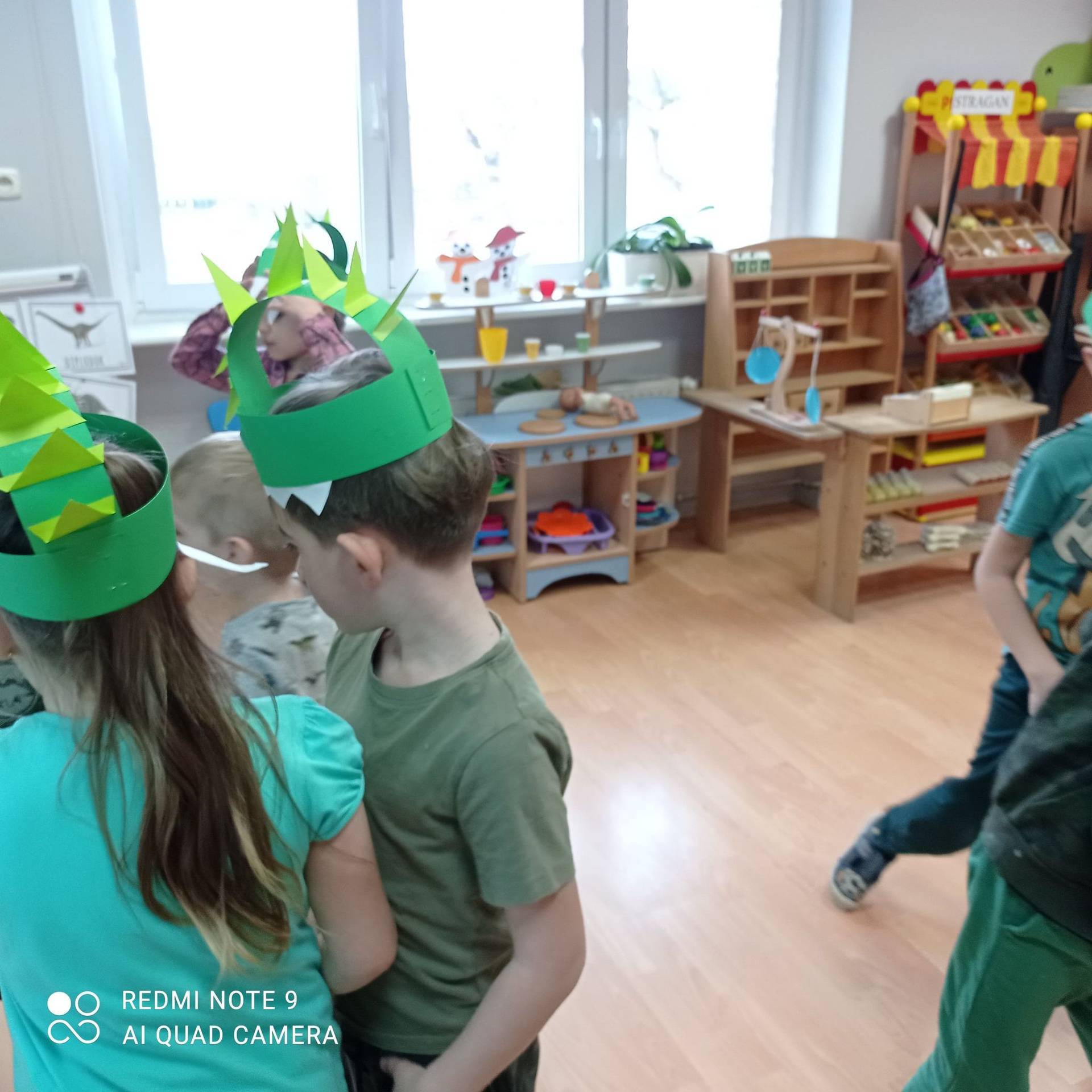 26 lutego przedszkolaki obchodziły Święto prehistorycznych strasznych jaszczurów- Dinozaurów. Tego dnia dzieci przyszły do przedszkola ubrane na zielono. Dzień dinozaura jest idealną okazją do zaznajomienia dzieci i przypomnienia im o niezwykłych mieszkańcach Ziemi, które wyginęły miliony lat temu. Tego dnia dzieci brały udział w zajęciach i zabawach, dzięki którym miały możliwość poznania życia tych niezwykłych wielkich gadów oraz wielu ciekawostek na ich temat. Tygryski z grupy IV wykonały dinozaurowe nakrycia głowy, lepiły dinozaury z masy solnej oraz malowały dinozaura zrobionego z kartonu oraz nadały mu imię "Dinotyg"- czyli dino od dinozaura oraz tyg od tygrysków. Zabawa była na całego.