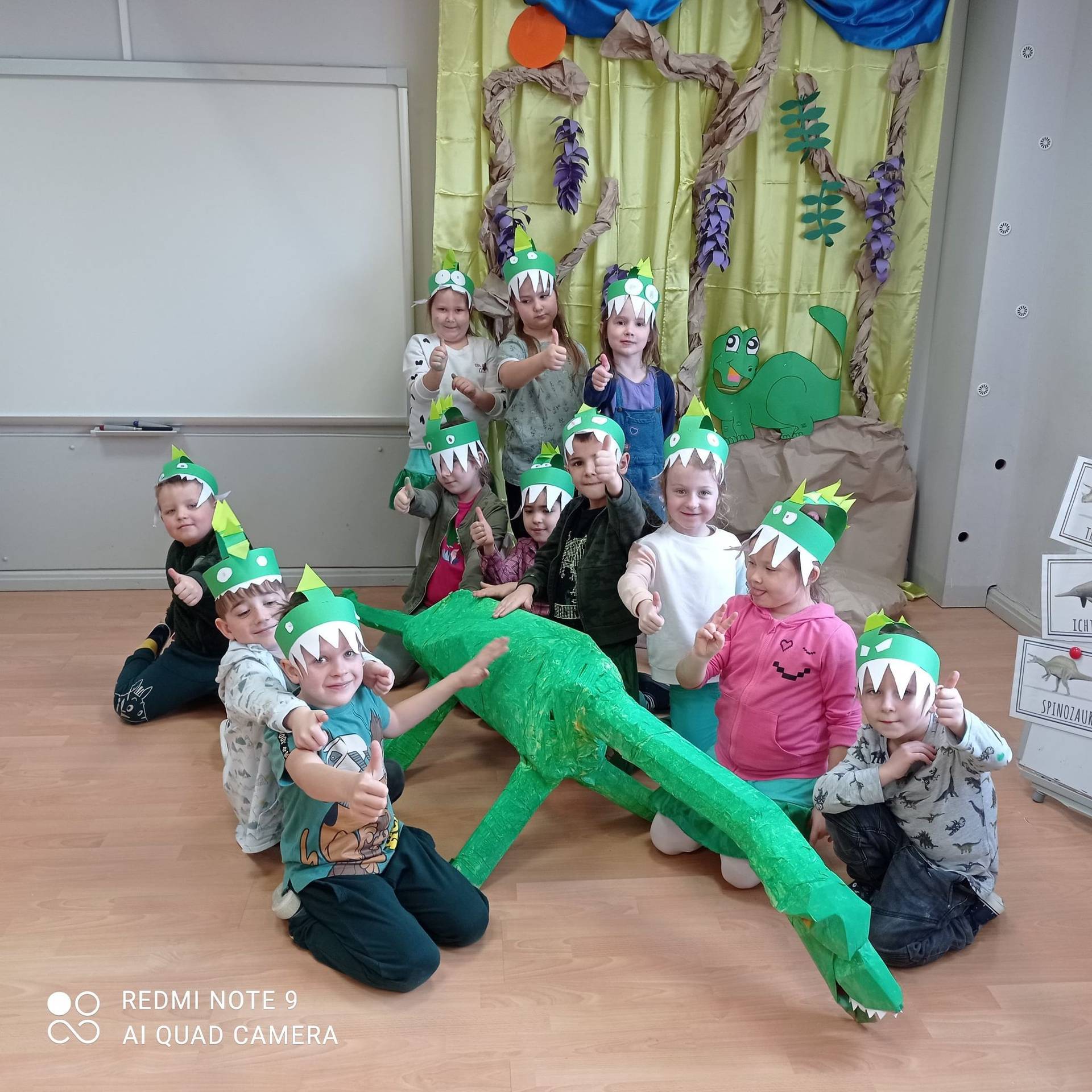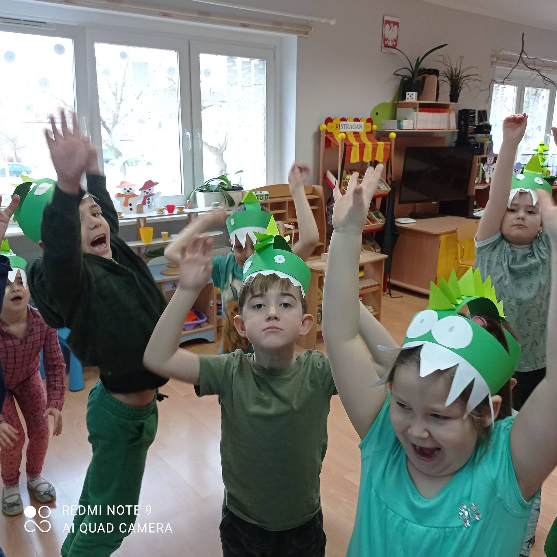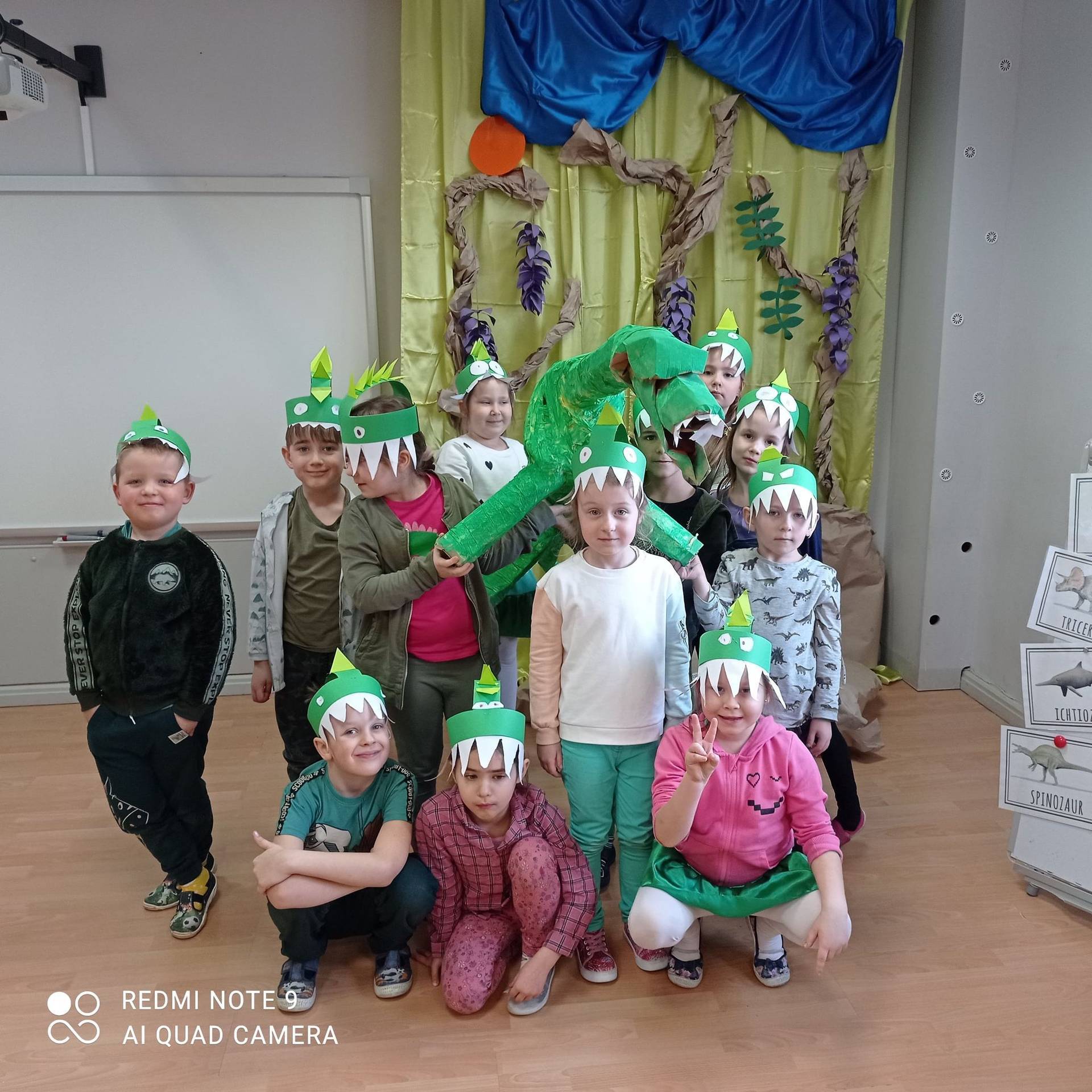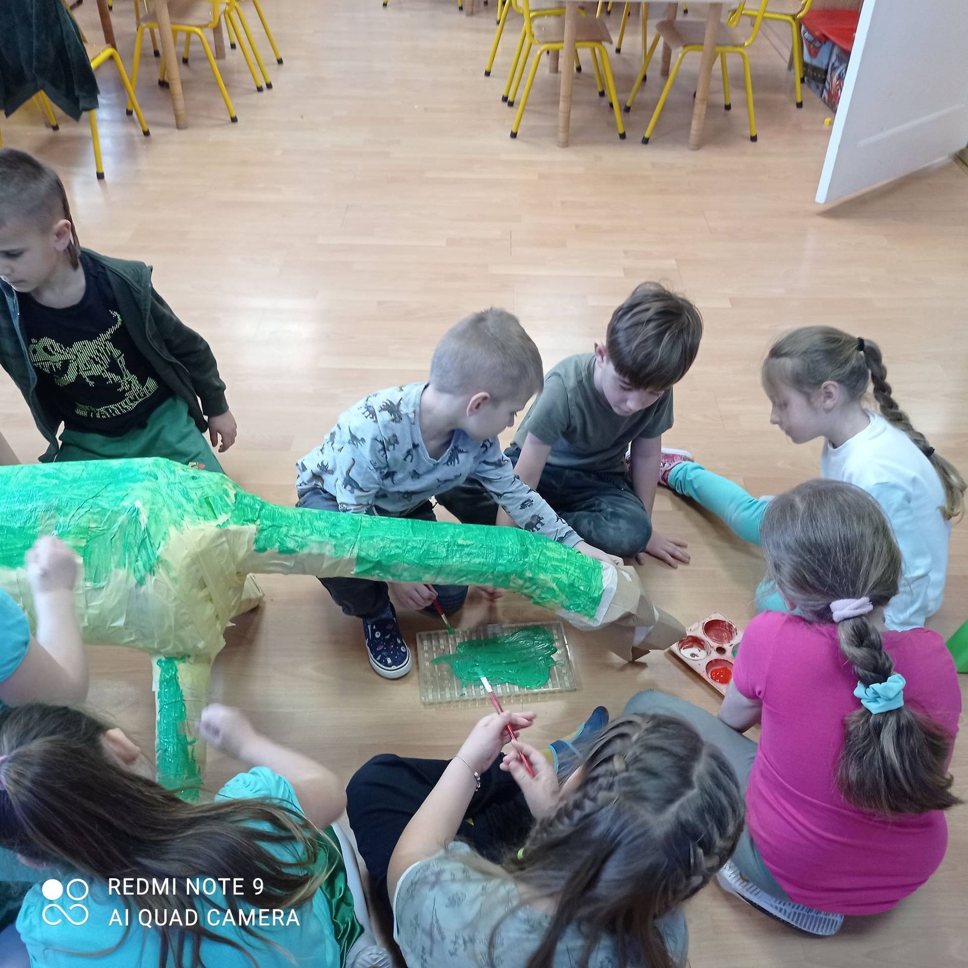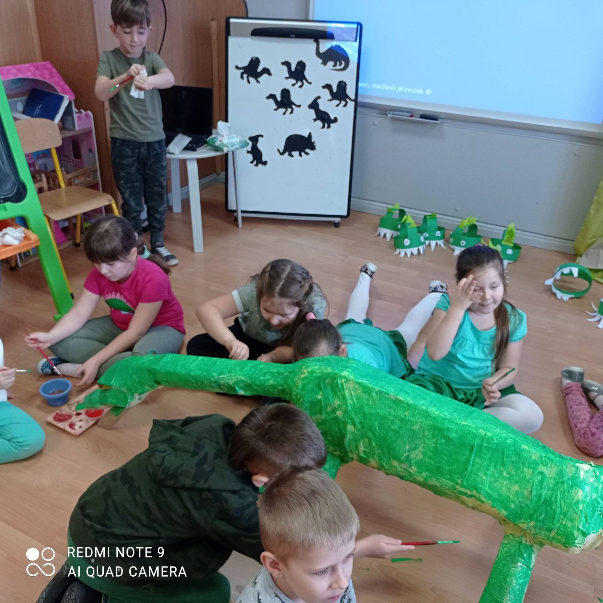 26 lutego przedszkolaki obchodziły Święto prehistorycznych strasznych jaszczurów- Dinozaurów. Tego dnia dzieci przyszły do przedszkola ubrane na zielono. Dzień dinozaura jest idealną okazją do zaznajomienia dzieci i przypomnienia im o niezwykłych mieszkańcach Ziemi, które wyginęły miliony lat temu. Tego dnia dzieci brały udział w zajęciach i zabawach, dzięki którym miały możliwość poznania życia tych niezwykłych wielkich gadów oraz wielu ciekawostek na ich temat. Tygryski z grupy IV wykonały dinozaurowe nakrycia głowy, lepiły dinozaury z masy solnej oraz malowały dinozaura zrobionego z kartonu oraz nadały mu imię "Dinotyg"- czyli dino od dinozaura oraz tyg od tygrysków. Zabawa była na całego.