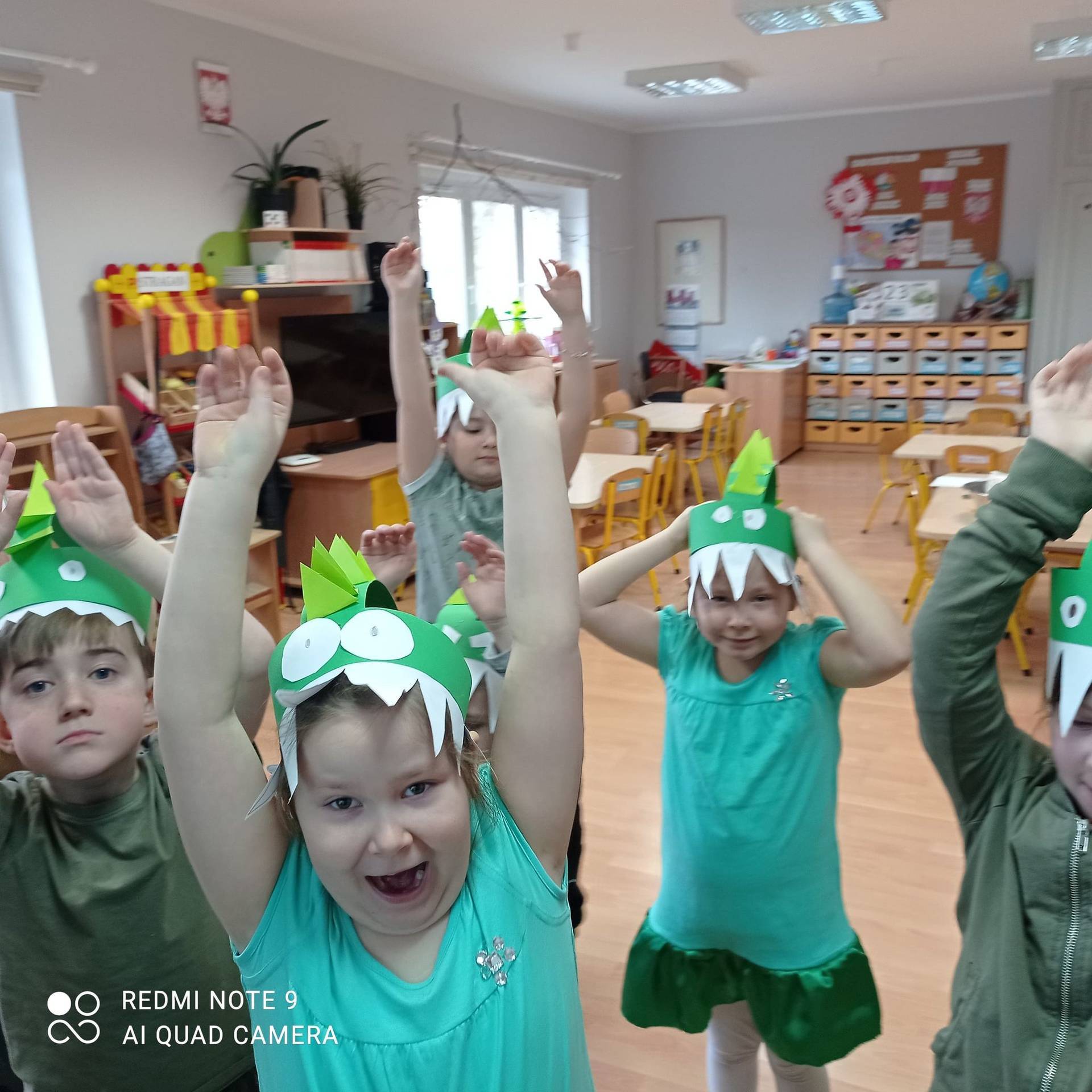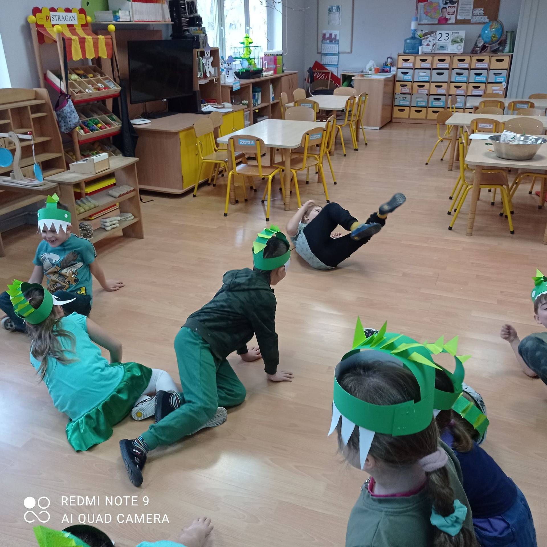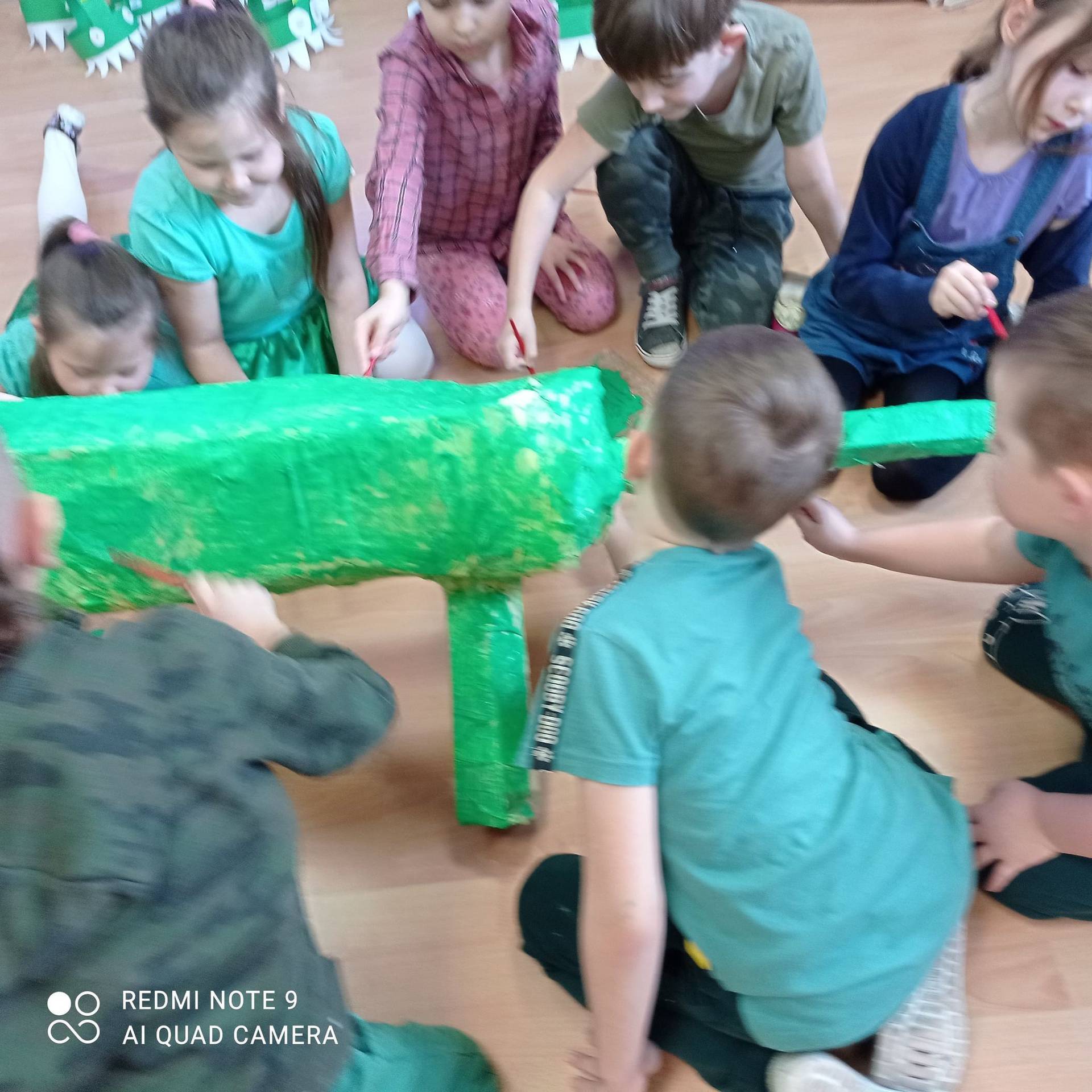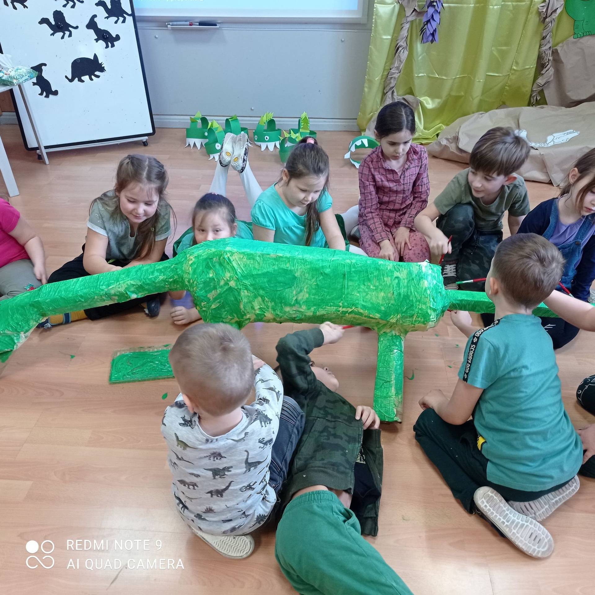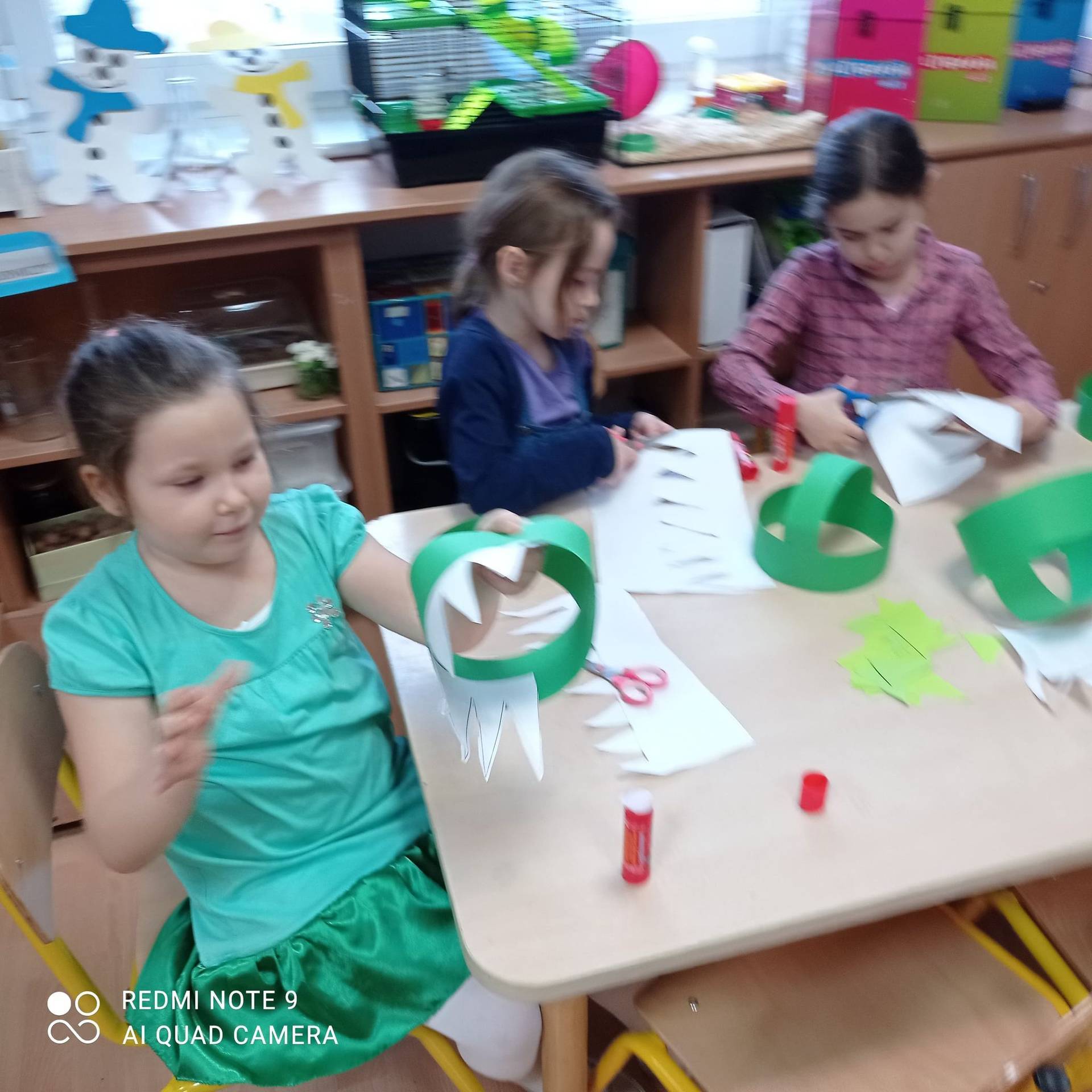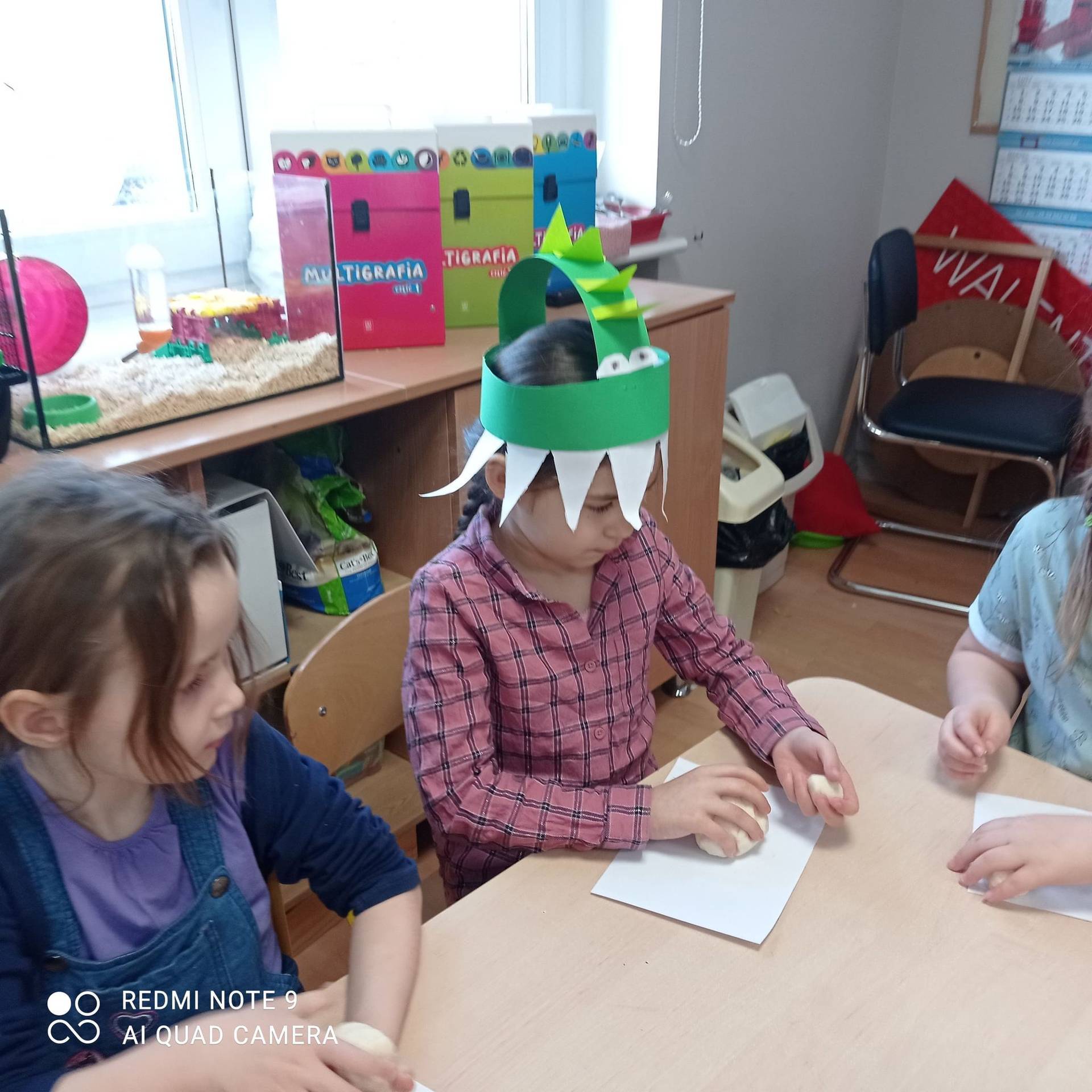26 lutego przedszkolaki obchodziły Święto prehistorycznych strasznych jaszczurów- Dinozaurów. Tego dnia dzieci przyszły do przedszkola ubrane na zielono. Dzień dinozaura jest idealną okazją do zaznajomienia dzieci i przypomnienia im o niezwykłych mieszkańcach Ziemi, które wyginęły miliony lat temu. Tego dnia dzieci brały udział w zajęciach i zabawach, dzięki którym miały możliwość poznania życia tych niezwykłych wielkich gadów oraz wielu ciekawostek na ich temat. Tygryski z grupy IV wykonały dinozaurowe nakrycia głowy, lepiły dinozaury z masy solnej oraz malowały dinozaura zrobionego z kartonu oraz nadały mu imię "Dinotyg"- czyli dino od dinozaura oraz tyg od tygrysków. Zabawa była na całego.