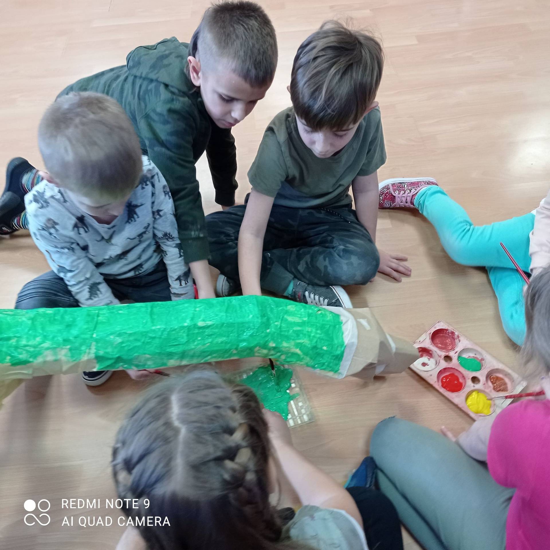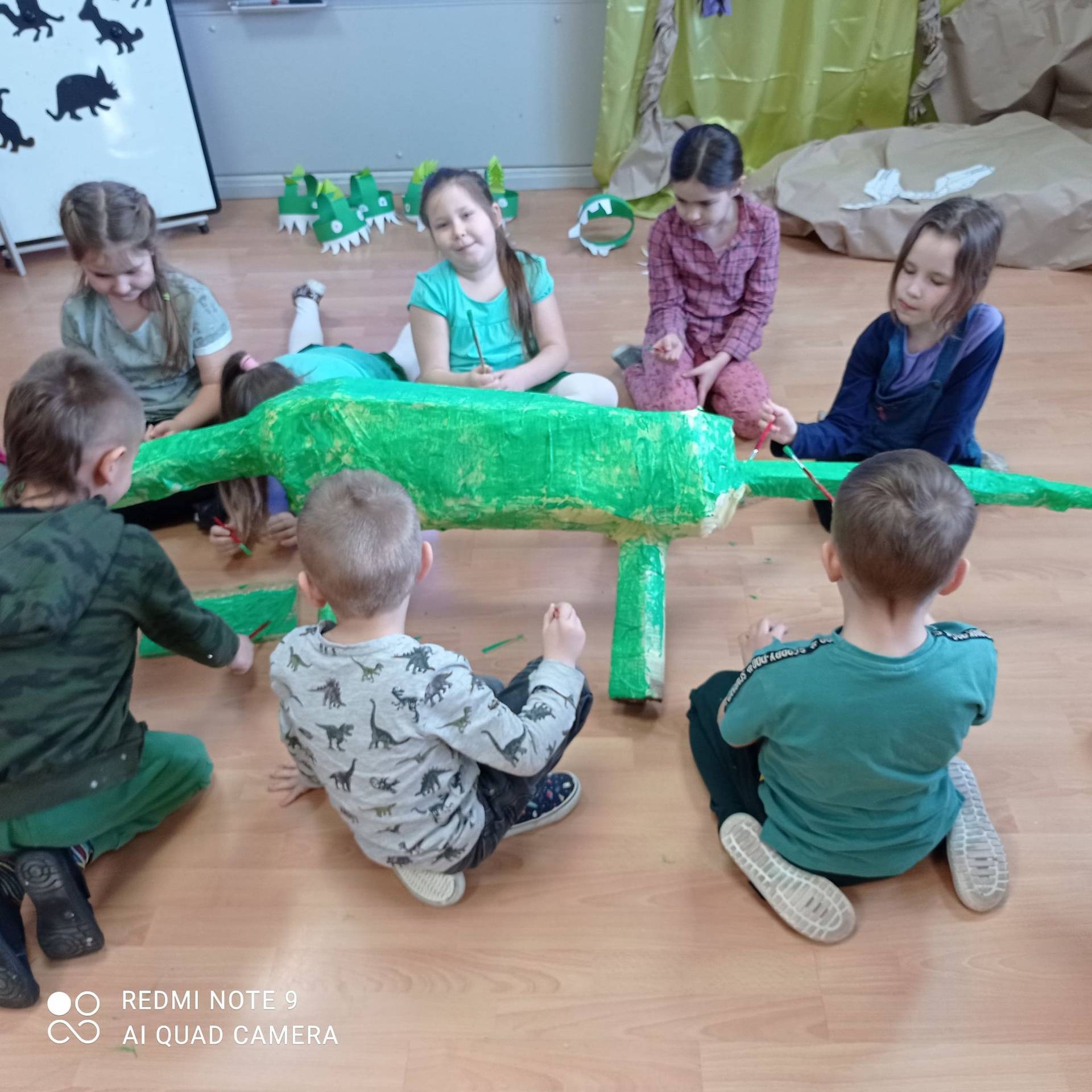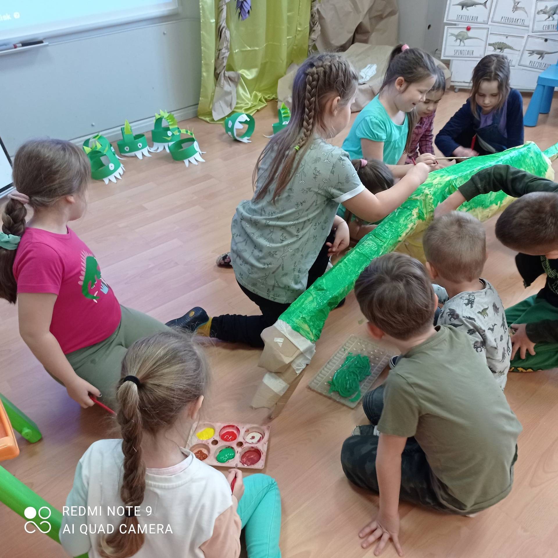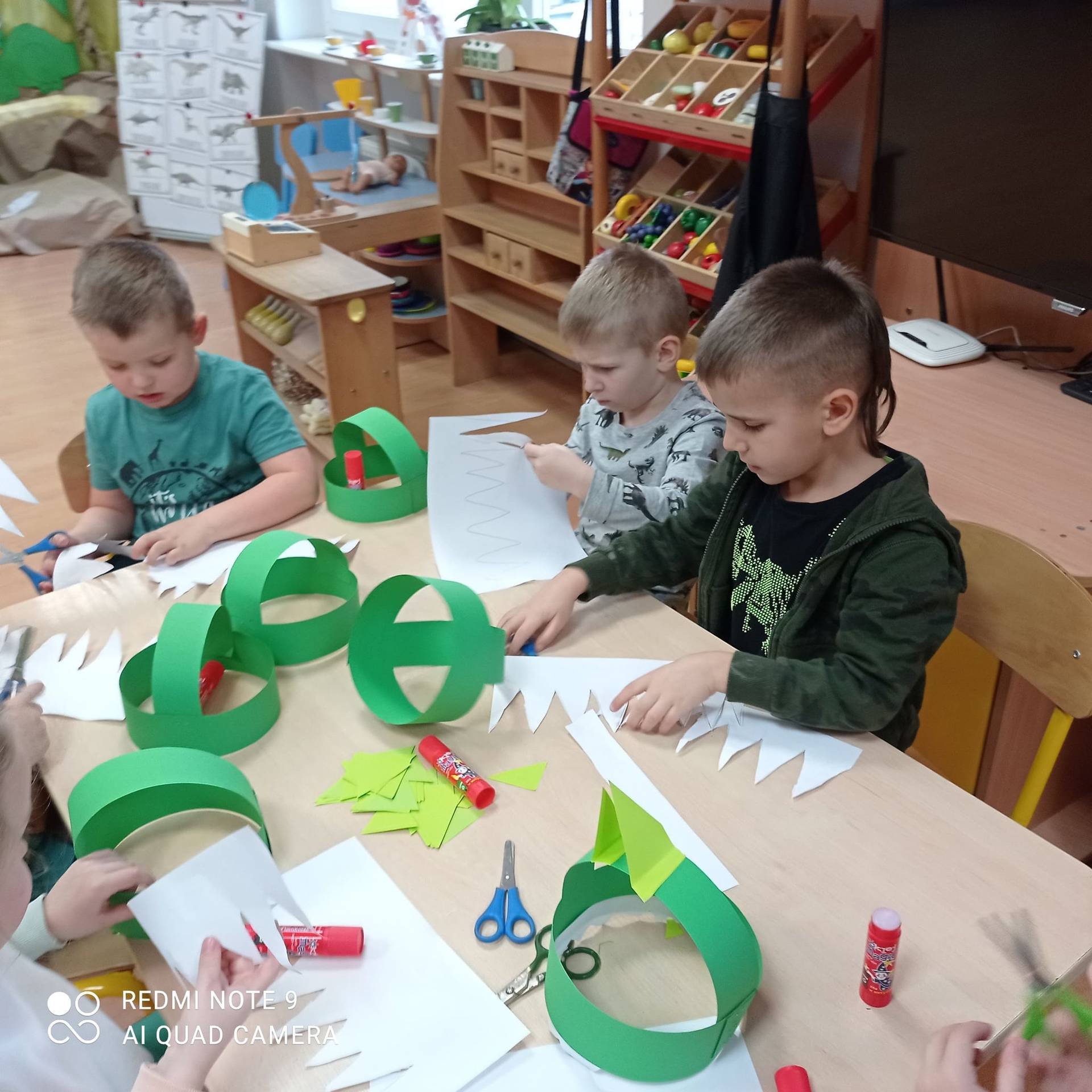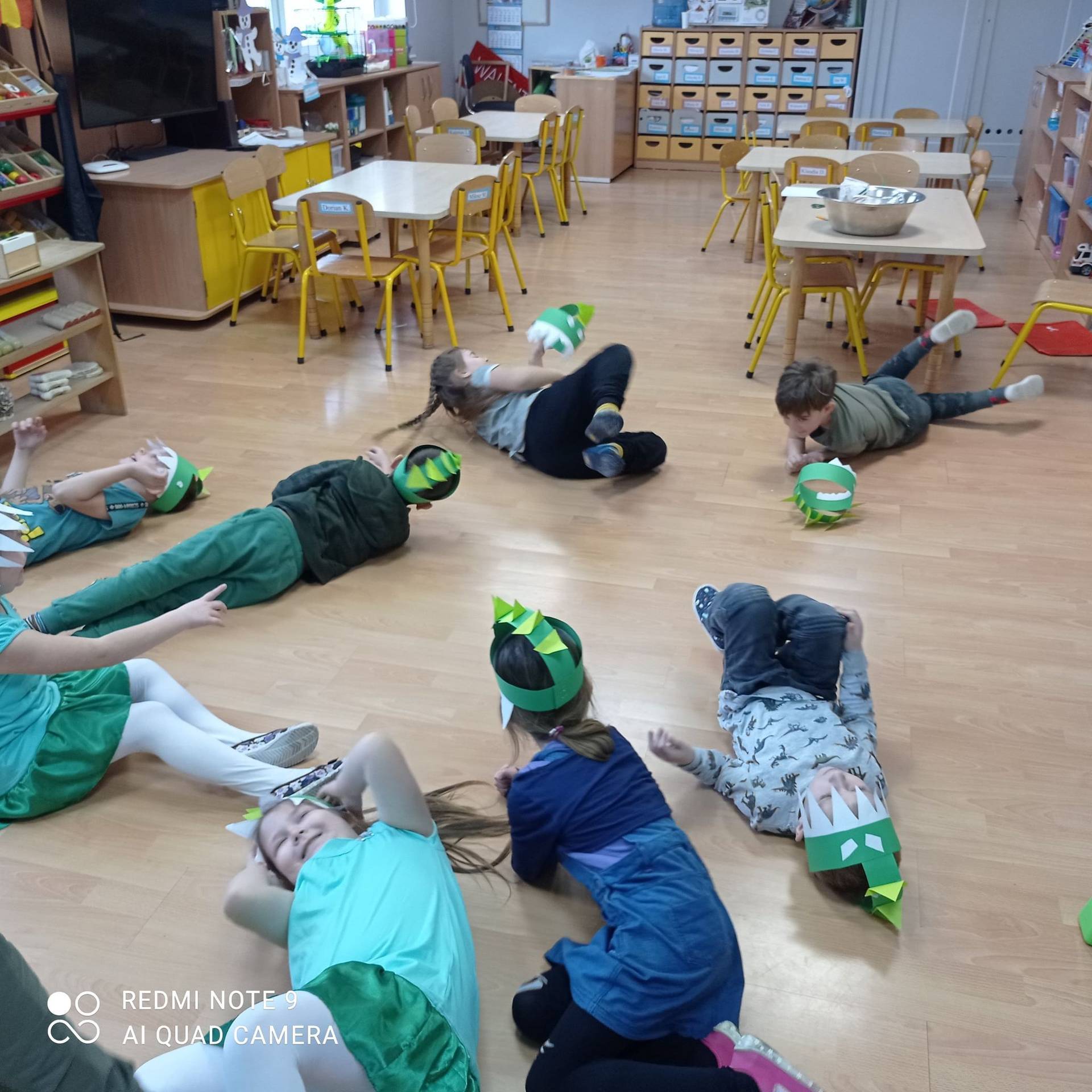 26 lutego przedszkolaki obchodziły Święto prehistorycznych strasznych jaszczurów- Dinozaurów. Tego dnia dzieci przyszły do przedszkola ubrane na zielono. Dzień dinozaura jest idealną okazją do zaznajomienia dzieci i przypomnienia im o niezwykłych mieszkańcach Ziemi, które wyginęły miliony lat temu. Tego dnia dzieci brały udział w zajęciach i zabawach, dzięki którym miały możliwość poznania życia tych niezwykłych wielkich gadów oraz wielu ciekawostek na ich temat. Tygryski z grupy IV wykonały dinozaurowe nakrycia głowy, lepiły dinozaury z masy solnej oraz malowały dinozaura zrobionego z kartonu oraz nadały mu imię "Dinotyg"- czyli dino od dinozaura oraz tyg od tygrysków. Zabawa była na całego.