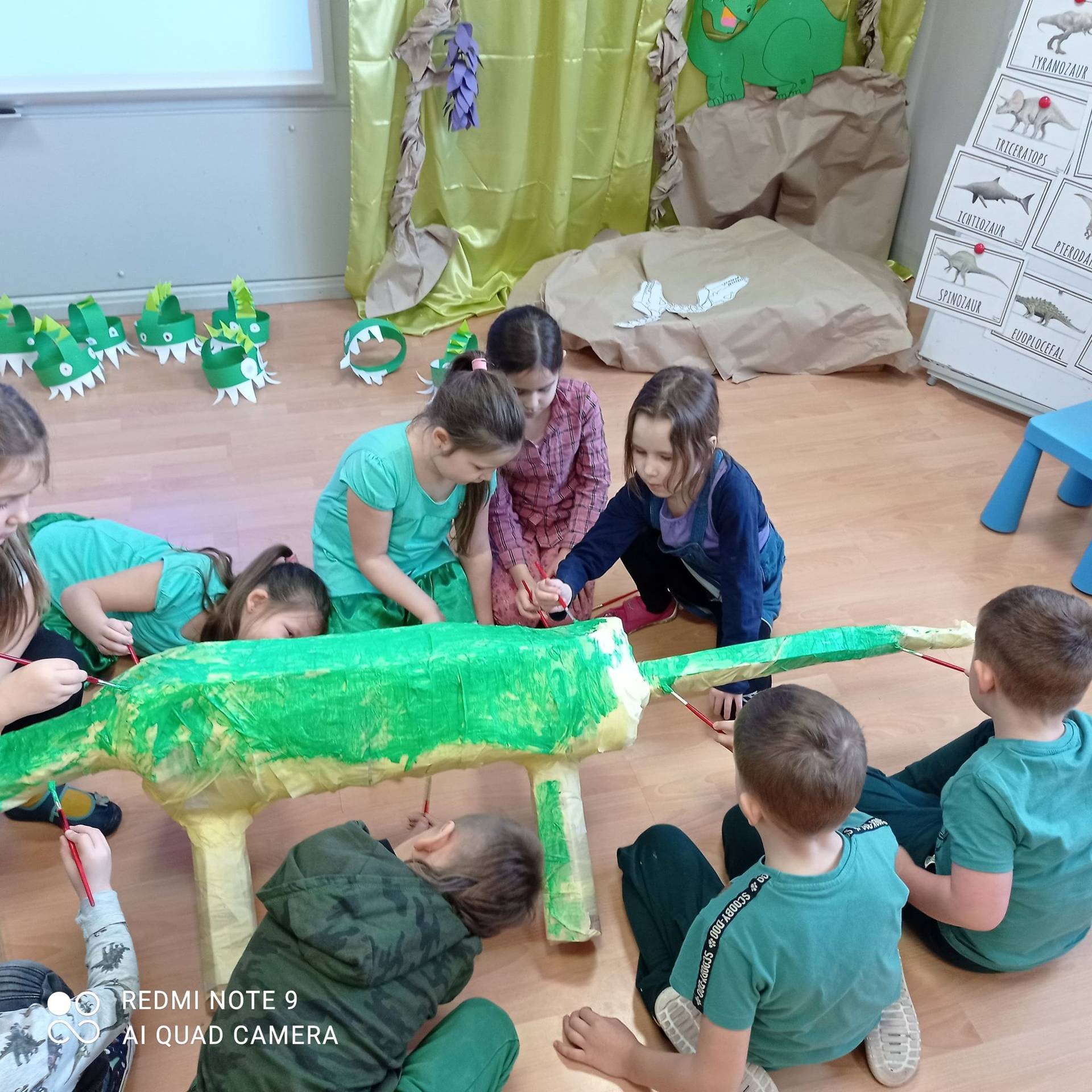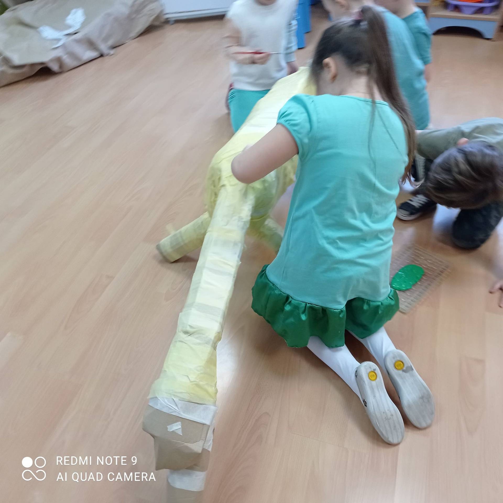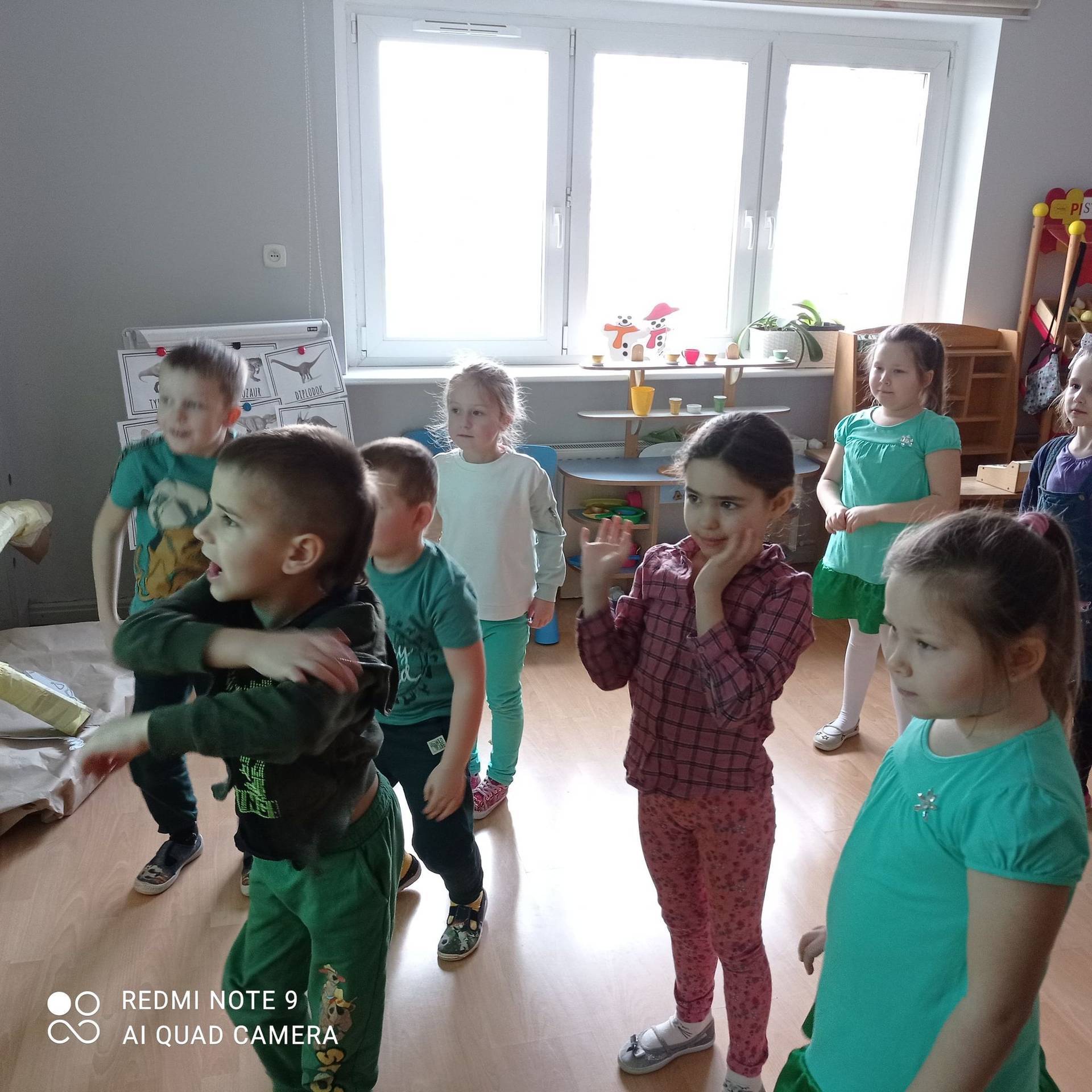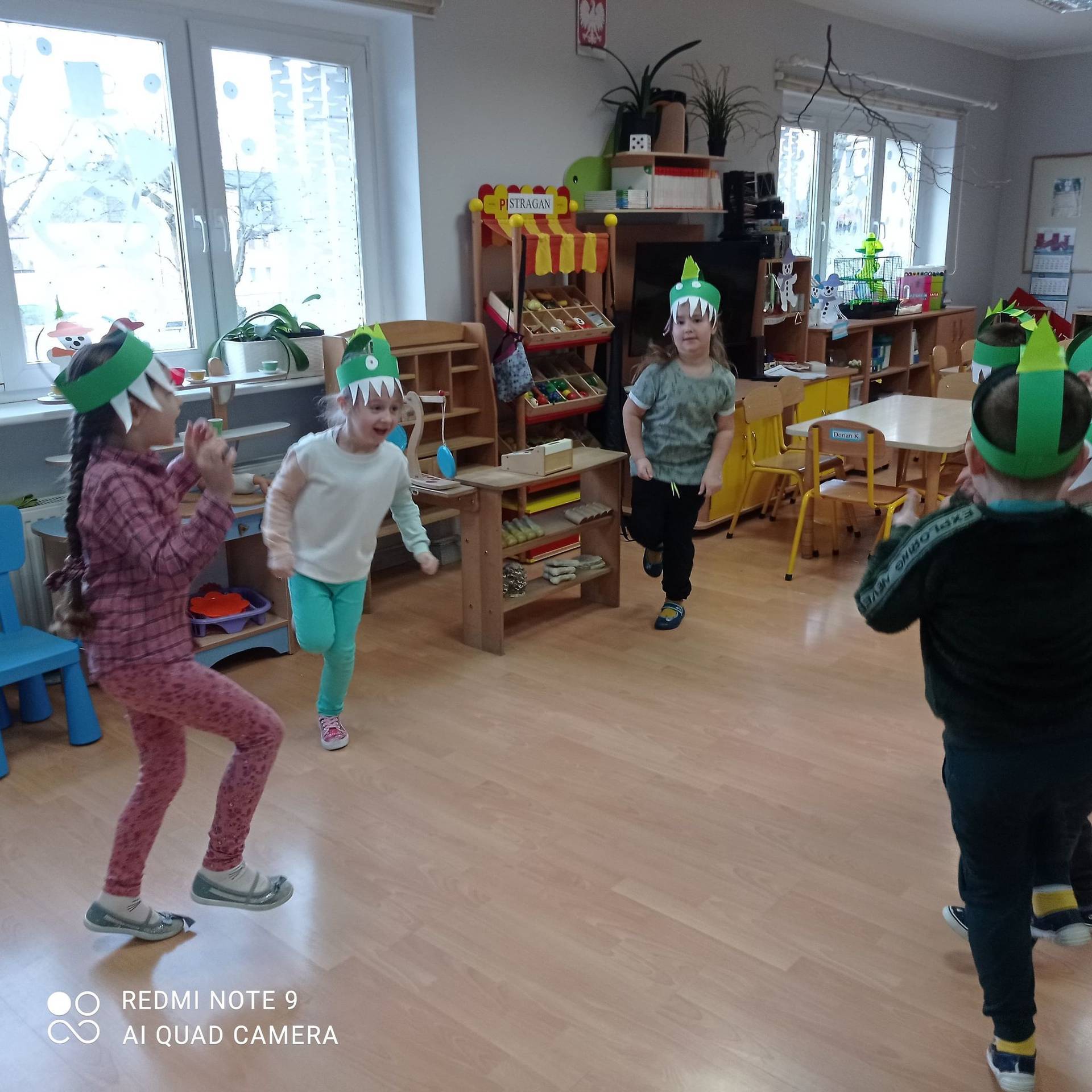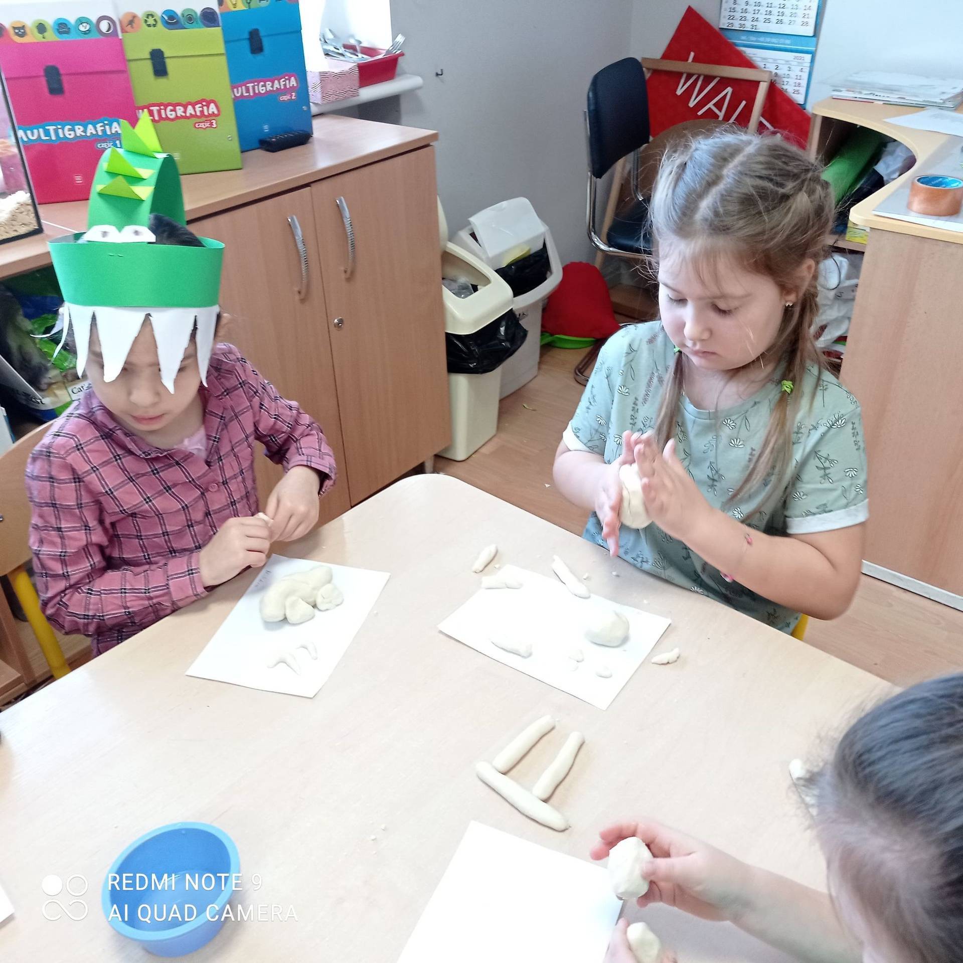 26 lutego przedszkolaki obchodziły Święto prehistorycznych strasznych jaszczurów- Dinozaurów. Tego dnia dzieci przyszły do przedszkola ubrane na zielono. Dzień dinozaura jest idealną okazją do zaznajomienia dzieci i przypomnienia im o niezwykłych mieszkańcach Ziemi, które wyginęły miliony lat temu. Tego dnia dzieci brały udział w zajęciach i zabawach, dzięki którym miały możliwość poznania życia tych niezwykłych wielkich gadów oraz wielu ciekawostek na ich temat. Tygryski z grupy IV wykonały dinozaurowe nakrycia głowy, lepiły dinozaury z masy solnej oraz malowały dinozaura zrobionego z kartonu oraz nadały mu imię "Dinotyg"- czyli dino od dinozaura oraz tyg od tygrysków. Zabawa była na całego.