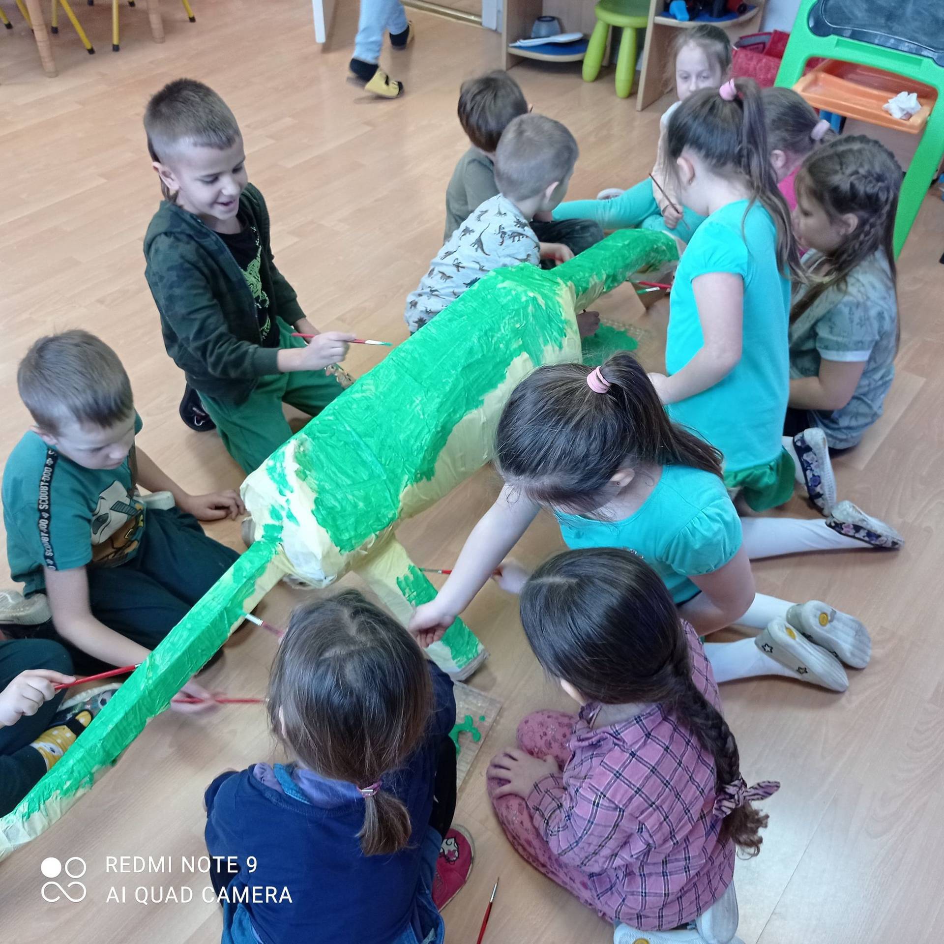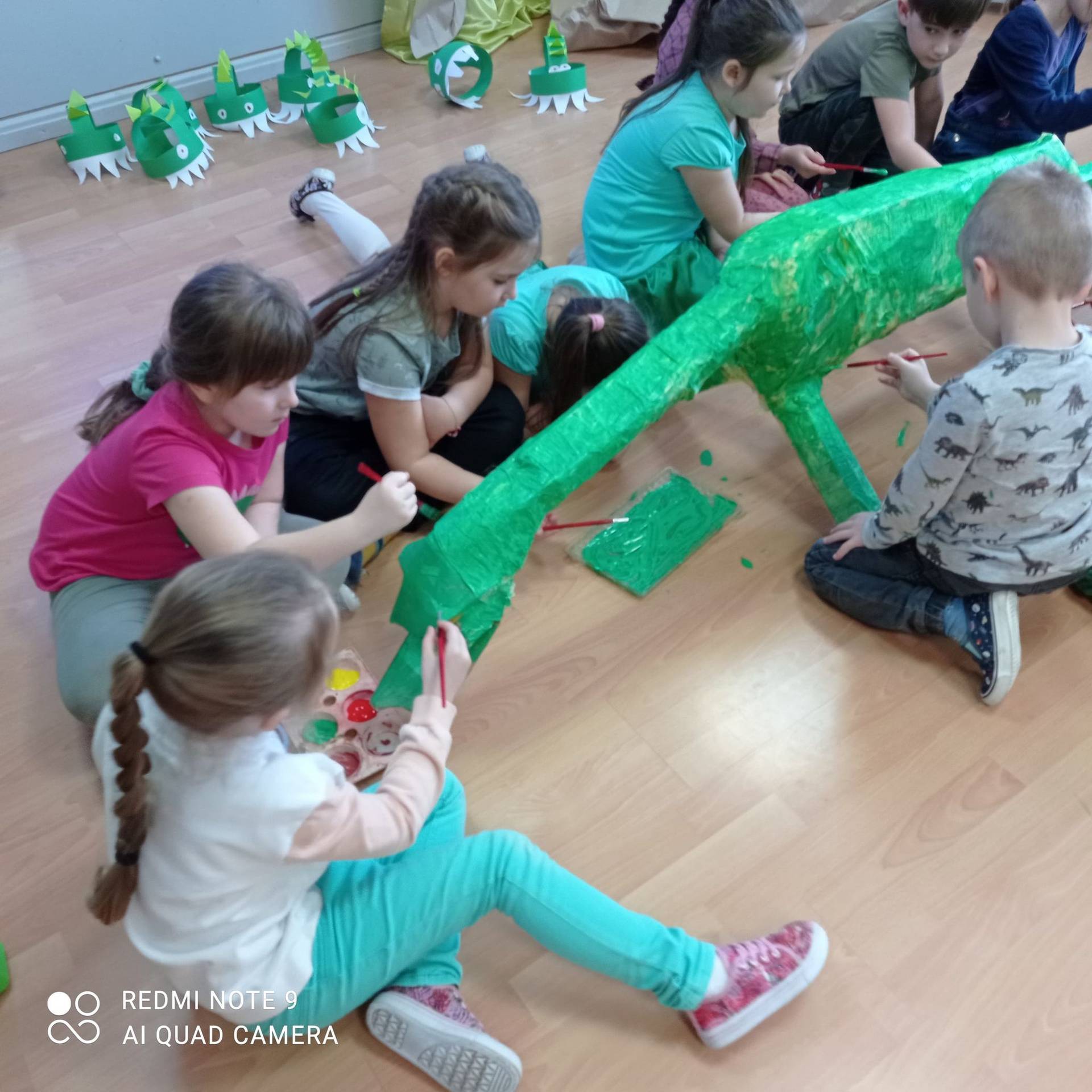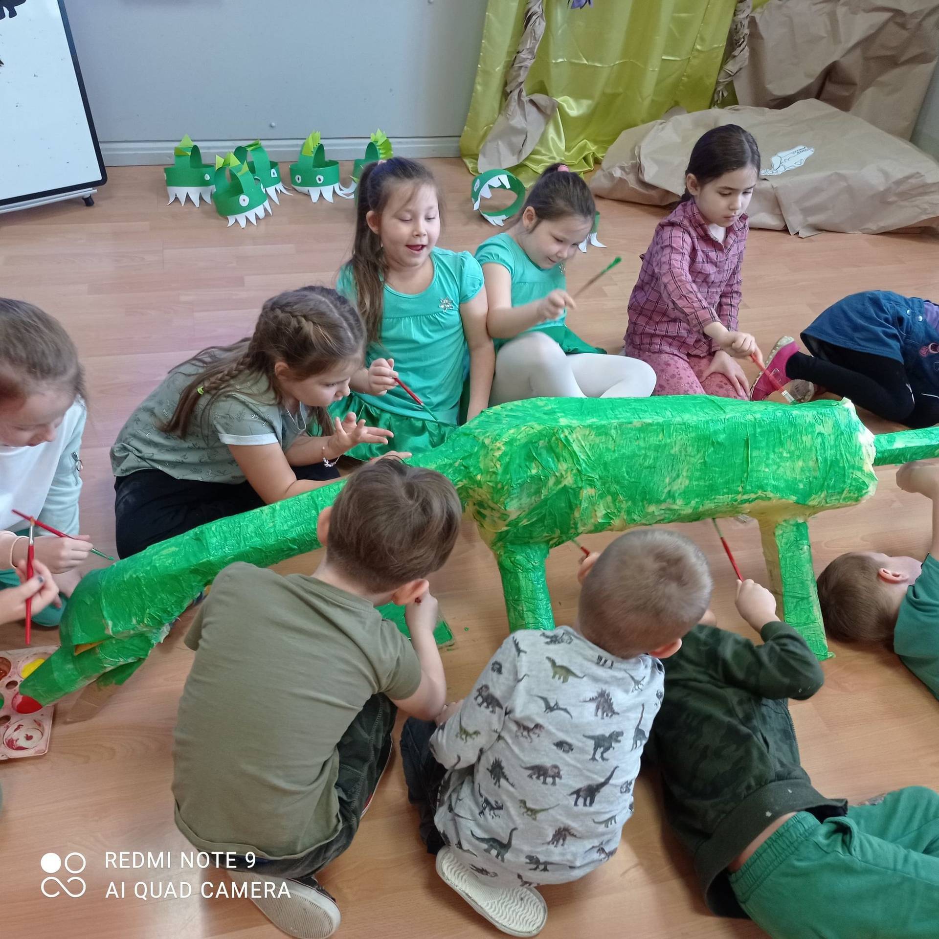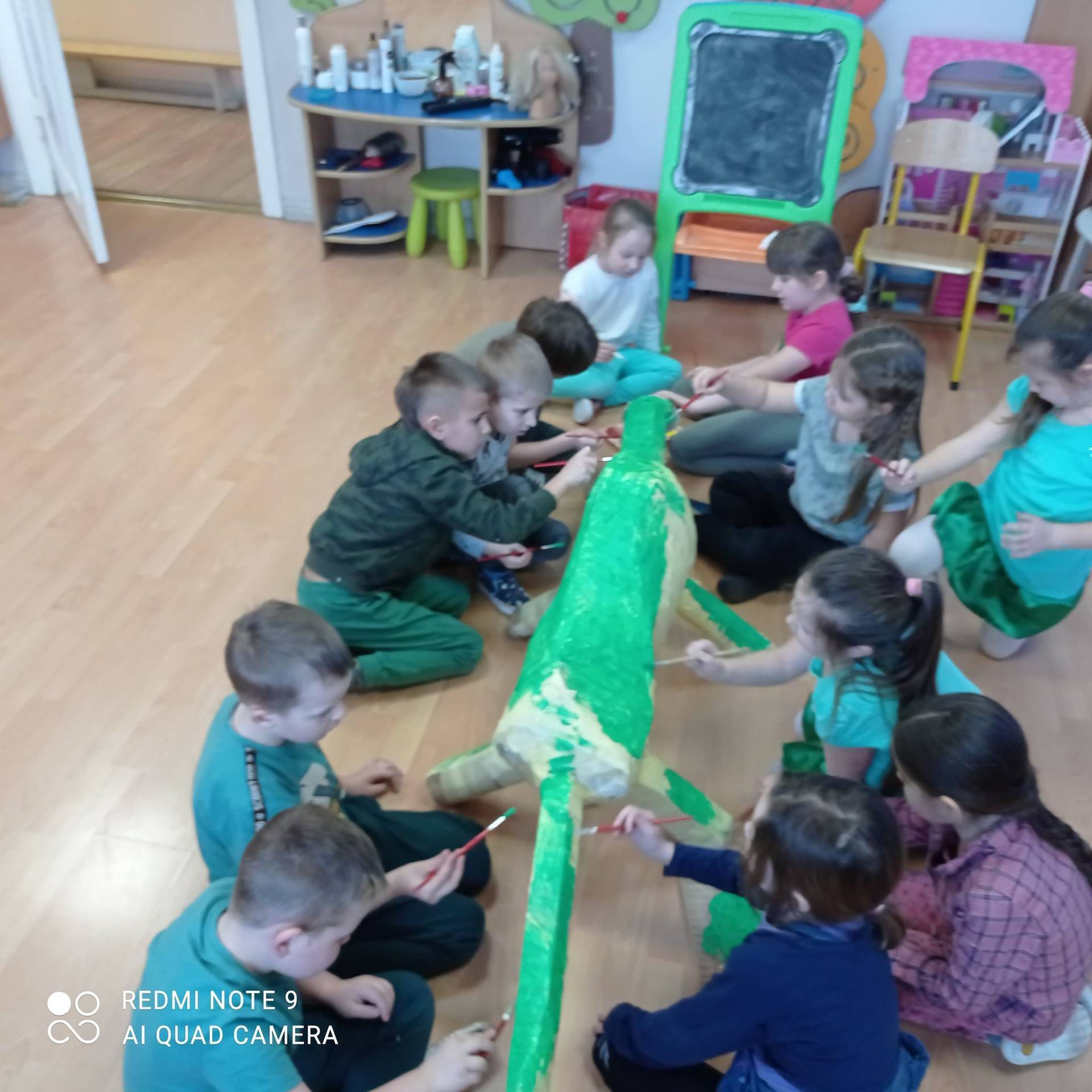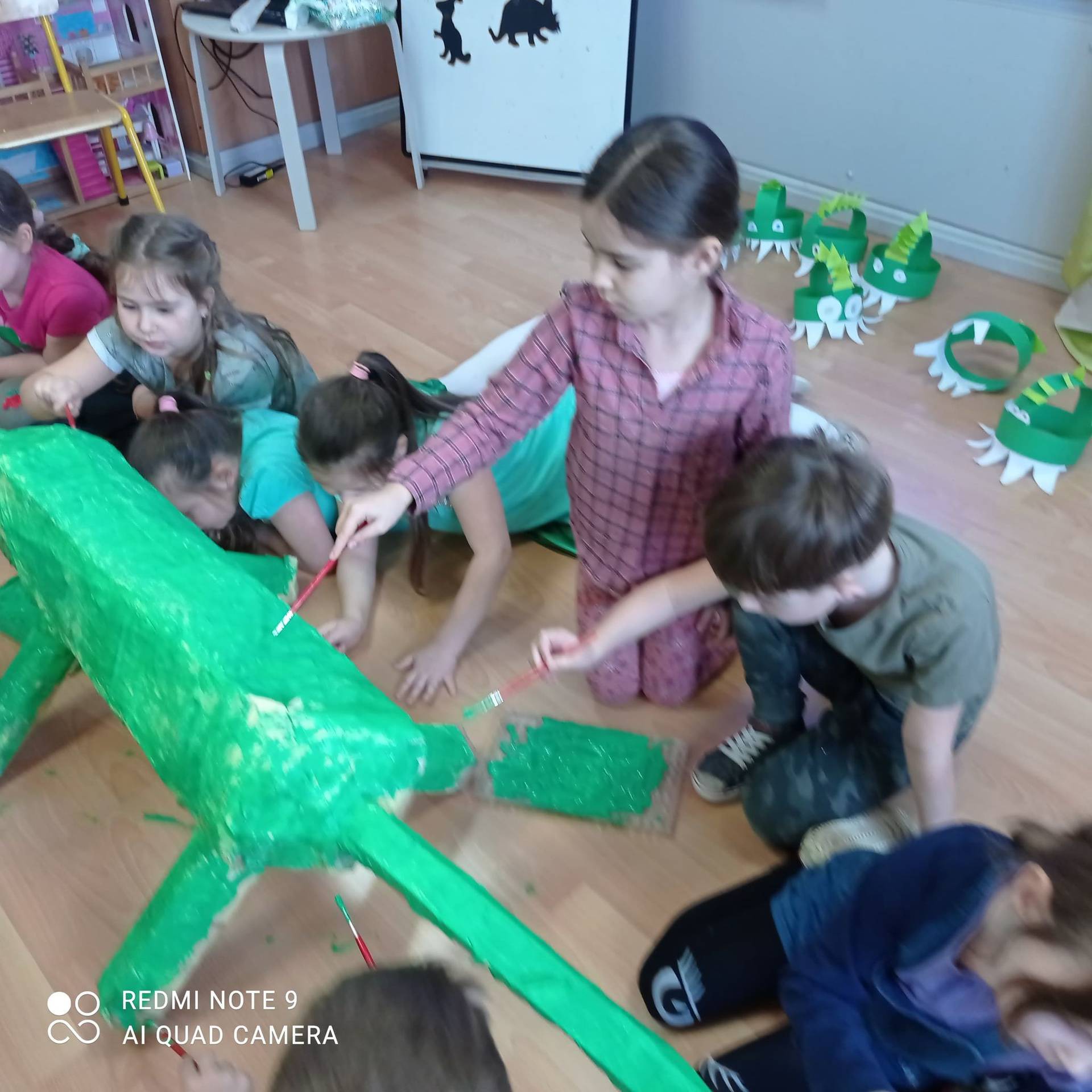 26 lutego przedszkolaki obchodziły Święto prehistorycznych strasznych jaszczurów- Dinozaurów. Tego dnia dzieci przyszły do przedszkola ubrane na zielono. Dzień dinozaura jest idealną okazją do zaznajomienia dzieci i przypomnienia im o niezwykłych mieszkańcach Ziemi, które wyginęły miliony lat temu. Tego dnia dzieci brały udział w zajęciach i zabawach, dzięki którym miały możliwość poznania życia tych niezwykłych wielkich gadów oraz wielu ciekawostek na ich temat. Tygryski z grupy IV wykonały dinozaurowe nakrycia głowy, lepiły dinozaury z masy solnej oraz malowały dinozaura zrobionego z kartonu oraz nadały mu imię "Dinotyg"- czyli dino od dinozaura oraz tyg od tygrysków. Zabawa była na całego.