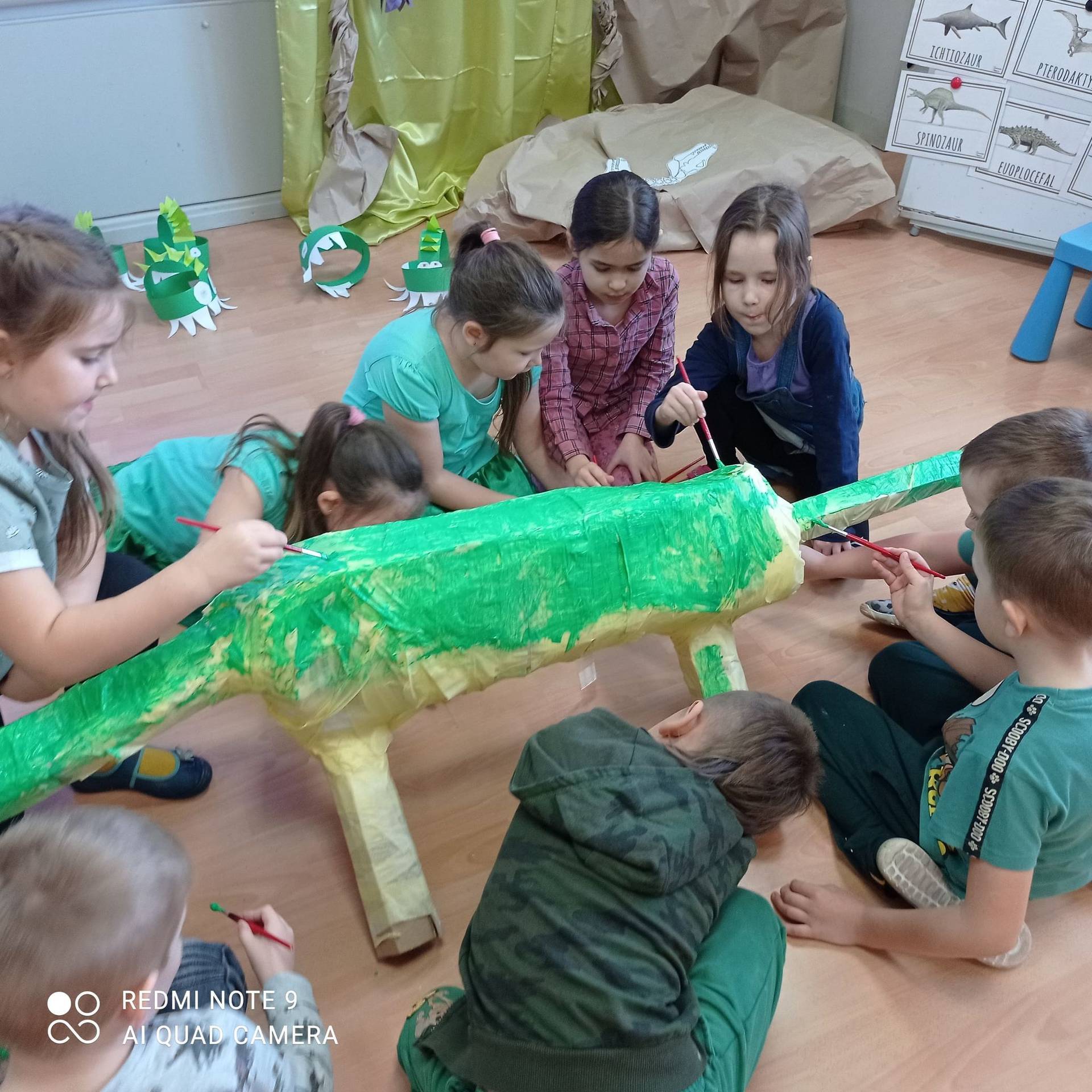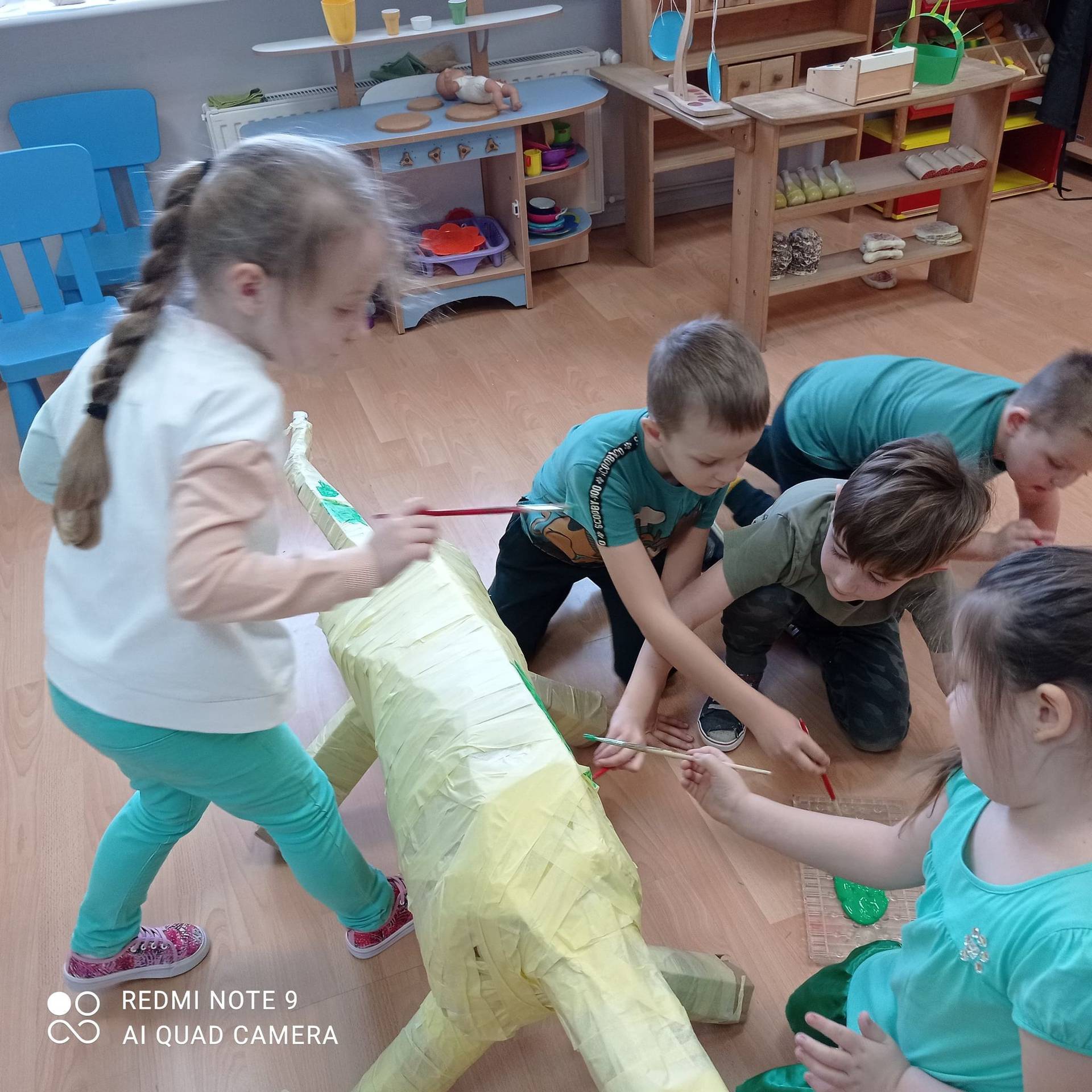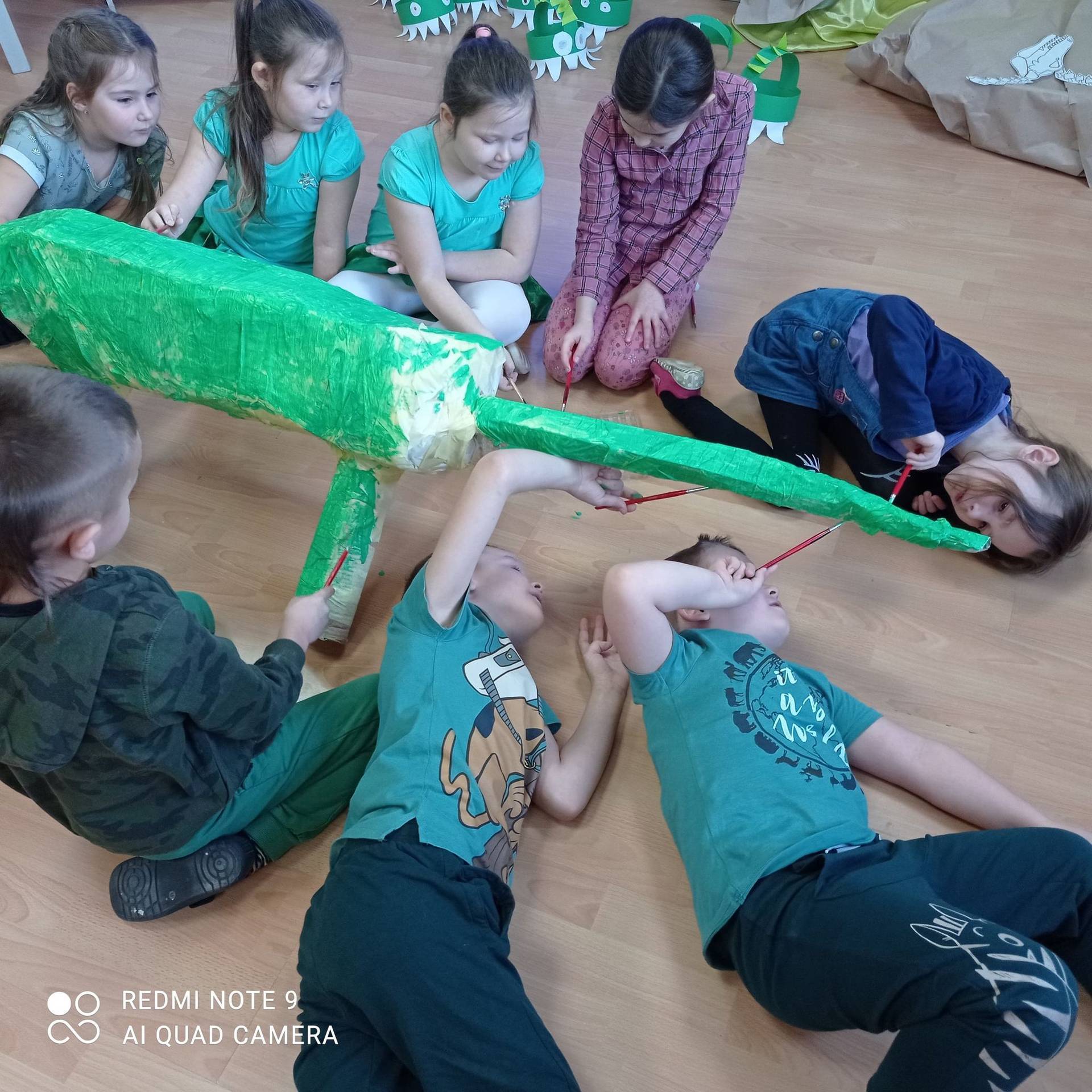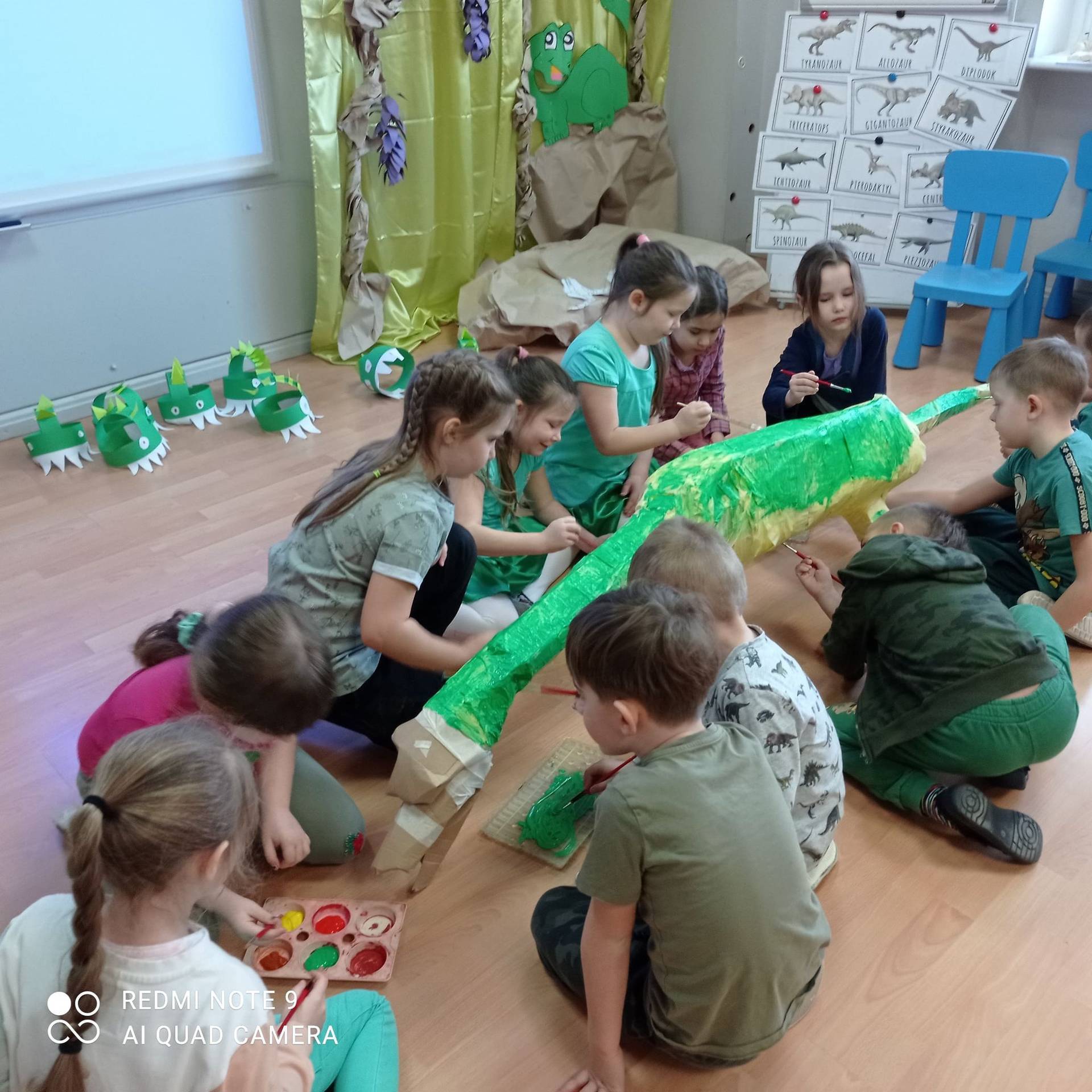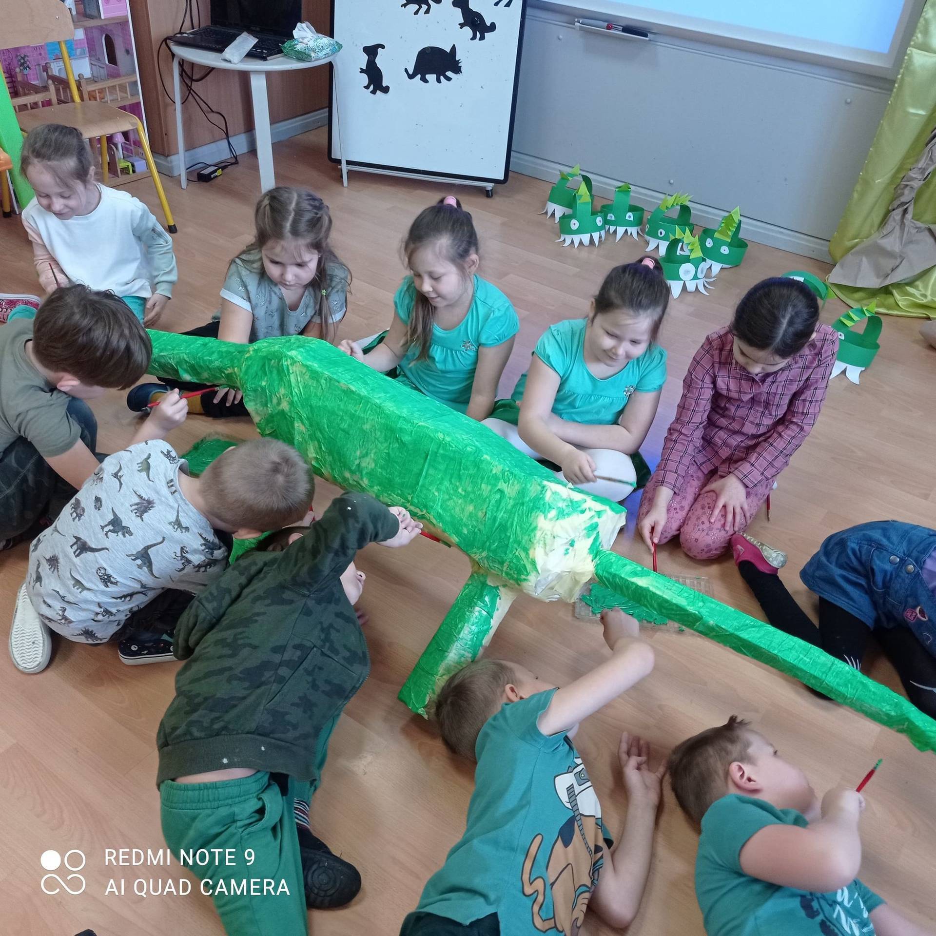 26 lutego przedszkolaki obchodziły Święto prehistorycznych strasznych jaszczurów- Dinozaurów. Tego dnia dzieci przyszły do przedszkola ubrane na zielono. Dzień dinozaura jest idealną okazją do zaznajomienia dzieci i przypomnienia im o niezwykłych mieszkańcach Ziemi, które wyginęły miliony lat temu. Tego dnia dzieci brały udział w zajęciach i zabawach, dzięki którym miały możliwość poznania życia tych niezwykłych wielkich gadów oraz wielu ciekawostek na ich temat. Tygryski z grupy IV wykonały dinozaurowe nakrycia głowy, lepiły dinozaury z masy solnej oraz malowały dinozaura zrobionego z kartonu oraz nadały mu imię "Dinotyg"- czyli dino od dinozaura oraz tyg od tygrysków. Zabawa była na całego.