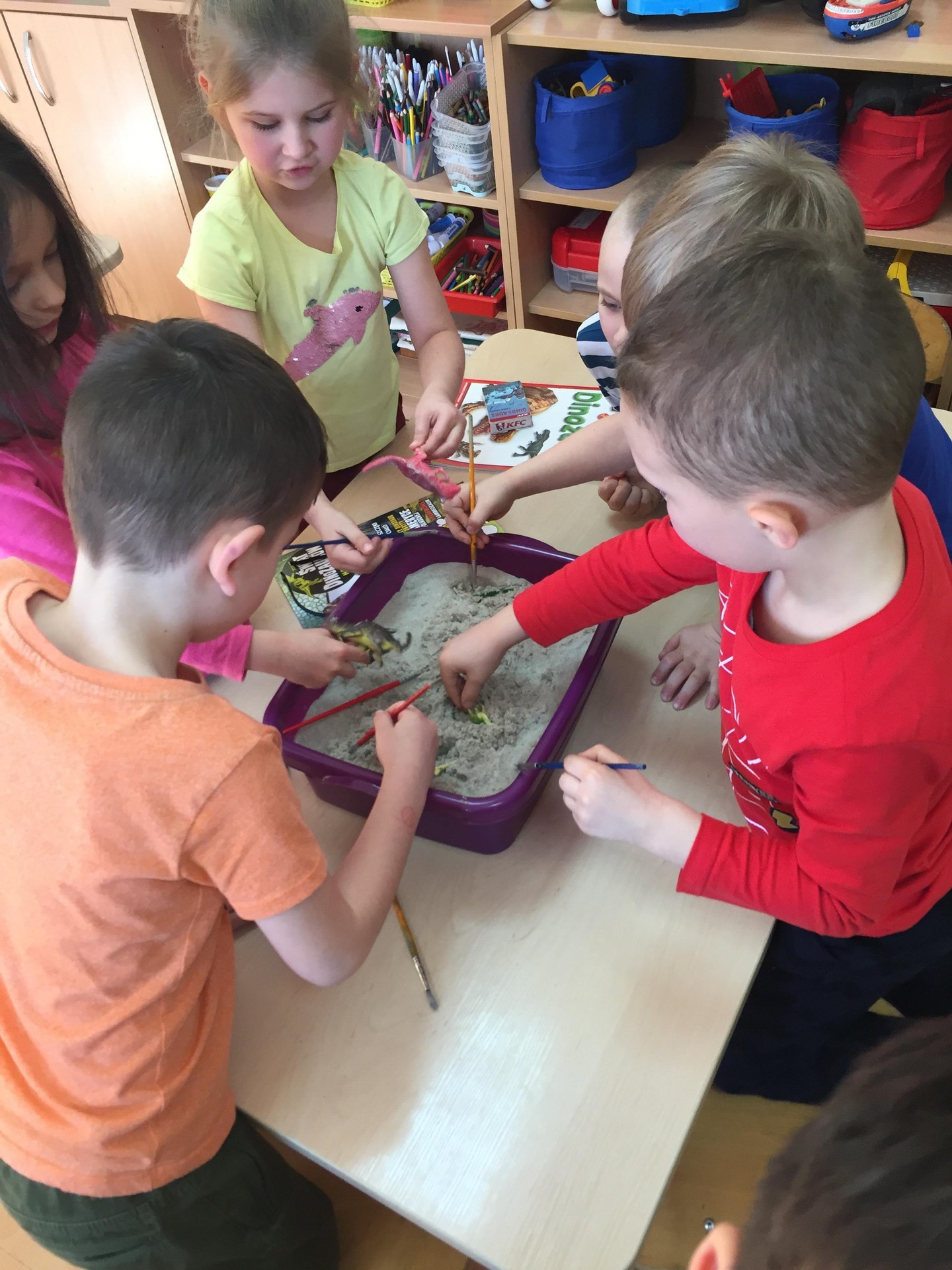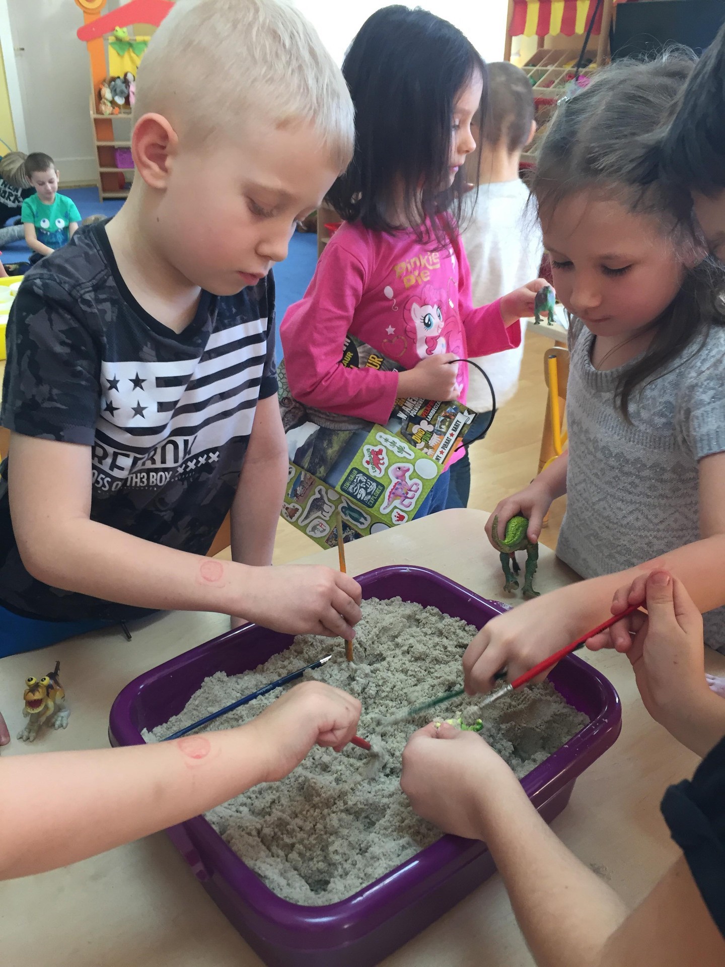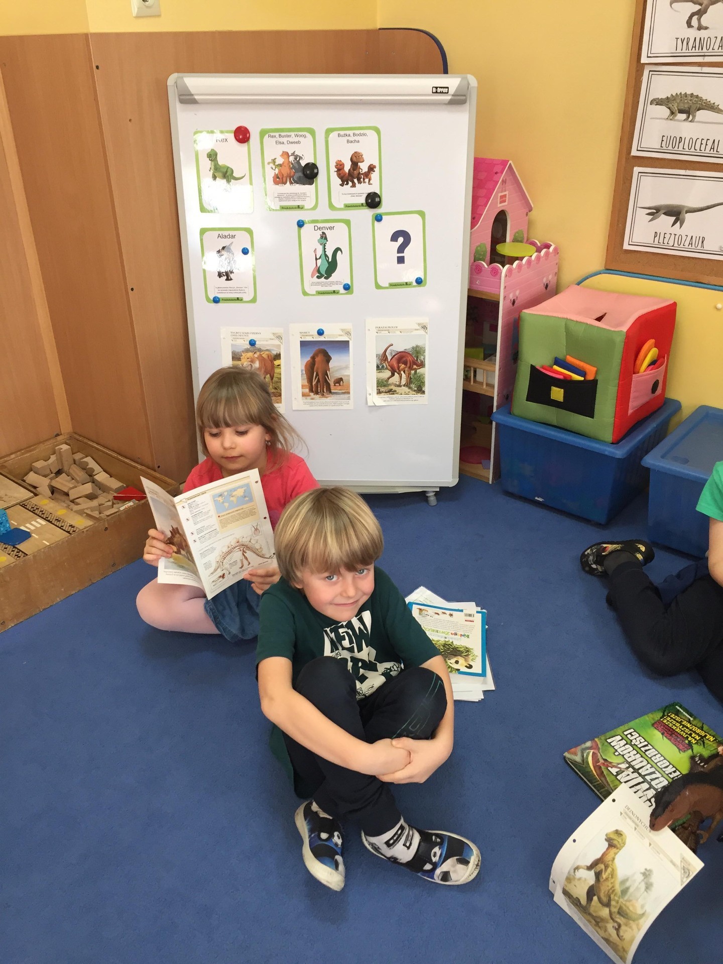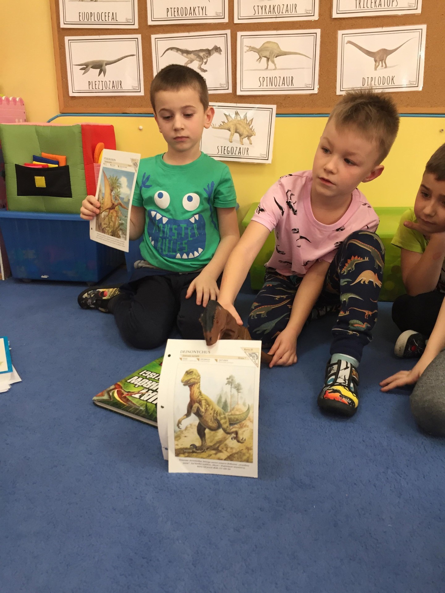 Choć dinozaury dawno już wyginęły to nie przestają fascynować ludzi. Święto tych prehistorycznych stworzeń można spędzić na wiele sposobów. Podczas zajęć poznawali jak wyglądała Ziemia w czasie jury i kredy czyli w czasie kiedy żyły dinozaury, zapoznani zostali również z teorią dotycząca ich wymierania. Wykonywali różne kolorowanki przedstawiające sylwetki dinozaurów lub wymyślali własne dinozaury. Mogli tez pobawić się figurkami dinozaurów i oglądnąć szkielet wielkiego tyranozaura. To był tydzień pełen pracy i radości, rozbudził u wielu pasje i zainteresowania.