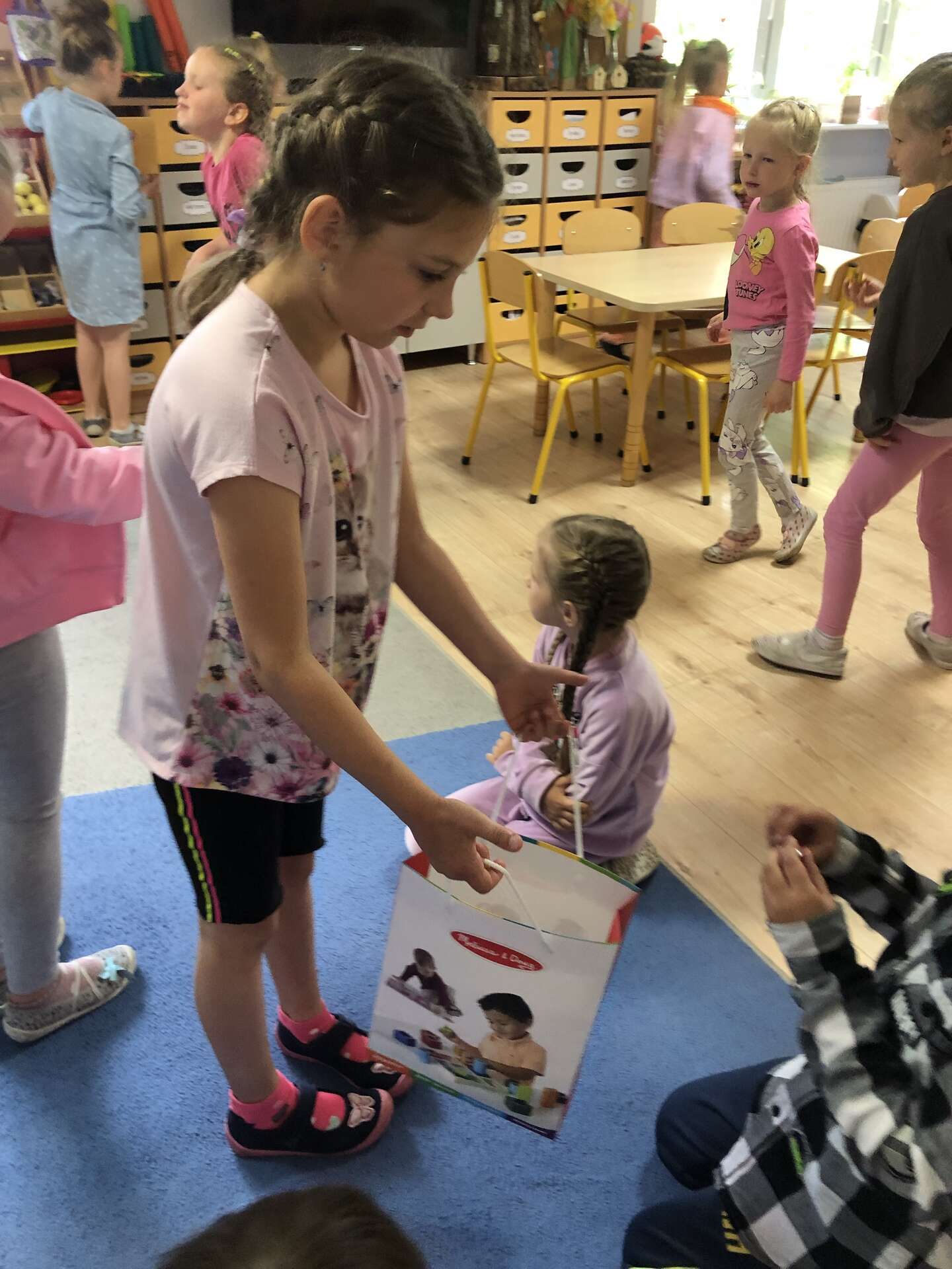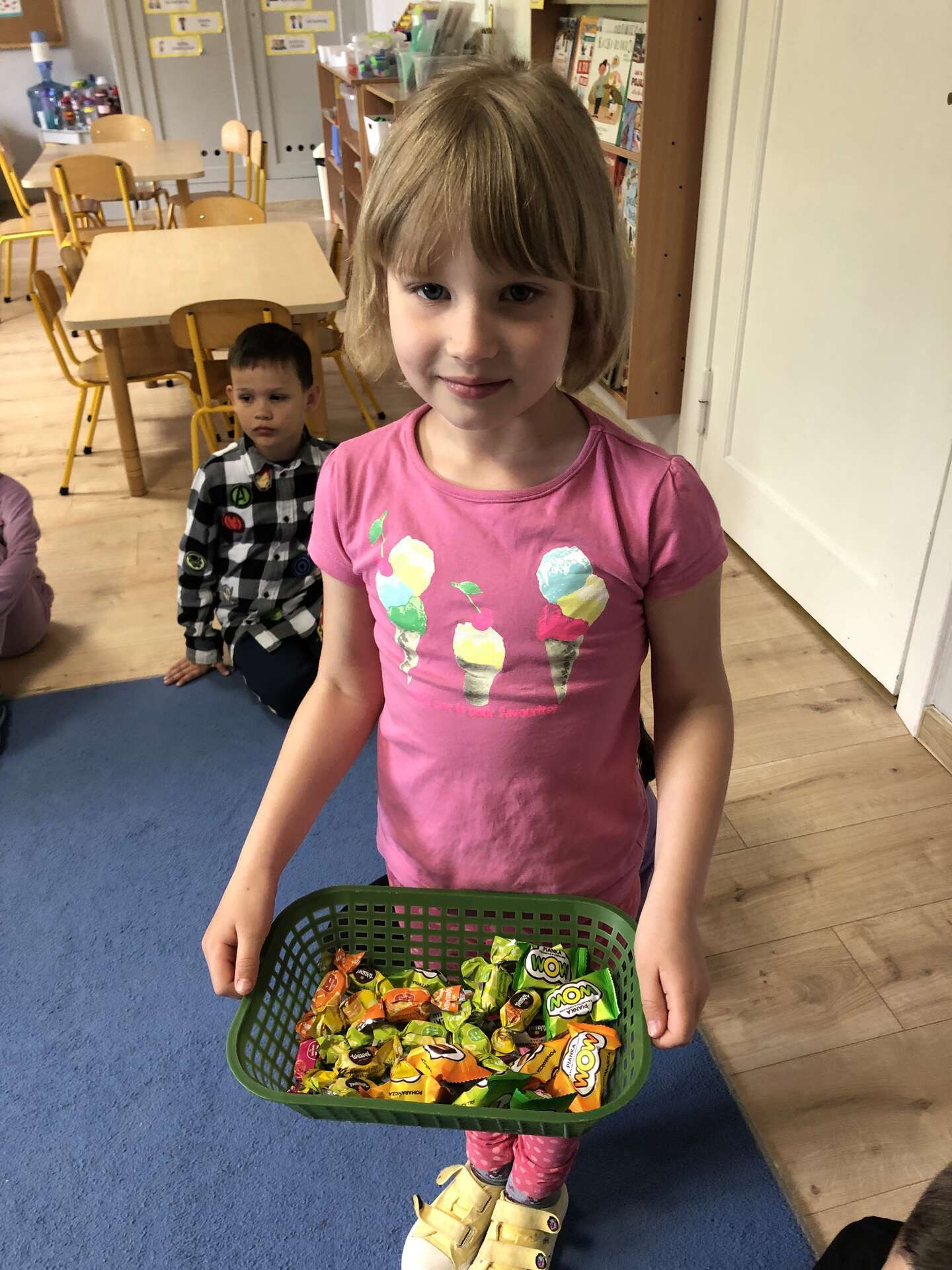 Dziewczynka rozdaje dzieciom cukierki