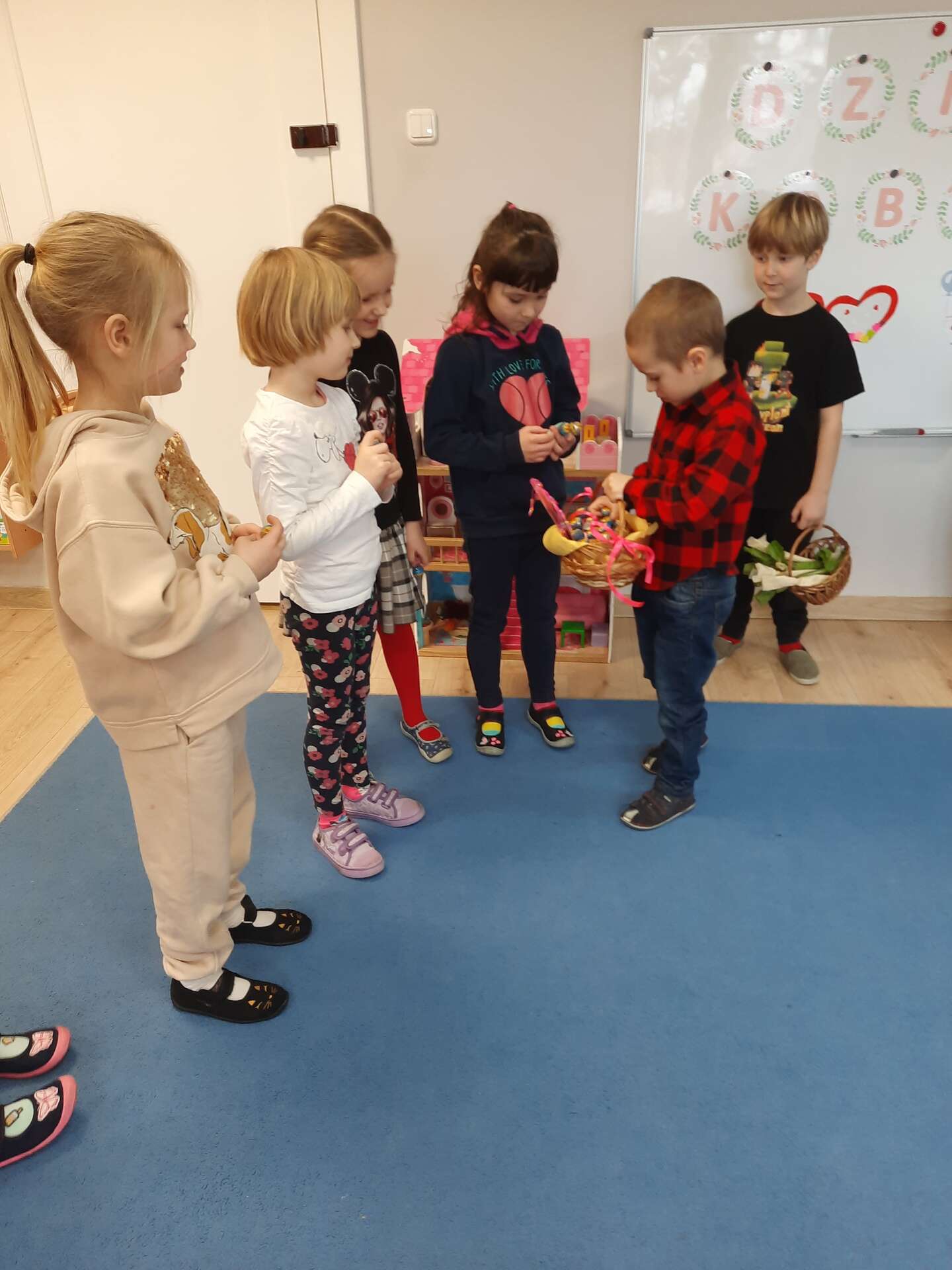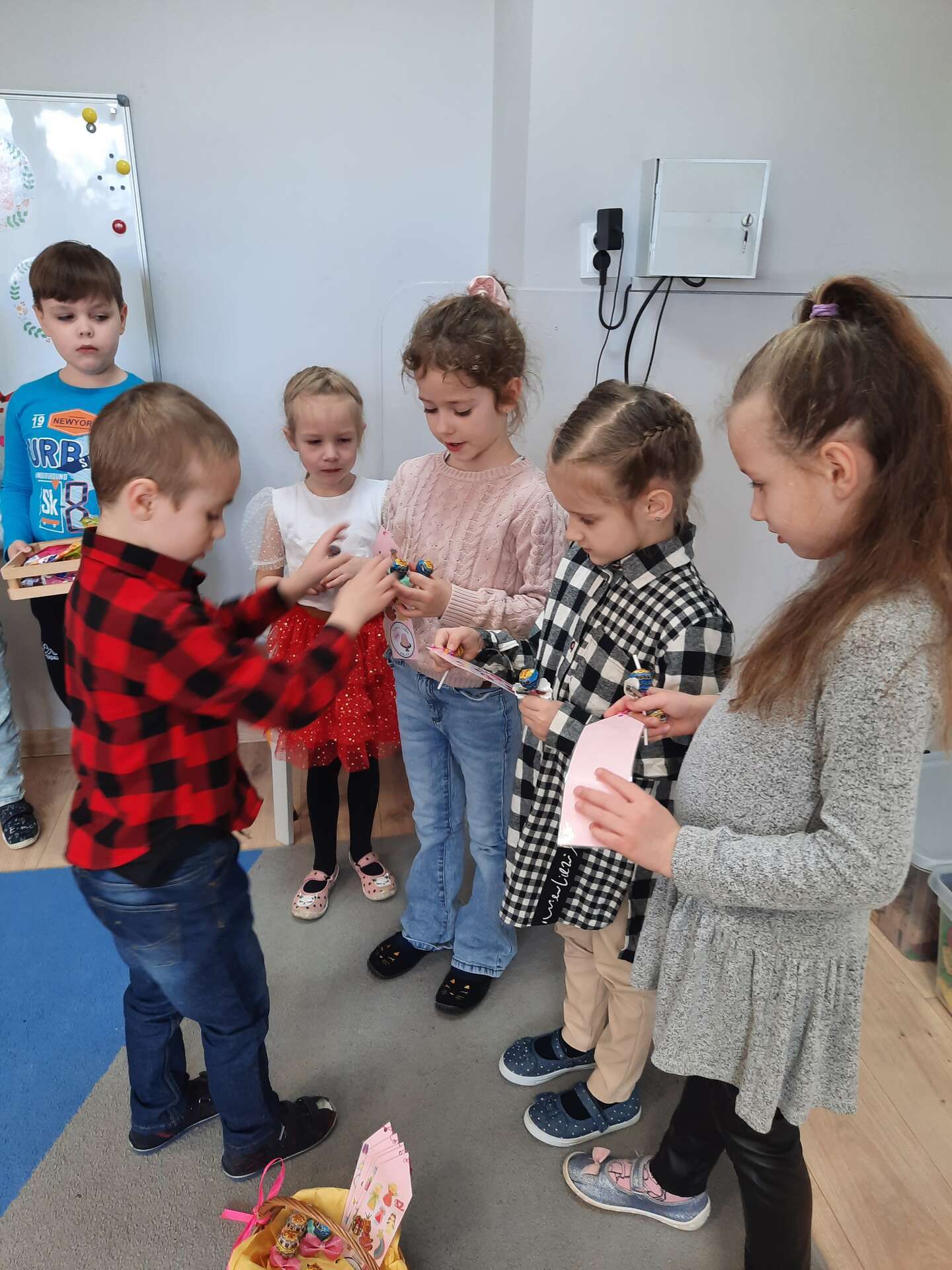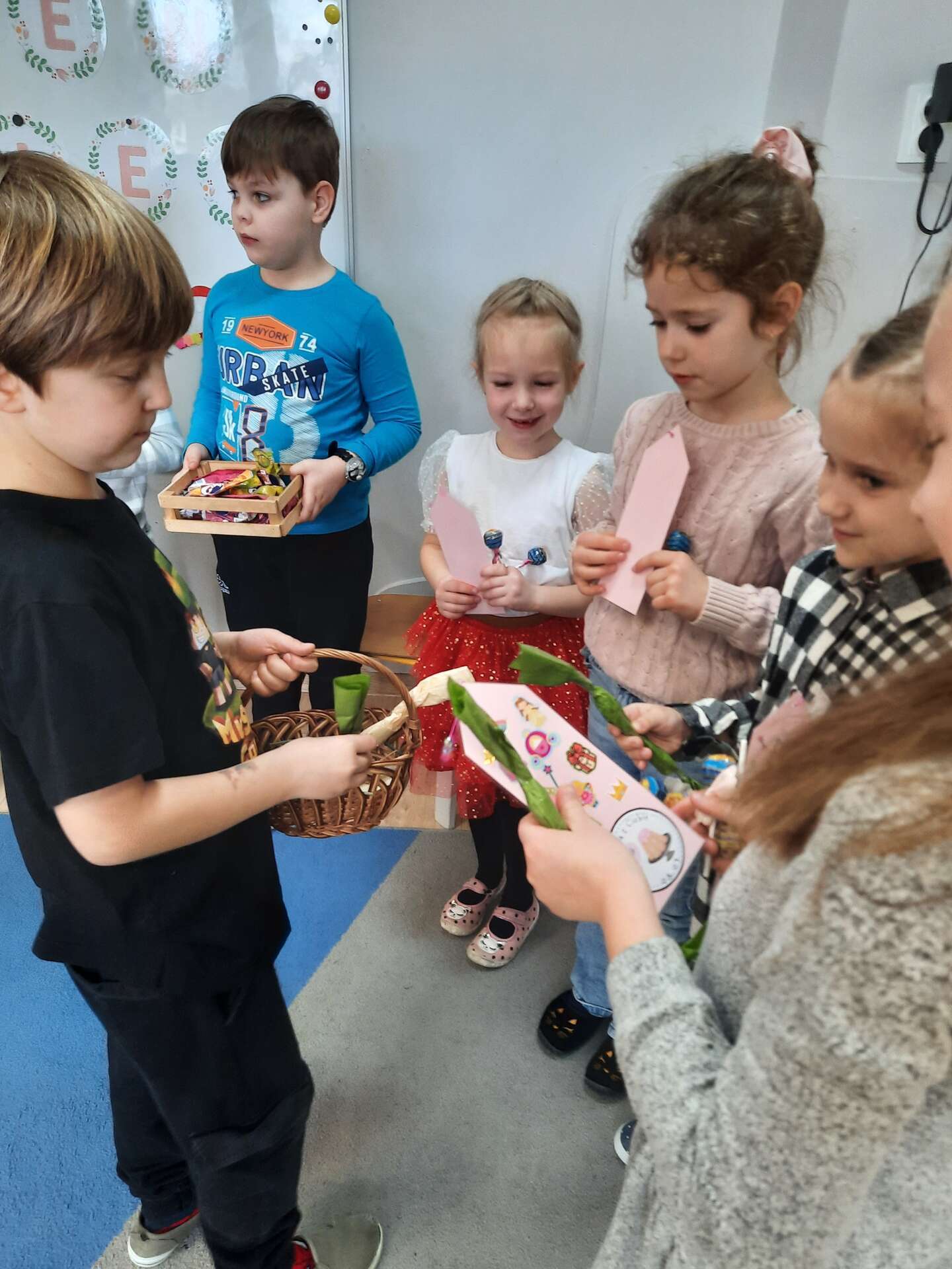 Chłopcy czekają na dziewczynki aby wręczyć im słodkie prezenty