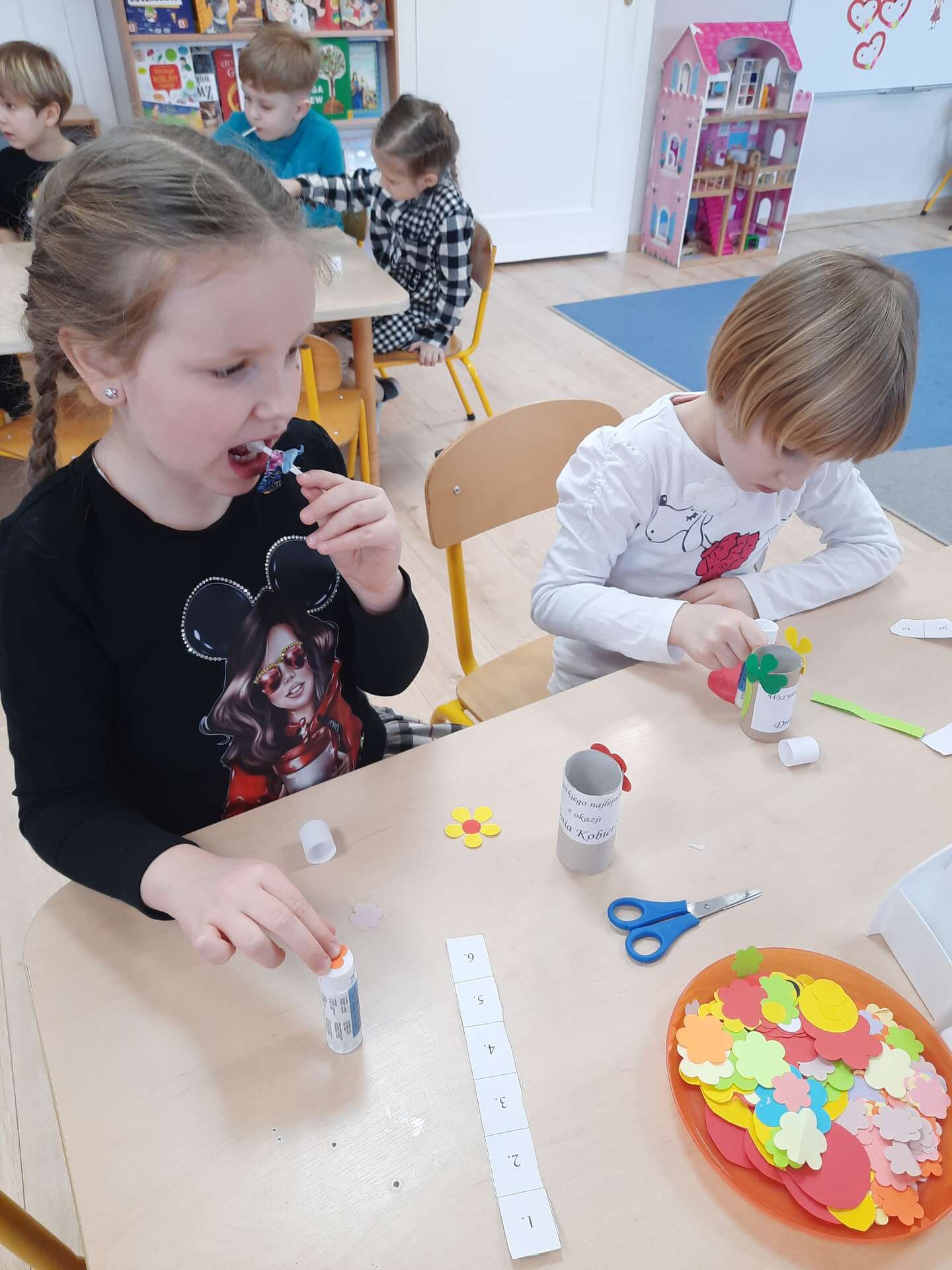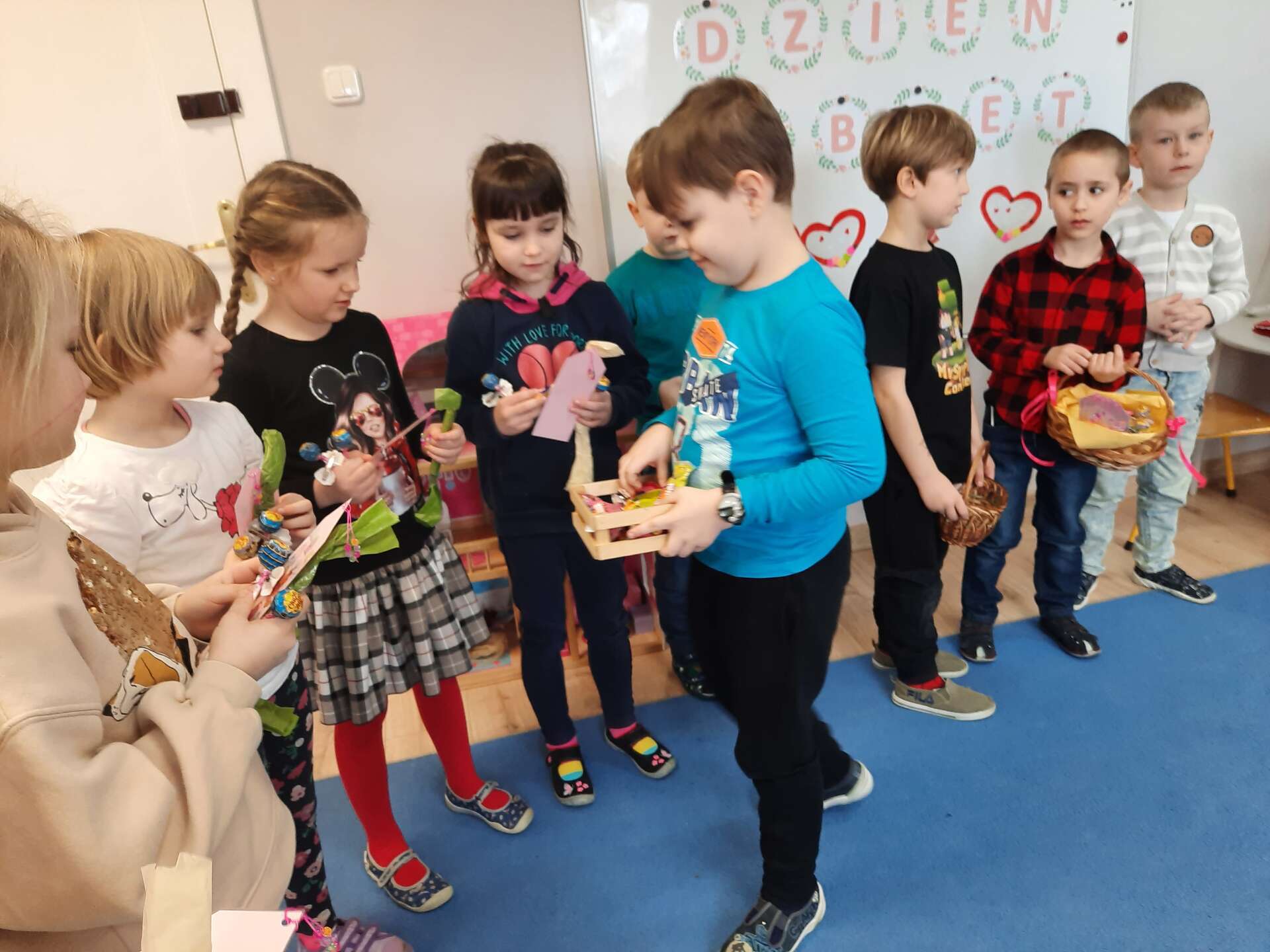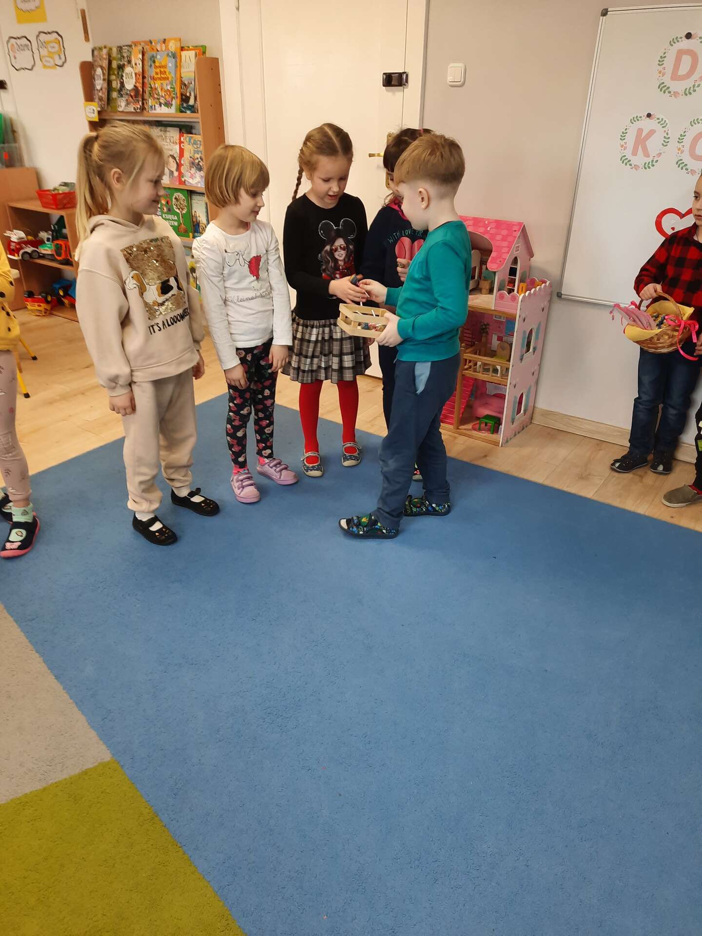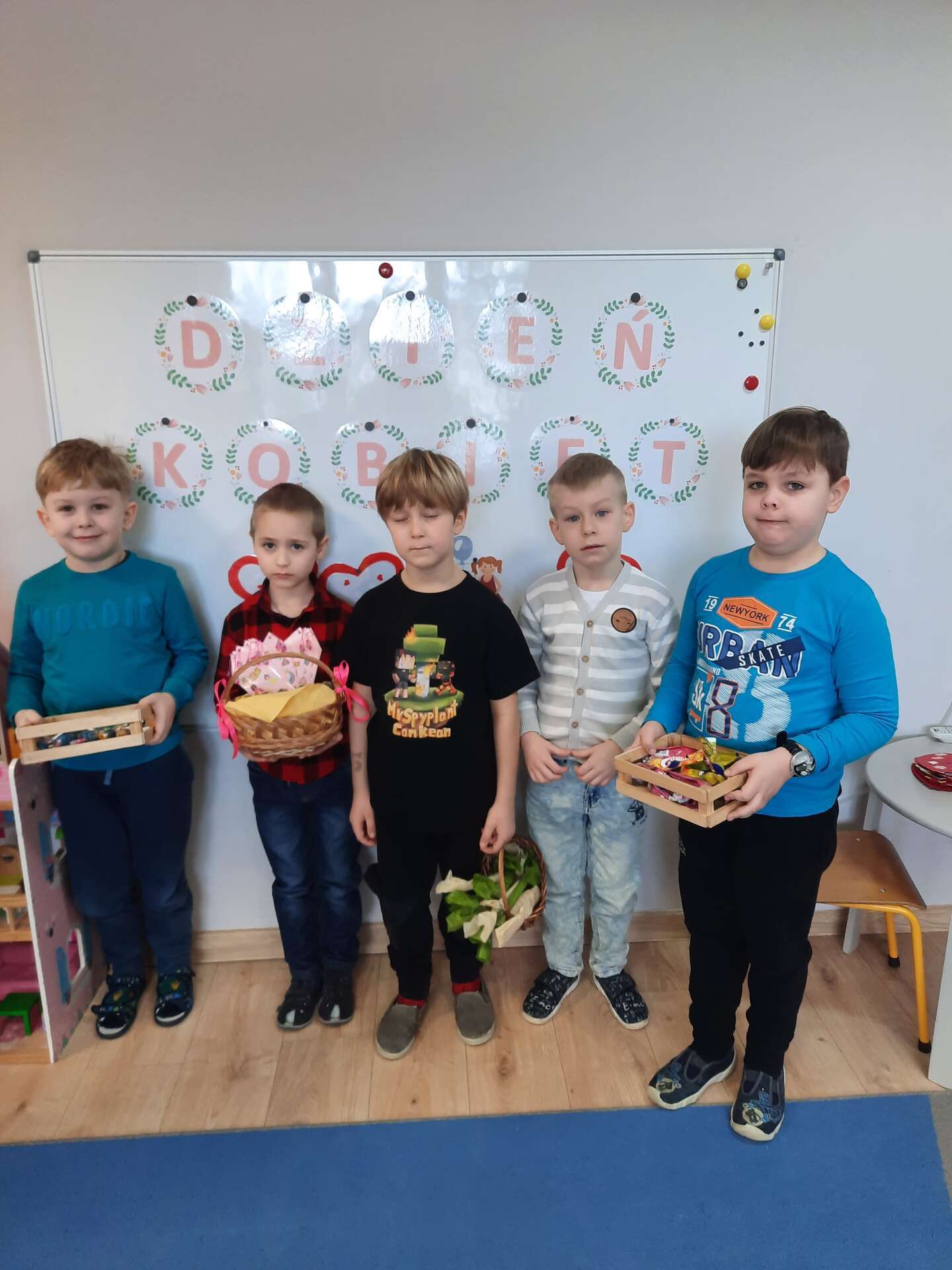 Chłopcy czekają na dziewczynki aby wręczyć im słodkie prezenty