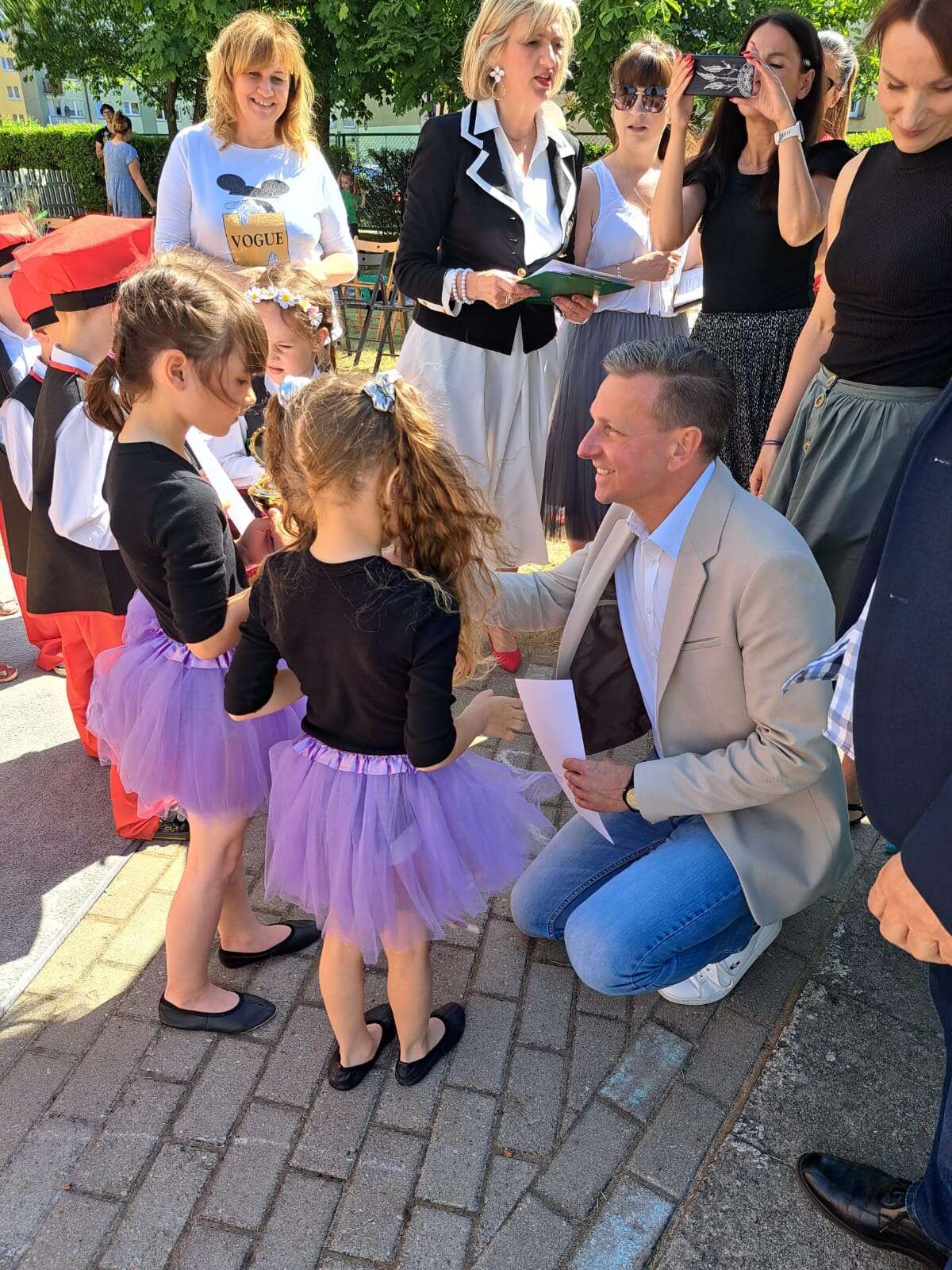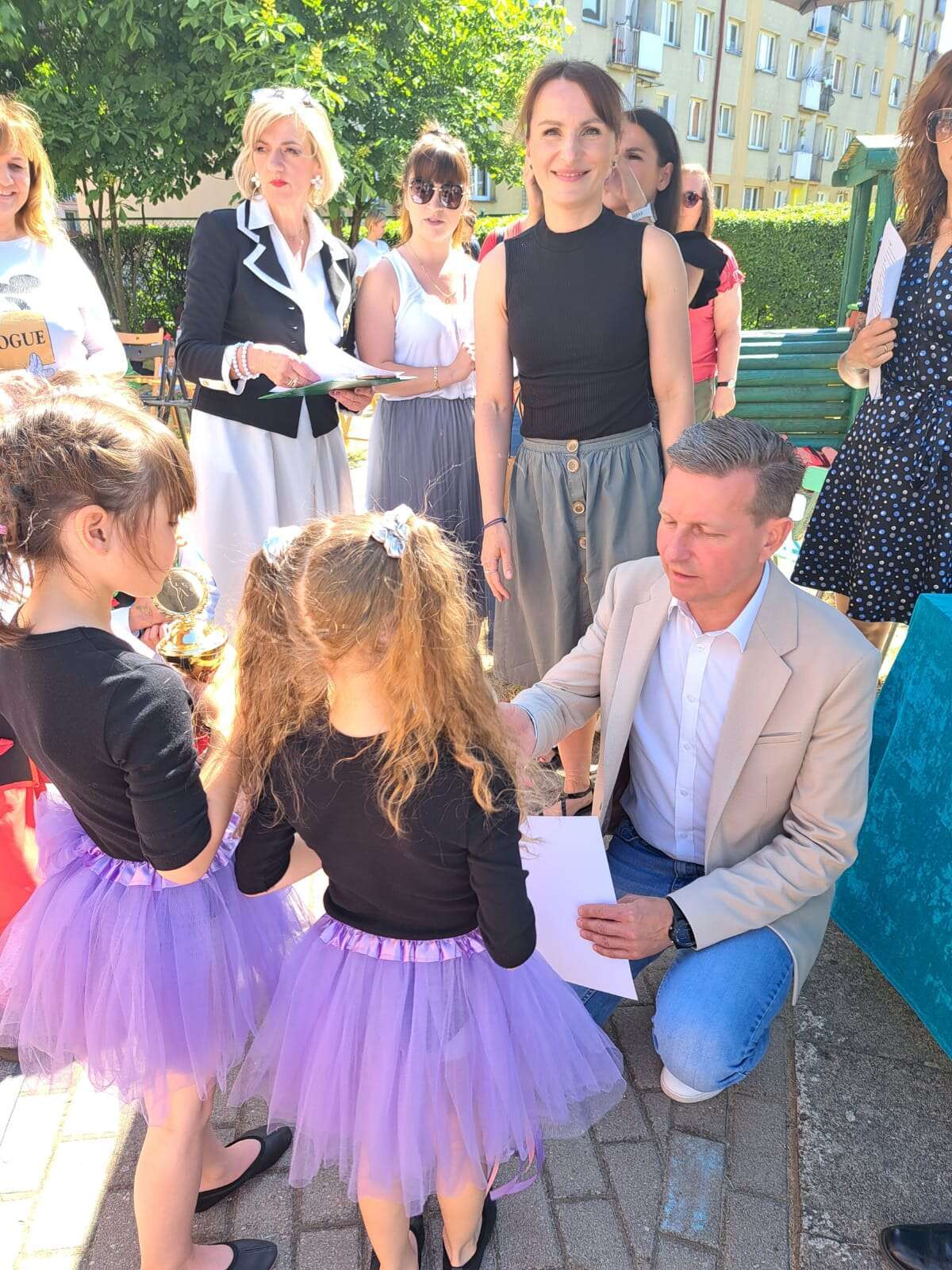 Dziewczynki odbierają dyplom za udział w konkursie