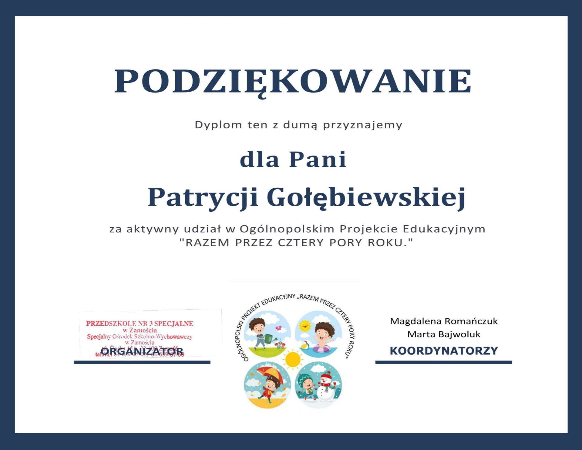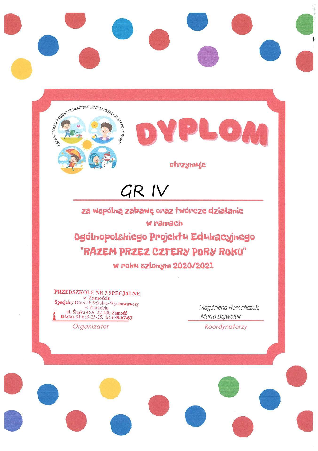 Kolejny projekt "Cztery pory roku" w którym nasza grupa brała udział dobiegł końca.