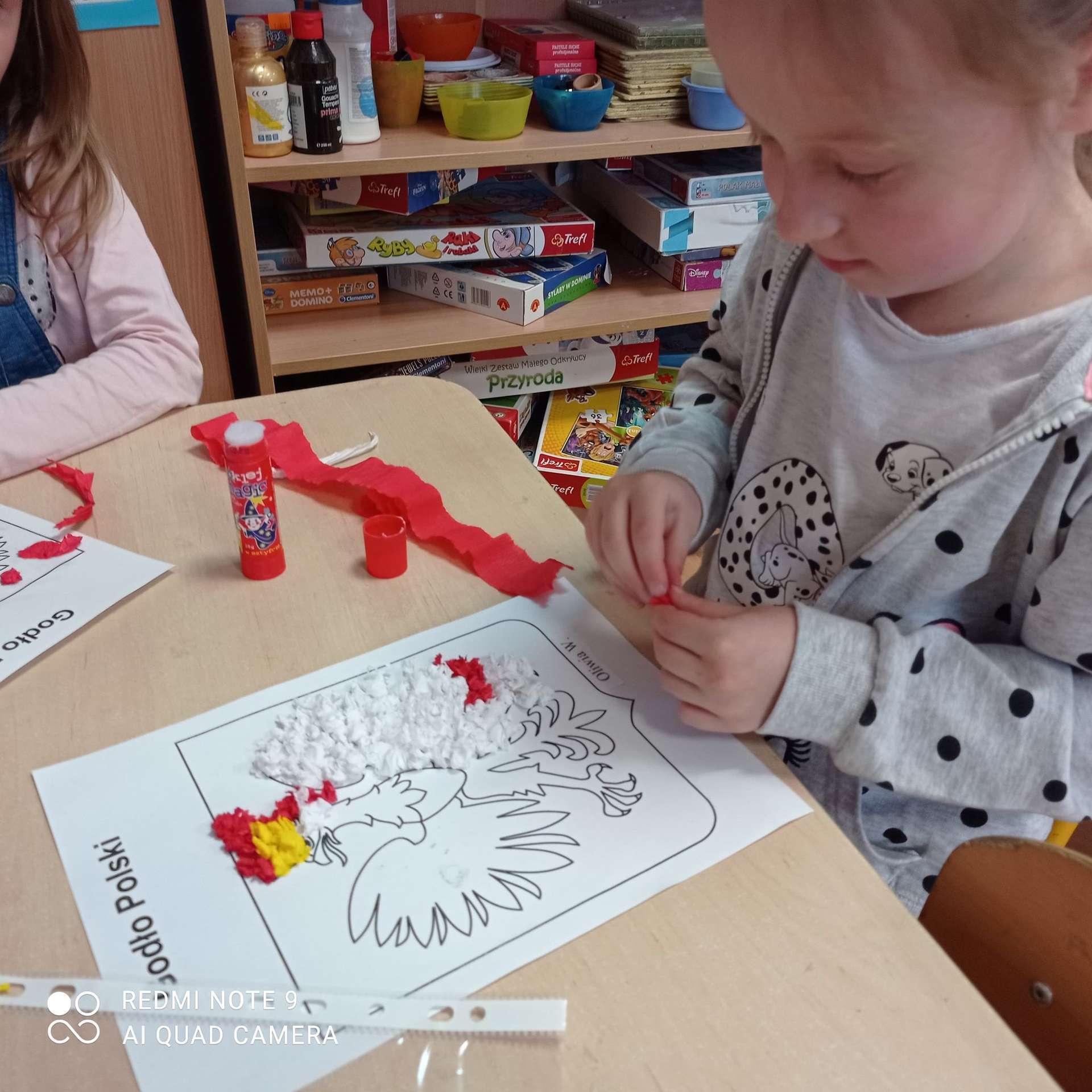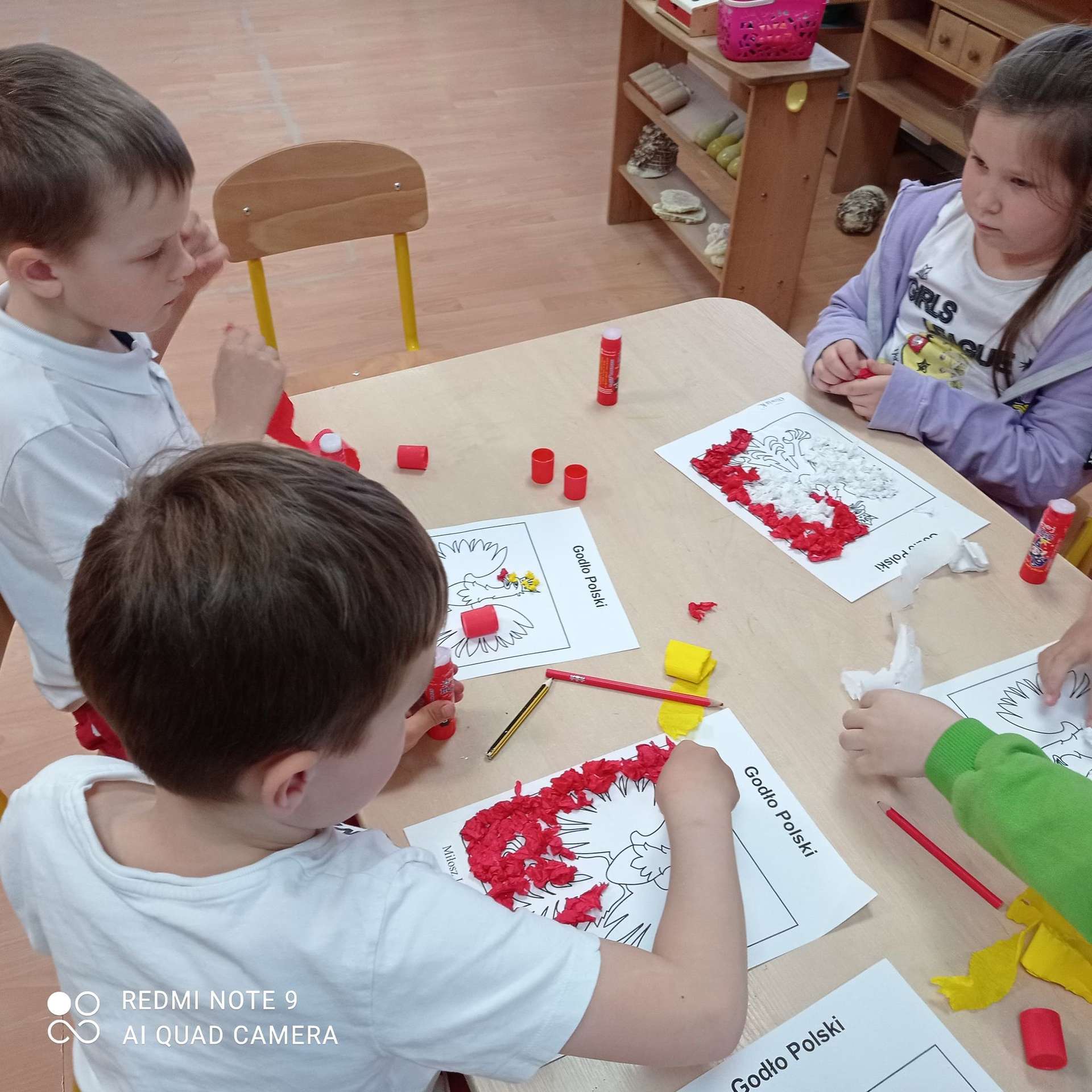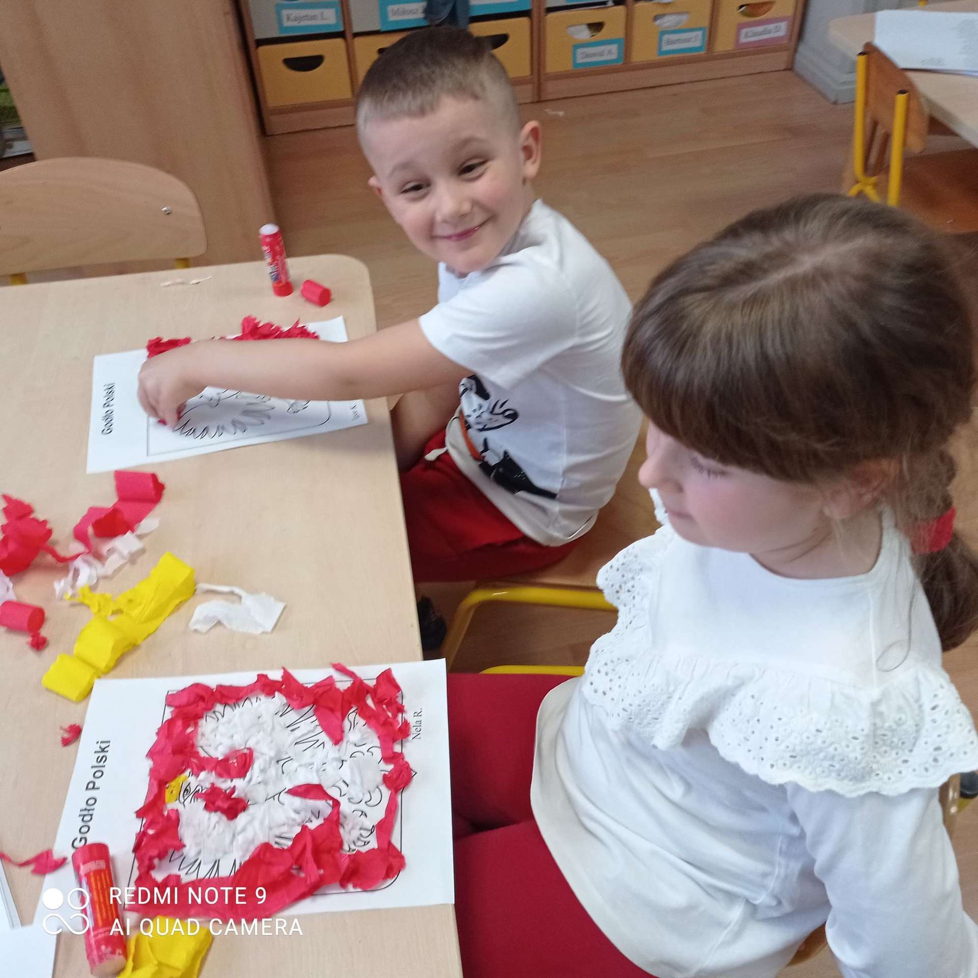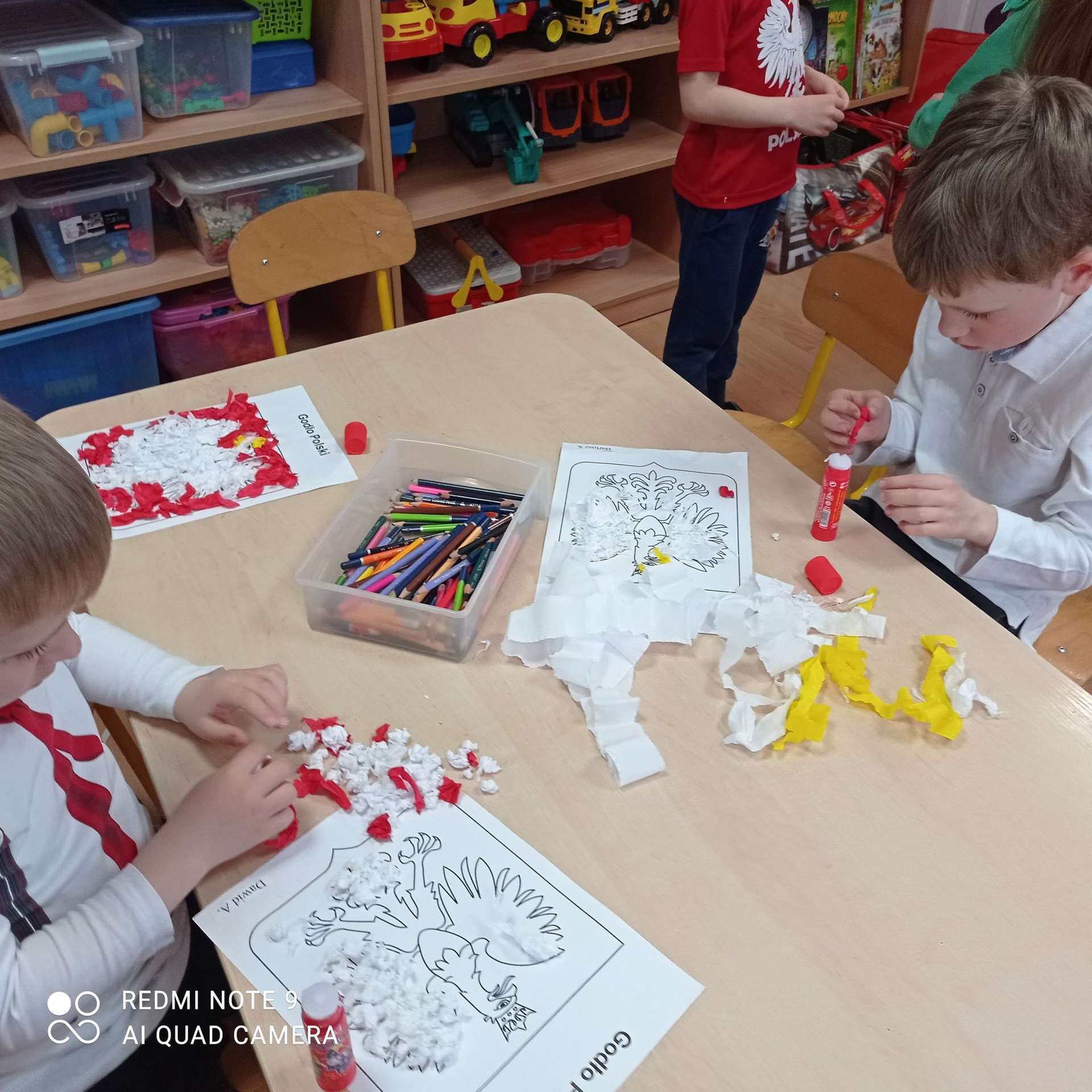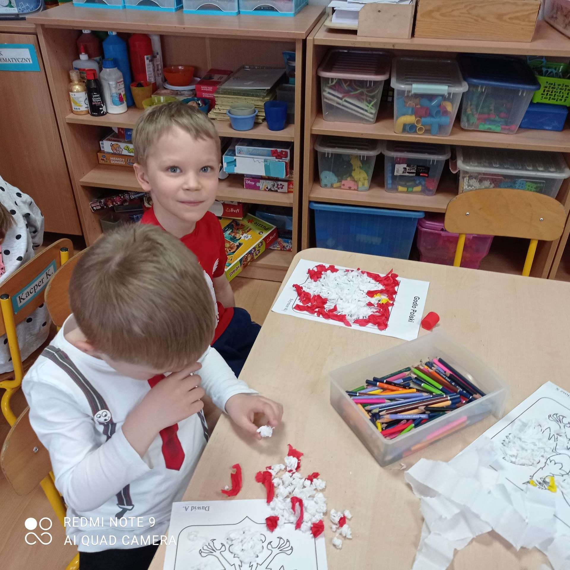 Dzisiaj na zajęciach dzieci przypomniały sobie te ważne daty, wykonały również pracę plastyczną.