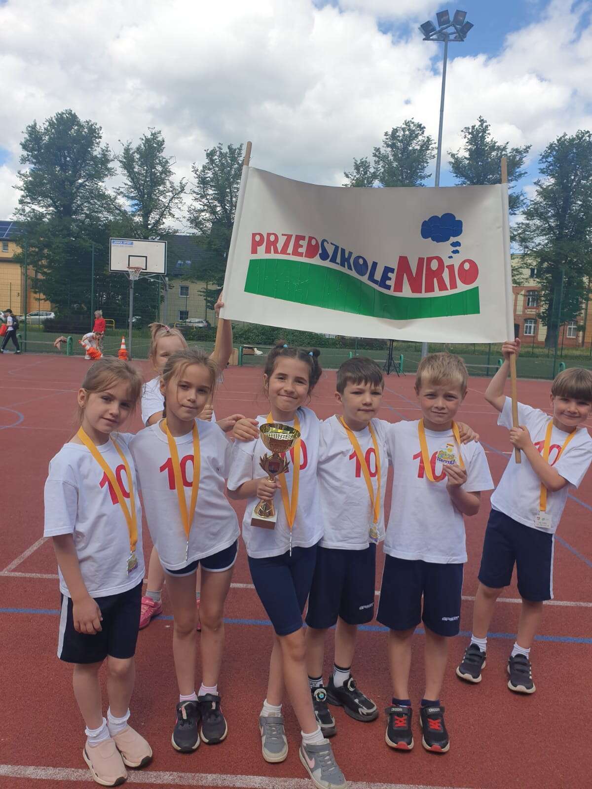 Nasze dzielne starszaki świetnie poradziły sobie we wszystkich konkurencjach podczas Międzyprzedszkolnych Igrzysk Sportowych. Z pucharem i dobrymi humorami wróciły do przedszkola.