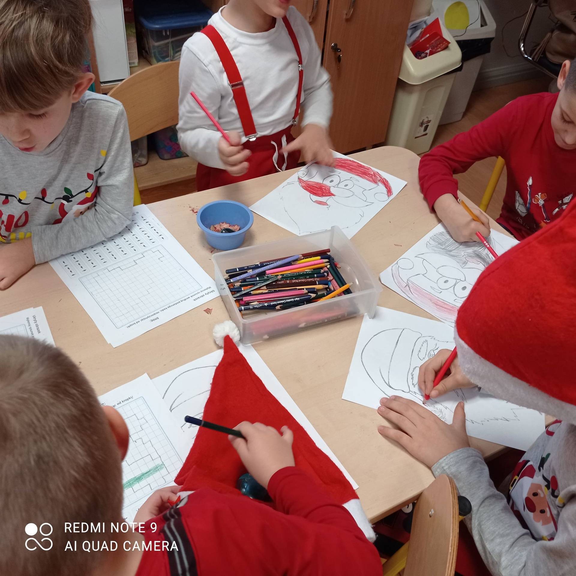 Mikołajki długo wyczekiwany przez wszystkich dzień. Z tej okazji dzieci przyszły do przedszkola ubrane na czerwono, a na głowach miały mikołajkowe czapki. Wszyscy mieli świetne humory, uśmiech nie schodził z naszych twarzy. Dzieci w zostawionym przez Mikołaja liście dostały kilka zadań do wykonania - dzielnie wszystkim sprostały. Dodatkowo został wysłany list do Świętego Mikołaja na adres: SANTA CLAUS North Pole H0H 0H0 Canada. Liczymy na odpowiedź. LIST ZNAJDUJE SIĘ W PLIKACH POD ZDJĘCIAMI.