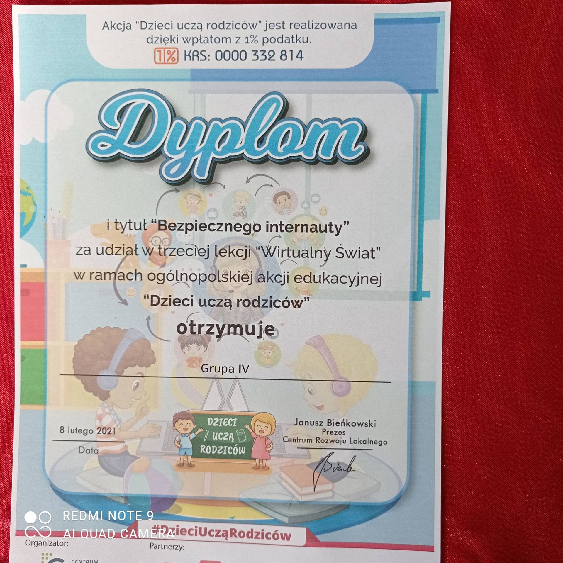 GR IV Podziękowanie za udział w kolejnej lekcji "Dzieci uczą rodziców"
