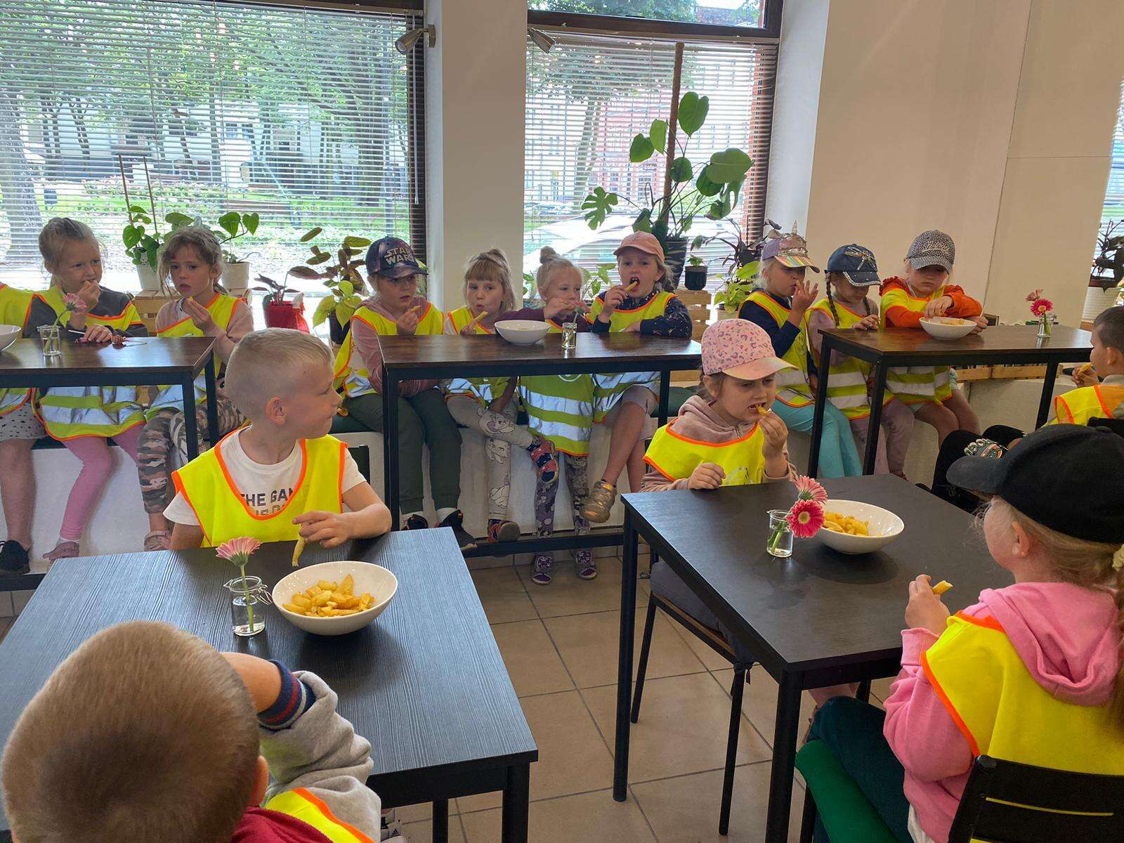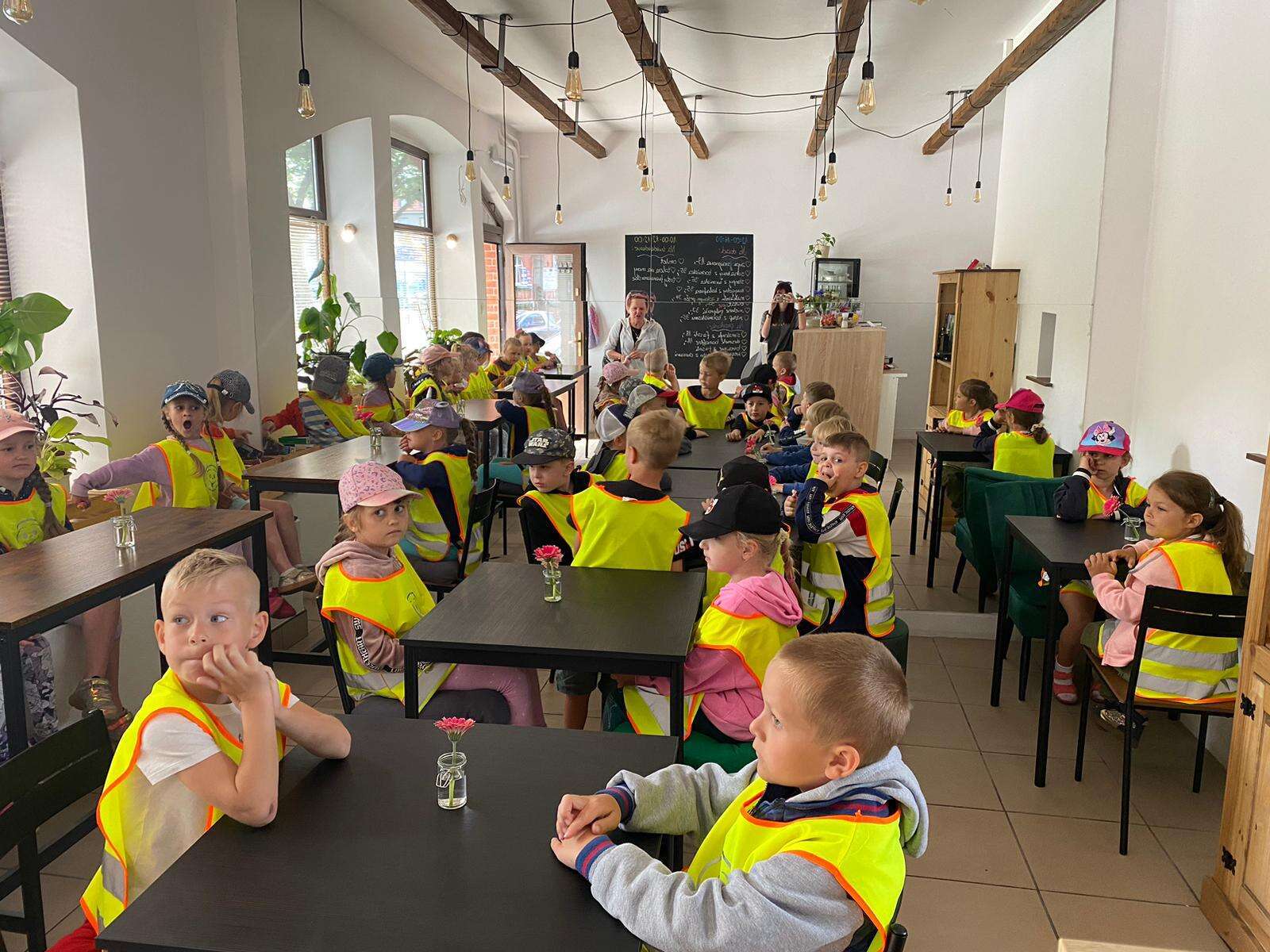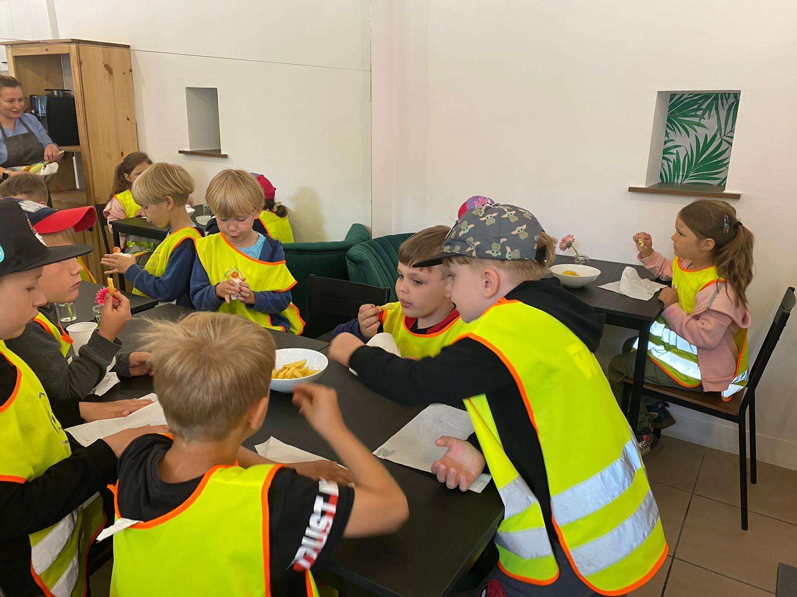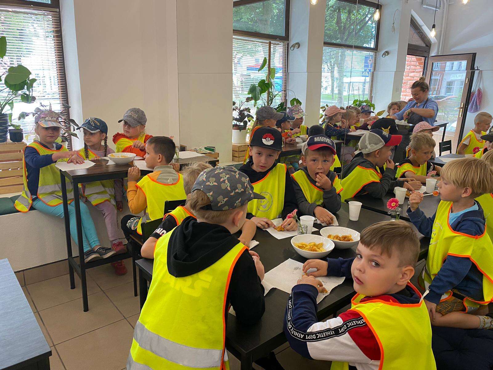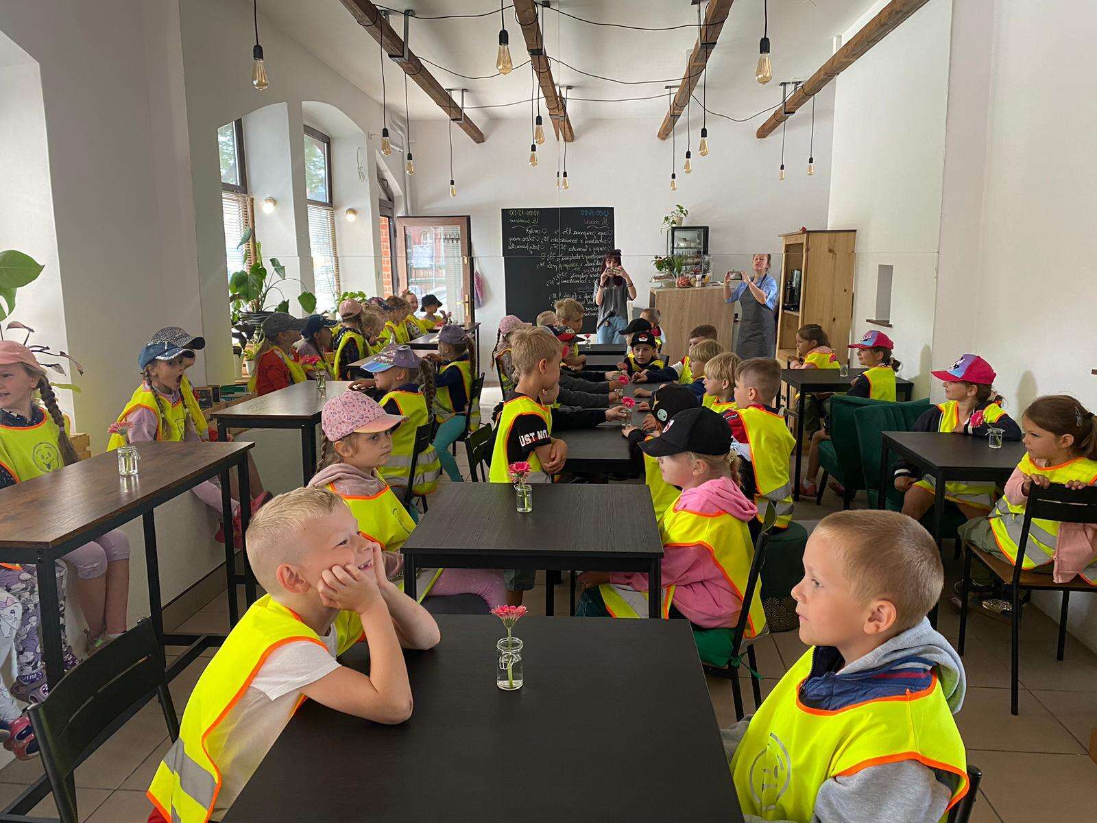 Dzieci przy stolikach w restauracji