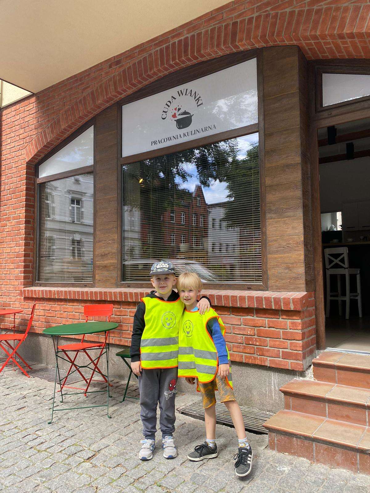Chłopcy przed restauracją