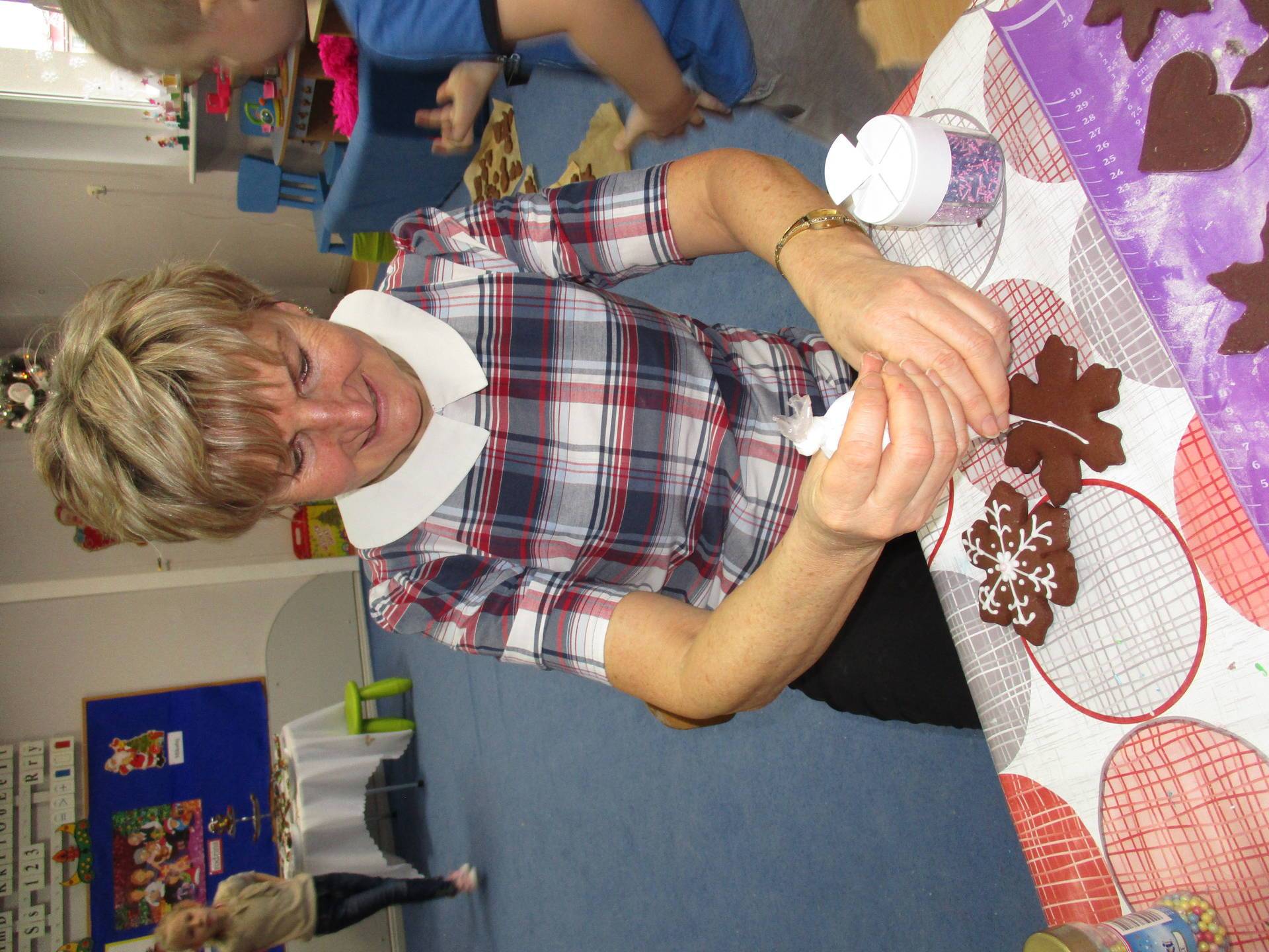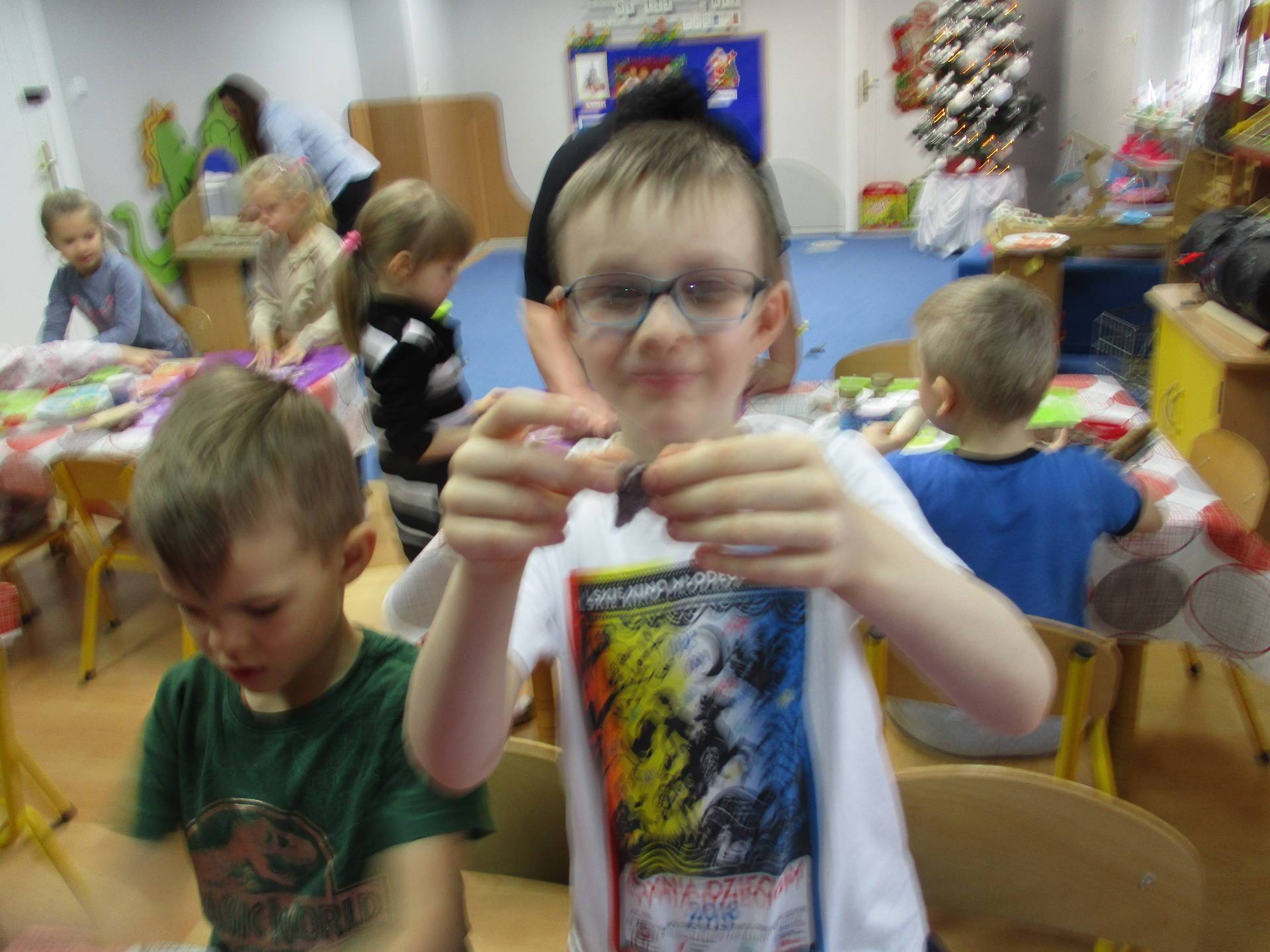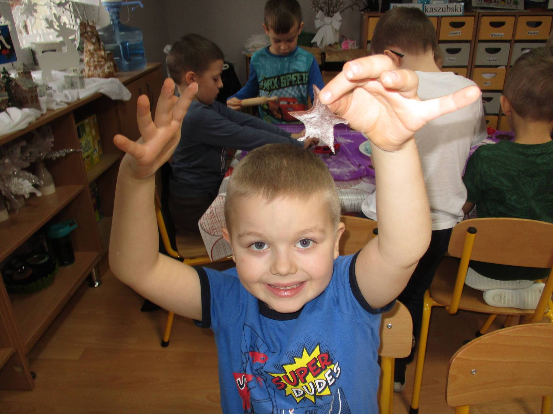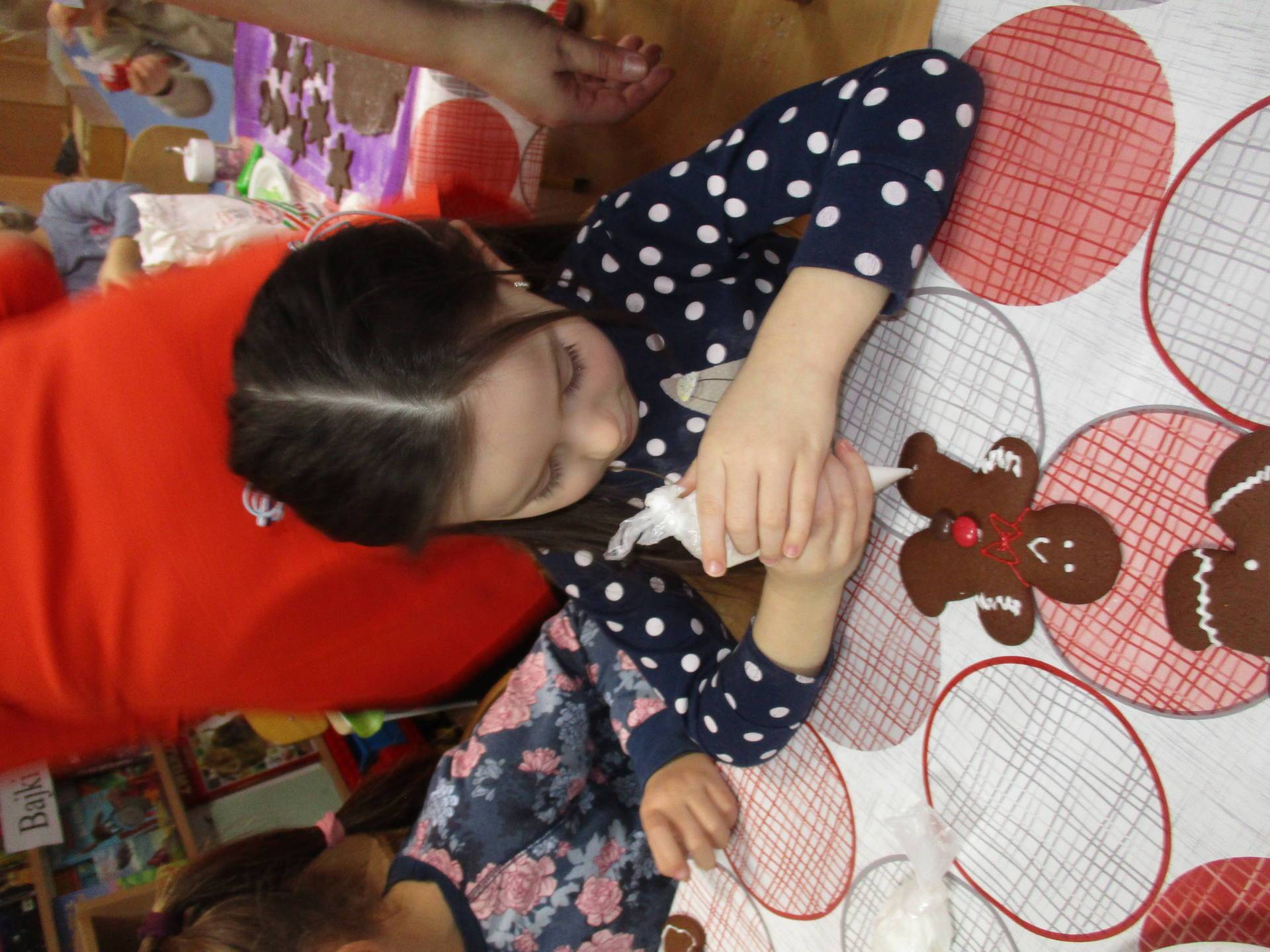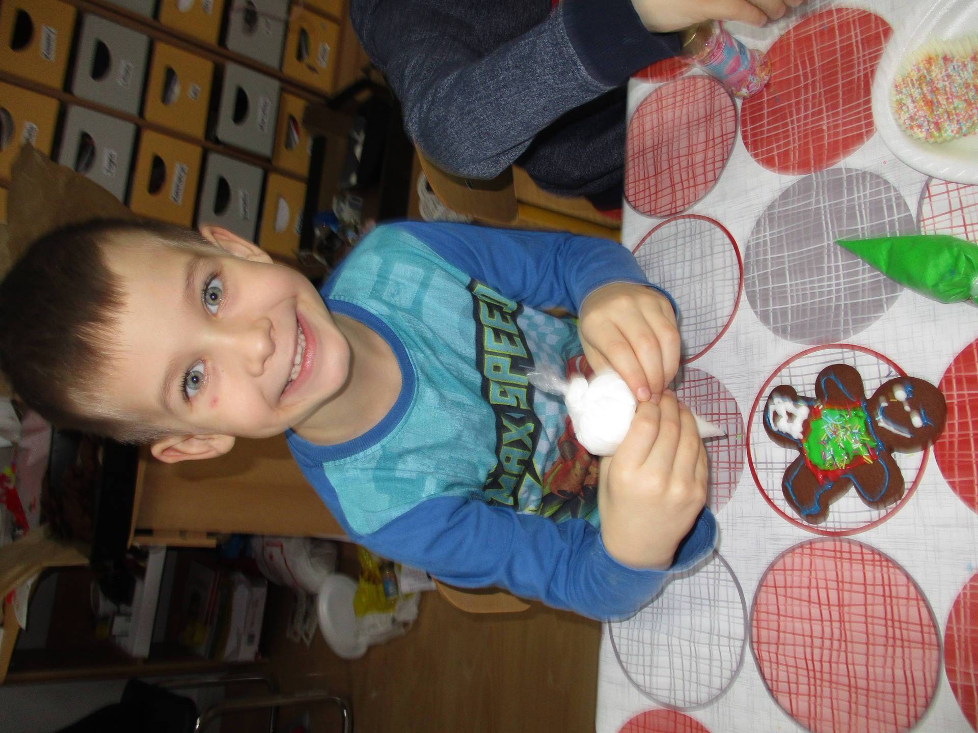 16 grudnia dla 6-latków był bardzo pracowity, bowiem tego dnia piekły one pierniczki. Najpierw odpowiednio się przygotowały dbając o czyste rączki oraz zakładając fartuszki. Poznały też składniki i sposób wykonania ciasta, potrzebne przybory kuchenne a także zasady bezpieczeństwa. Gdy wszystko było gotowe przedszkolaki z ogromnym zapałem i zaangażowaniem zabrały się do pracy – wałkowały ciasto, wykrawały ciasteczka. Efektem naszej pracy były pełne blaszki pierniczków, które zanieśliśmy do kuchni. Tu pod czujnym okiem naszych pań kuchareczek pierniki nabierały koloru piekąc się w piekarniku.