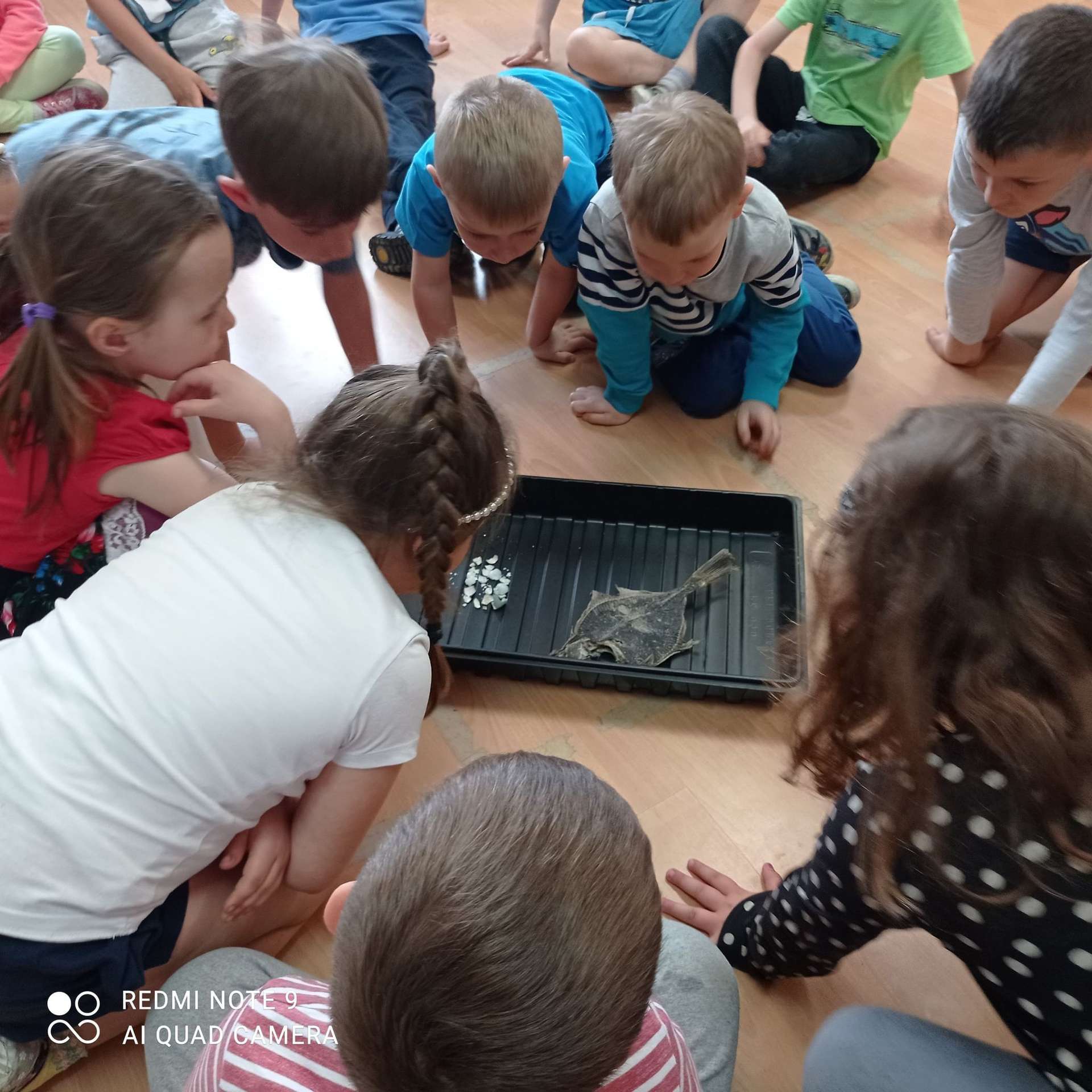 Skarby zostały znalezione na plaży kamienistej w Jarosławcu oraz w ogrodzie p. Patrycji. Przy okazji rozmowa na temat ochrony dzikich zwierząt.