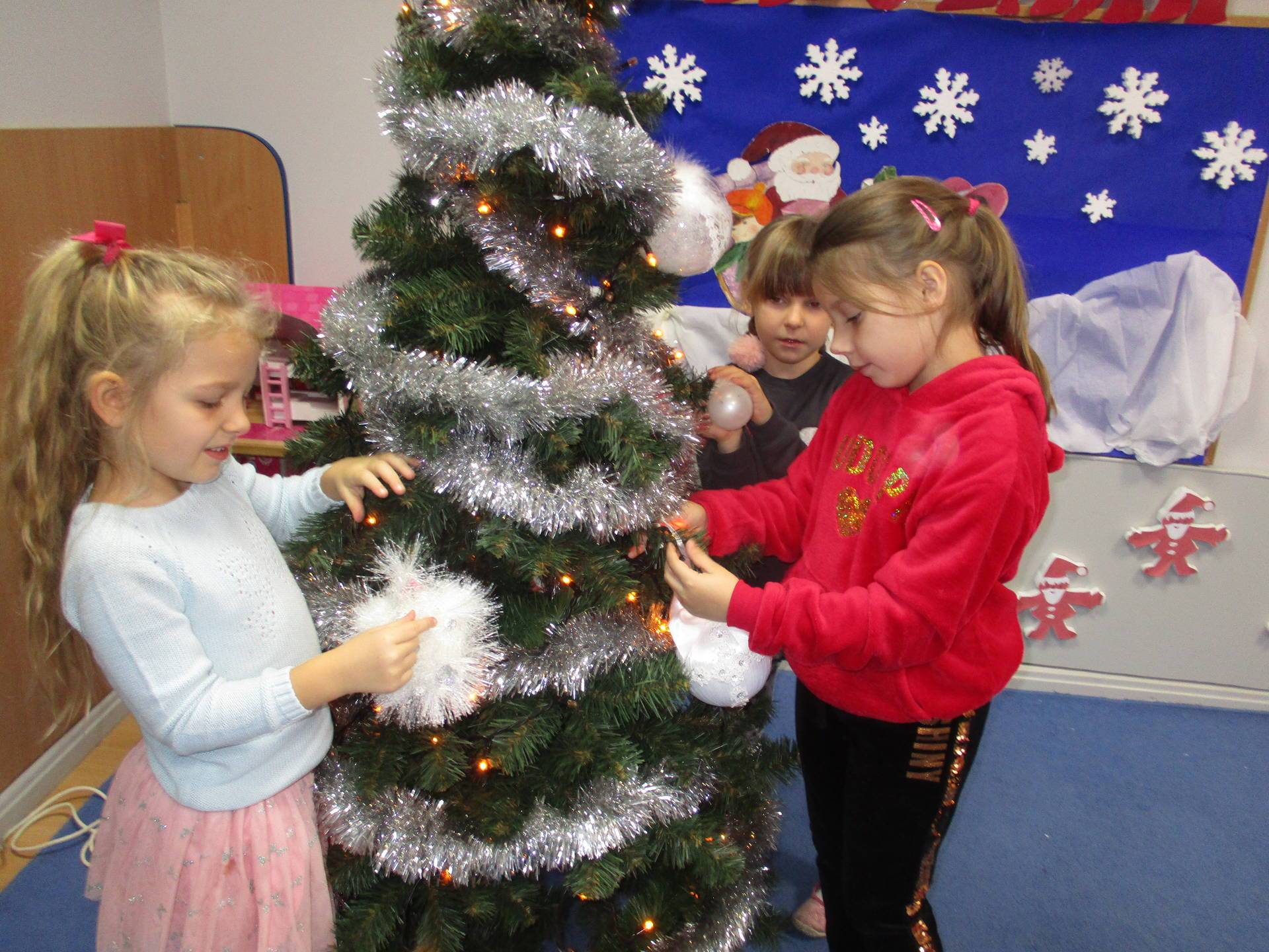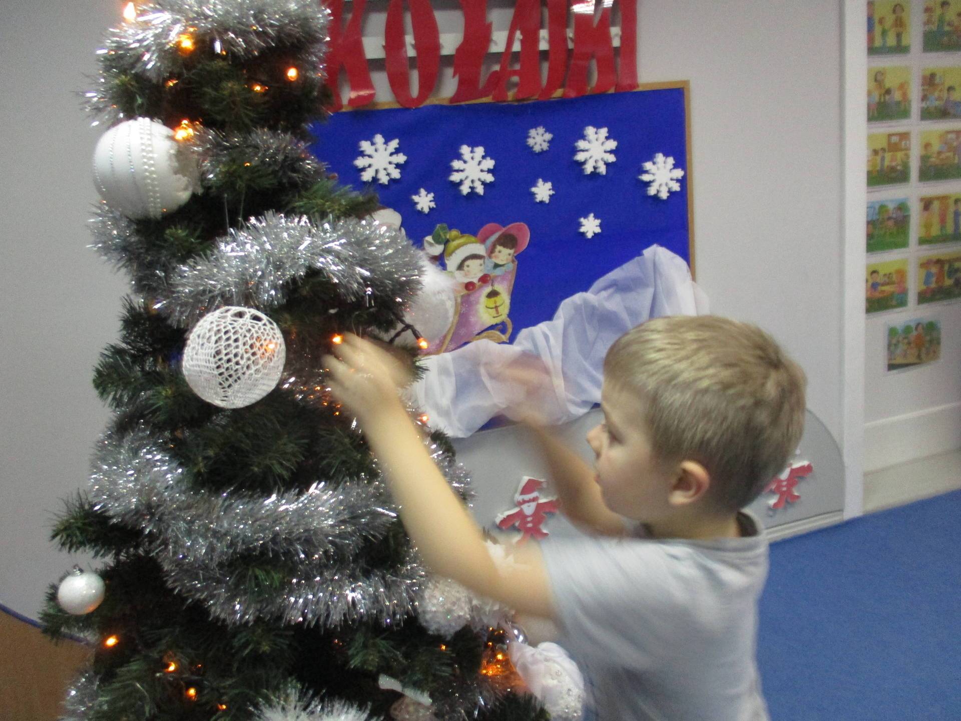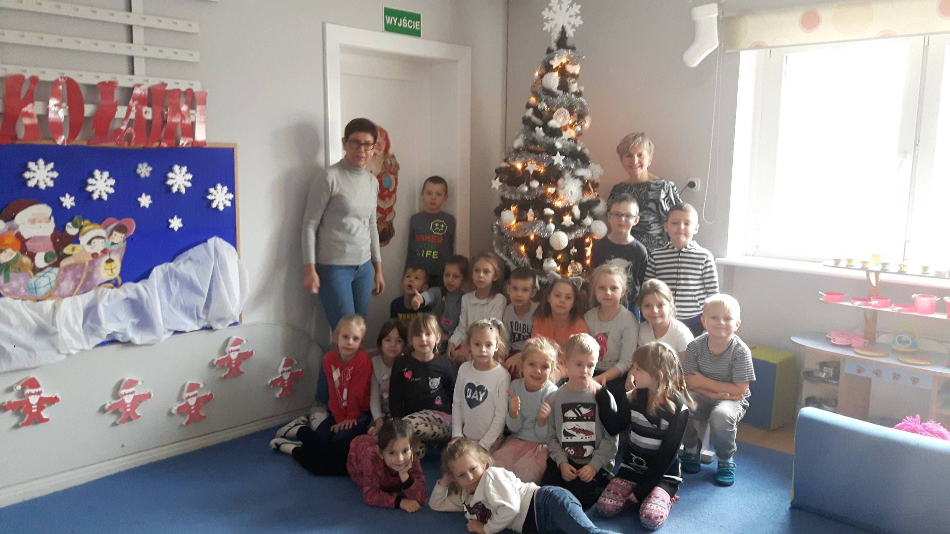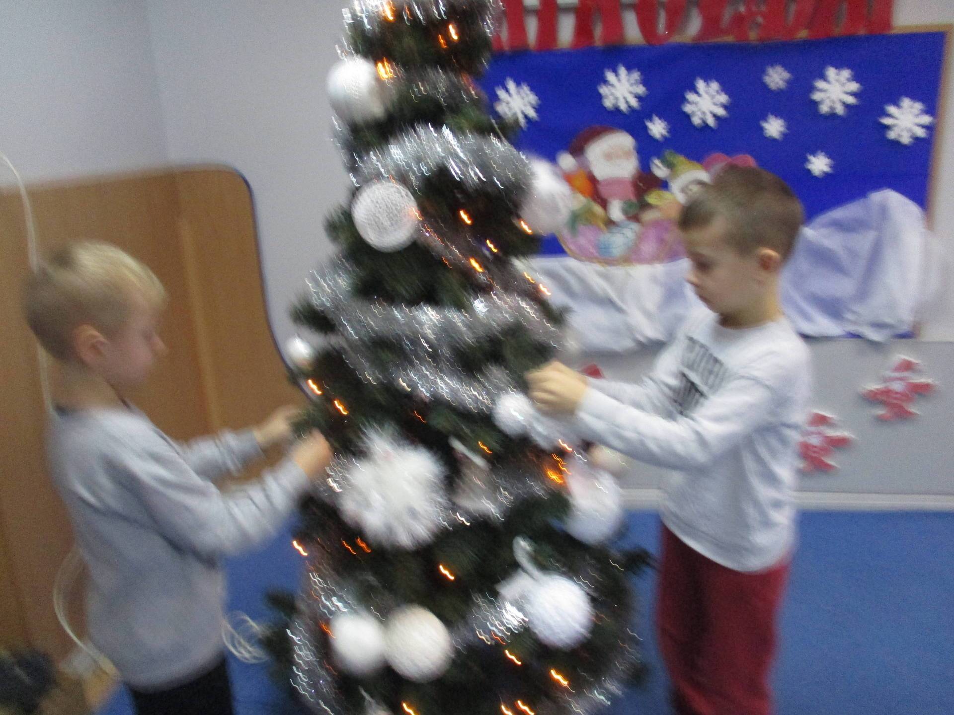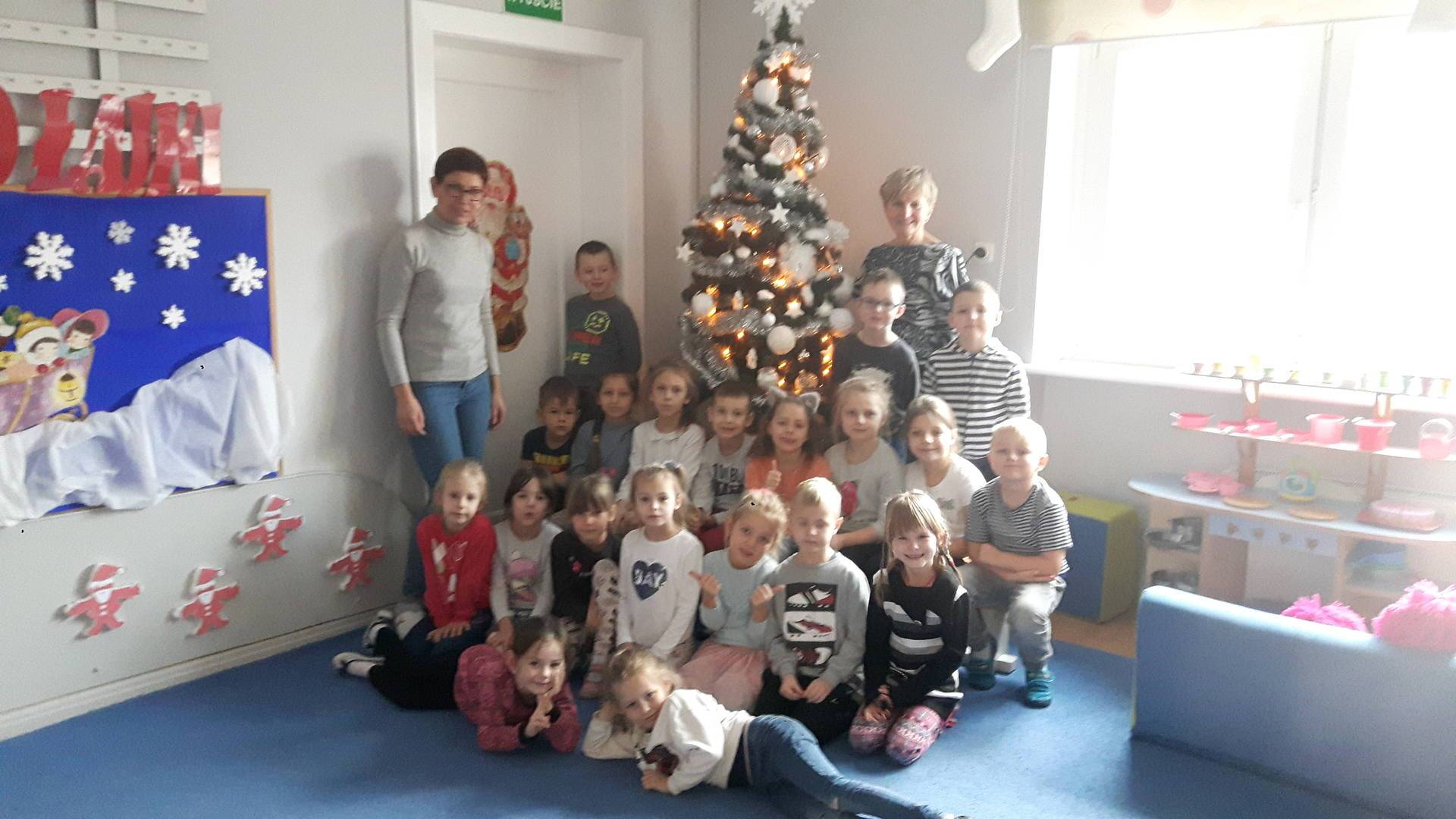 Zbliżają się święta Bożego Narodzenia a ich głównym symbolem jest choinka. I również w przedszkolu ją ubieraliśmy. Bombki, łańcuchy i lampki, każde dziecko chciało pomóc i z radością ozdabiało nasze grupowe drzewko.