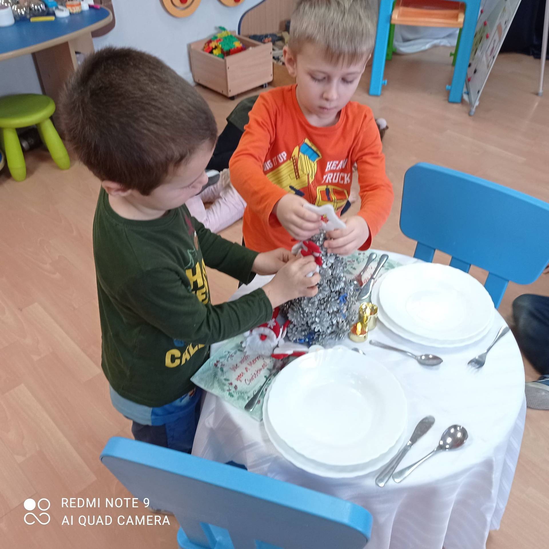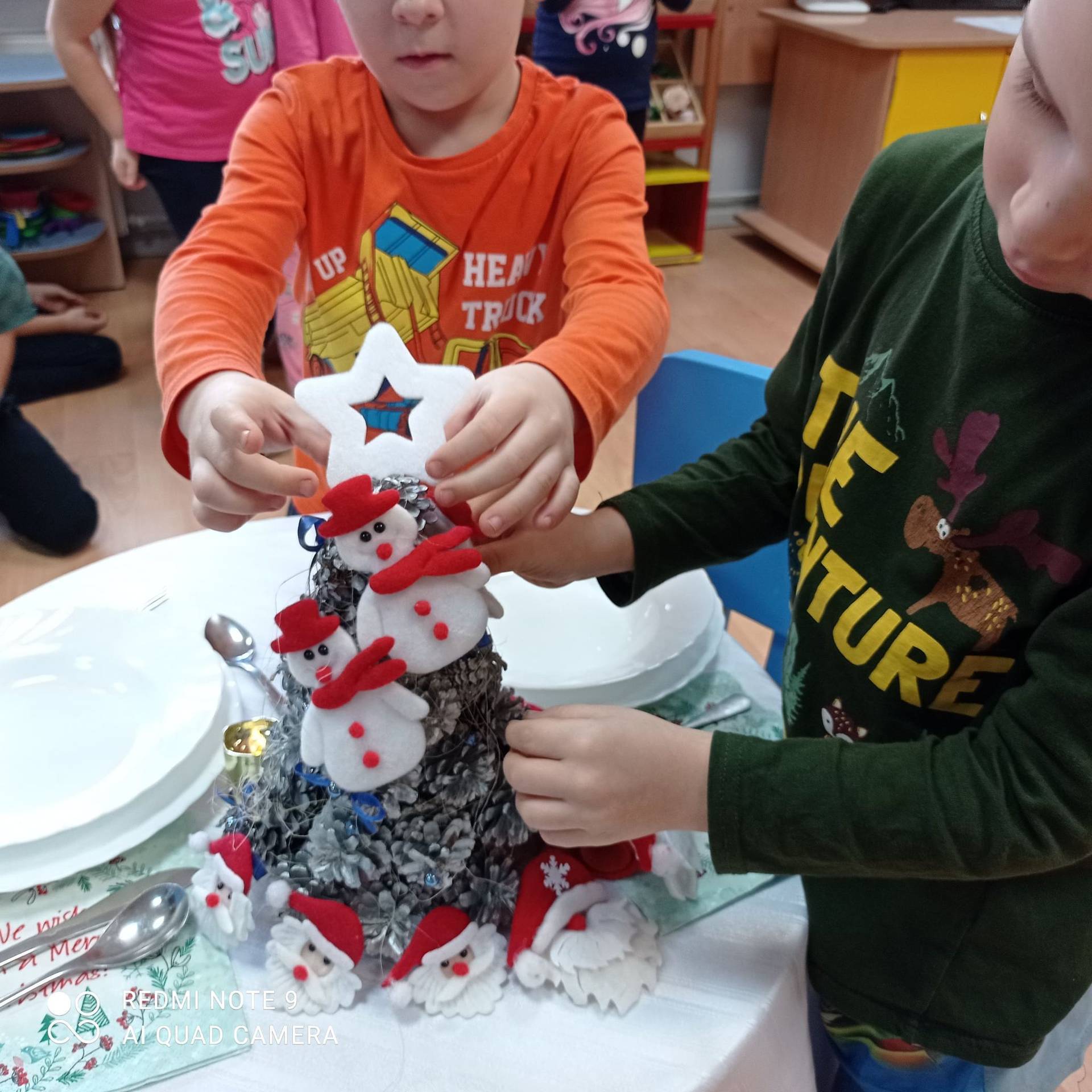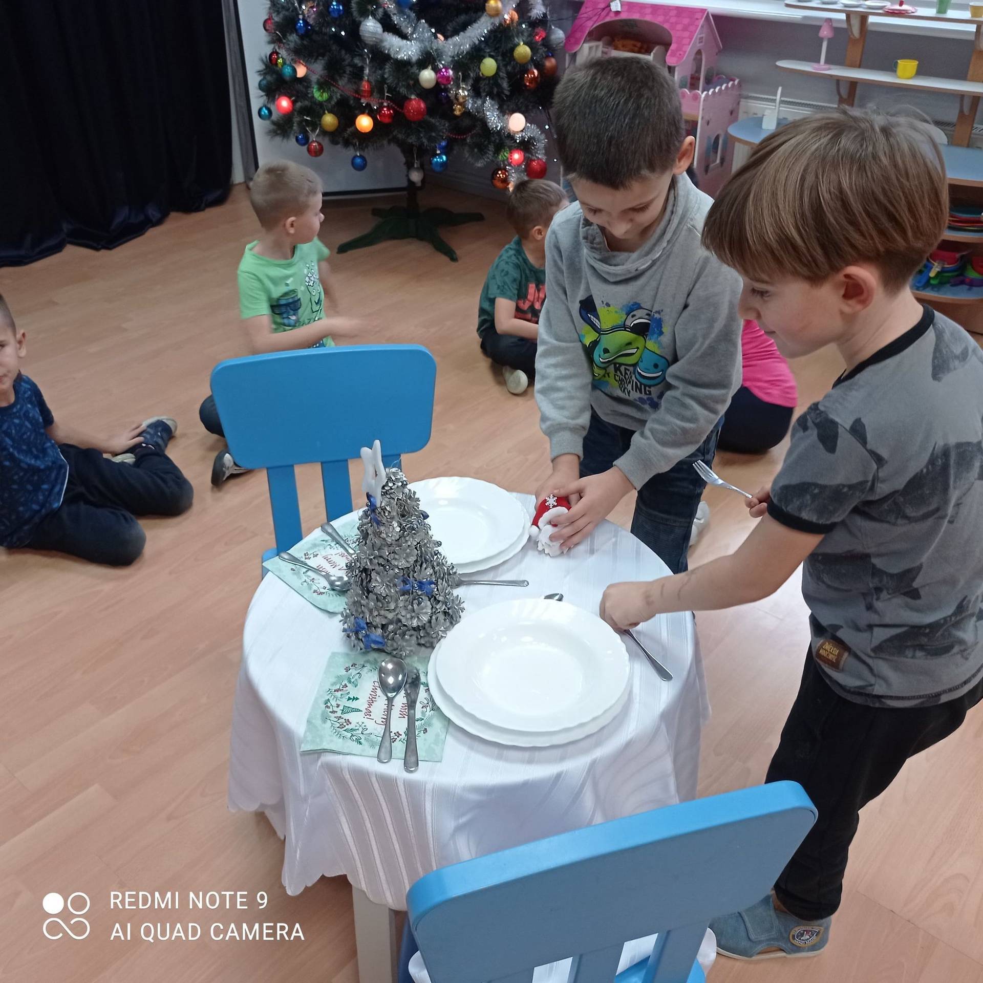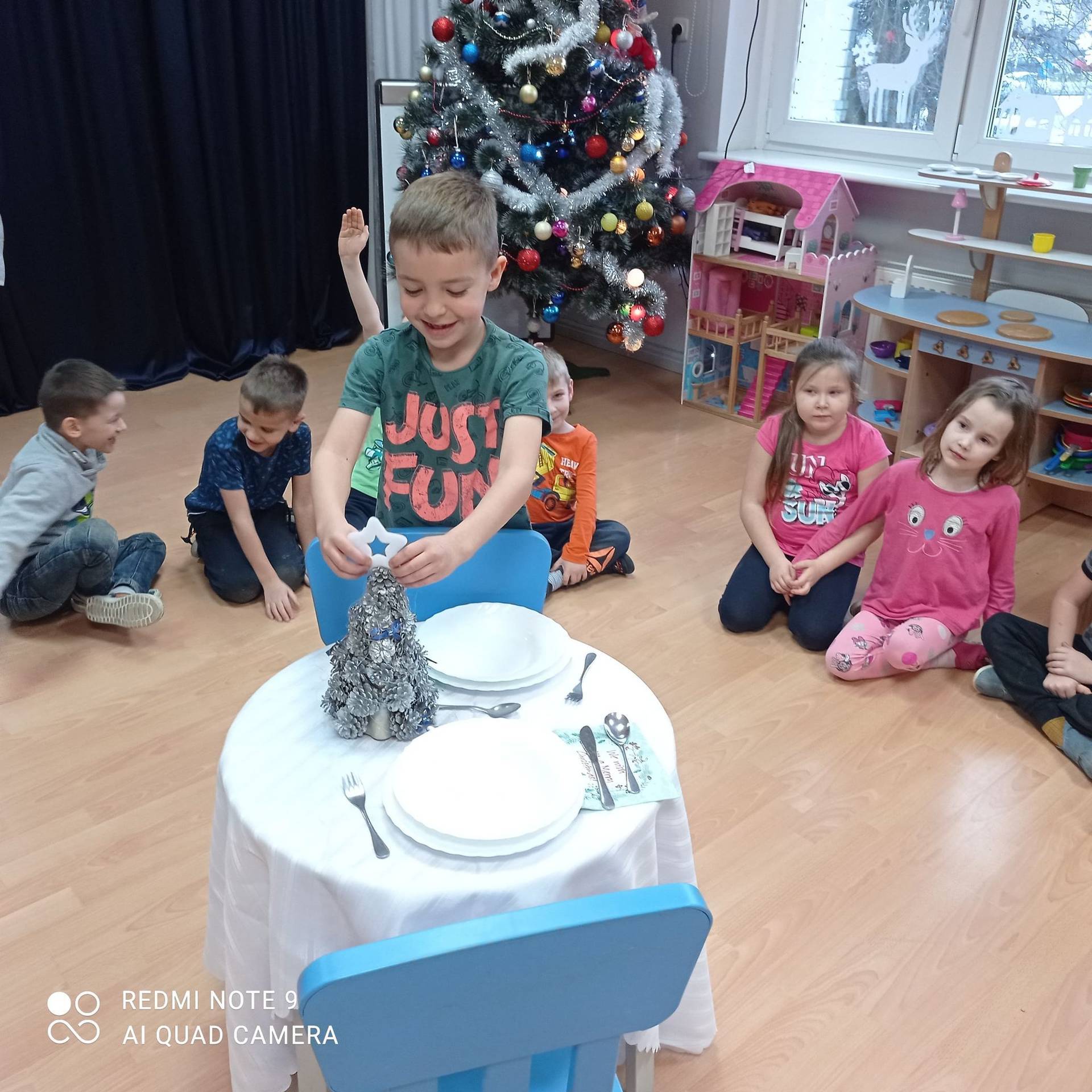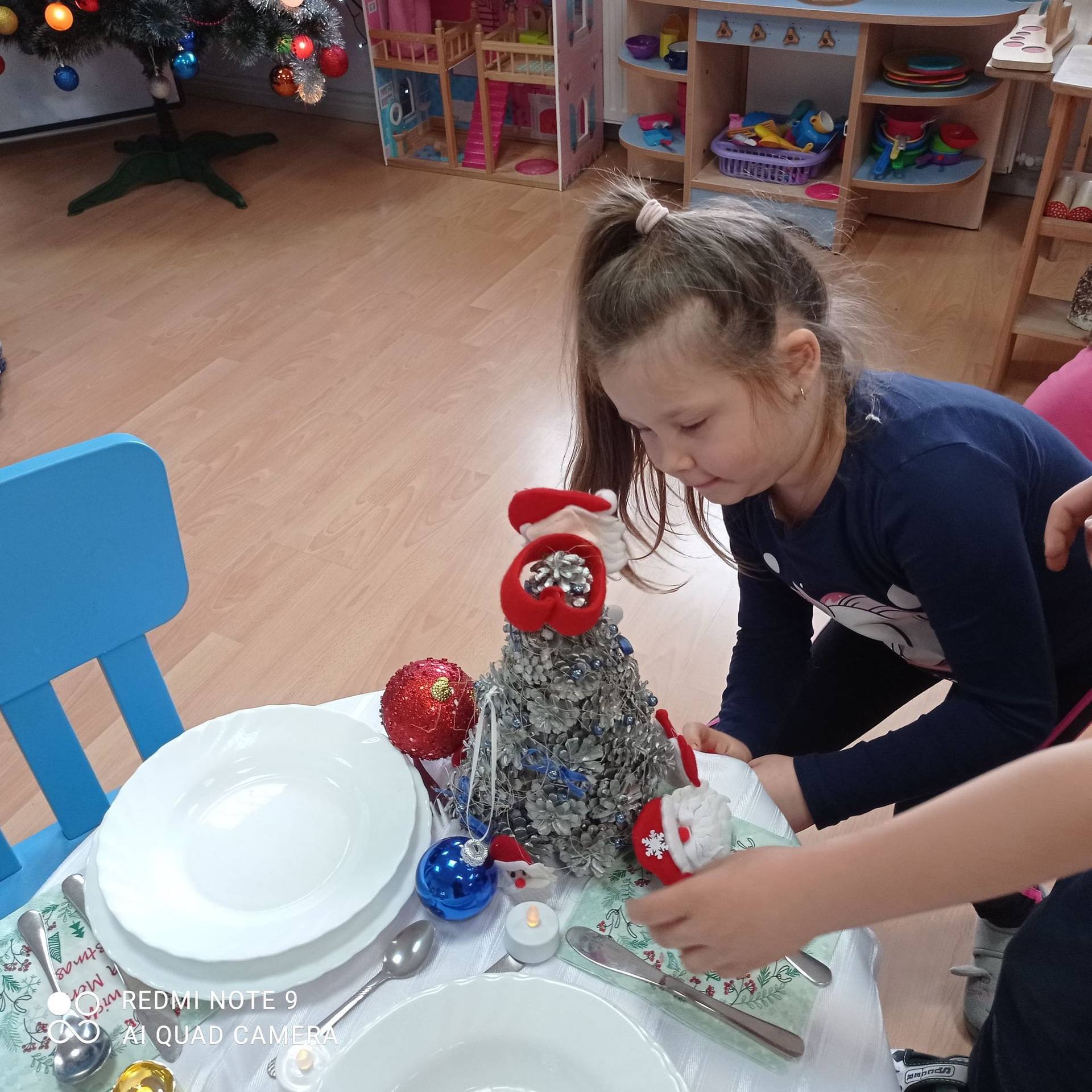 Dzieci uczyły się w jaki sposób prawidłowo ułożyć naczynia i sztućce na stole. Każde dziecko miało okazję samo nakryć do stołu i przekonały się, że to wcale nie jest takie proste. Przedszkolaki chętnie angażują się w zadania, które same muszą wykonać. Daje im to wiele radości i ogromną satysfakcję. Dodatkowo dzieci uczyły się składania serwetki na Wigilijny stół.