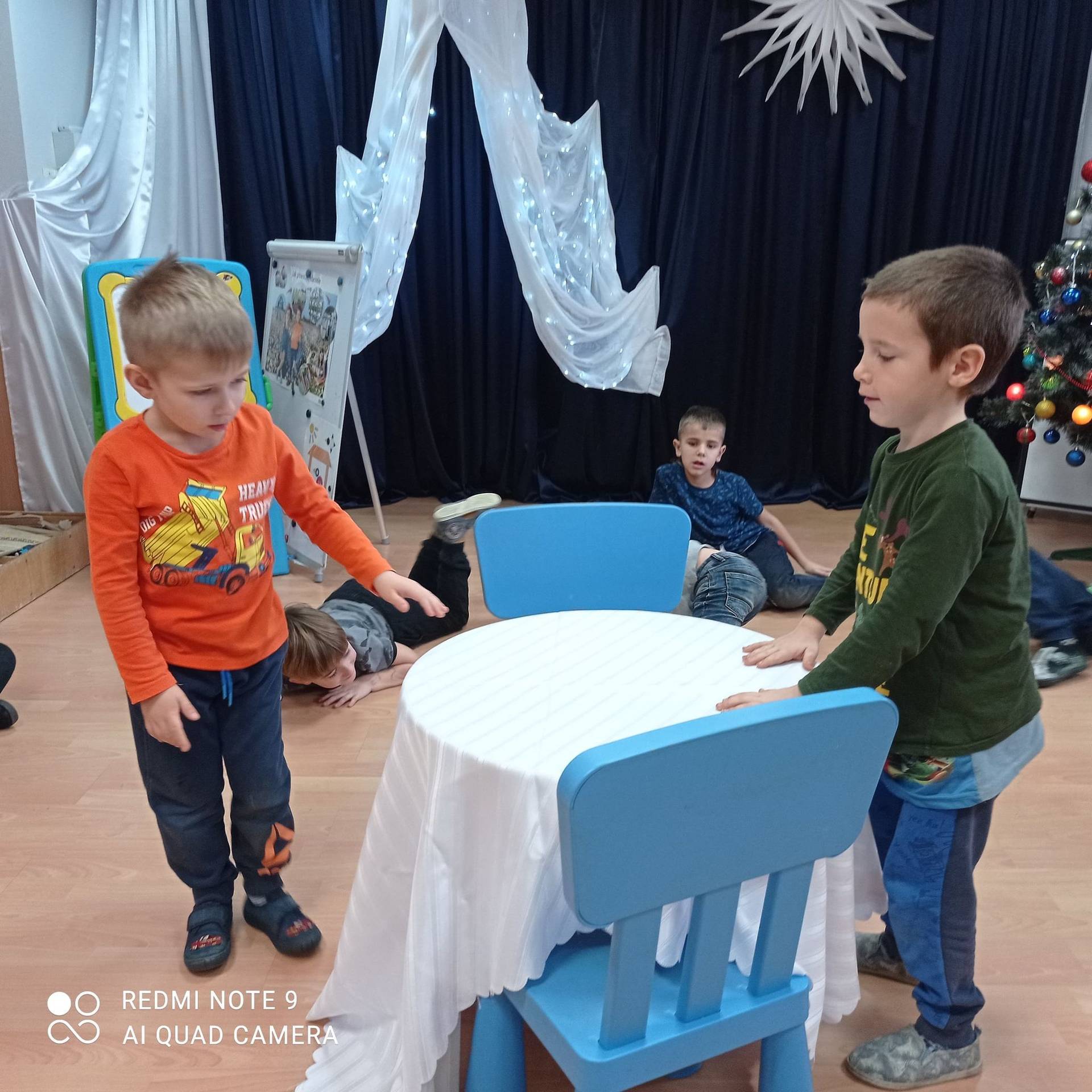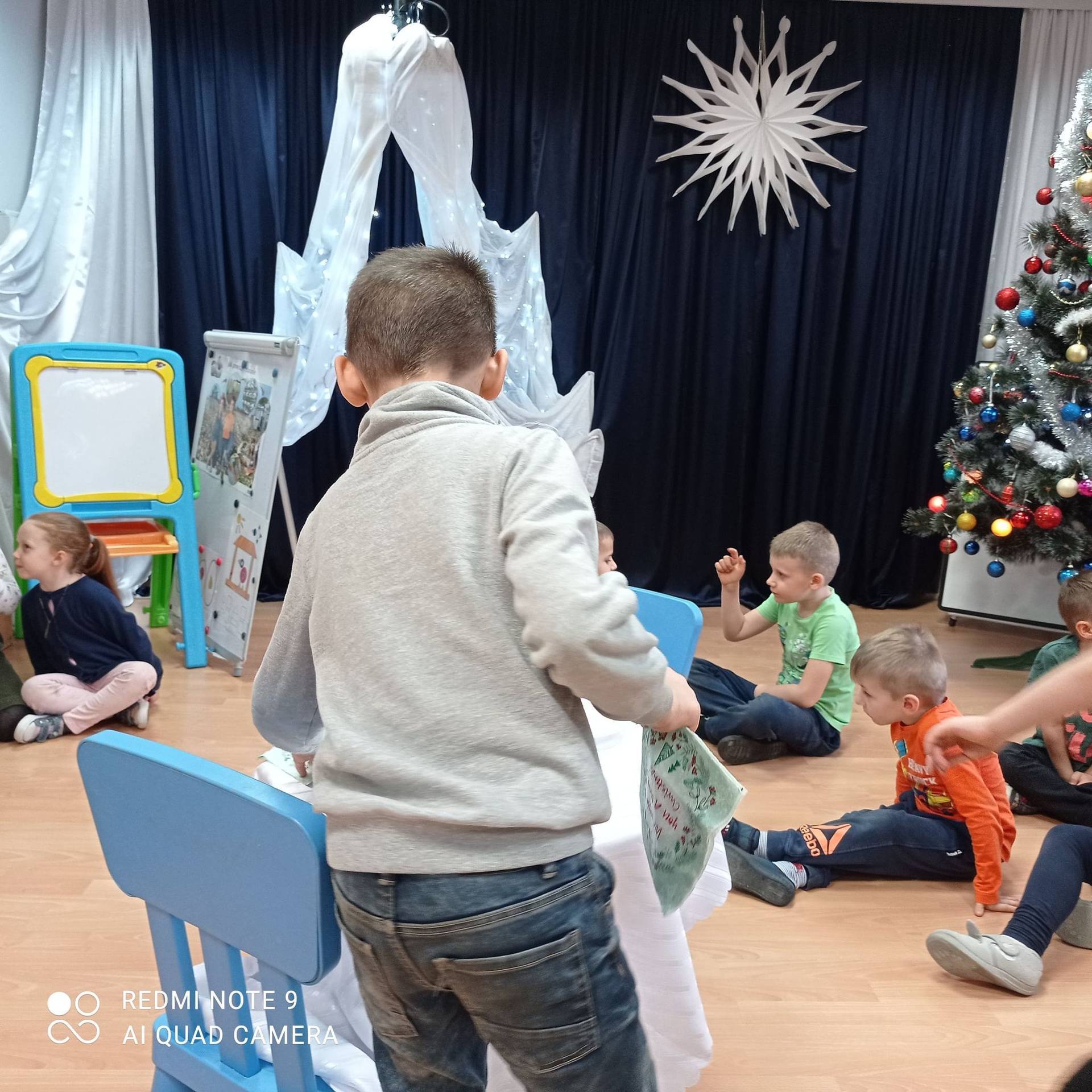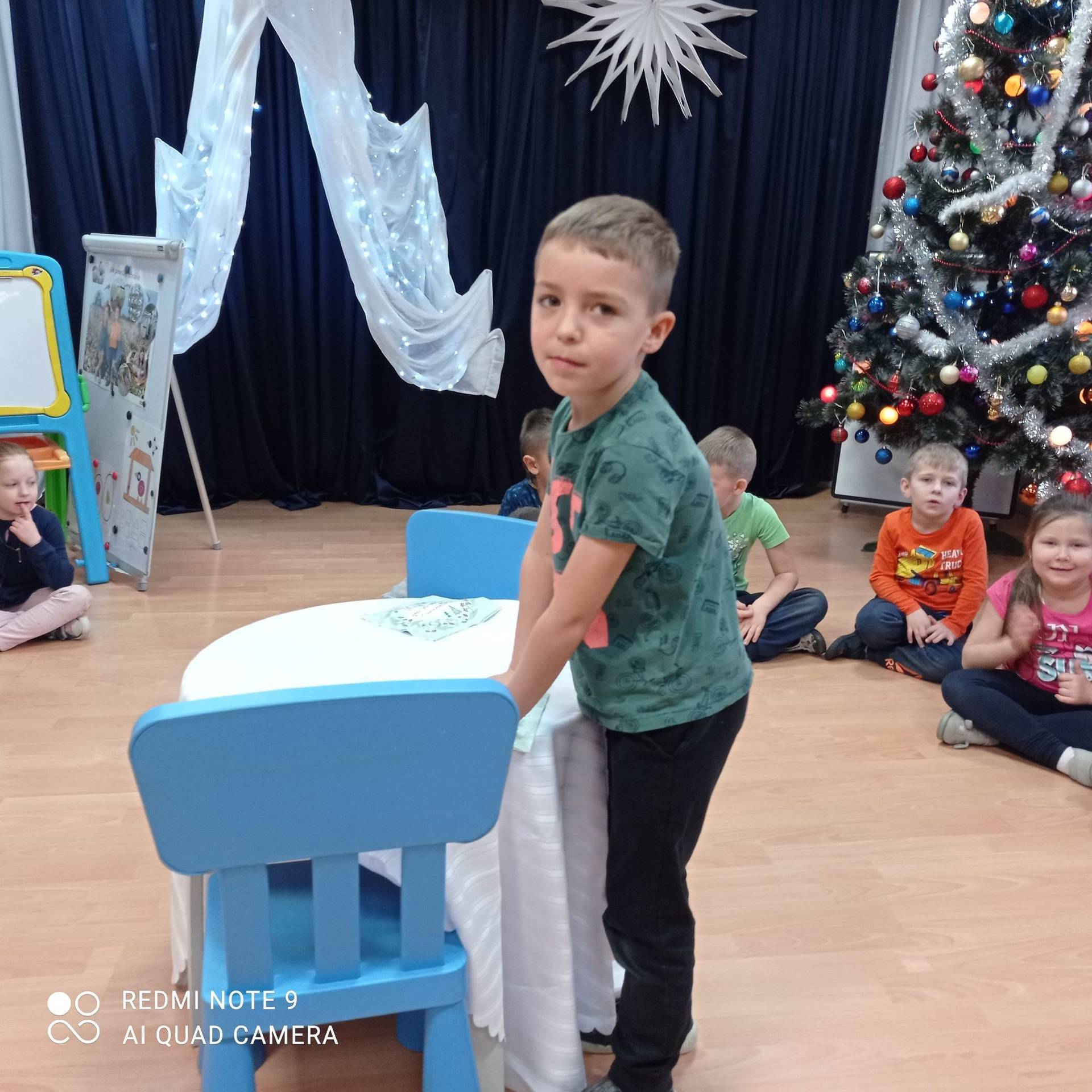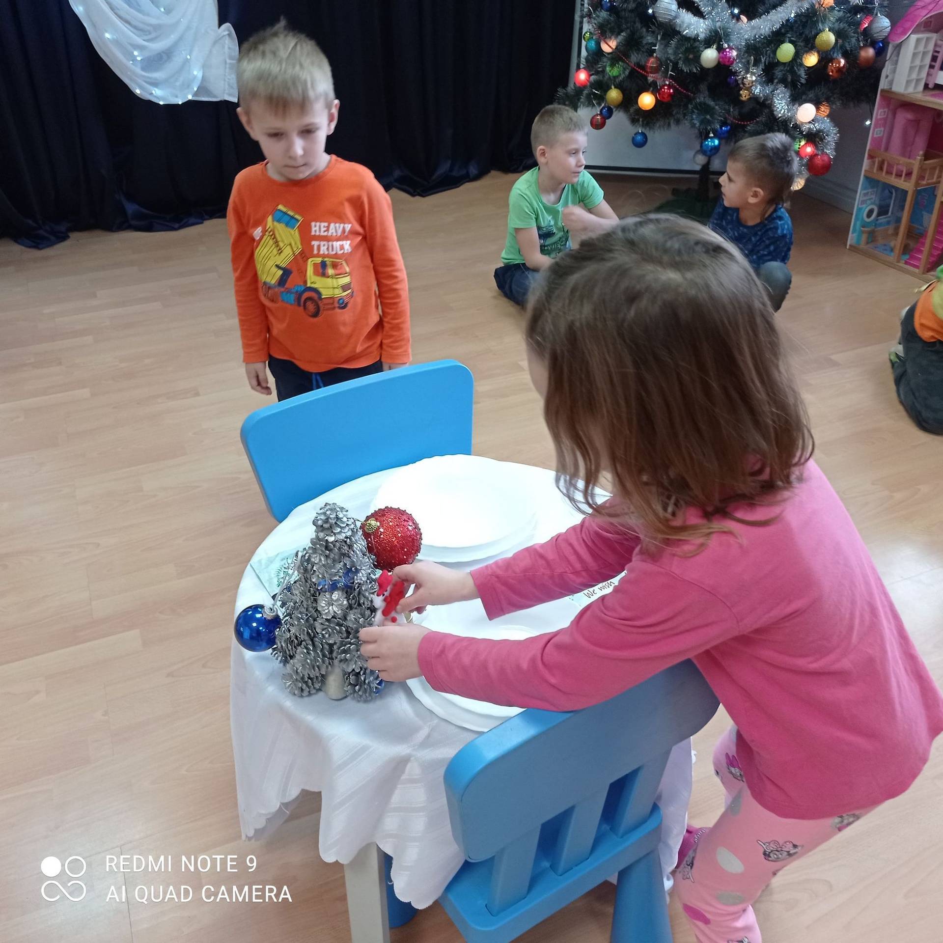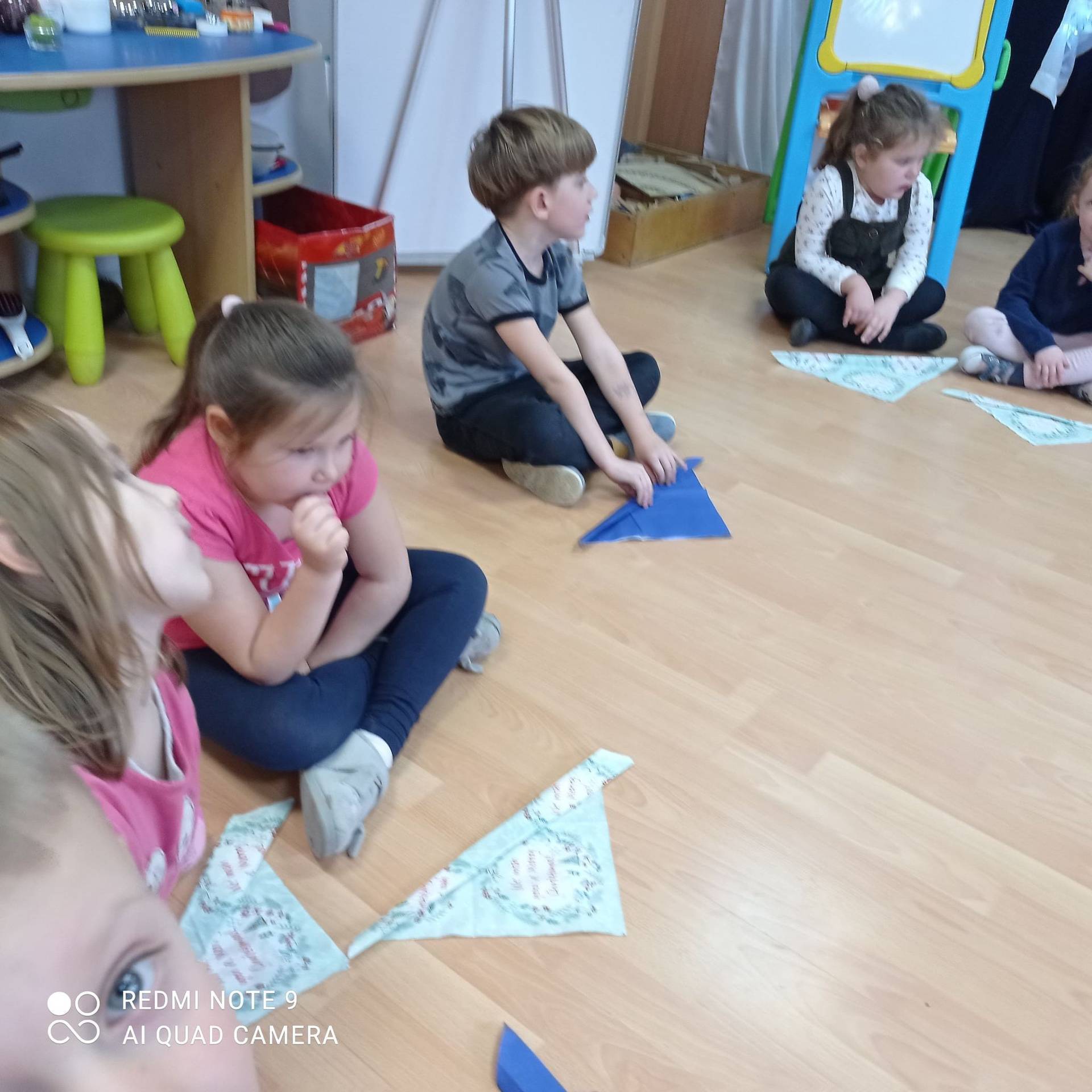Dzieci uczyły się w jaki sposób prawidłowo ułożyć naczynia i sztućce na stole. Każde dziecko miało okazję samo nakryć do stołu i przekonały się, że to wcale nie jest takie proste. Przedszkolaki chętnie angażują się w zadania, które same muszą wykonać. Daje im to wiele radości i ogromną satysfakcję. Dodatkowo dzieci uczyły się składania serwetki na Wigilijny stół.