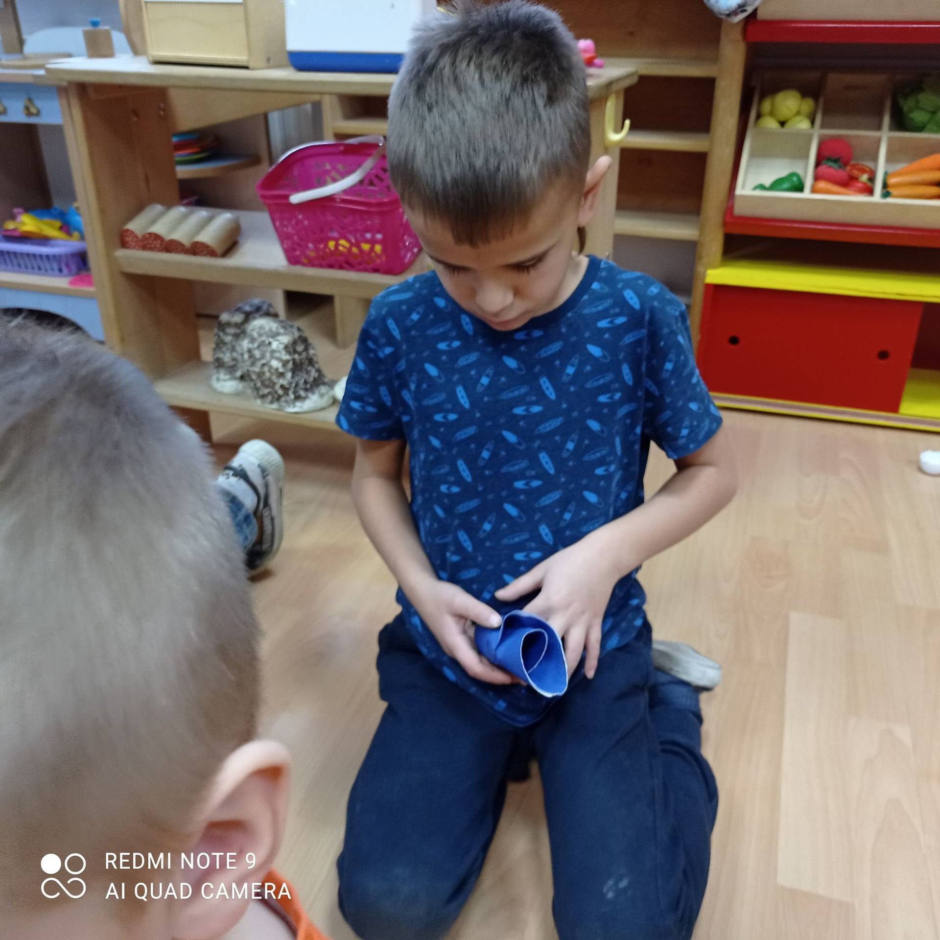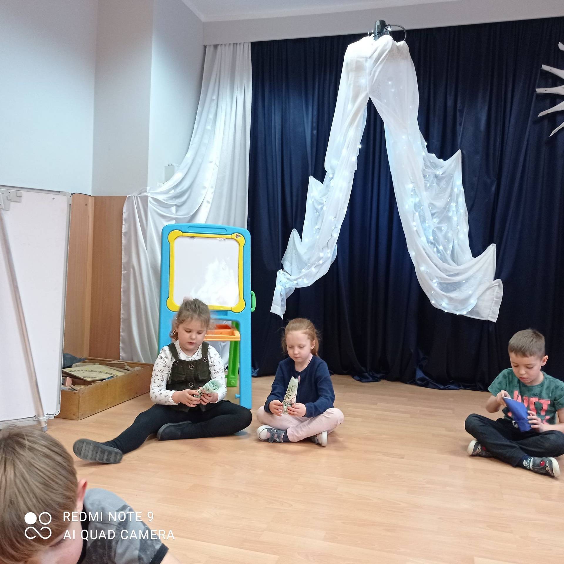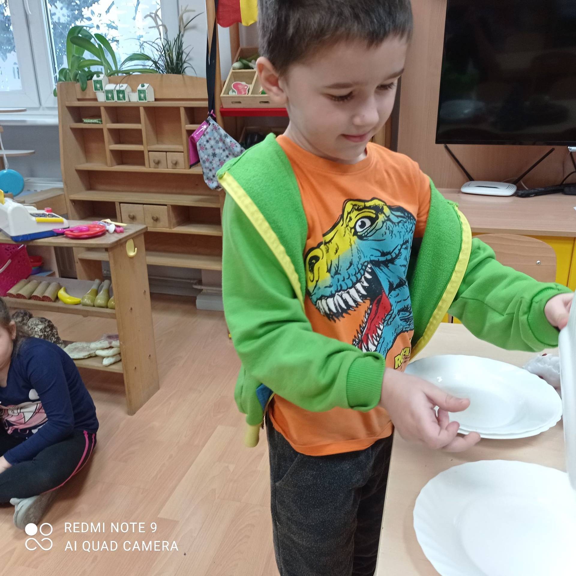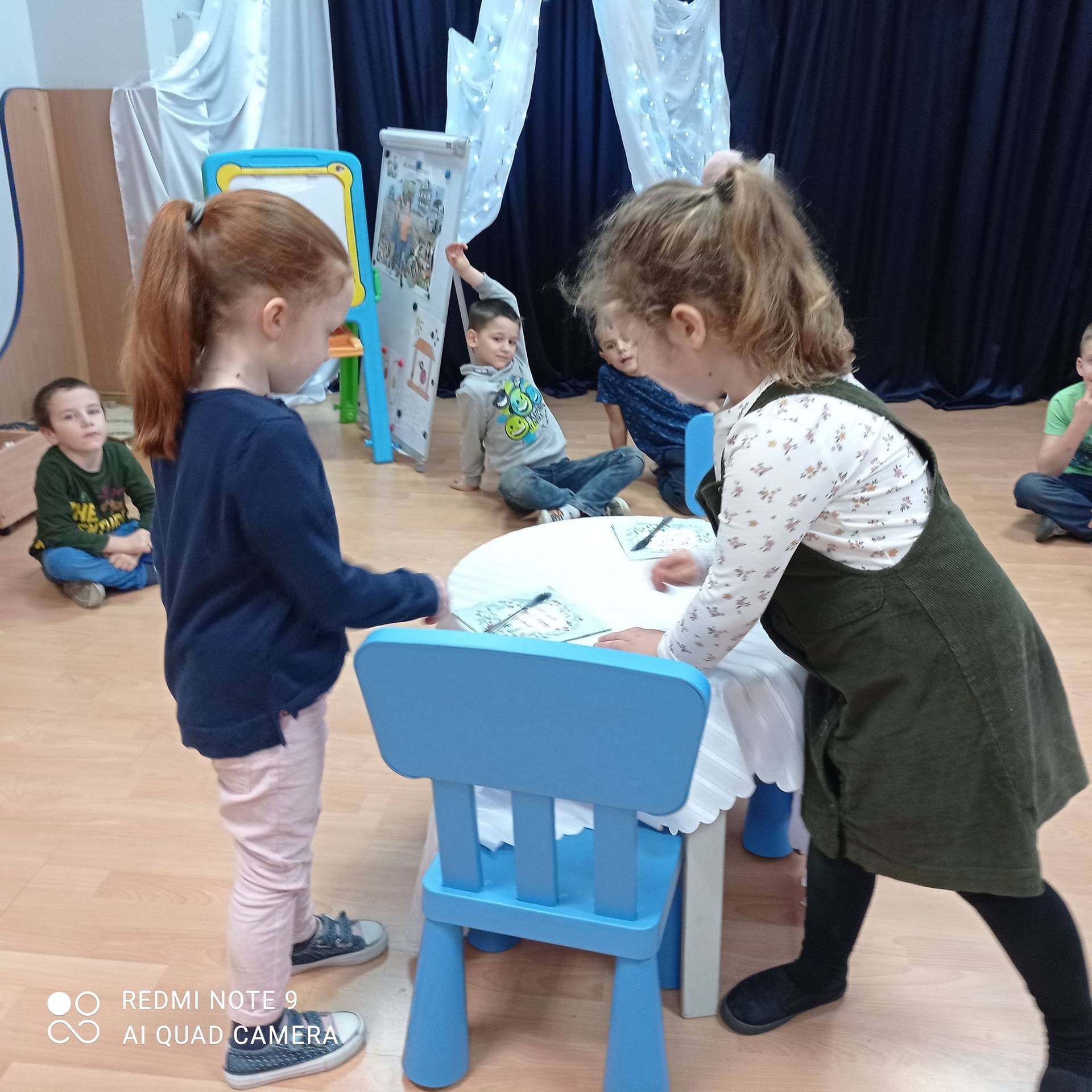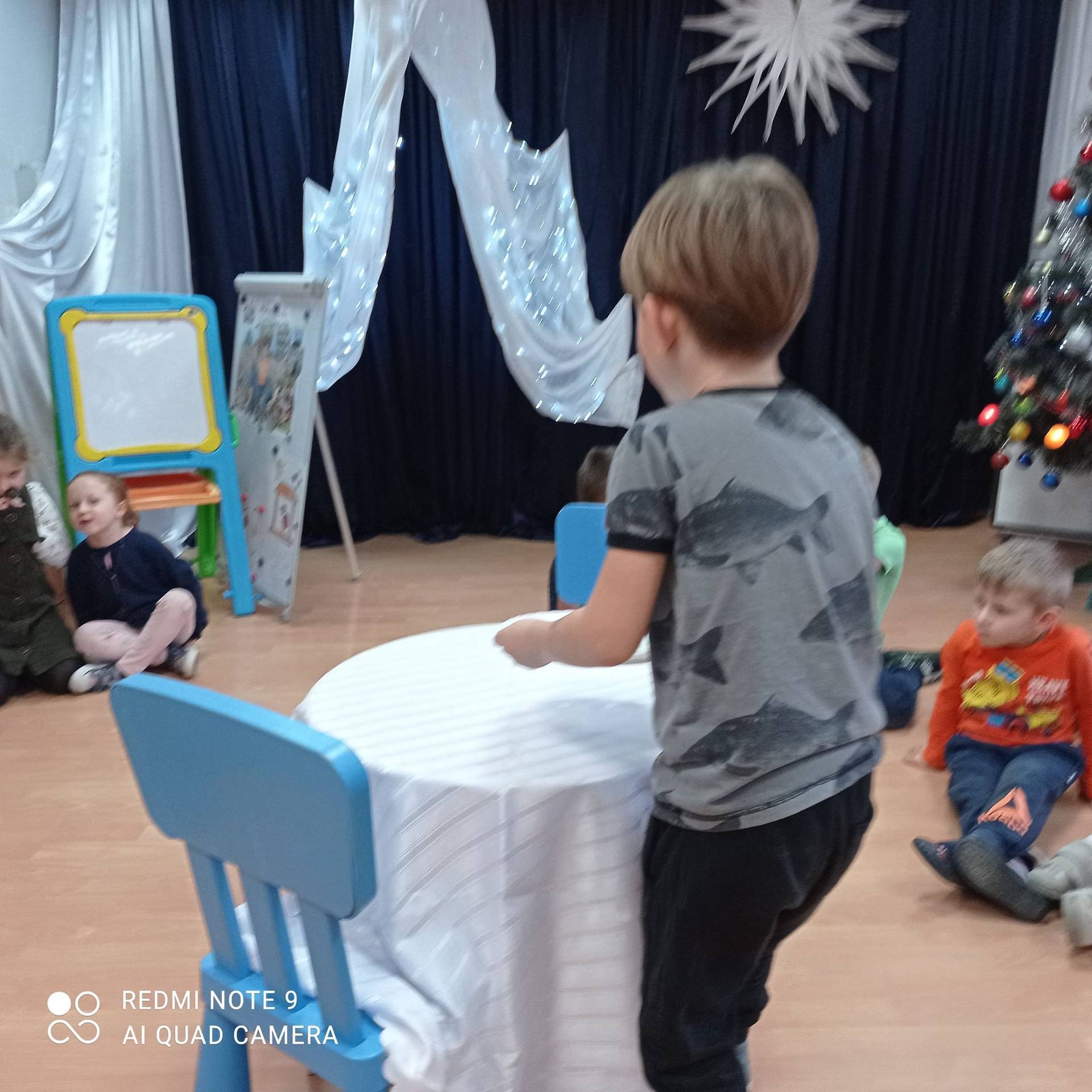 Dzieci uczyły się w jaki sposób prawidłowo ułożyć naczynia i sztućce na stole. Każde dziecko miało okazję samo nakryć do stołu i przekonały się, że to wcale nie jest takie proste. Przedszkolaki chętnie angażują się w zadania, które same muszą wykonać. Daje im to wiele radości i ogromną satysfakcję. Dodatkowo dzieci uczyły się składania serwetki na Wigilijny stół.