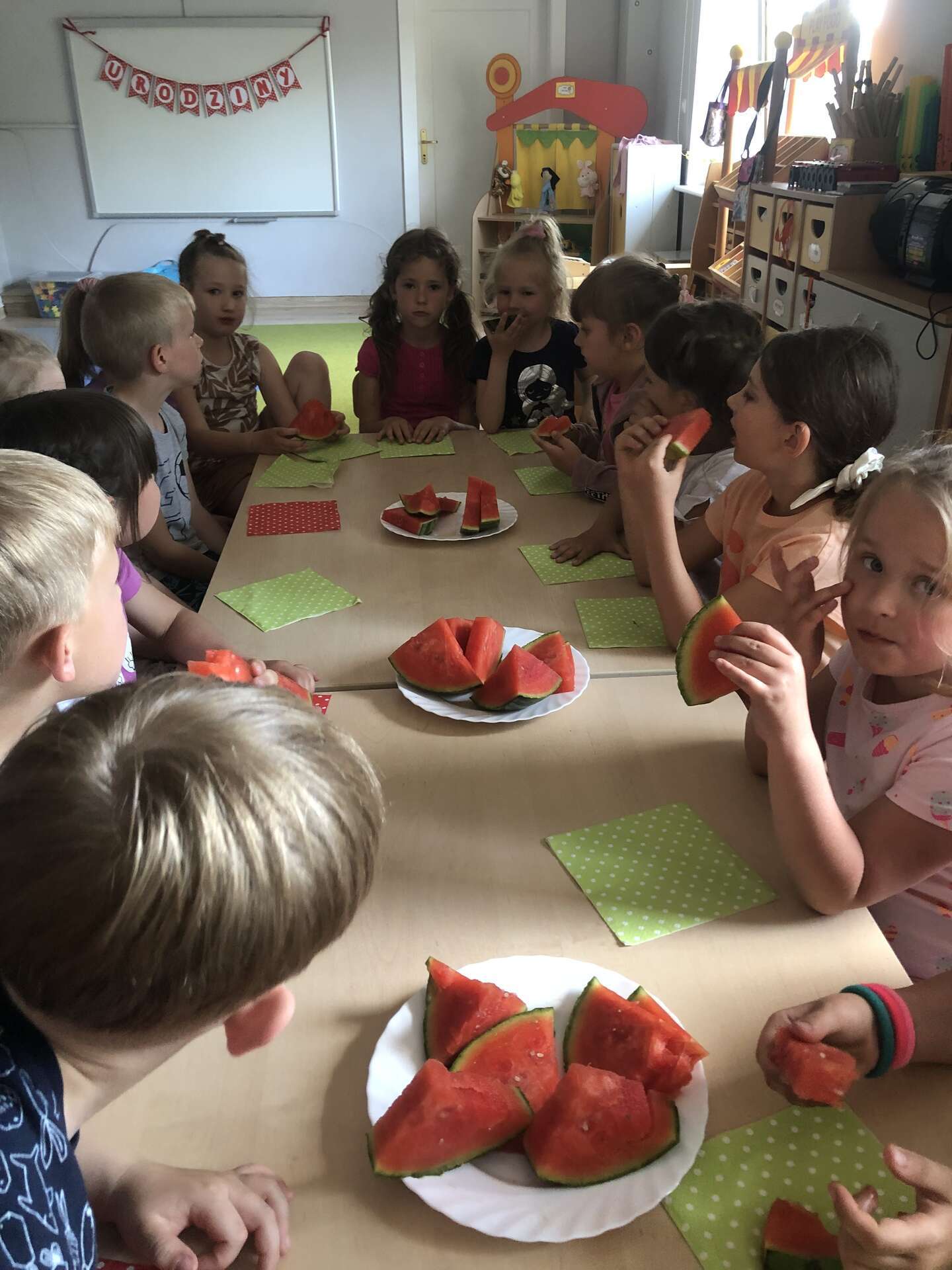 Dzieci śpiewają sto lat solenizantce