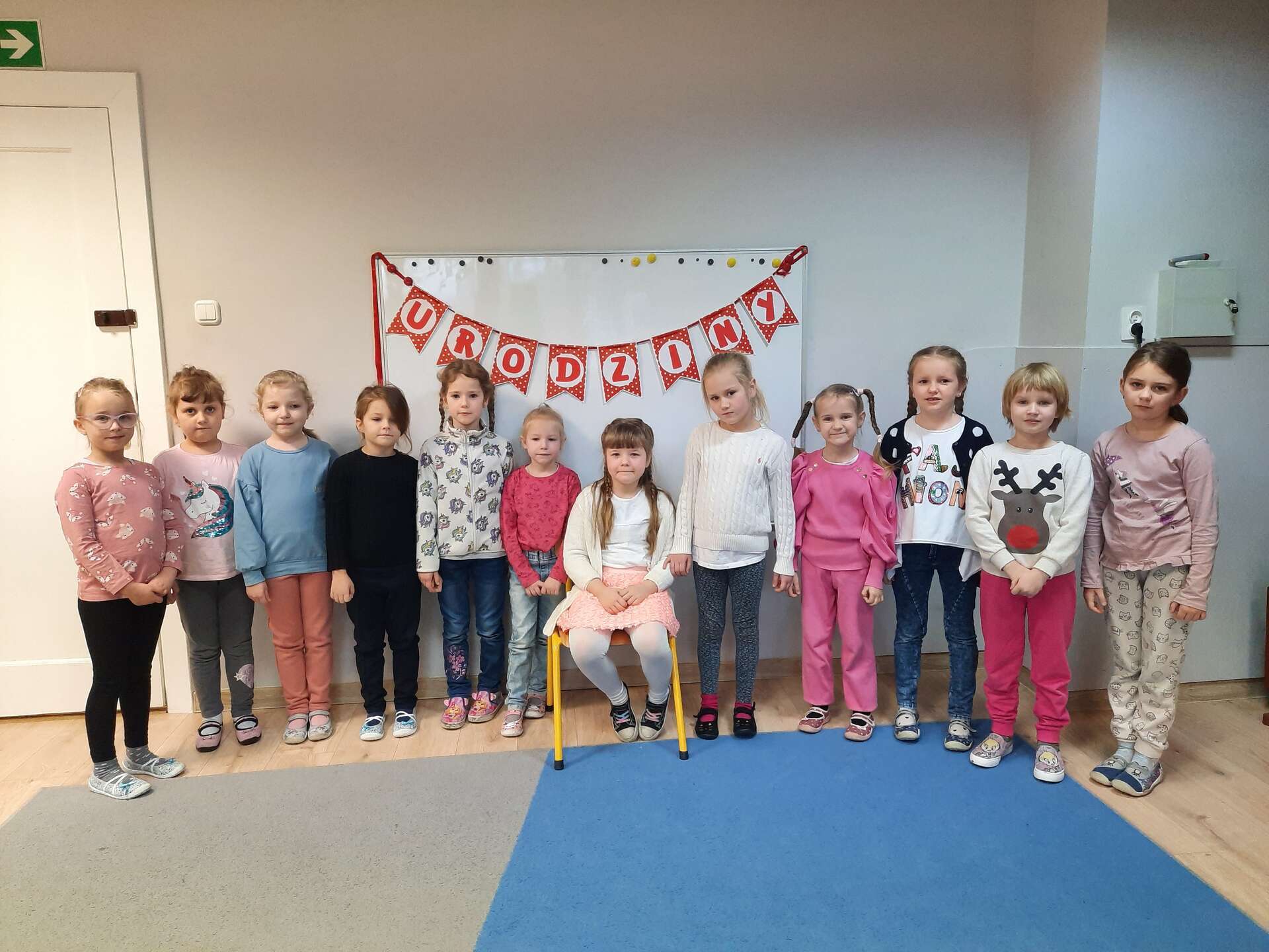Jubilatka z grupą dziewczynek