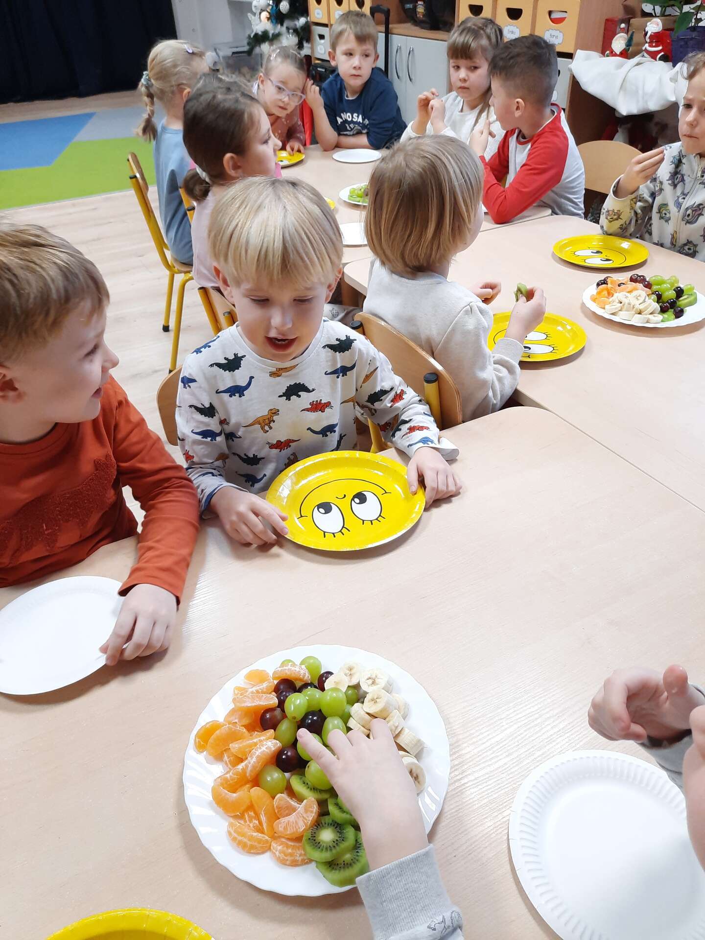Wspólne jedzenie owocowego poczęstunku
