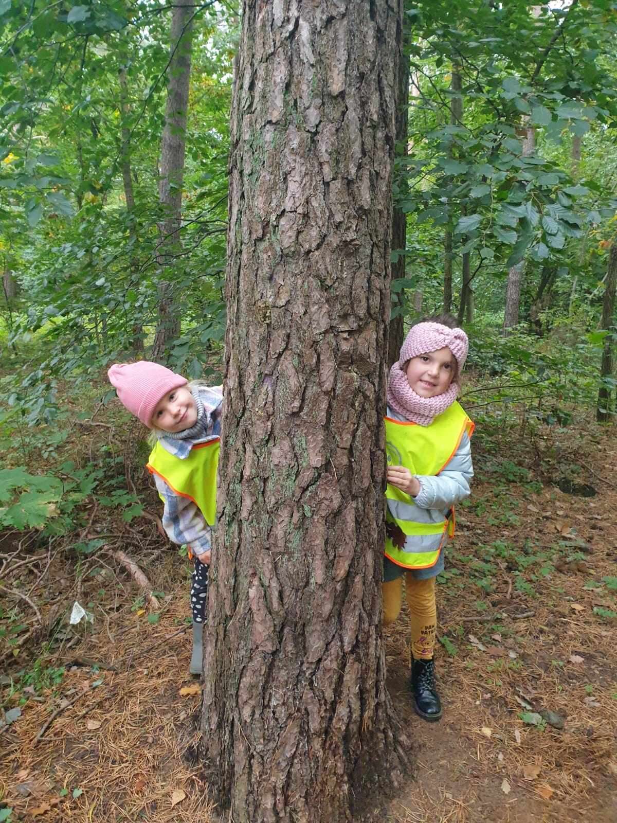 Dzieci w lesie przy drzewach