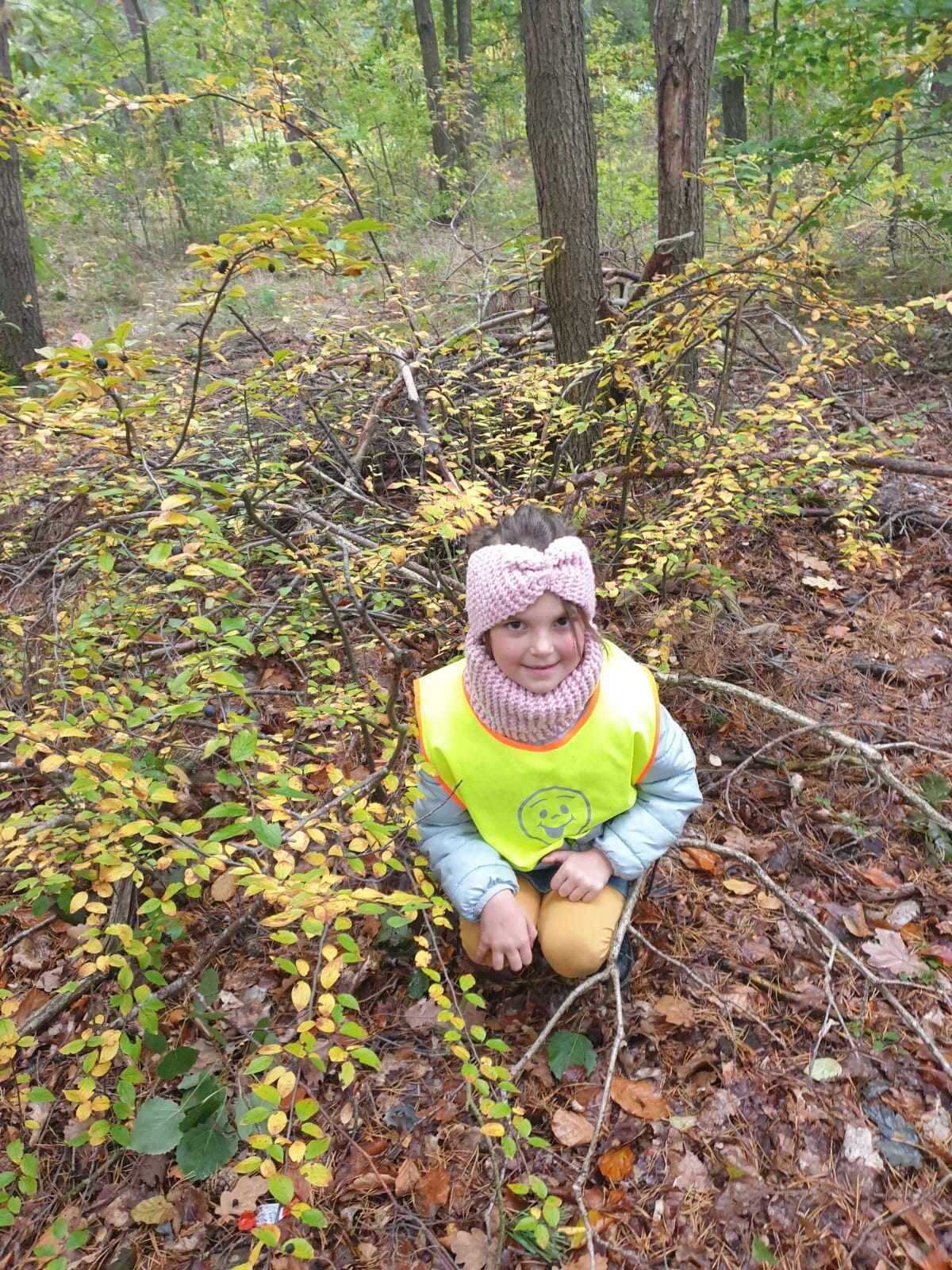 Dzieci w lesie przy krzewach