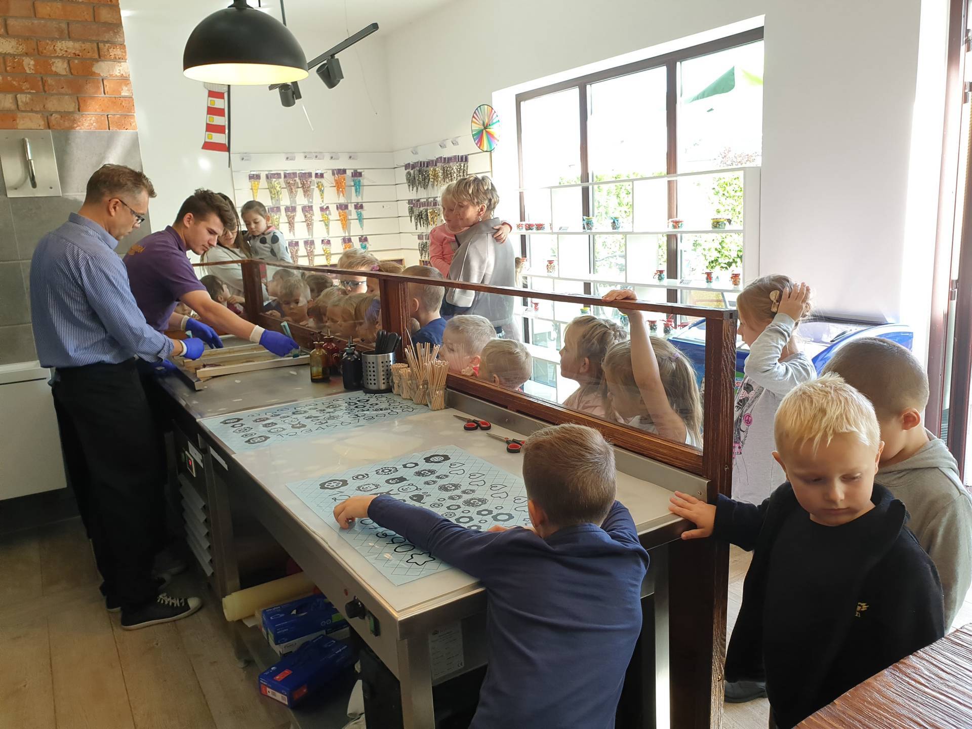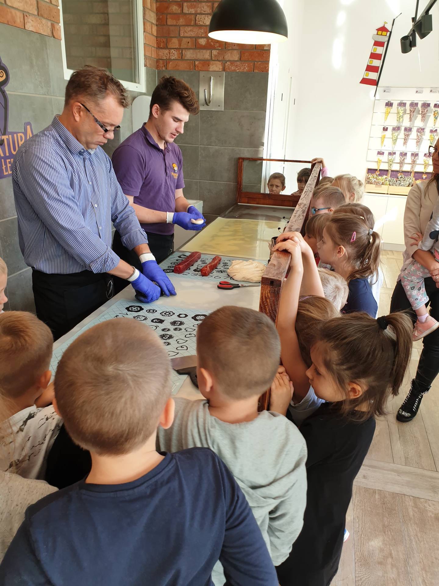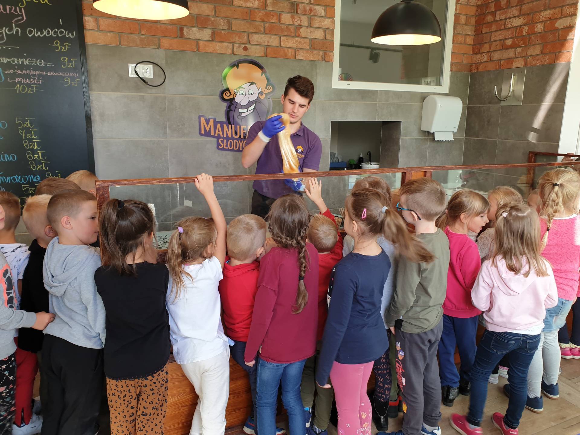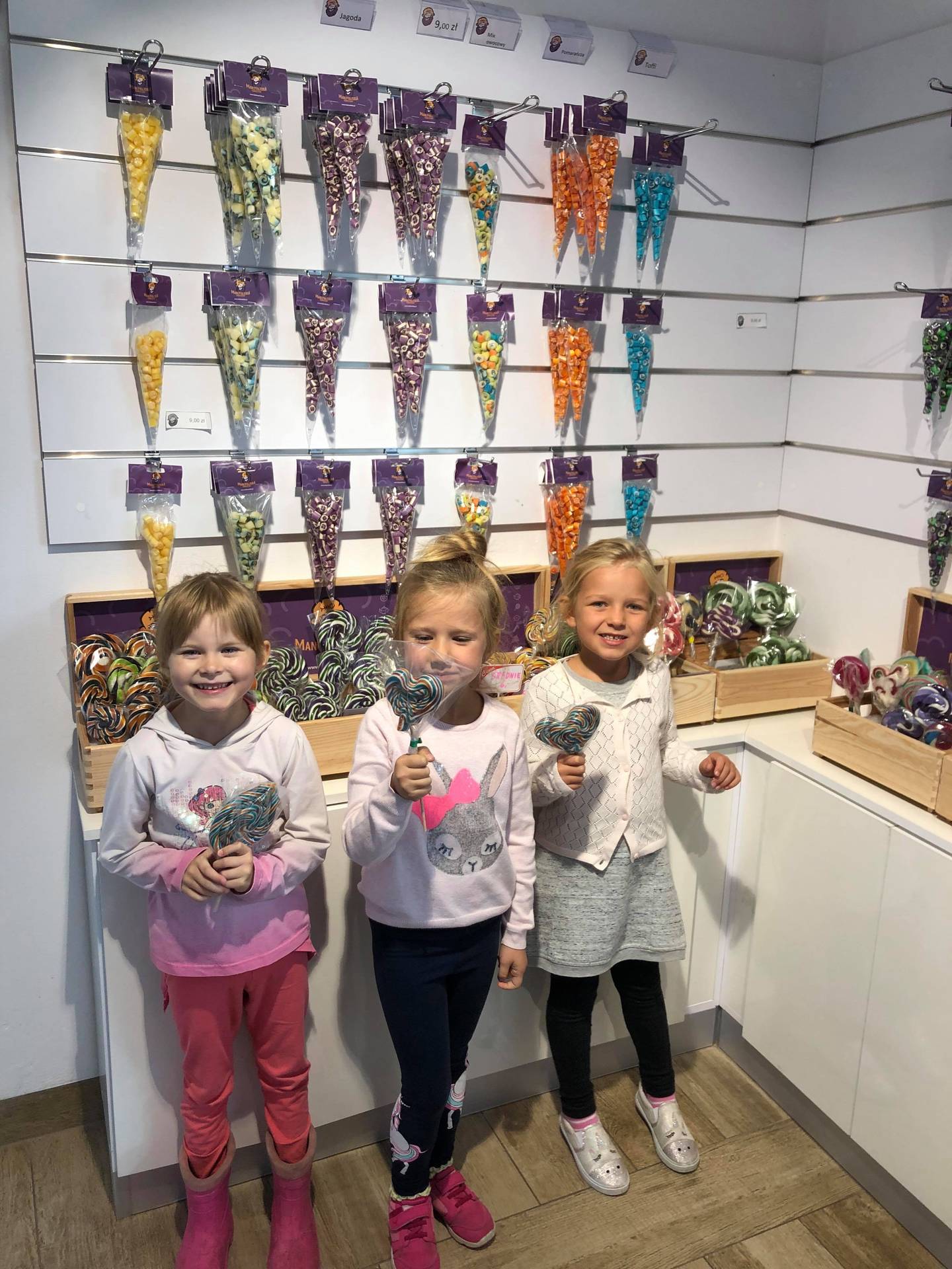 19 września 2019 nasze przedszkolaki spotkała niezwykła frajda, a mianowicie były na wycieczce w Manufakturze Słodyczy w Łebie. Miały okazję na żywo obserwować produkcję kolorowych cukierków i lizaków w przeróżnych smakach, a także samodzielnie przygotowały swoje lizaki. Do domu otrzymały też cukierkowe rożki. Uśmiechnięte i zadowolone wróciły do przedszkola, a w domu delektowały się smakiem cukierków i lizaków.