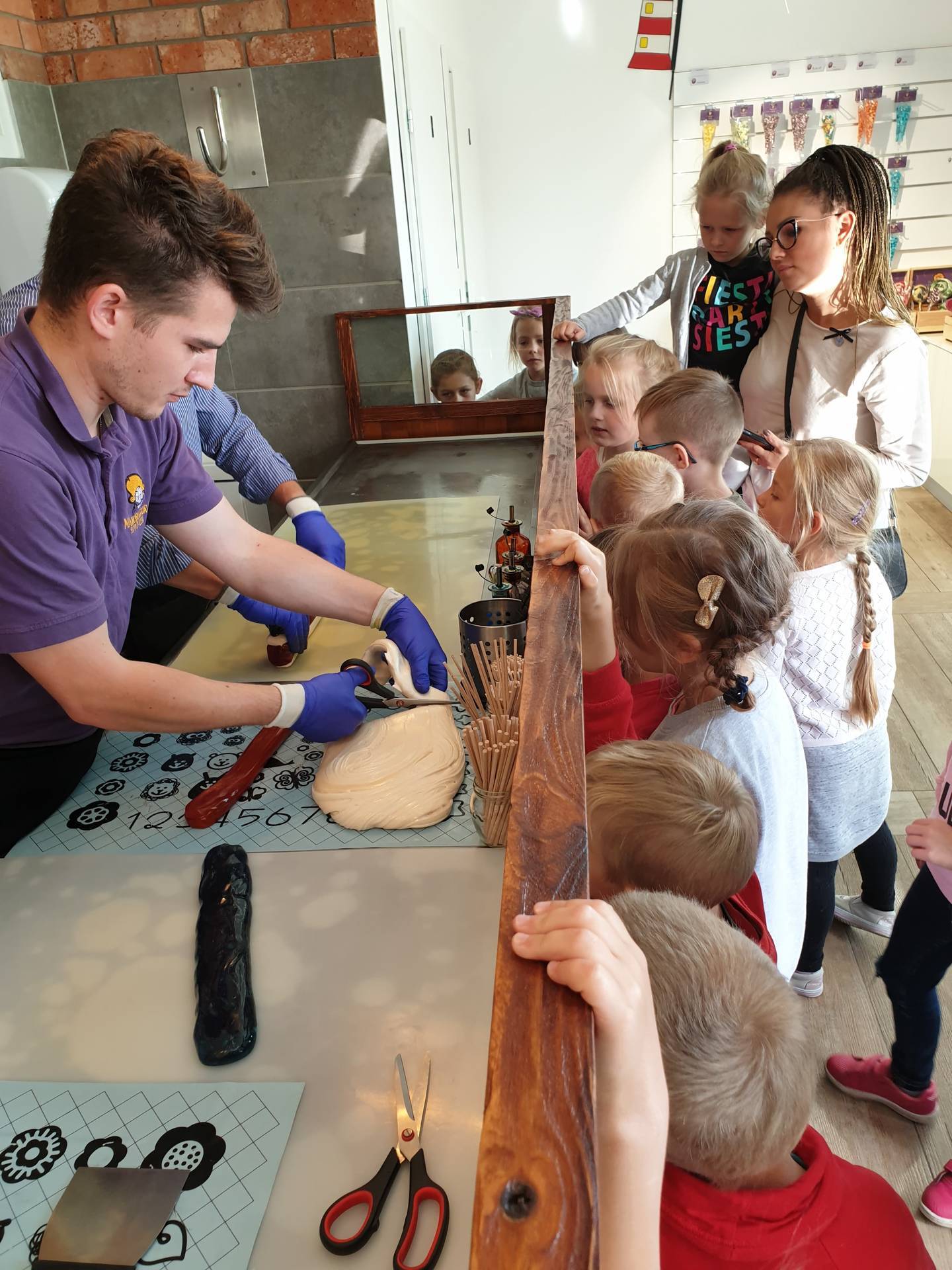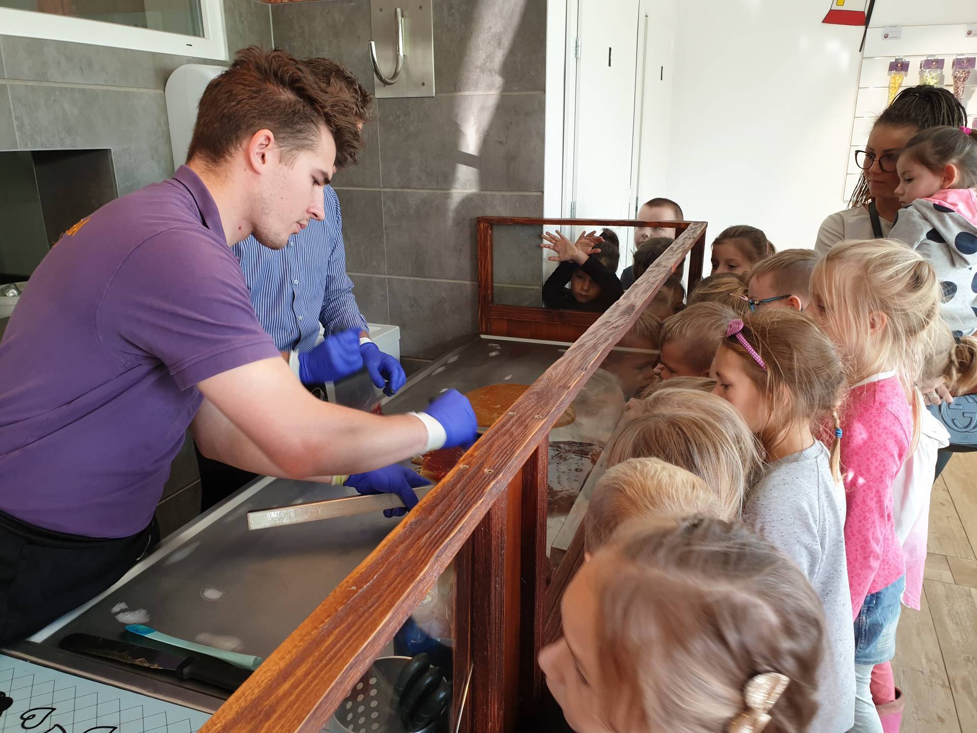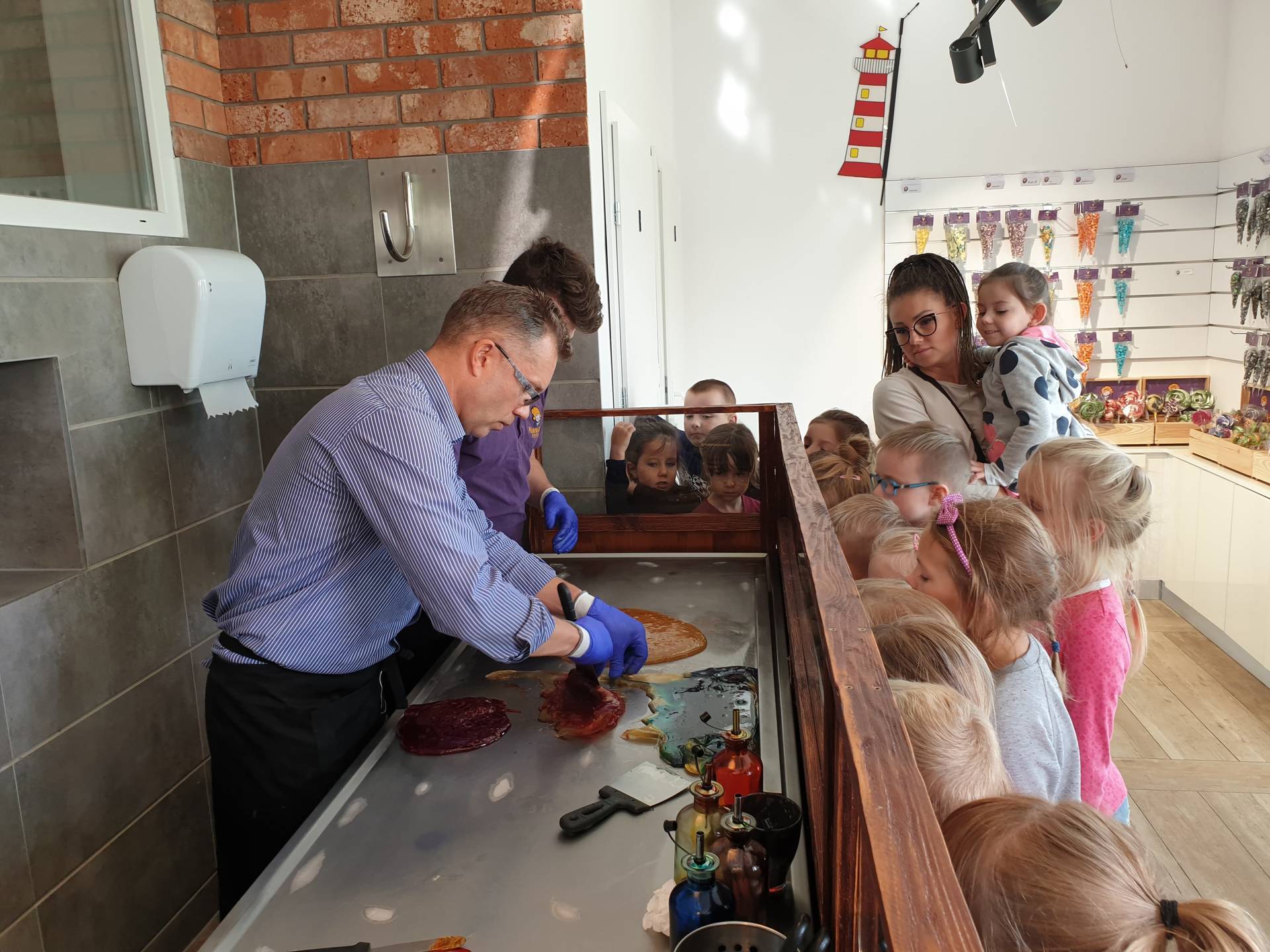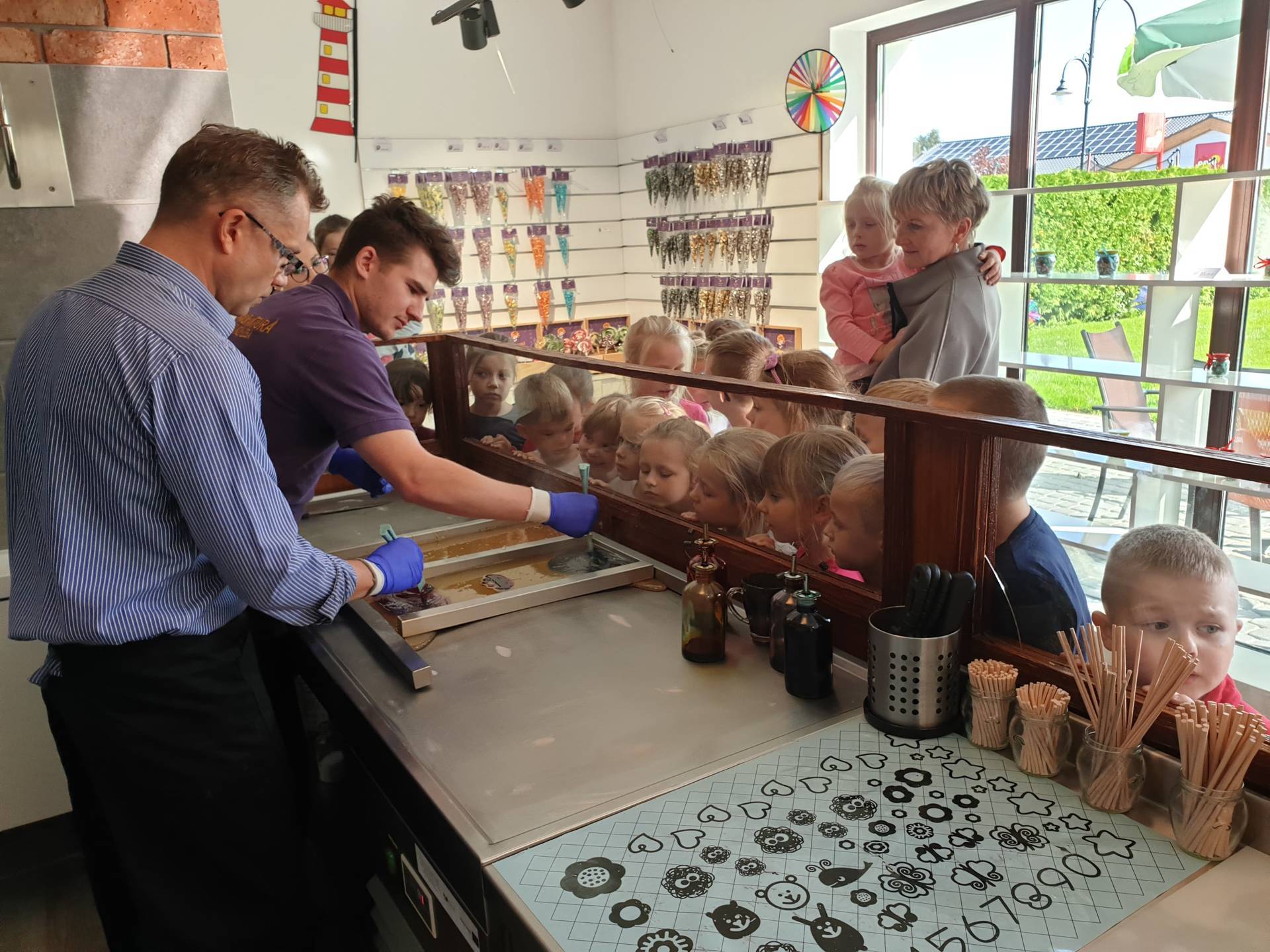 19 września 2019 nasze przedszkolaki spotkała niezwykła frajda, a mianowicie były na wycieczce w Manufakturze Słodyczy w Łebie. Miały okazję na żywo obserwować produkcję kolorowych cukierków i lizaków w przeróżnych smakach, a także samodzielnie przygotowały swoje lizaki. Do domu otrzymały też cukierkowe rożki. Uśmiechnięte i zadowolone wróciły do przedszkola, a w domu delektowały się smakiem cukierków i lizaków.