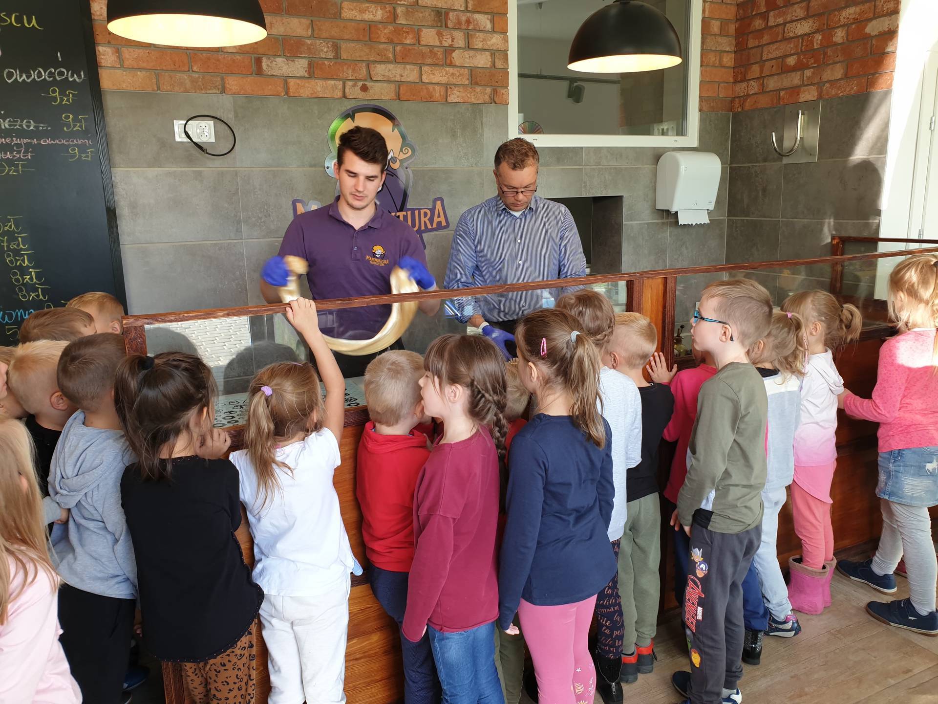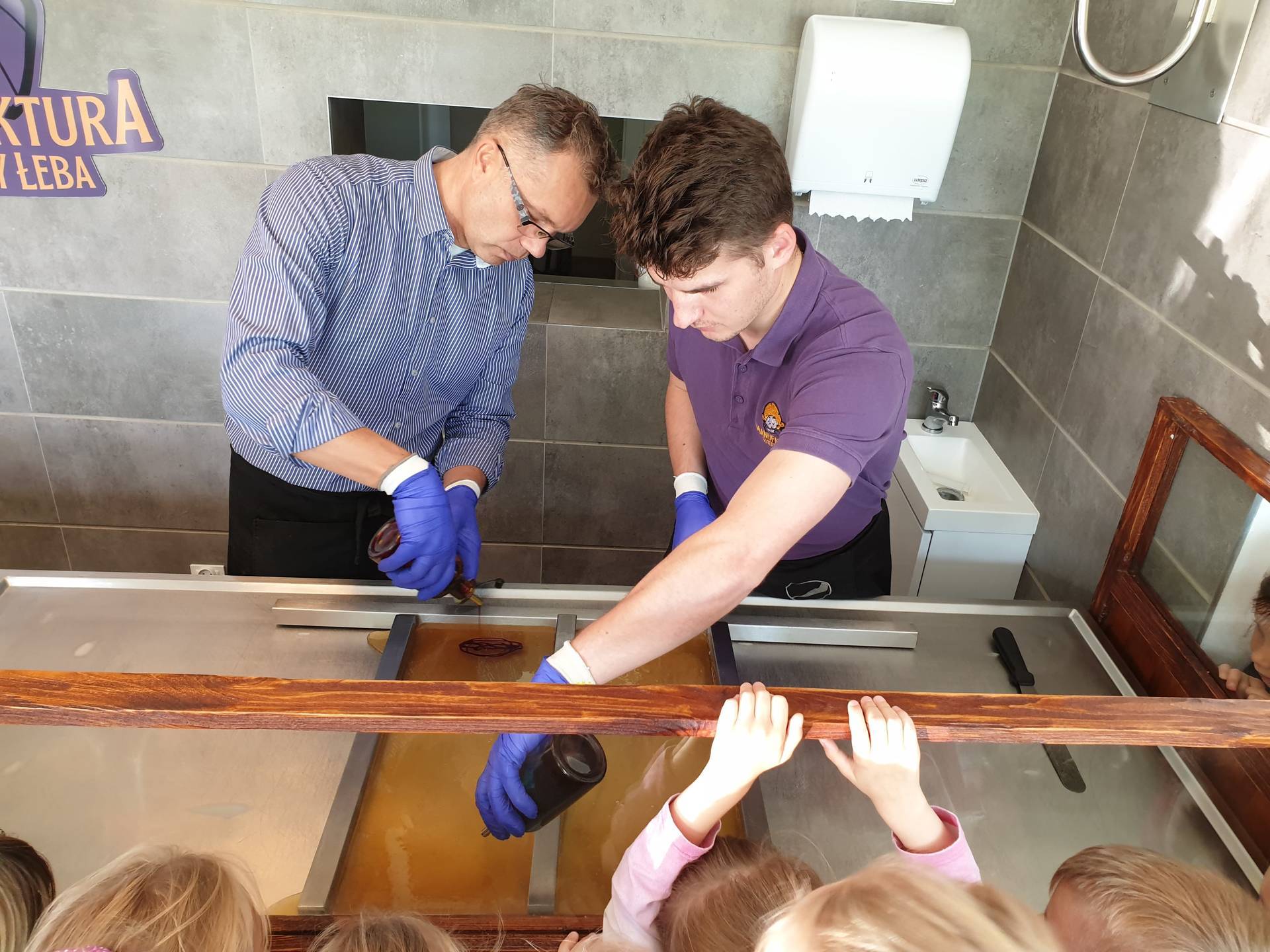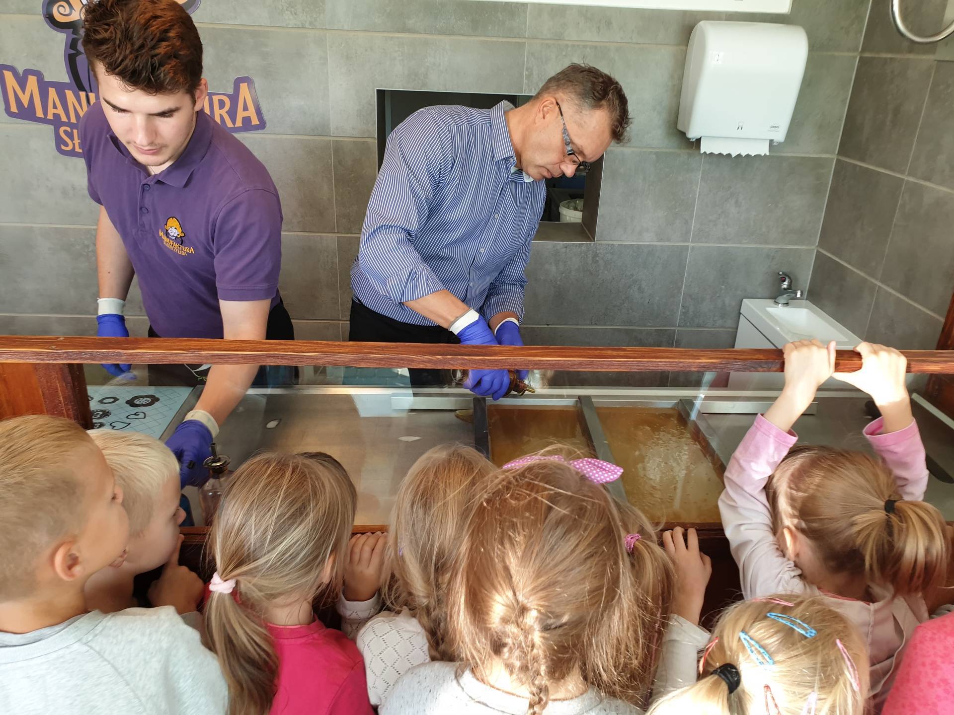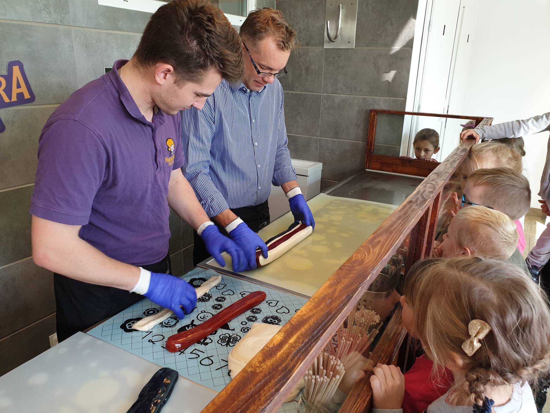 19 września 2019 nasze przedszkolaki spotkała niezwykła frajda, a mianowicie były na wycieczce w Manufakturze Słodyczy w Łebie. Miały okazję na żywo obserwować produkcję kolorowych cukierków i lizaków w przeróżnych smakach, a także samodzielnie przygotowały swoje lizaki. Do domu otrzymały też cukierkowe rożki. Uśmiechnięte i zadowolone wróciły do przedszkola, a w domu delektowały się smakiem cukierków i lizaków.