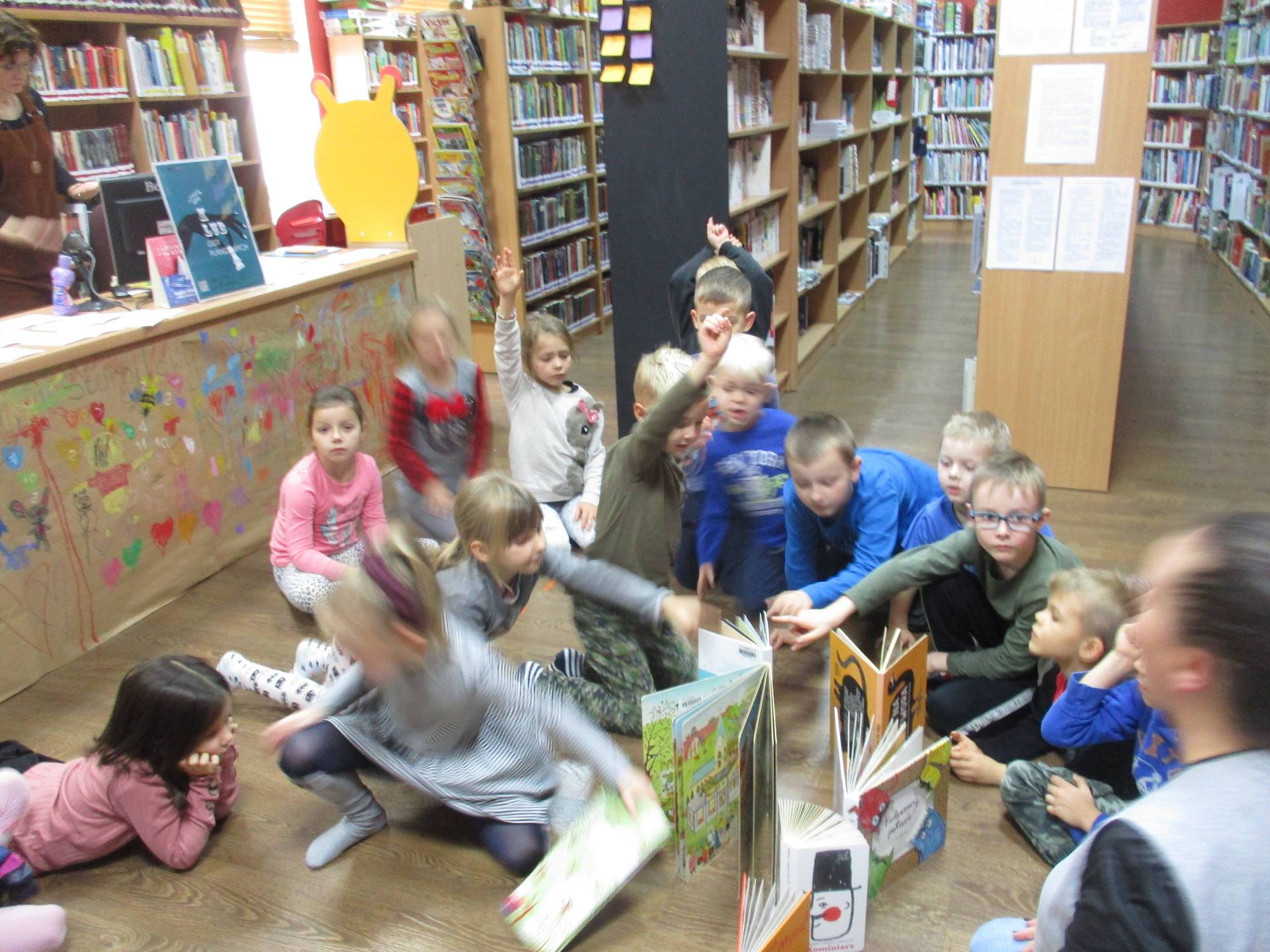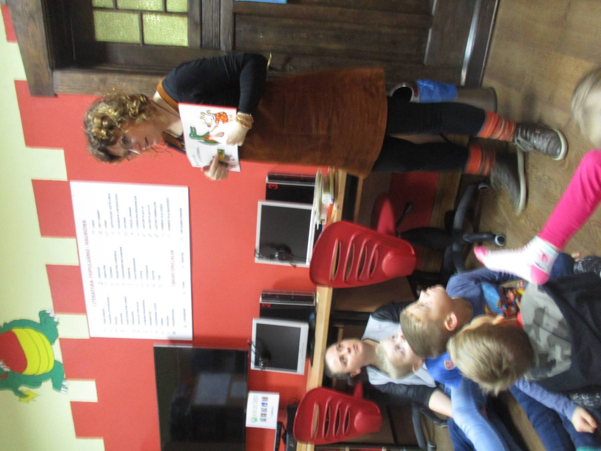 Pani bibliotekarka cierpliwie odpowiadała na wszystkie pytania dzieci.