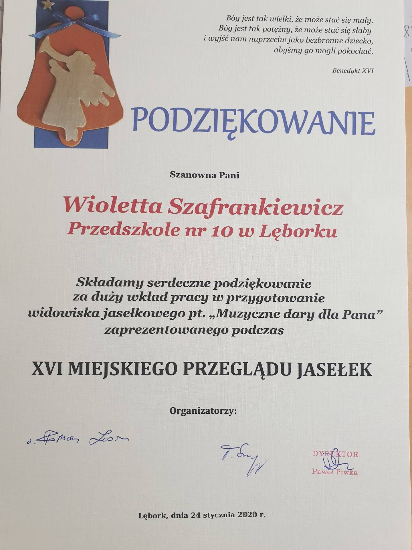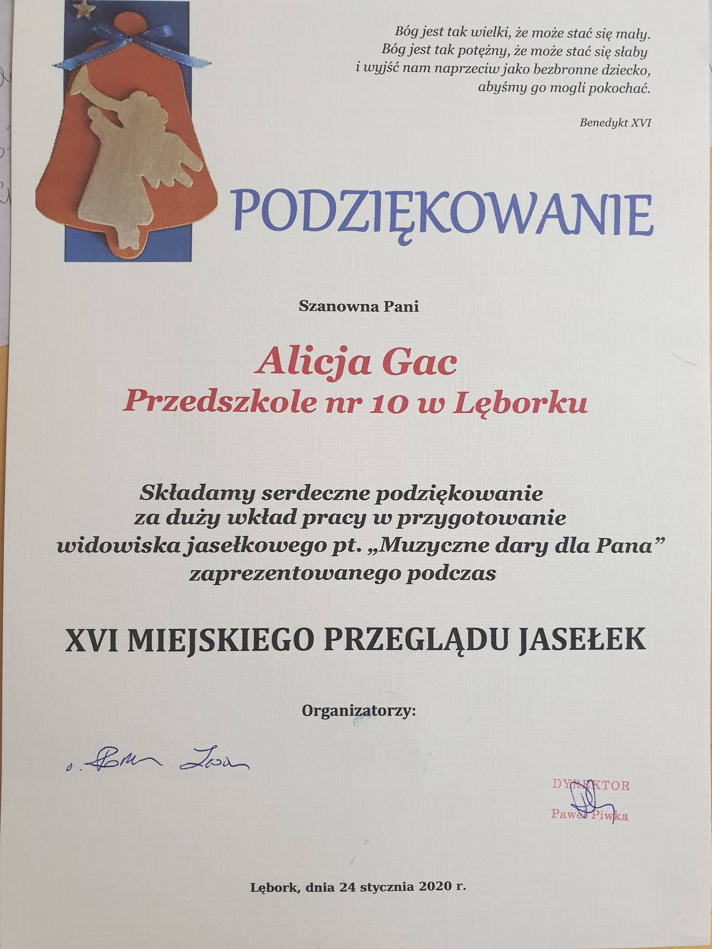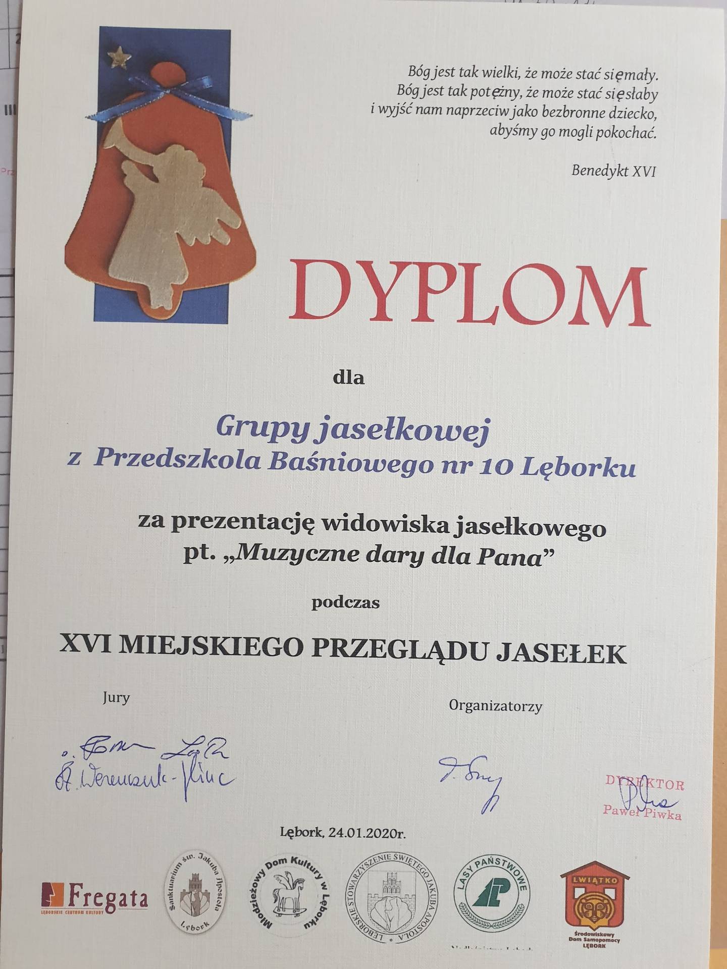 GR IV XVI Miejski Przegląd Jasełek Lębork 2020 oraz rozstrzygnięcie konkursu "Szykowna broszka- to Lęborska maska anioła"