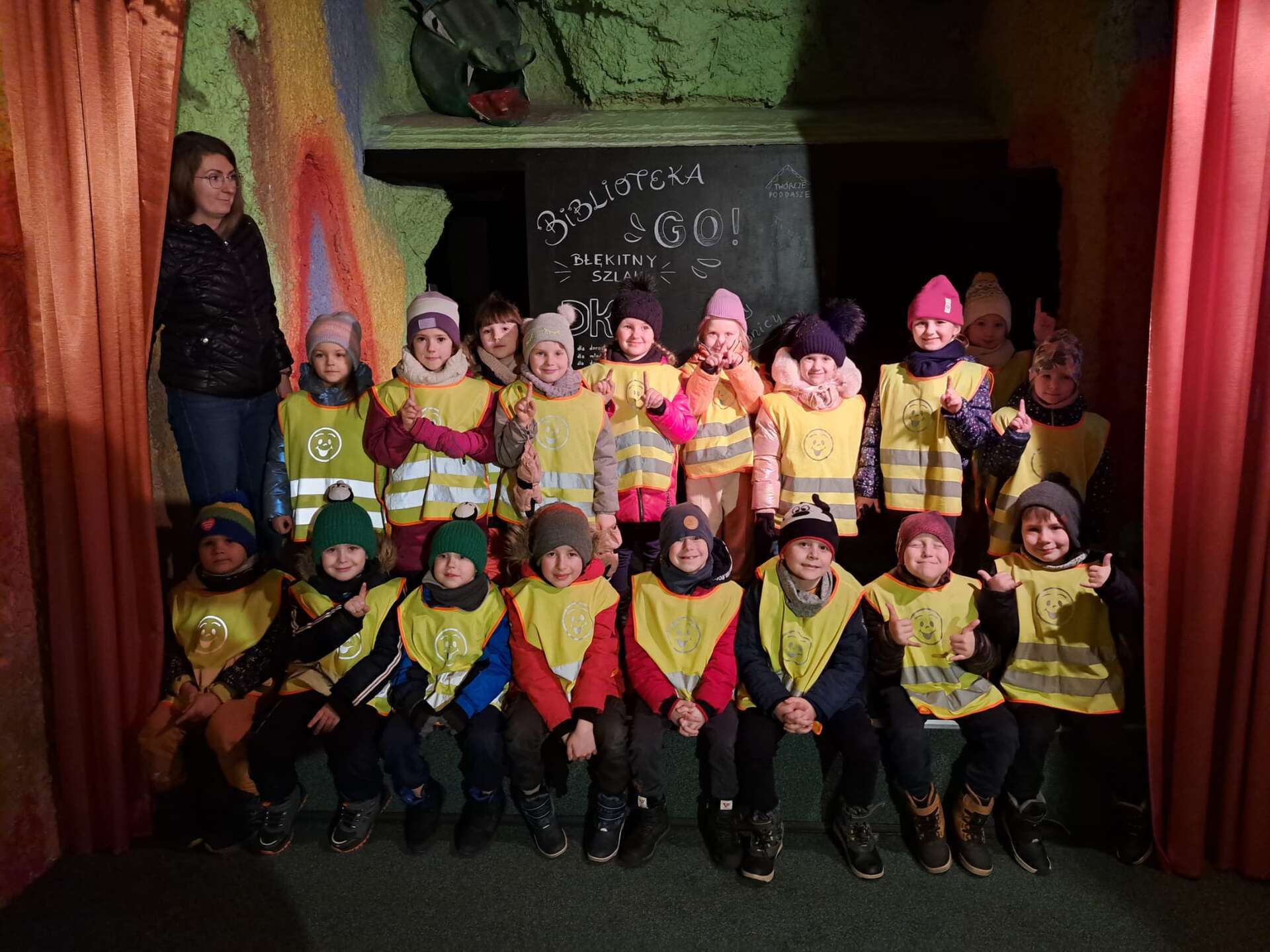Grupa dzieci na tle dekoracji