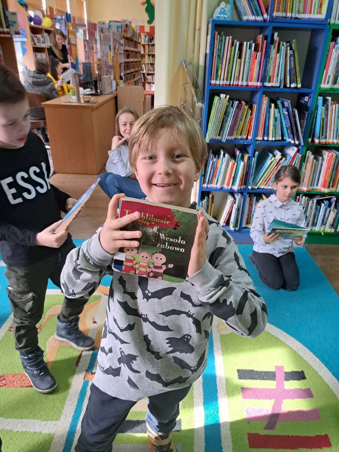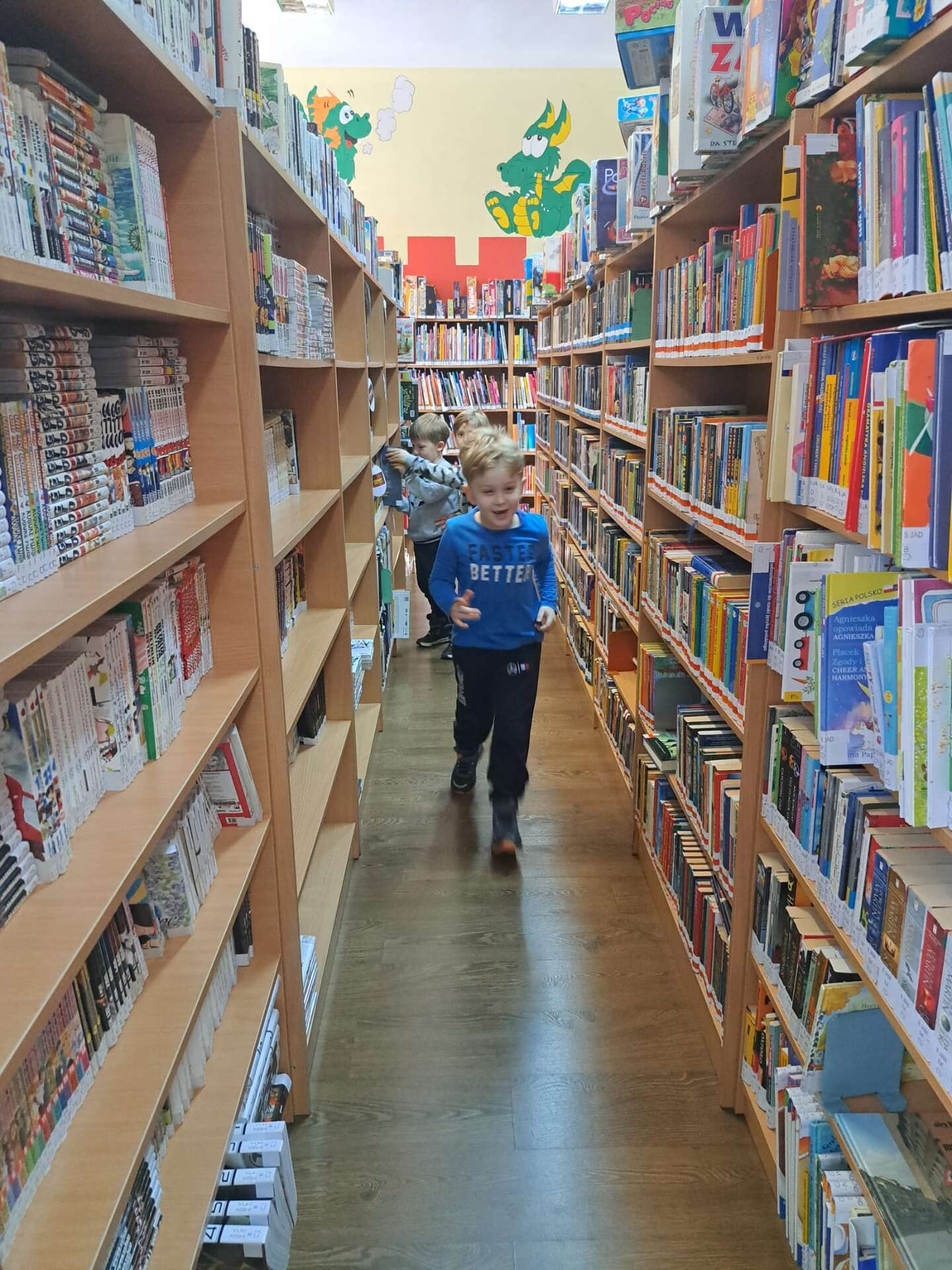 Dzieci między regałami z książkami