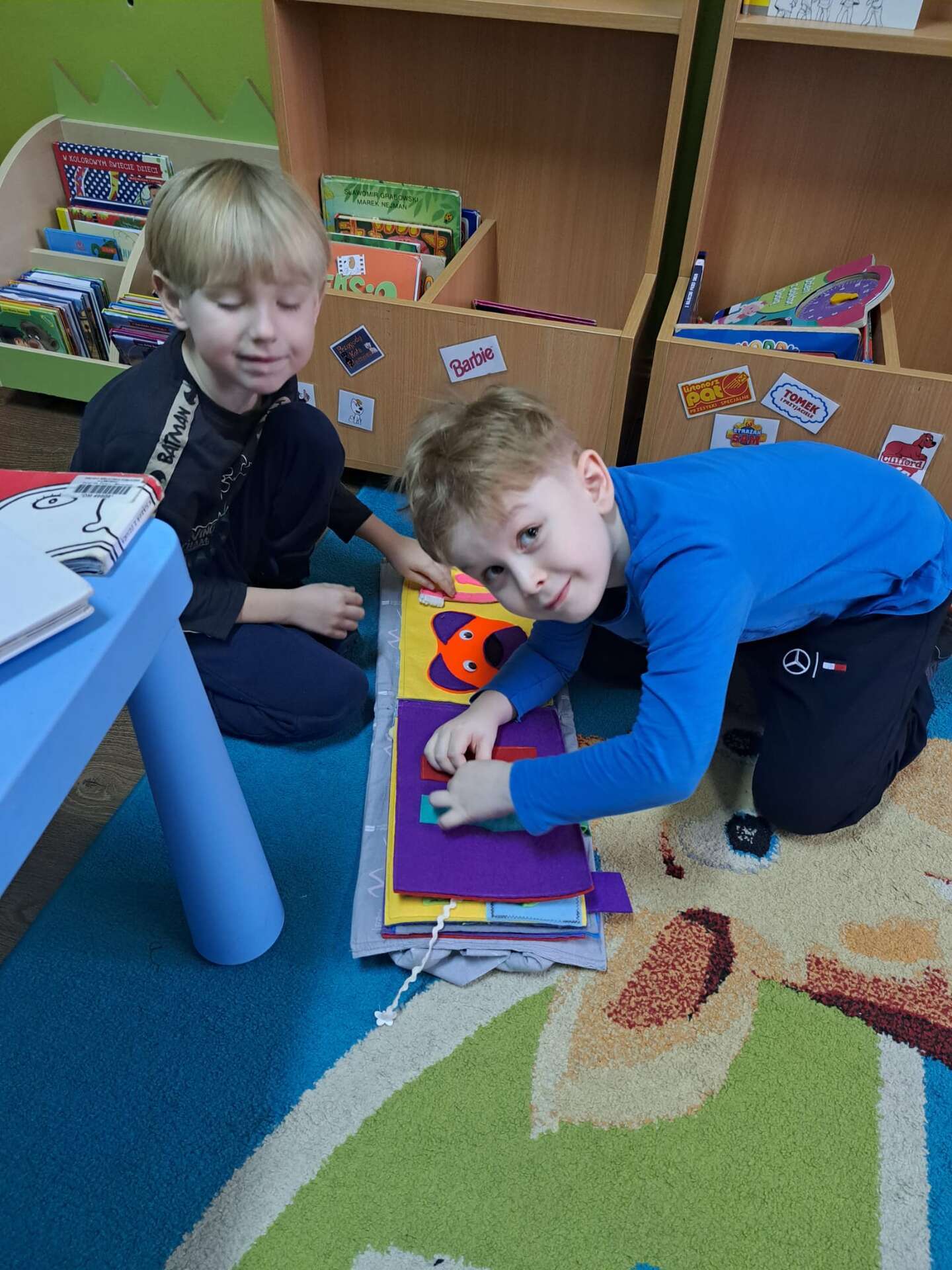 Chłopcy oglądają książeczkę