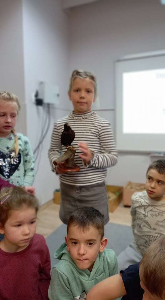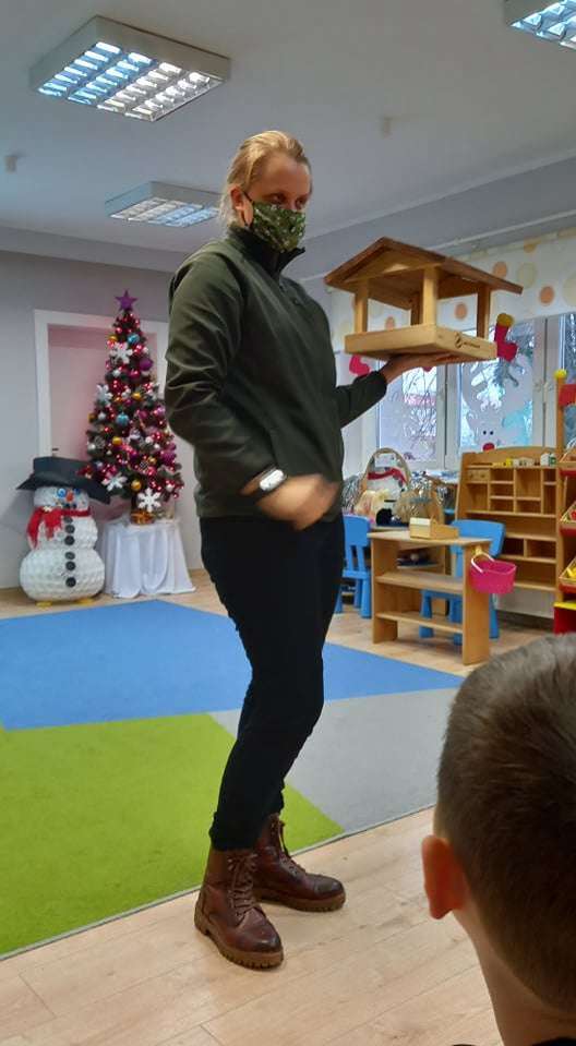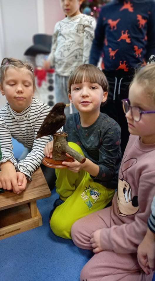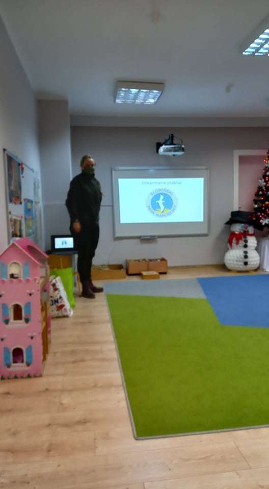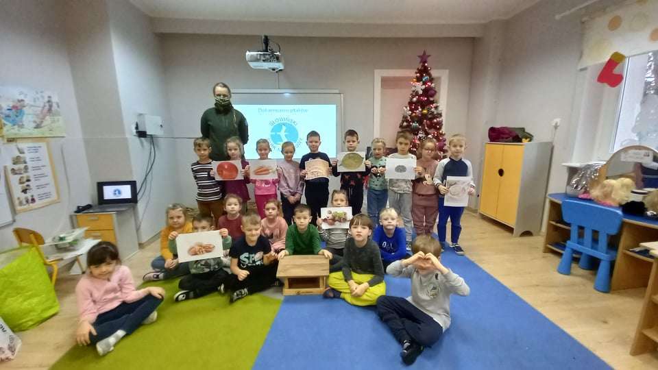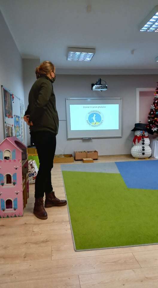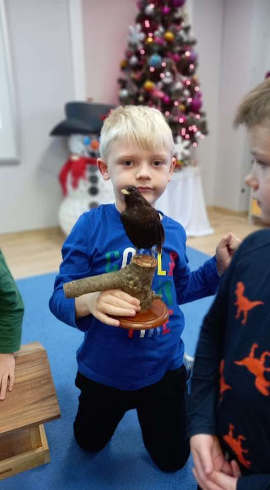 15 grudnia dzieci z grupy IV uczestniczyły w zajęciach edukacyjno - przyrodniczych. Zajęcia poprowadził pracownik Słowińskiego Parku Narodowego. Podczas nich dzieci dowiedziały się wielu ciekawostek o ptakach. Z wielkim zainteresowaniem słuchały o tym, jakie ptaki u nas zimują i jak w związku z tym o nie dbać.