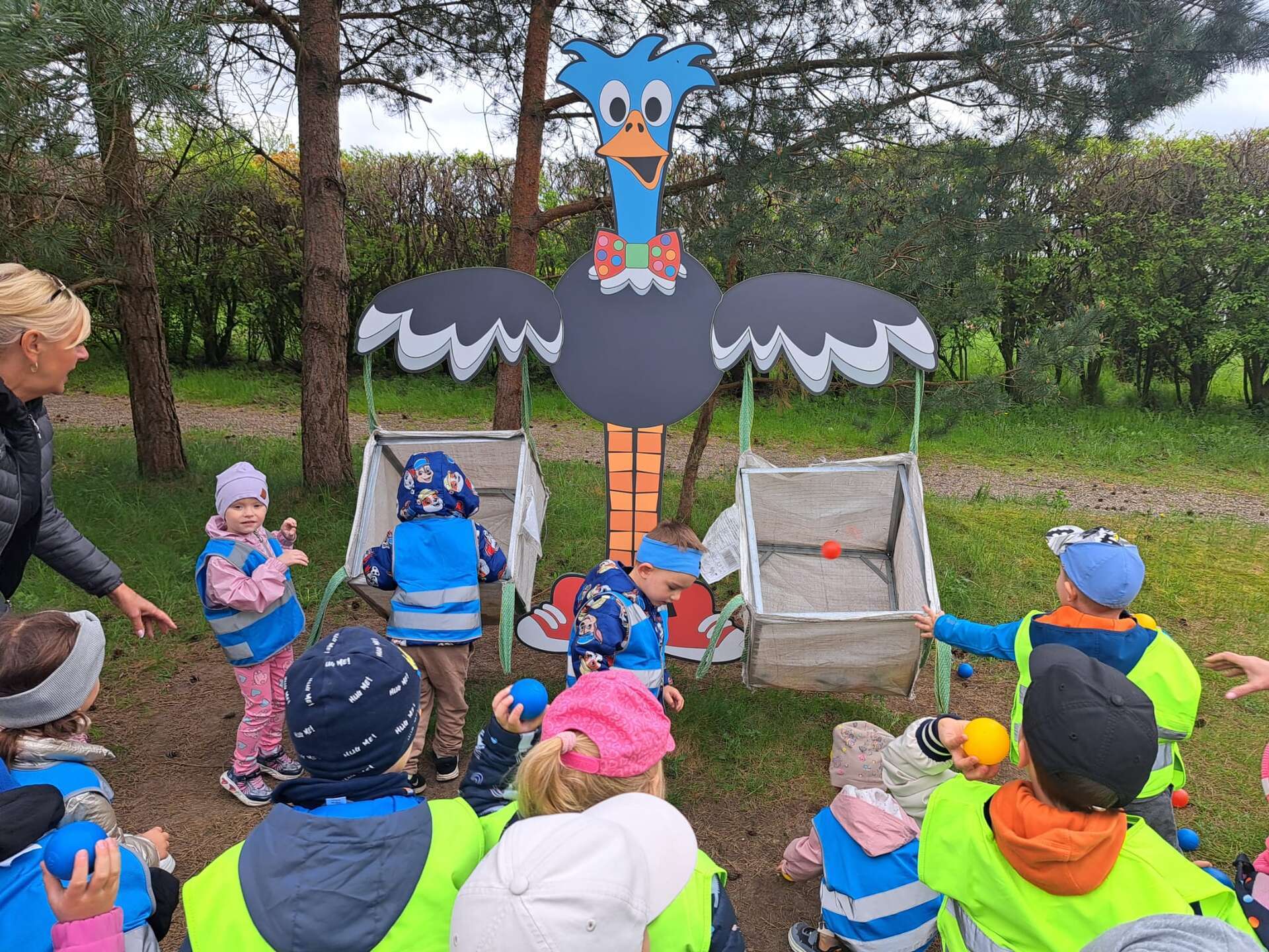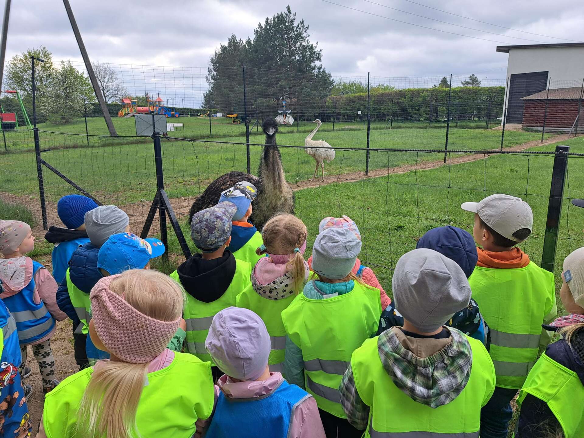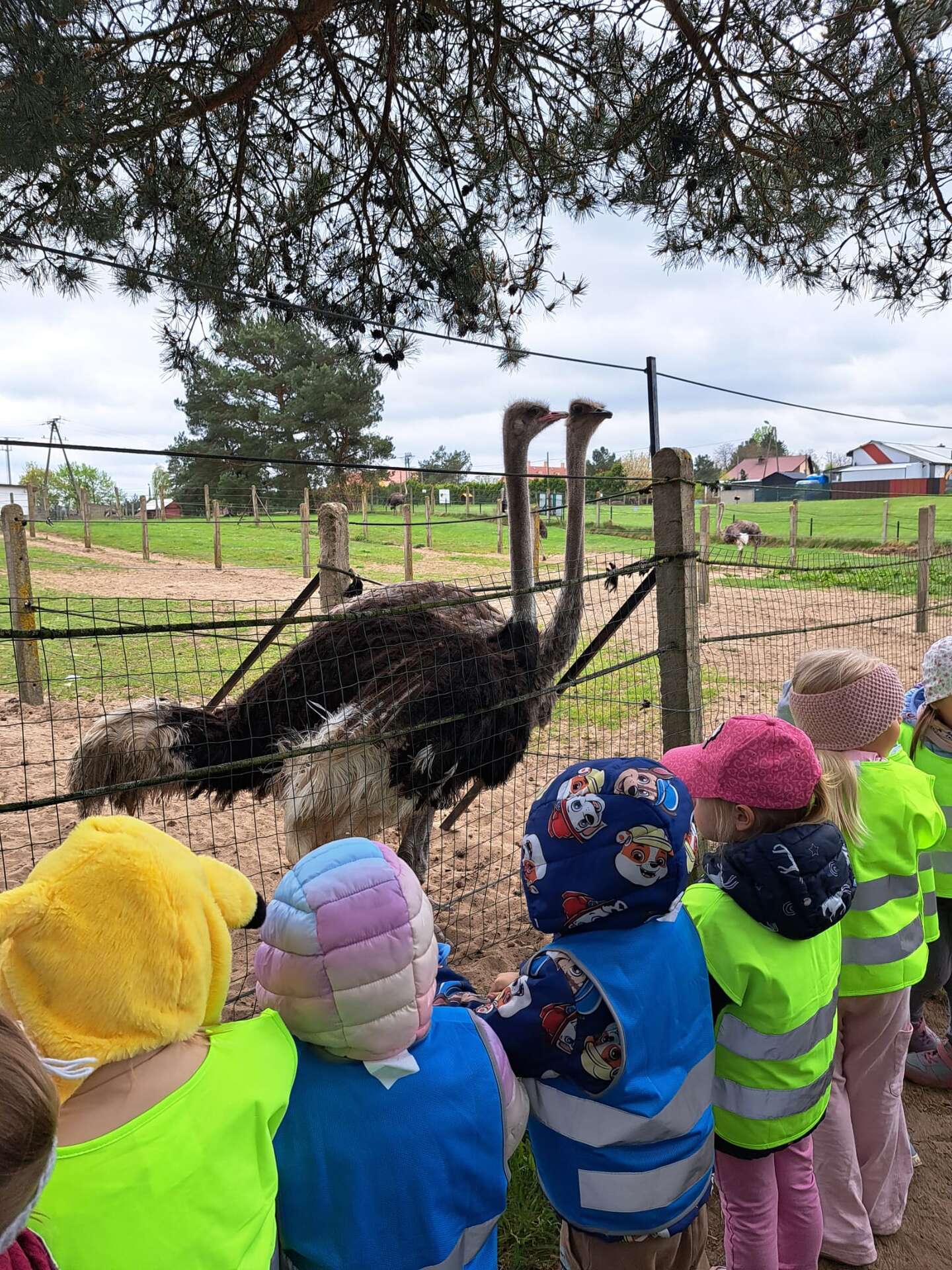 Podczas spaceru po farmie dzieci z zainteresowaniem obserwowały wielkie ptaki, słuchały ciekawostek o ich zwyczajach, żywieniu i sposobie życia. Dowiedziały się także, jak wygląda strusie jajo i miały okazję zobaczyć inne zwierzęta hodowlane.