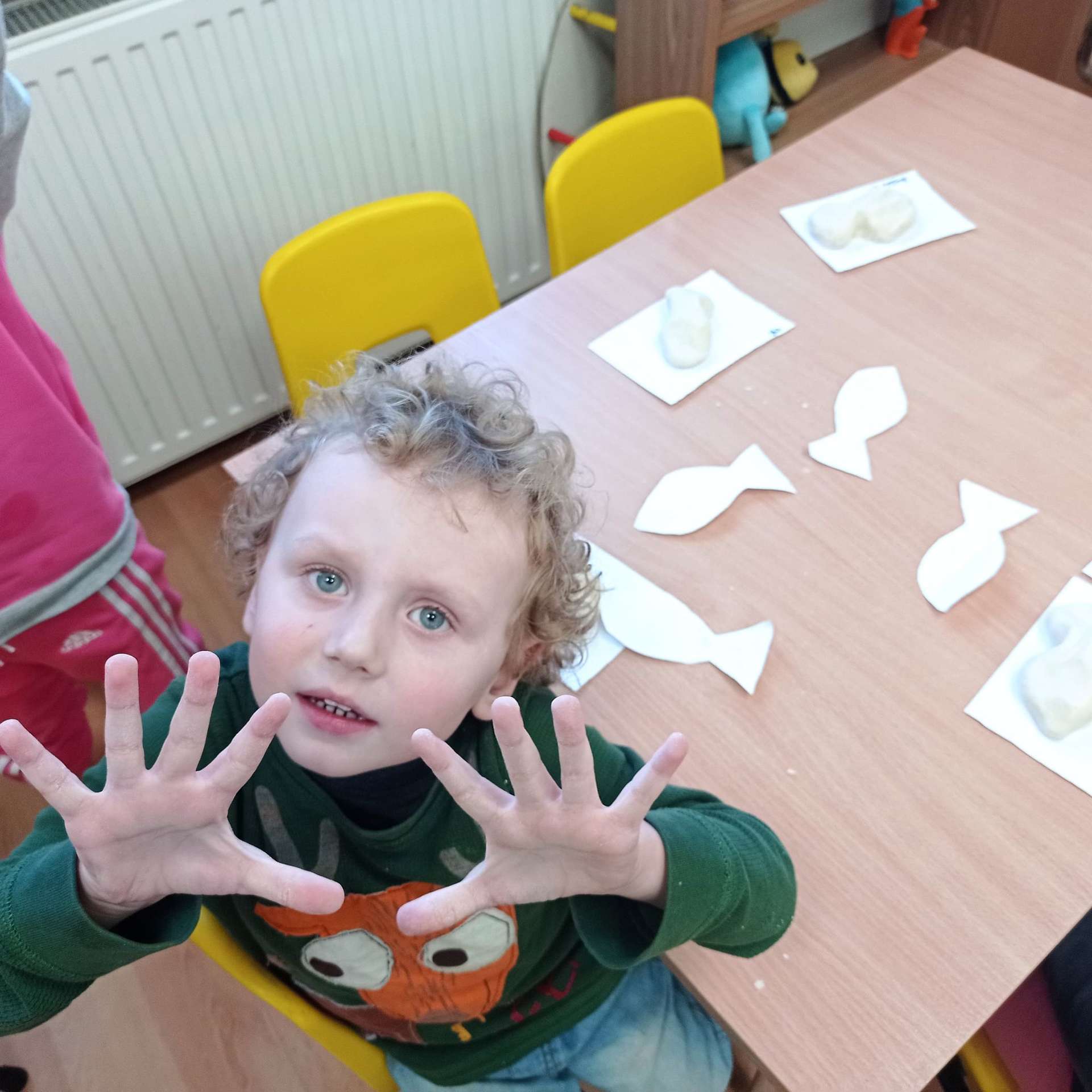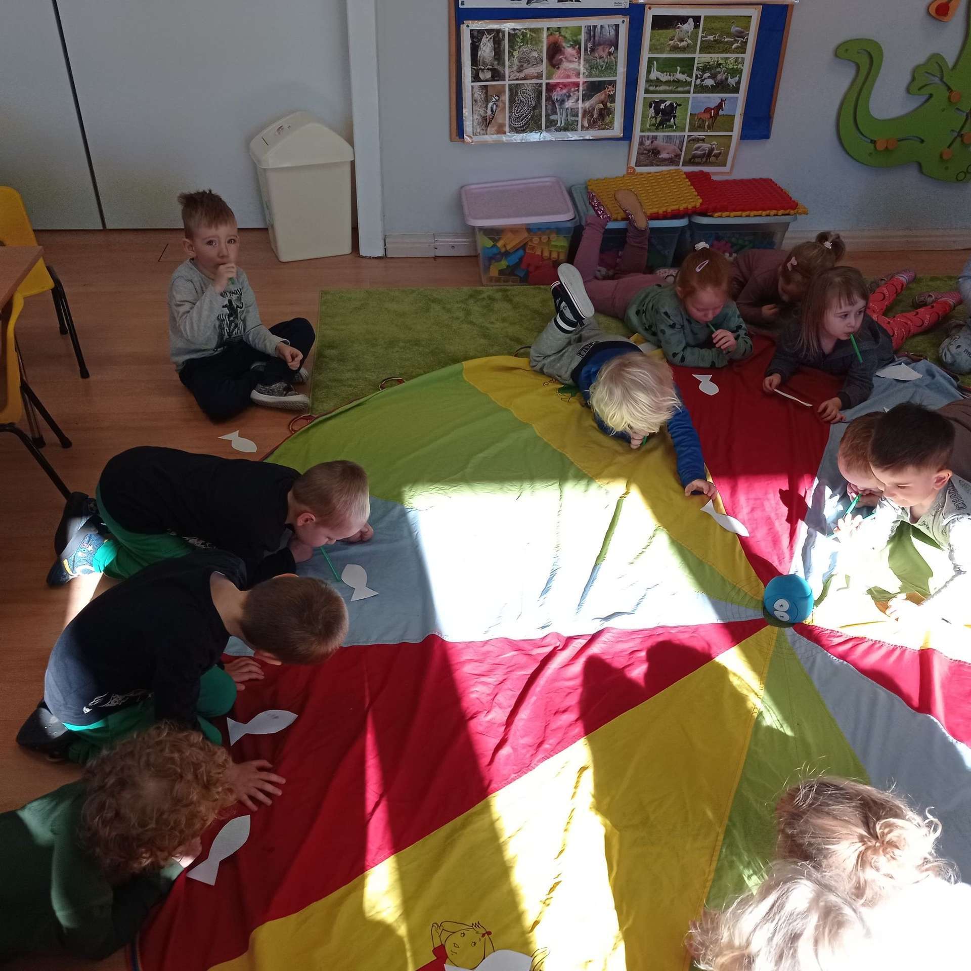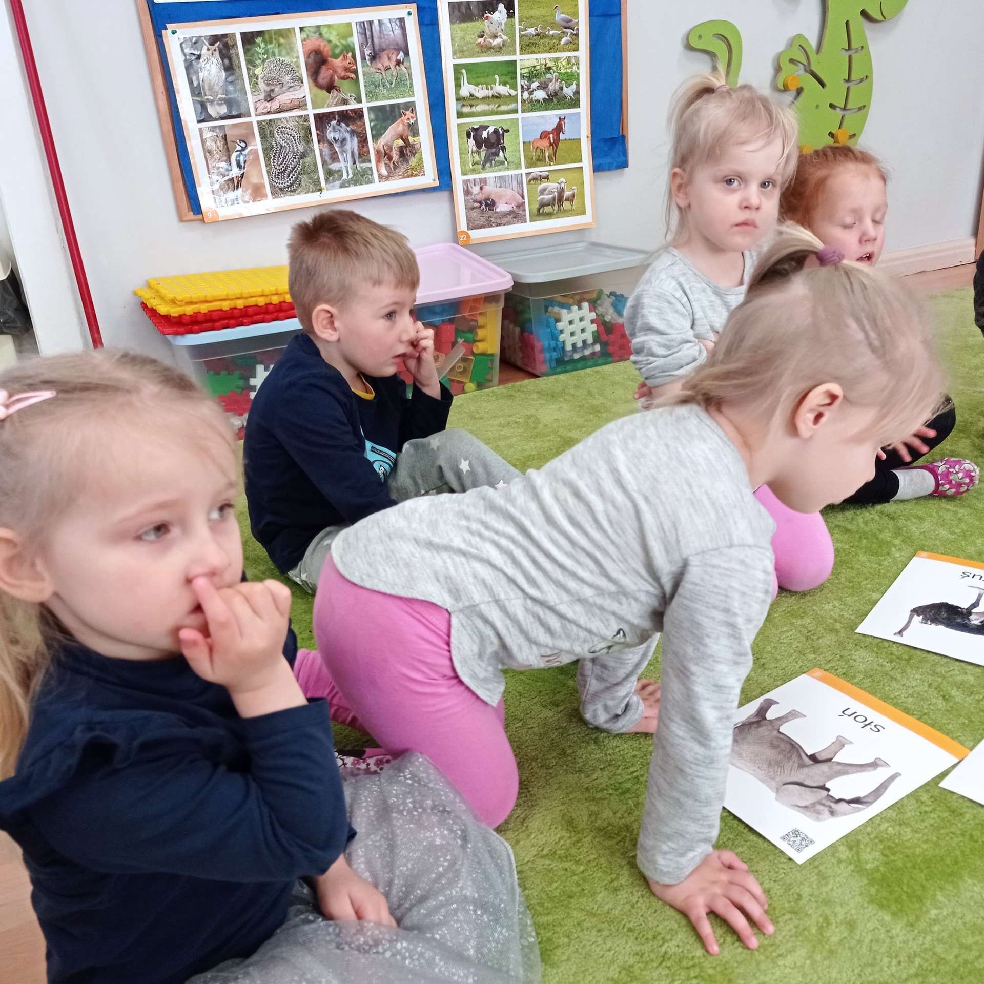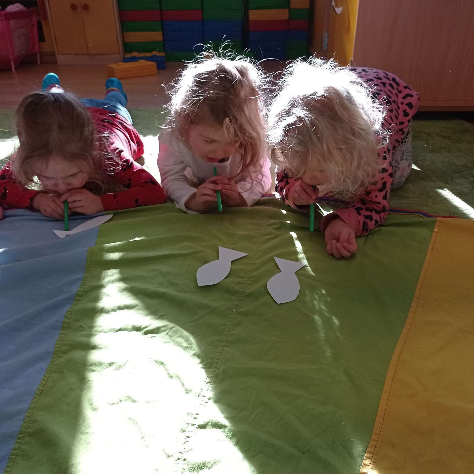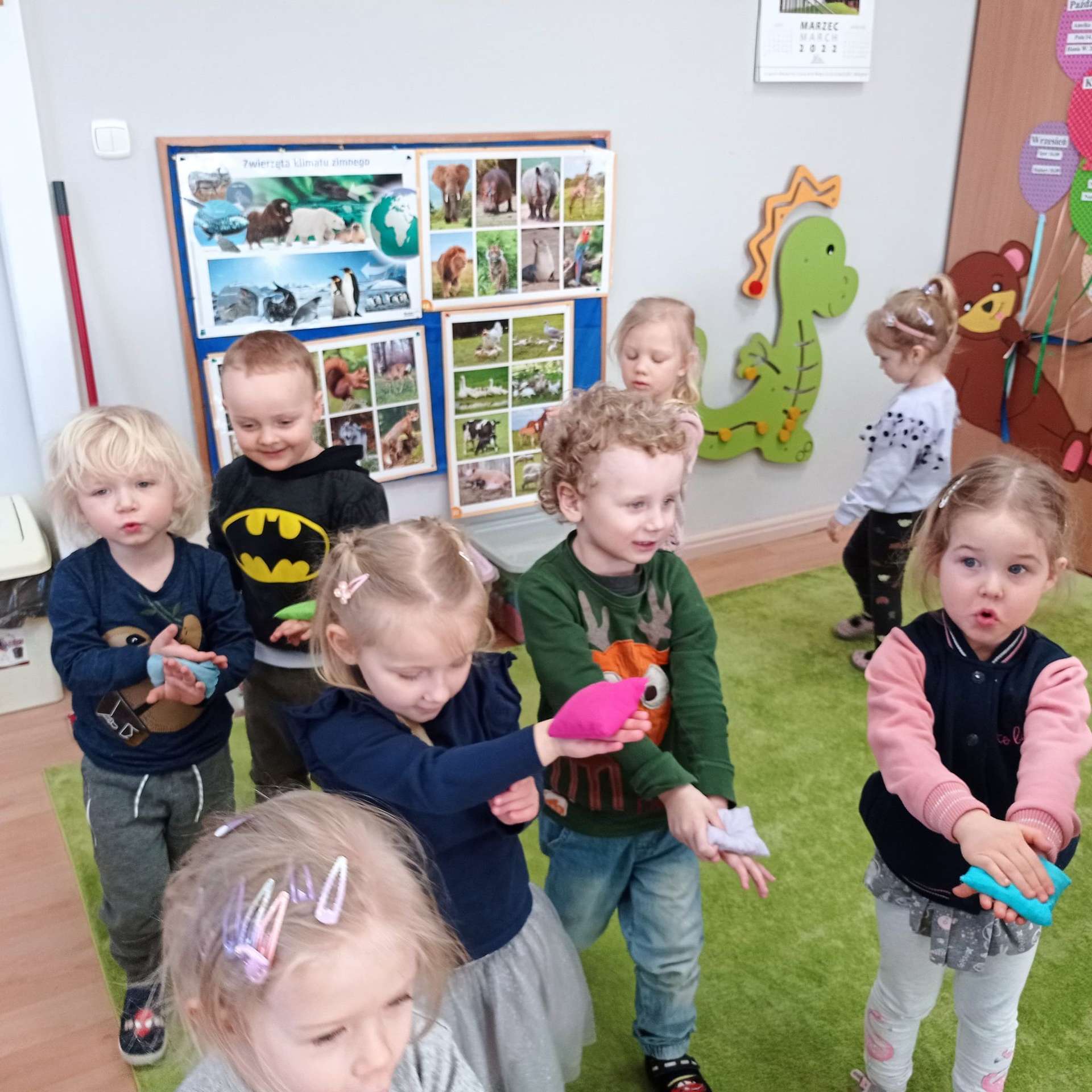 W tym tygodniu rozmawialiśmy o zwierzętach egzotycznych. Miło spędziliśmy czas bawiąc się przy piosenkach o zwierzętach. Ponadto wykonaliśmy żyrafę z papieru. Przy temacie o morskich głębinach dzieci uciekały przed rekinem, ćwiczyły tor oddechowy dmuchając na rybkę (ćwiczenia logopedyczne), wykonały rybkę z masy solnej oraz bawiły się przy pomocy chusty animacyjnej.