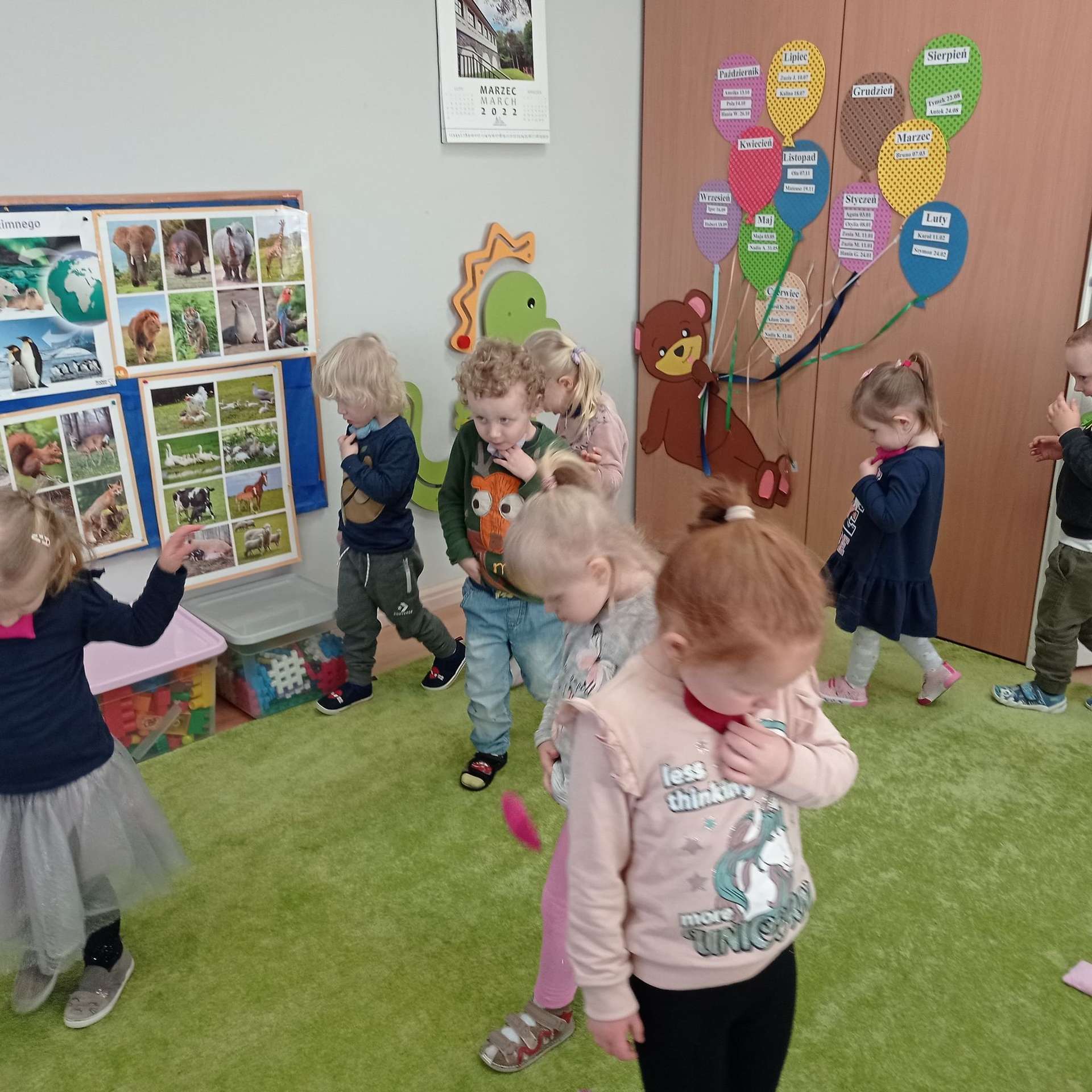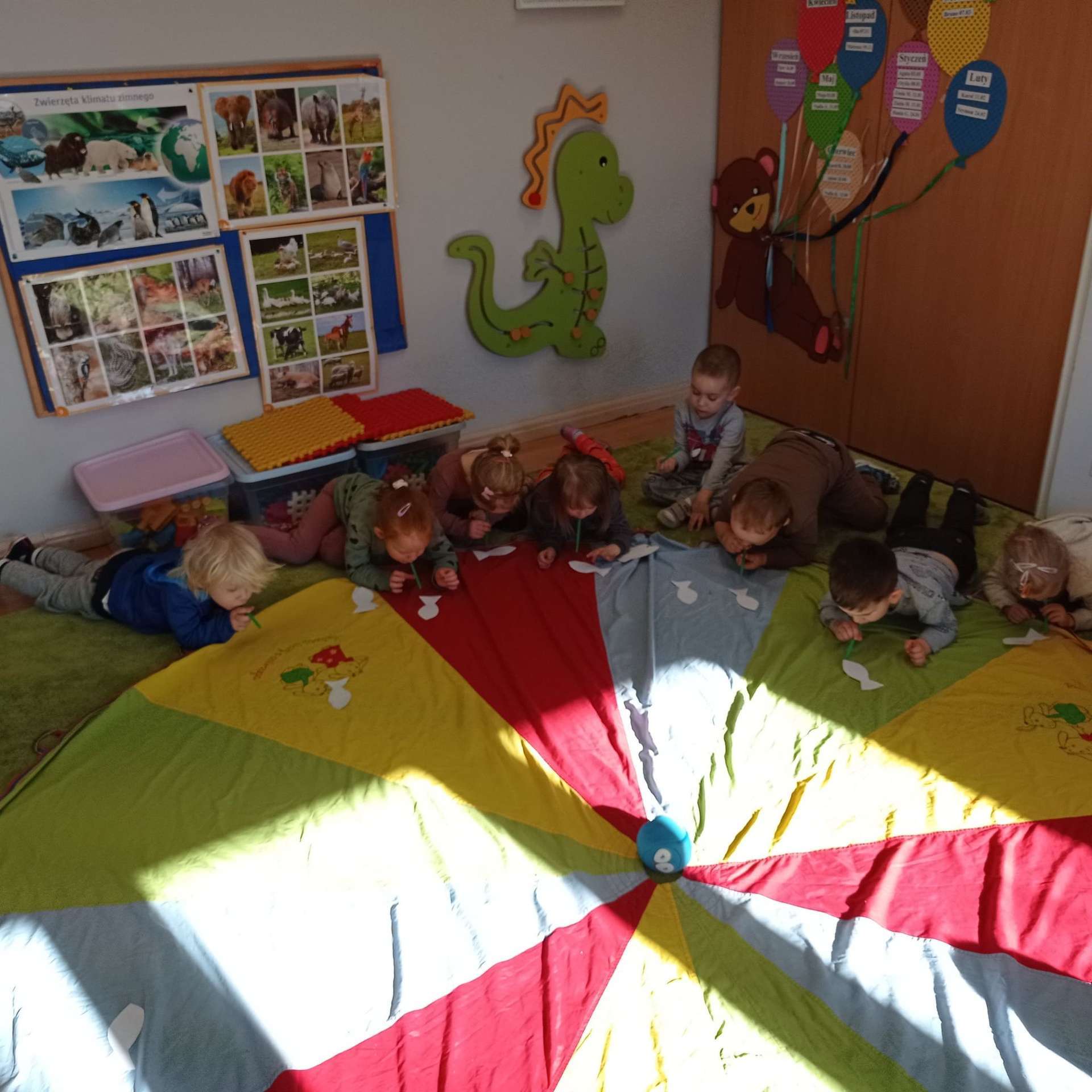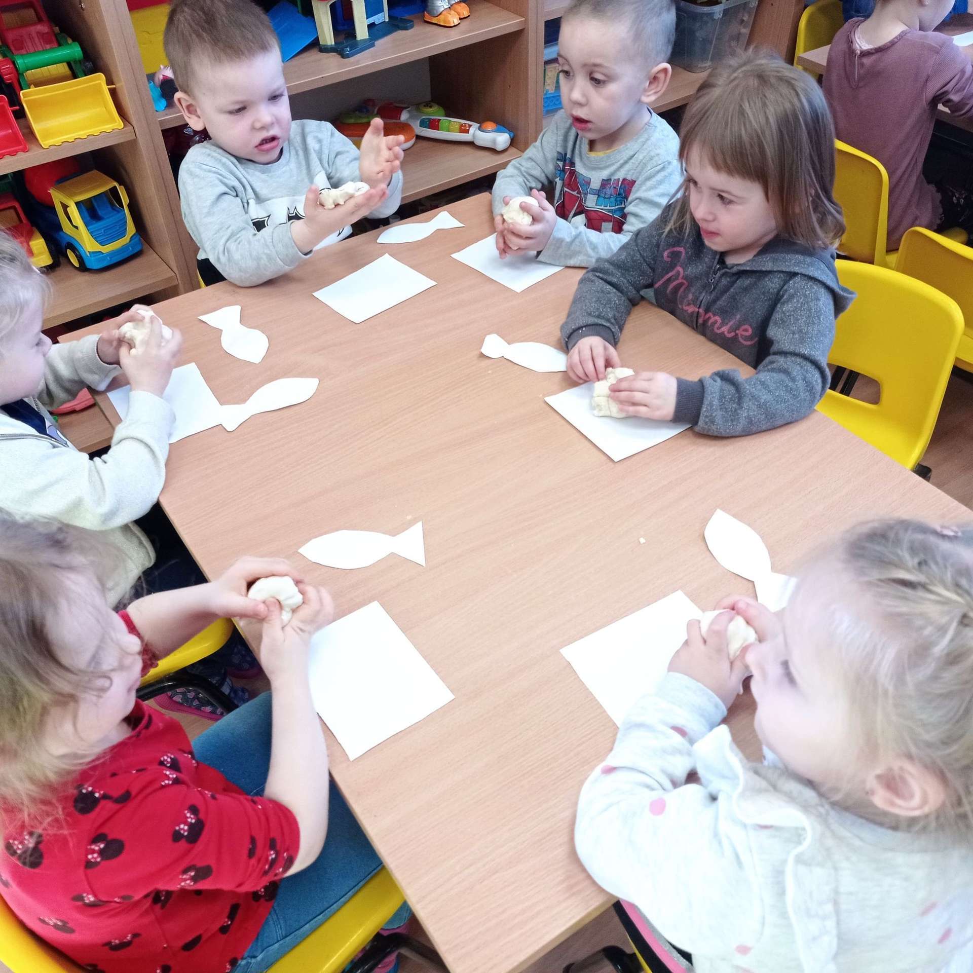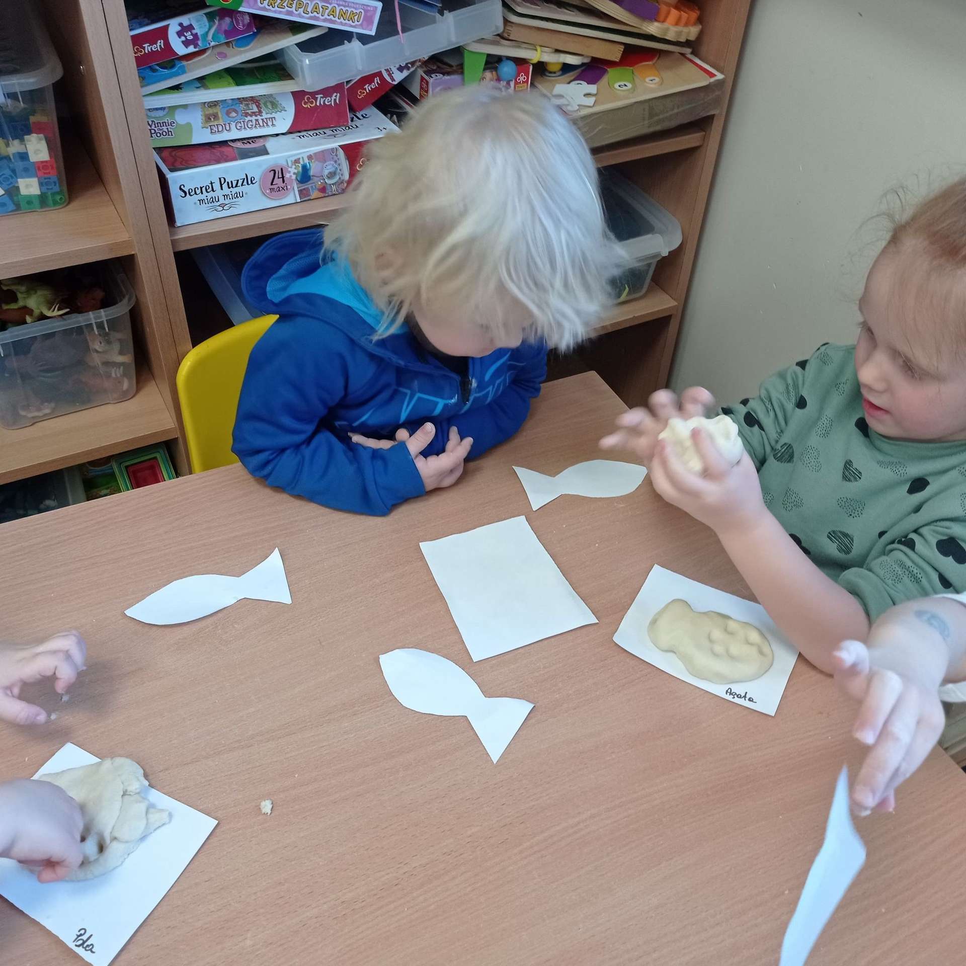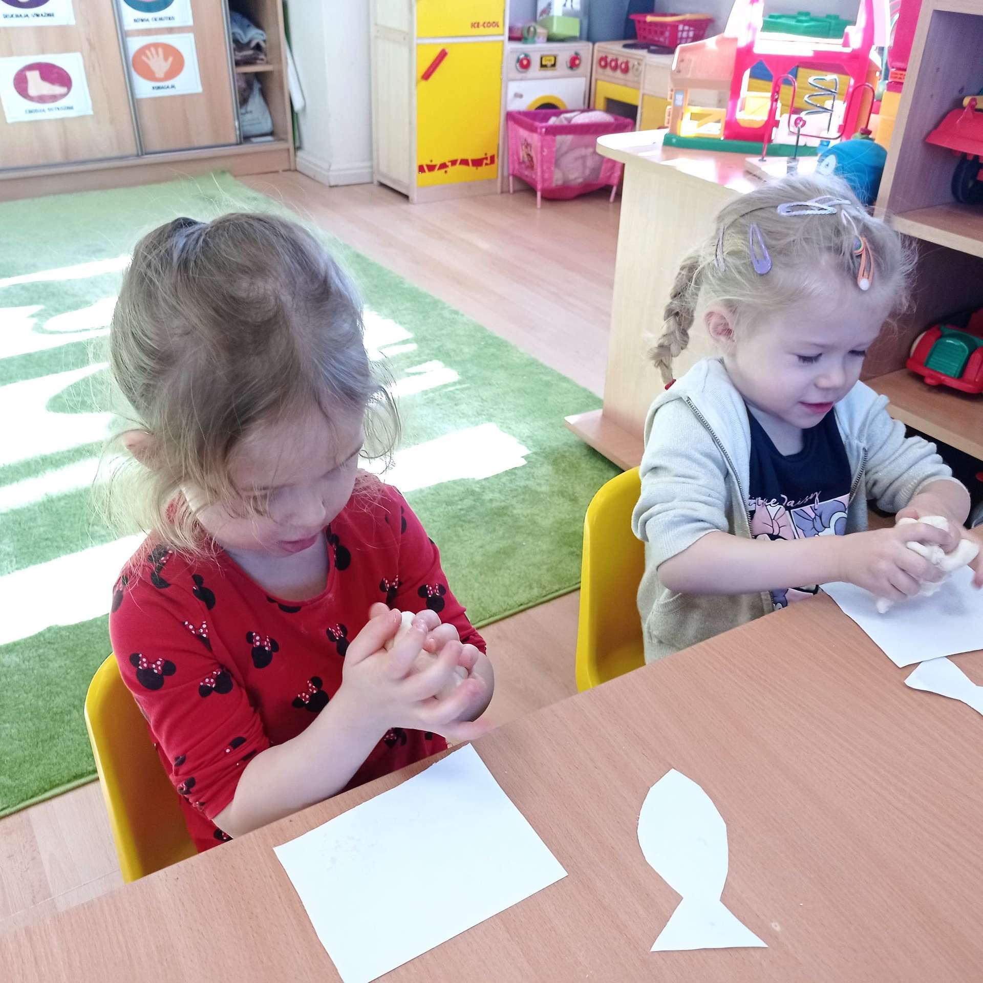 W tym tygodniu rozmawialiśmy o zwierzętach egzotycznych. Miło spędziliśmy czas bawiąc się przy piosenkach o zwierzętach. Ponadto wykonaliśmy żyrafę z papieru. Przy temacie o morskich głębinach dzieci uciekały przed rekinem, ćwiczyły tor oddechowy dmuchając na rybkę (ćwiczenia logopedyczne), wykonały rybkę z masy solnej oraz bawiły się przy pomocy chusty animacyjnej.