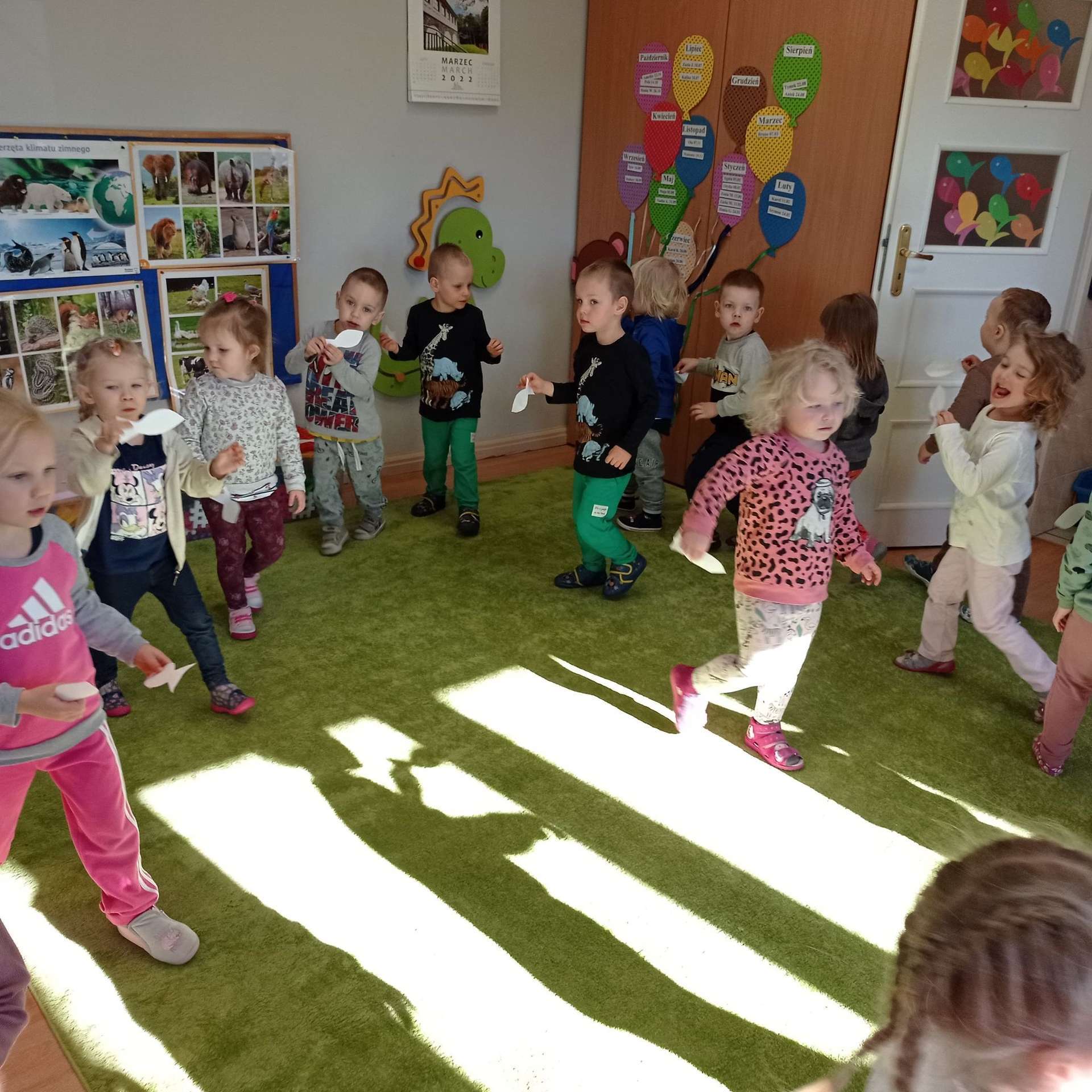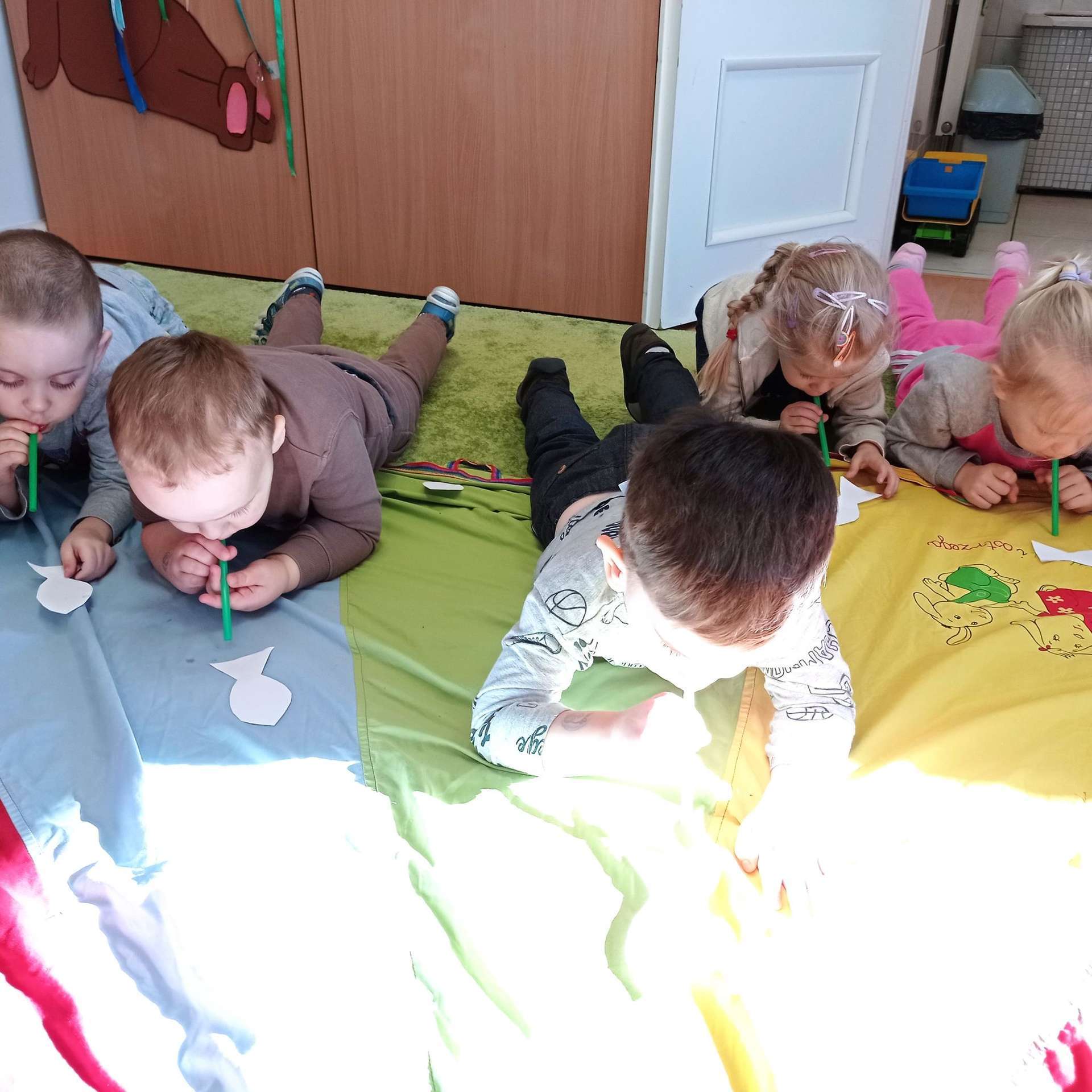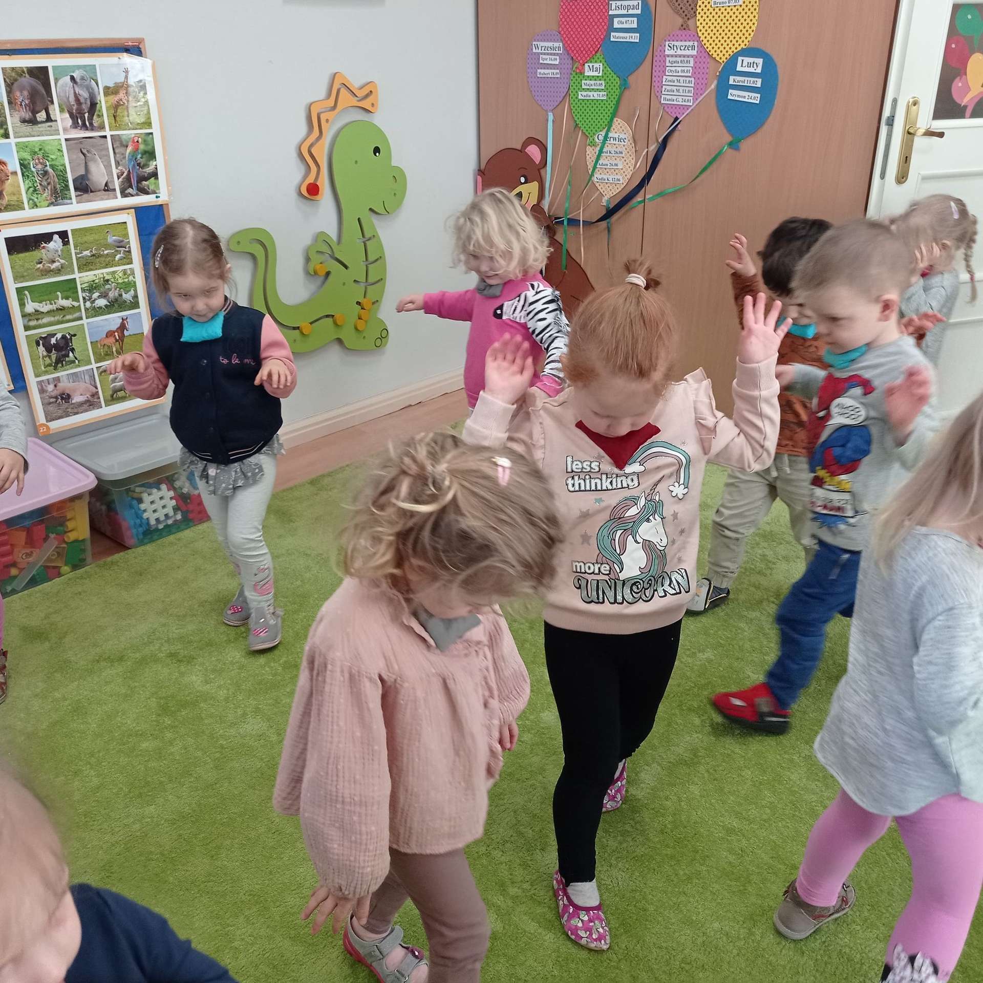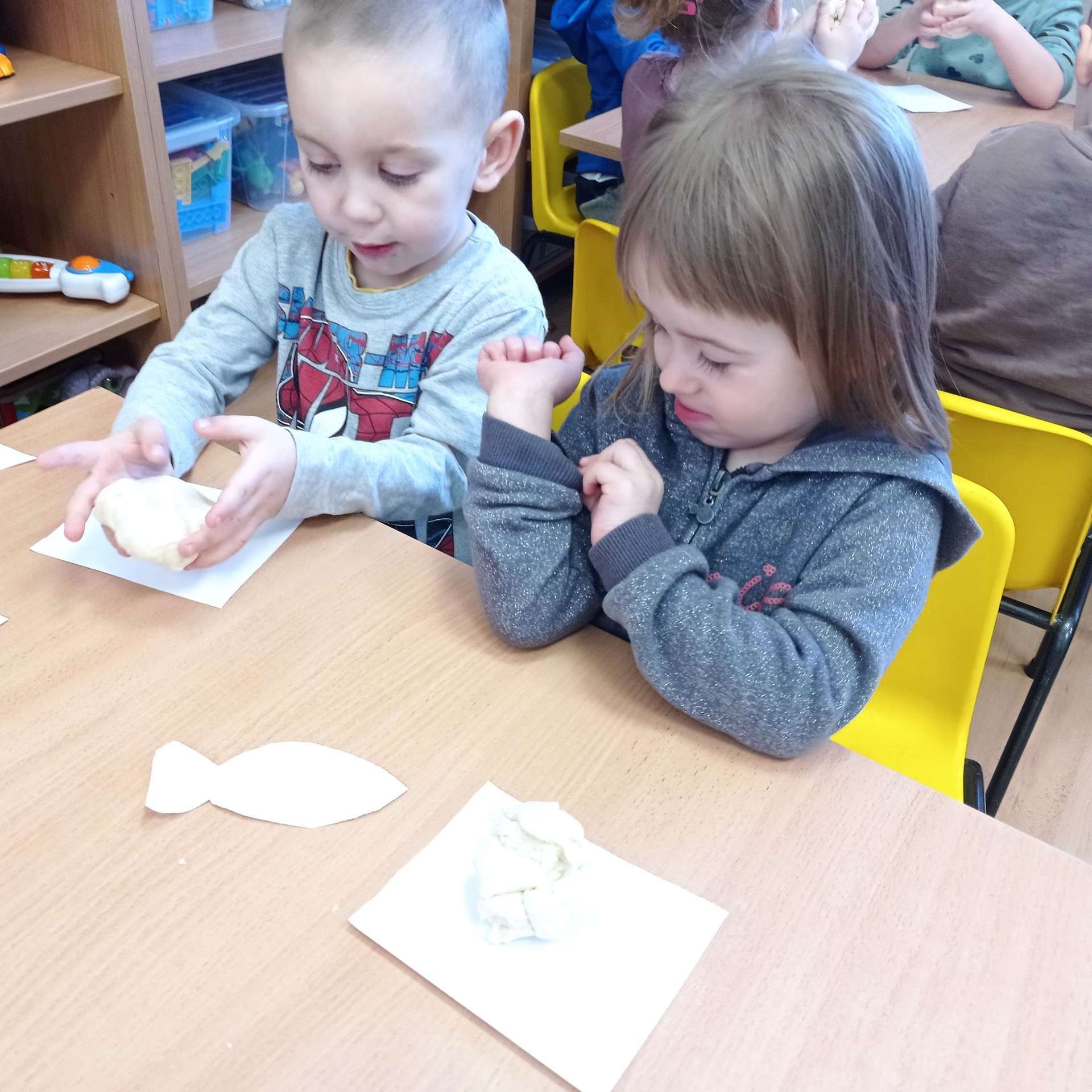 W tym tygodniu rozmawialiśmy o zwierzętach egzotycznych. Miło spędziliśmy czas bawiąc się przy piosenkach o zwierzętach. Ponadto wykonaliśmy żyrafę z papieru. Przy temacie o morskich głębinach dzieci uciekały przed rekinem, ćwiczyły tor oddechowy dmuchając na rybkę (ćwiczenia logopedyczne), wykonały rybkę z masy solnej oraz bawiły się przy pomocy chusty animacyjnej.