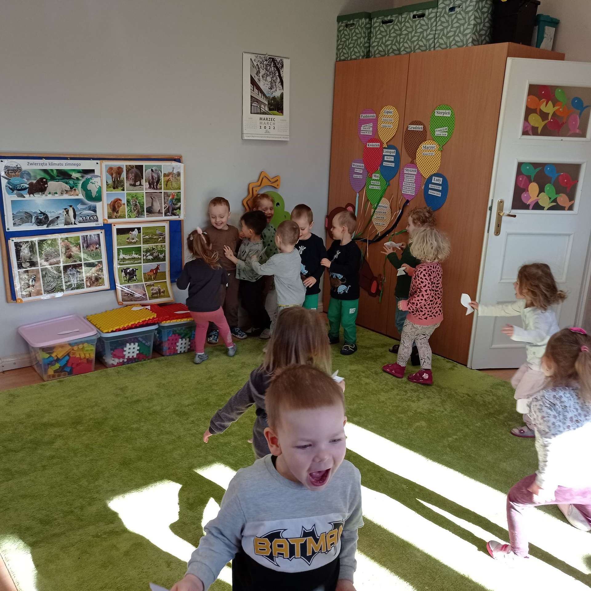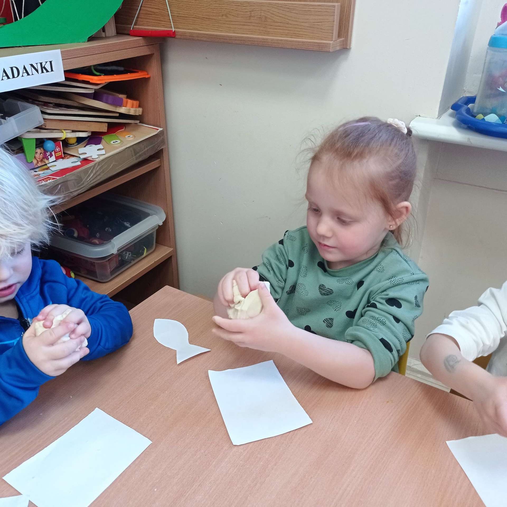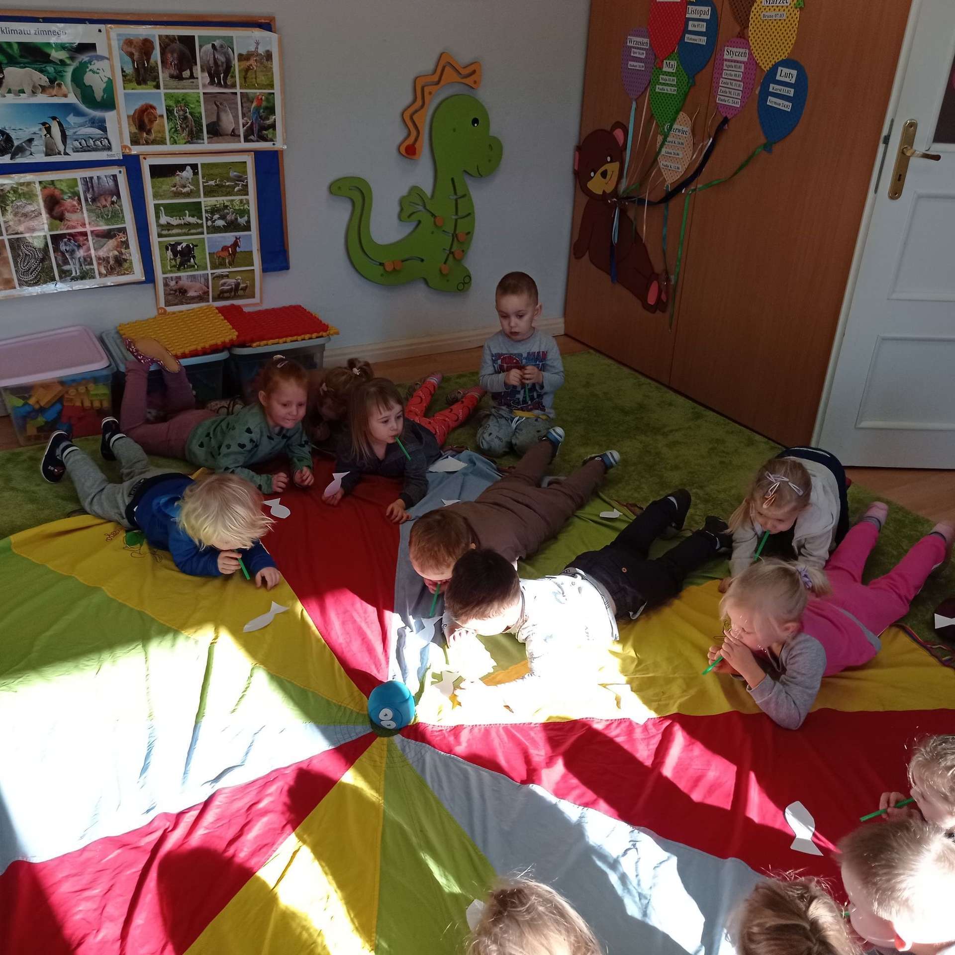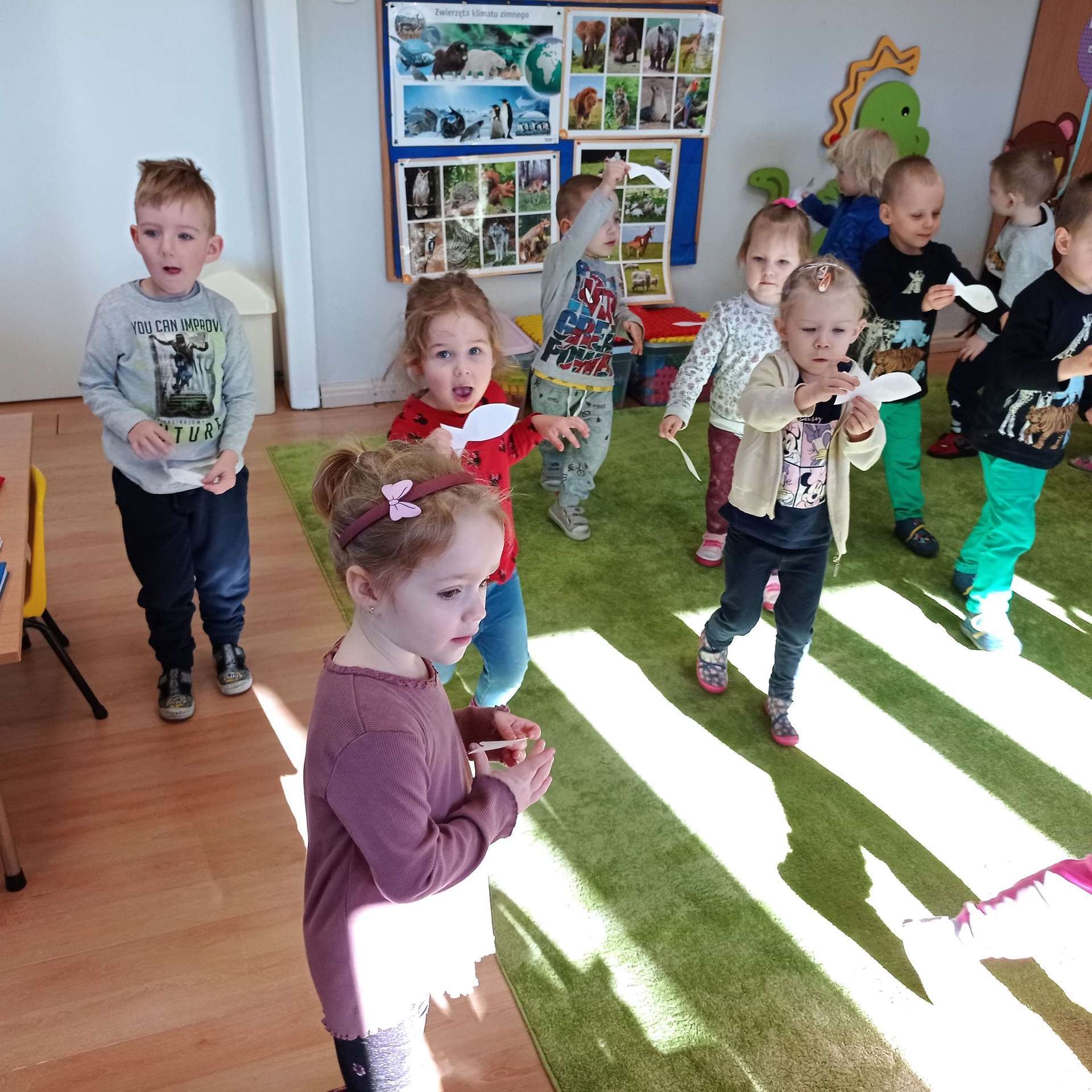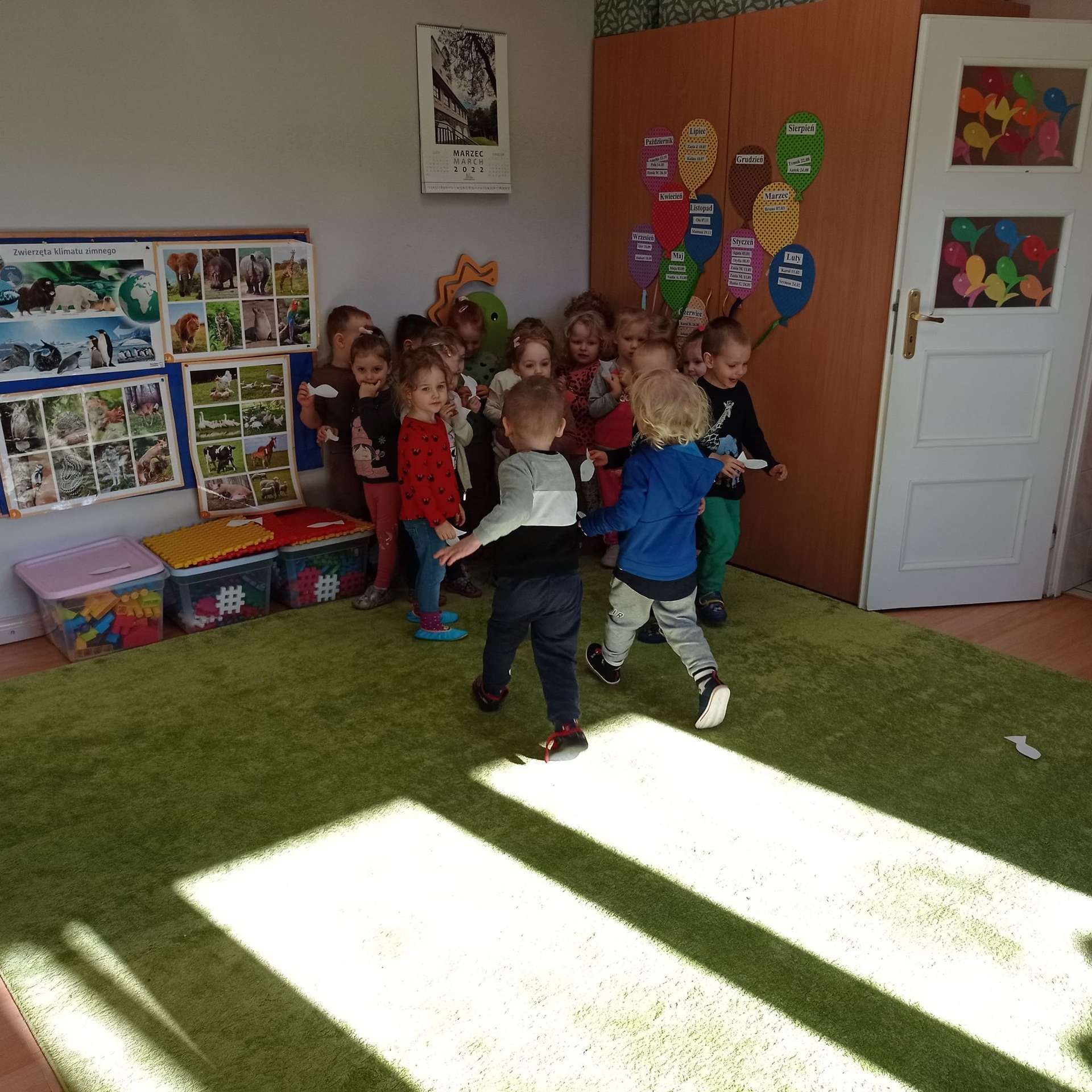 W tym tygodniu rozmawialiśmy o zwierzętach egzotycznych. Miło spędziliśmy czas bawiąc się przy piosenkach o zwierzętach. Ponadto wykonaliśmy żyrafę z papieru. Przy temacie o morskich głębinach dzieci uciekały przed rekinem, ćwiczyły tor oddechowy dmuchając na rybkę (ćwiczenia logopedyczne), wykonały rybkę z masy solnej oraz bawiły się przy pomocy chusty animacyjnej.