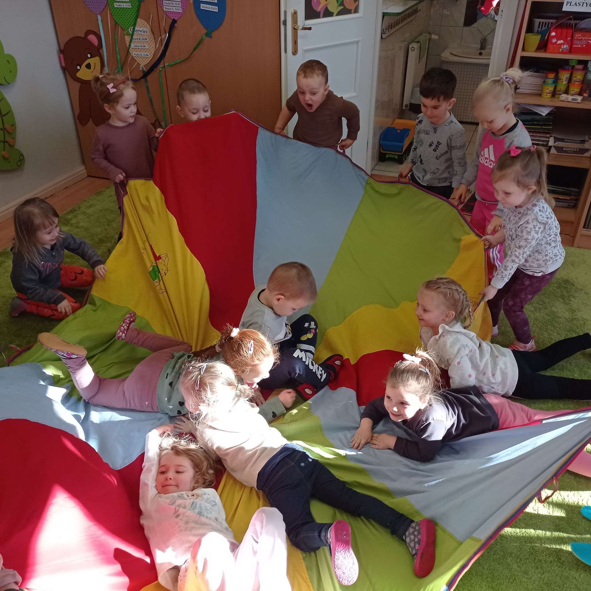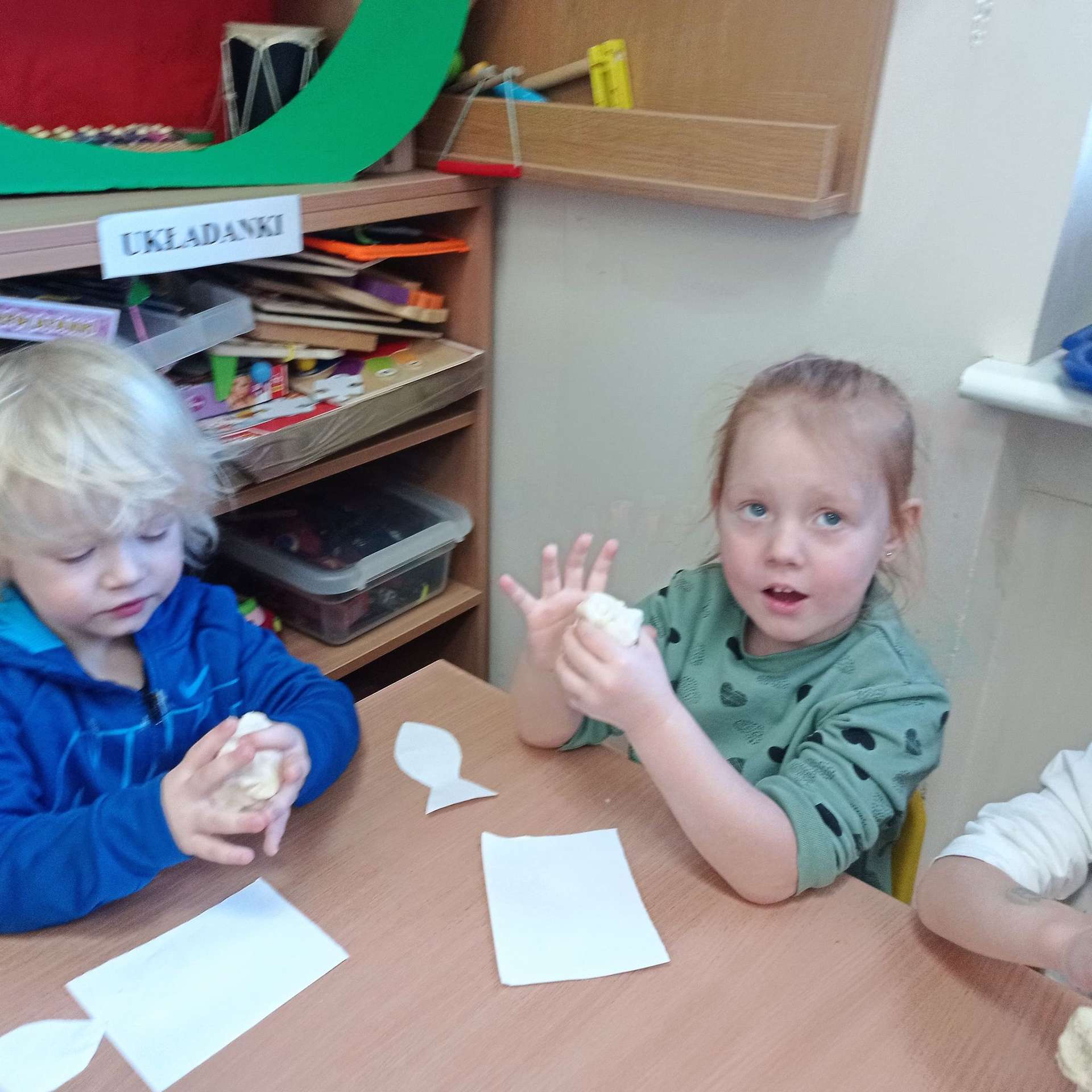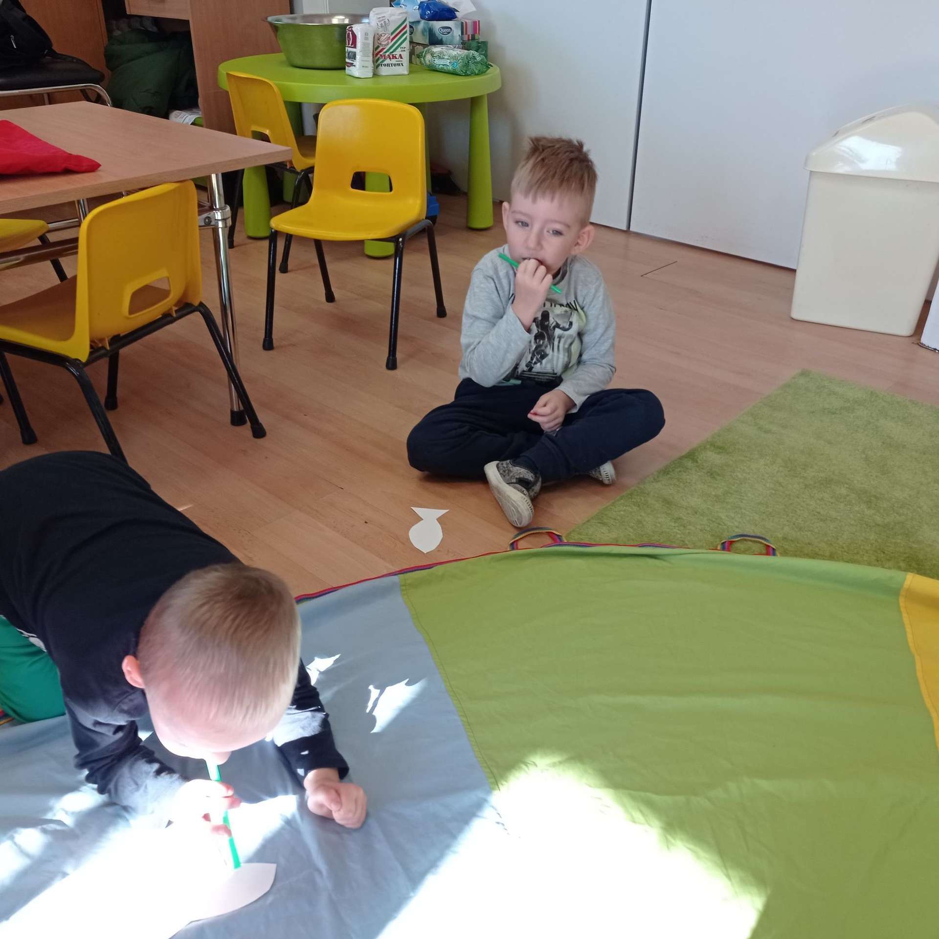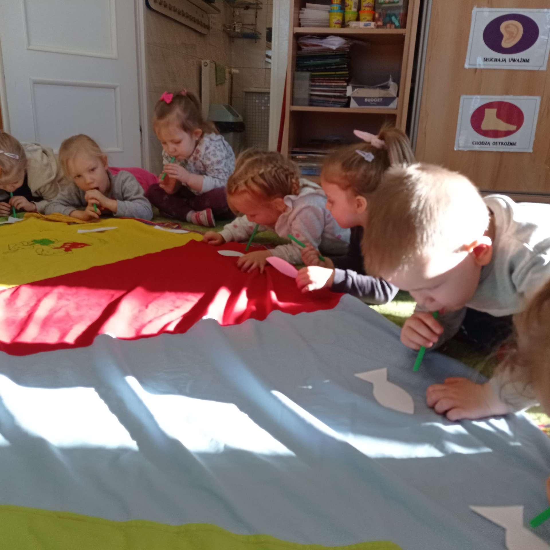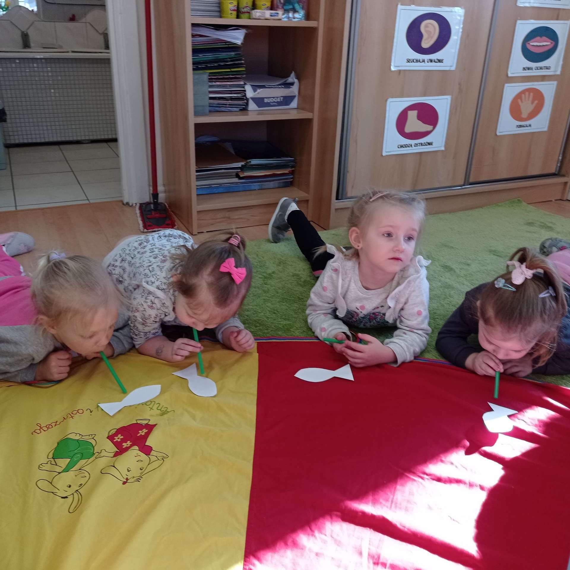 W tym tygodniu rozmawialiśmy o zwierzętach egzotycznych. Miło spędziliśmy czas bawiąc się przy piosenkach o zwierzętach. Ponadto wykonaliśmy żyrafę z papieru. Przy temacie o morskich głębinach dzieci uciekały przed rekinem, ćwiczyły tor oddechowy dmuchając na rybkę (ćwiczenia logopedyczne), wykonały rybkę z masy solnej oraz bawiły się przy pomocy chusty animacyjnej.