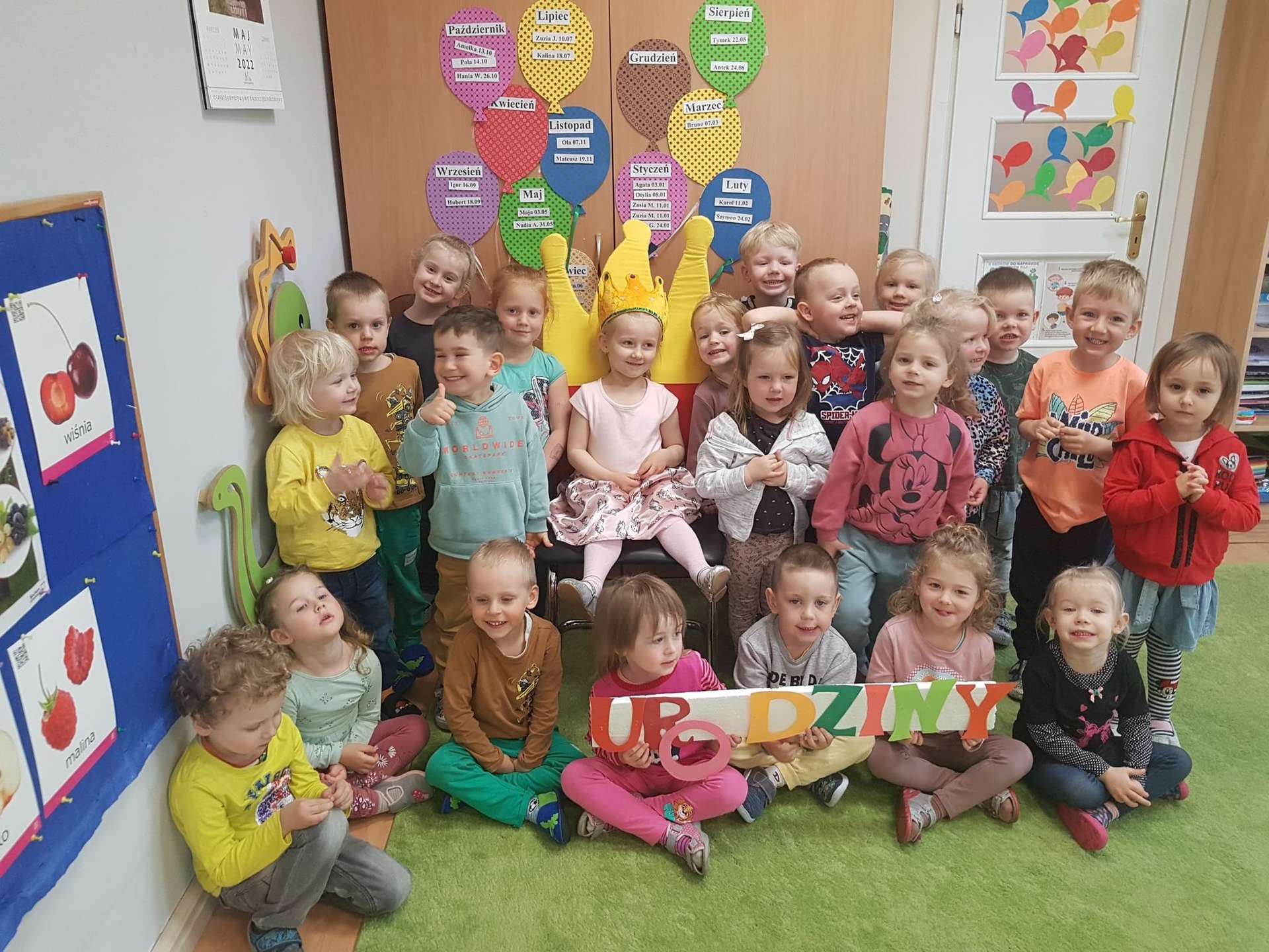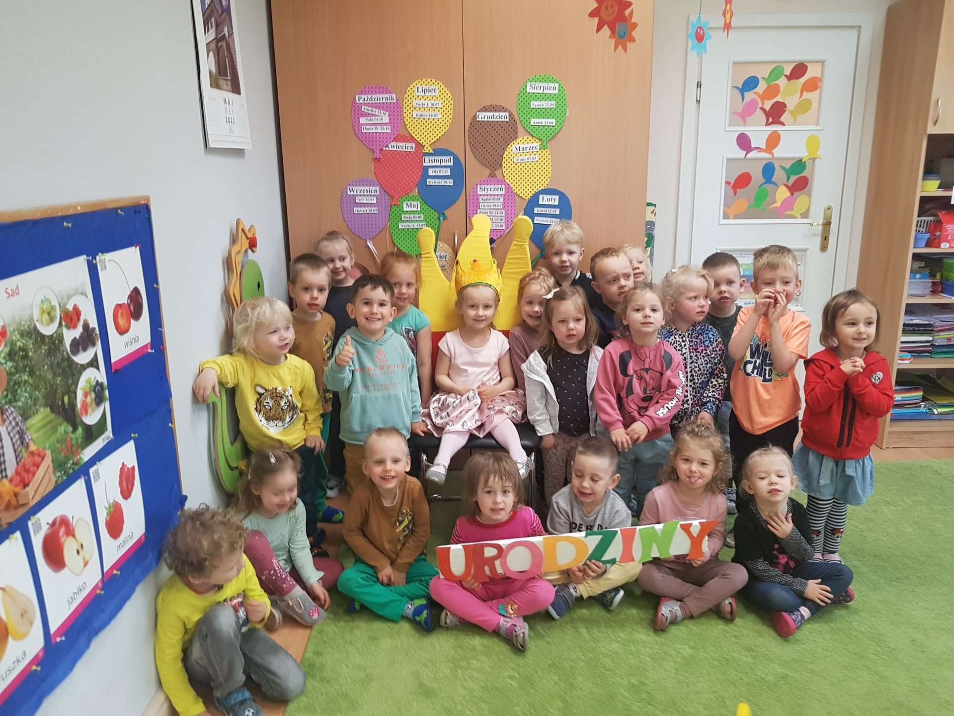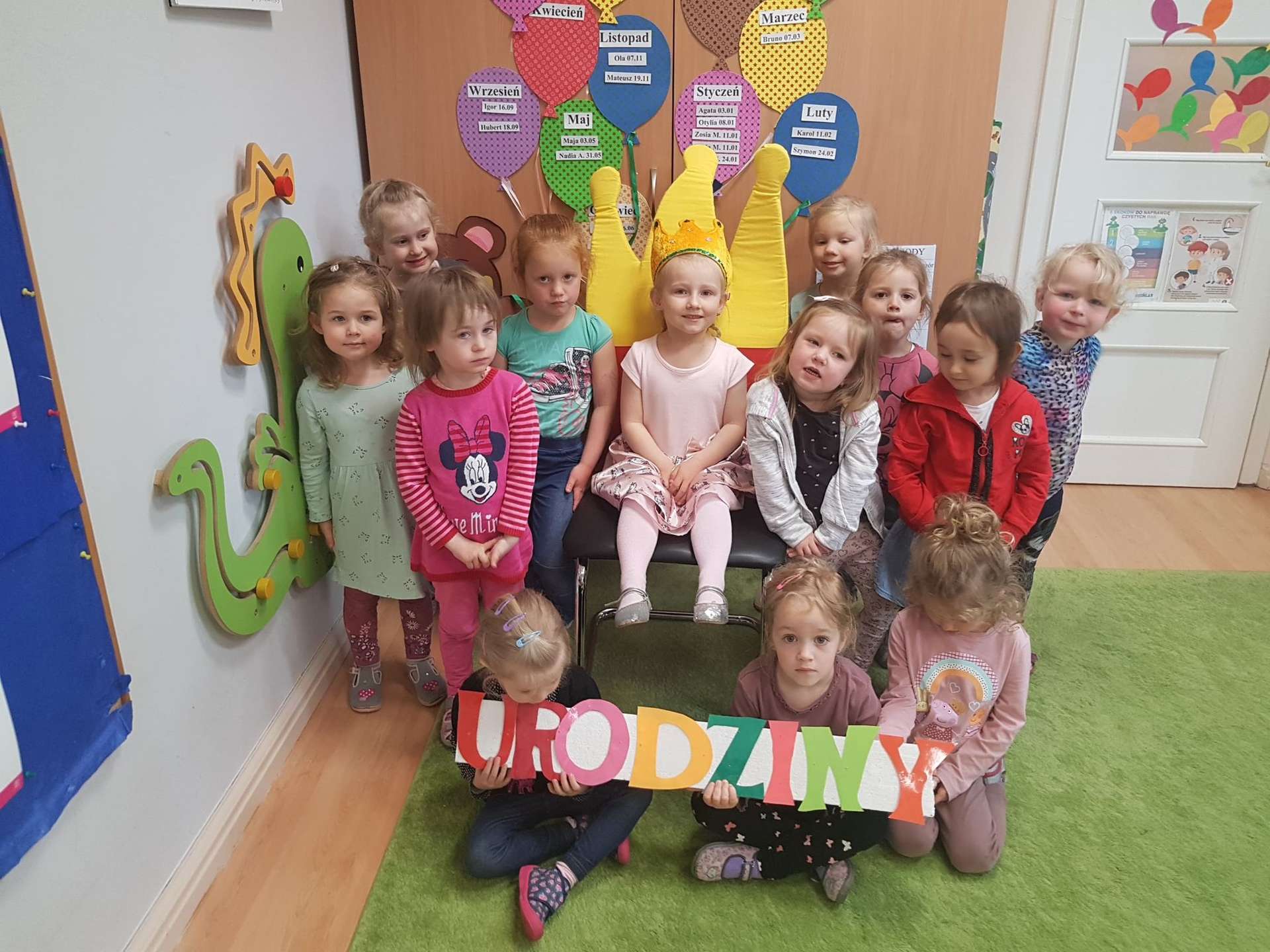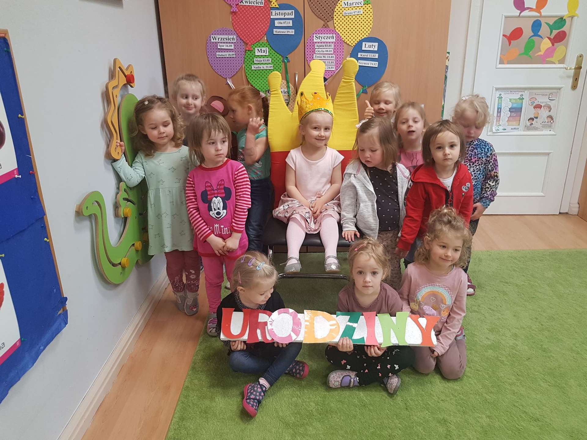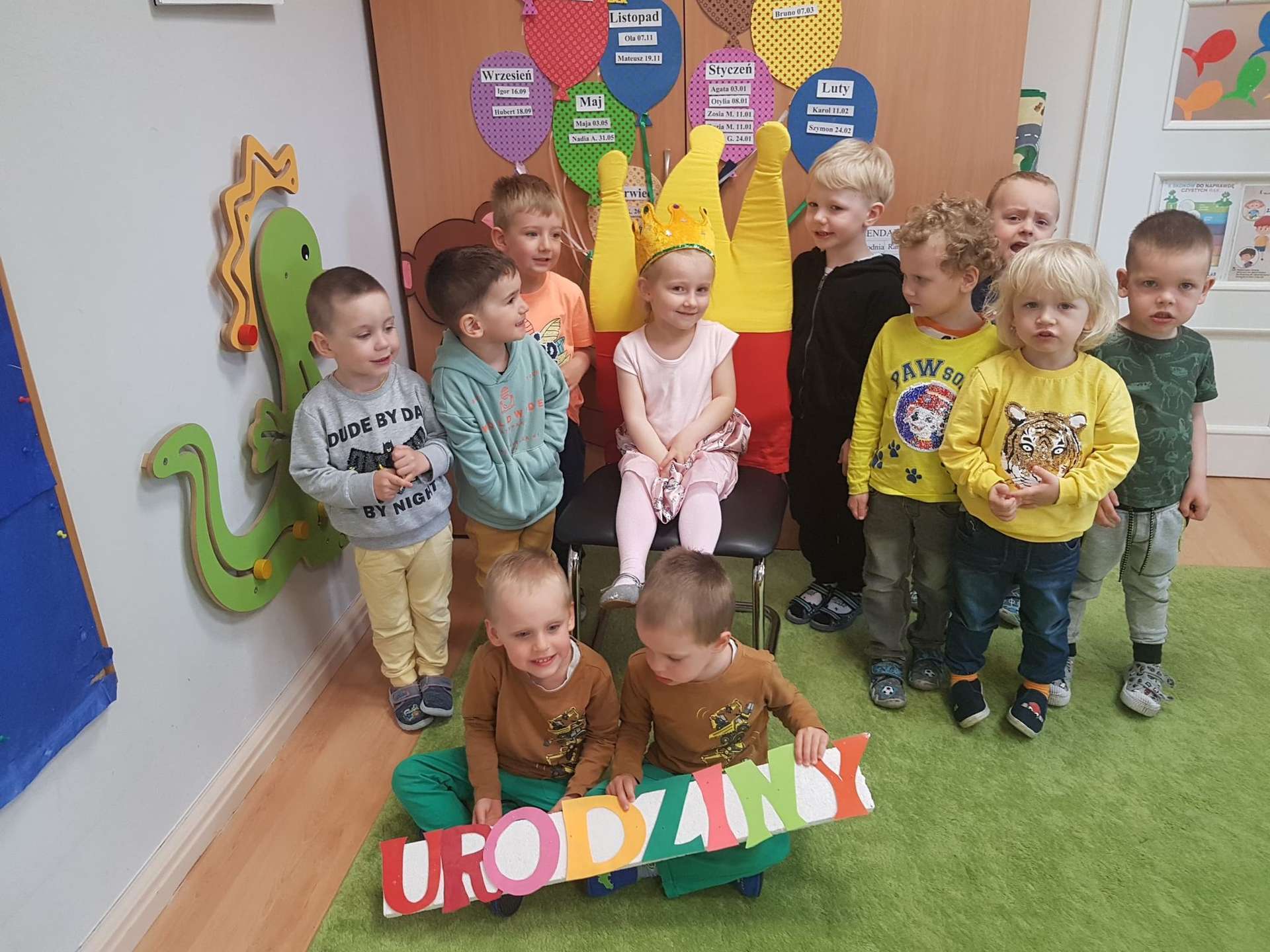 Idzie misio, idzie konik, małpka, piesek no i słonik. Wszyscy razem z balonami, z najlepszymi życzeniami. Bo to dzień radosny wielce -masz już jeden roczek więcej!