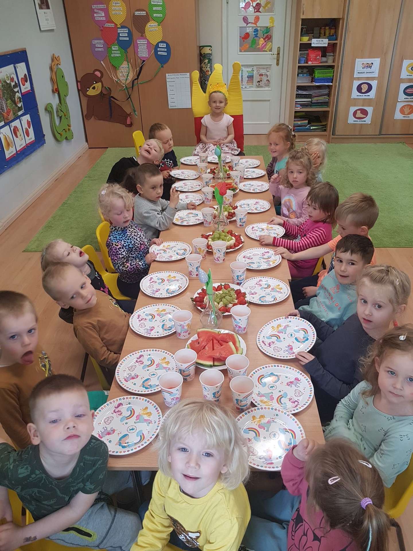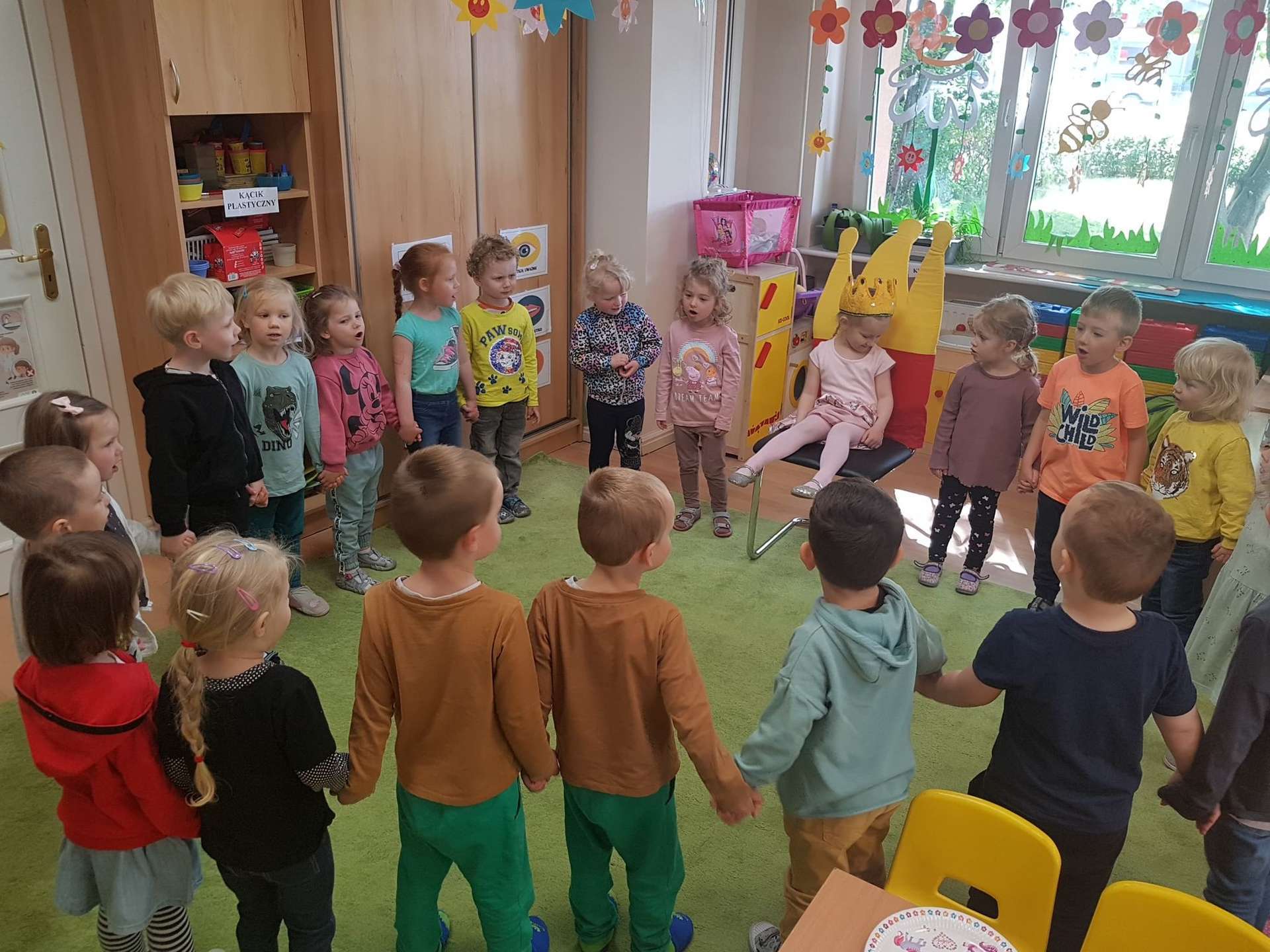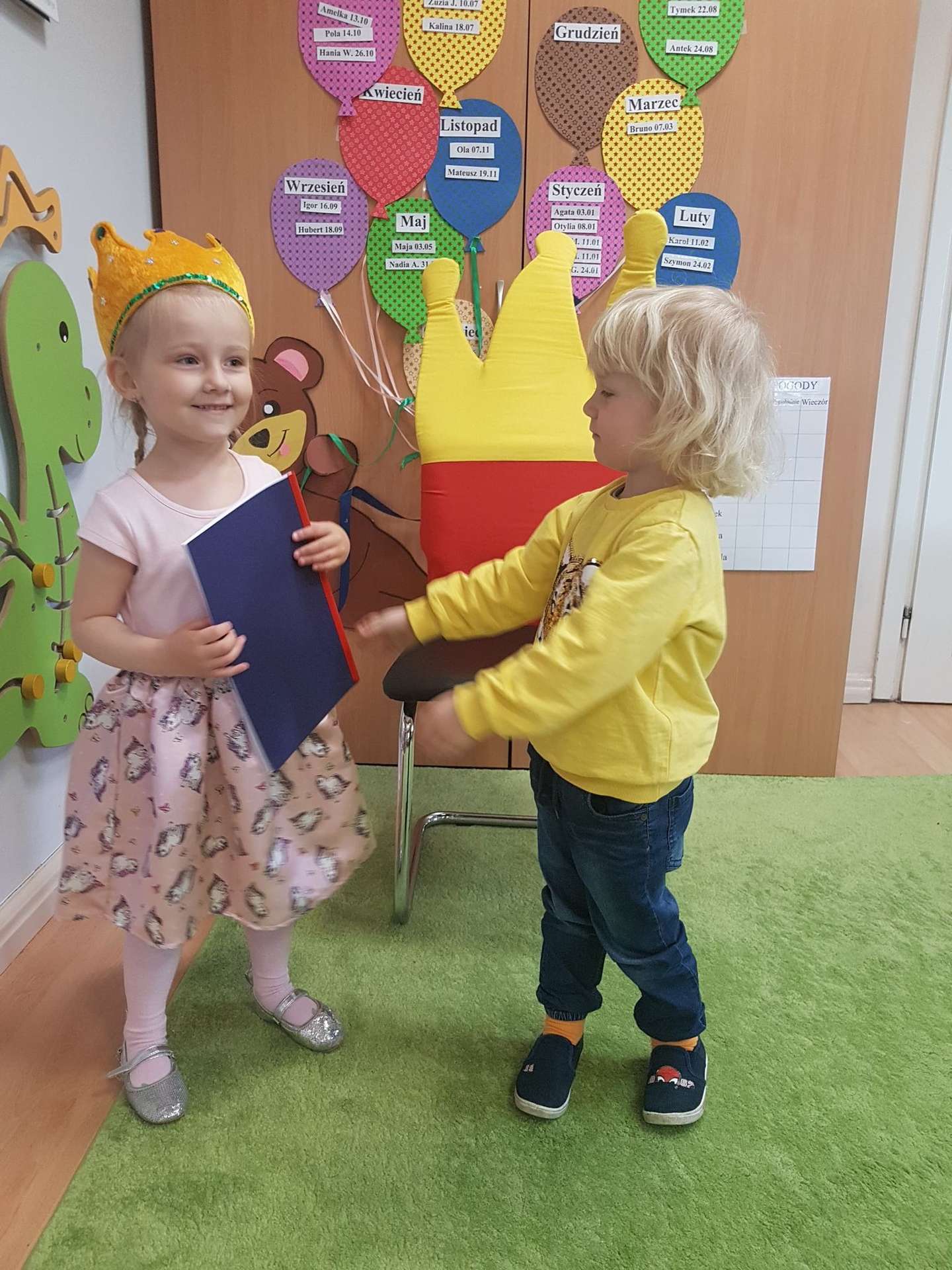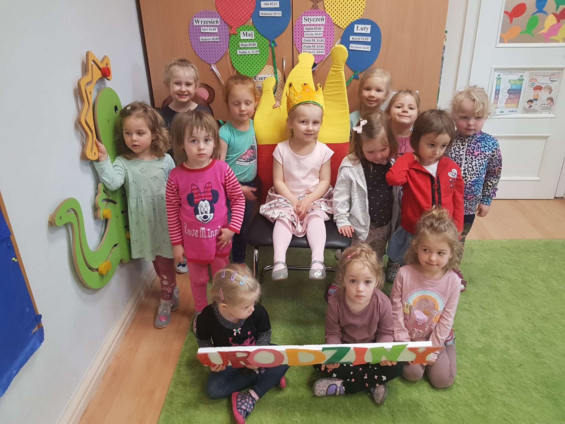 Idzie misio, idzie konik, małpka, piesek no i słonik. Wszyscy razem z balonami, z najlepszymi życzeniami. Bo to dzień radosny wielce -masz już jeden roczek więcej!