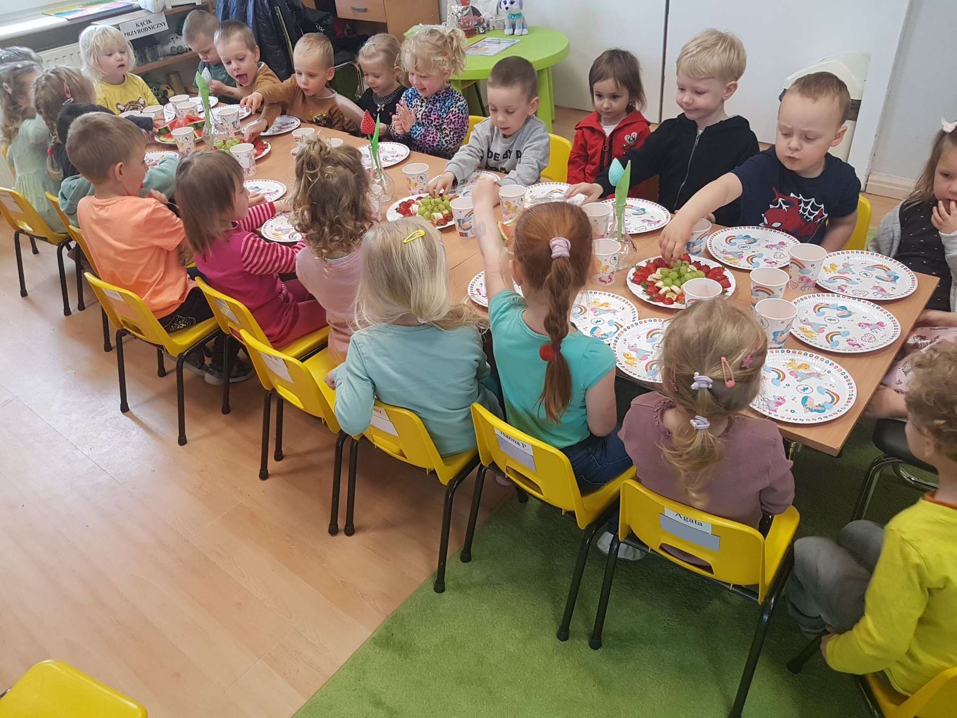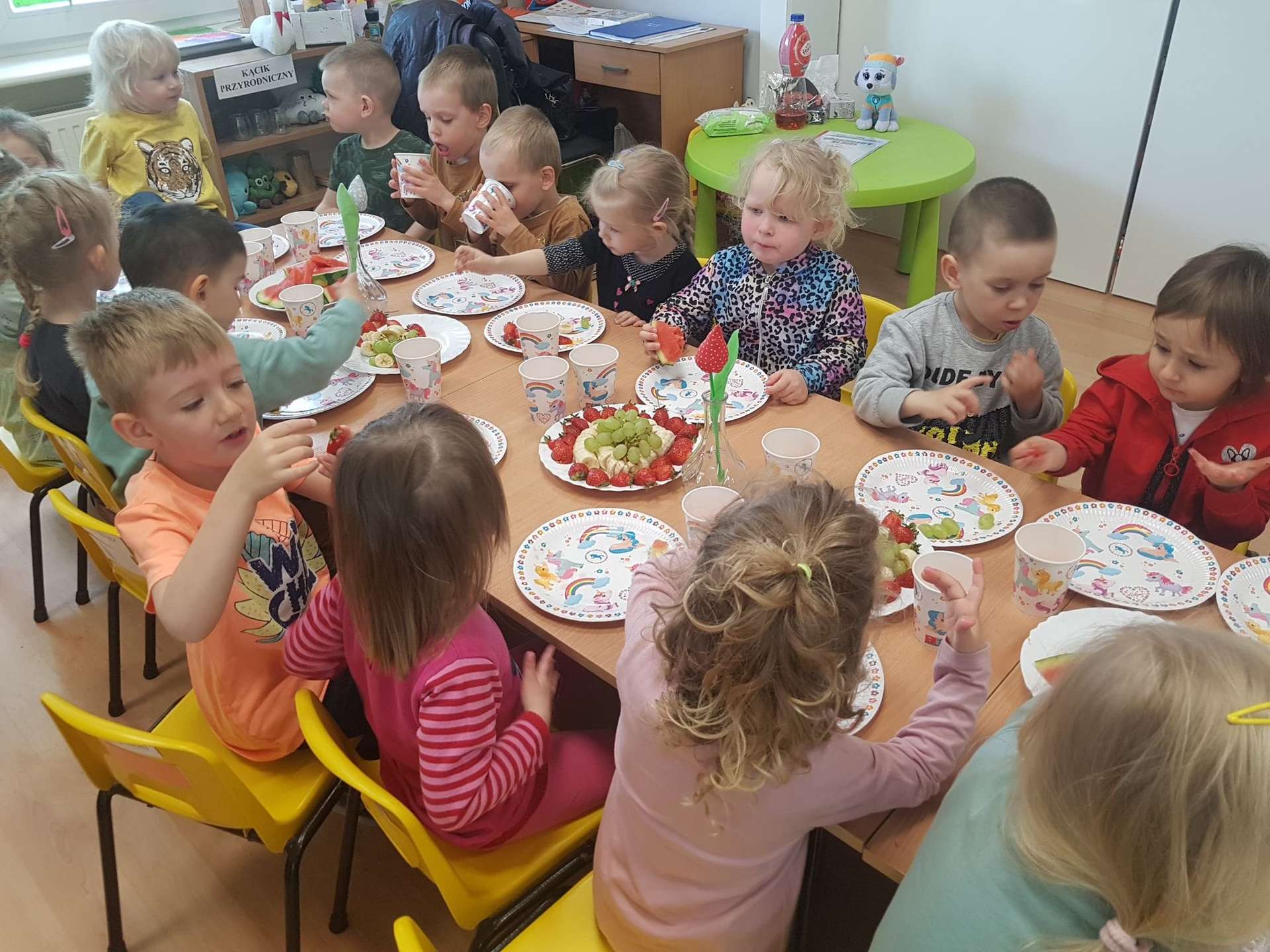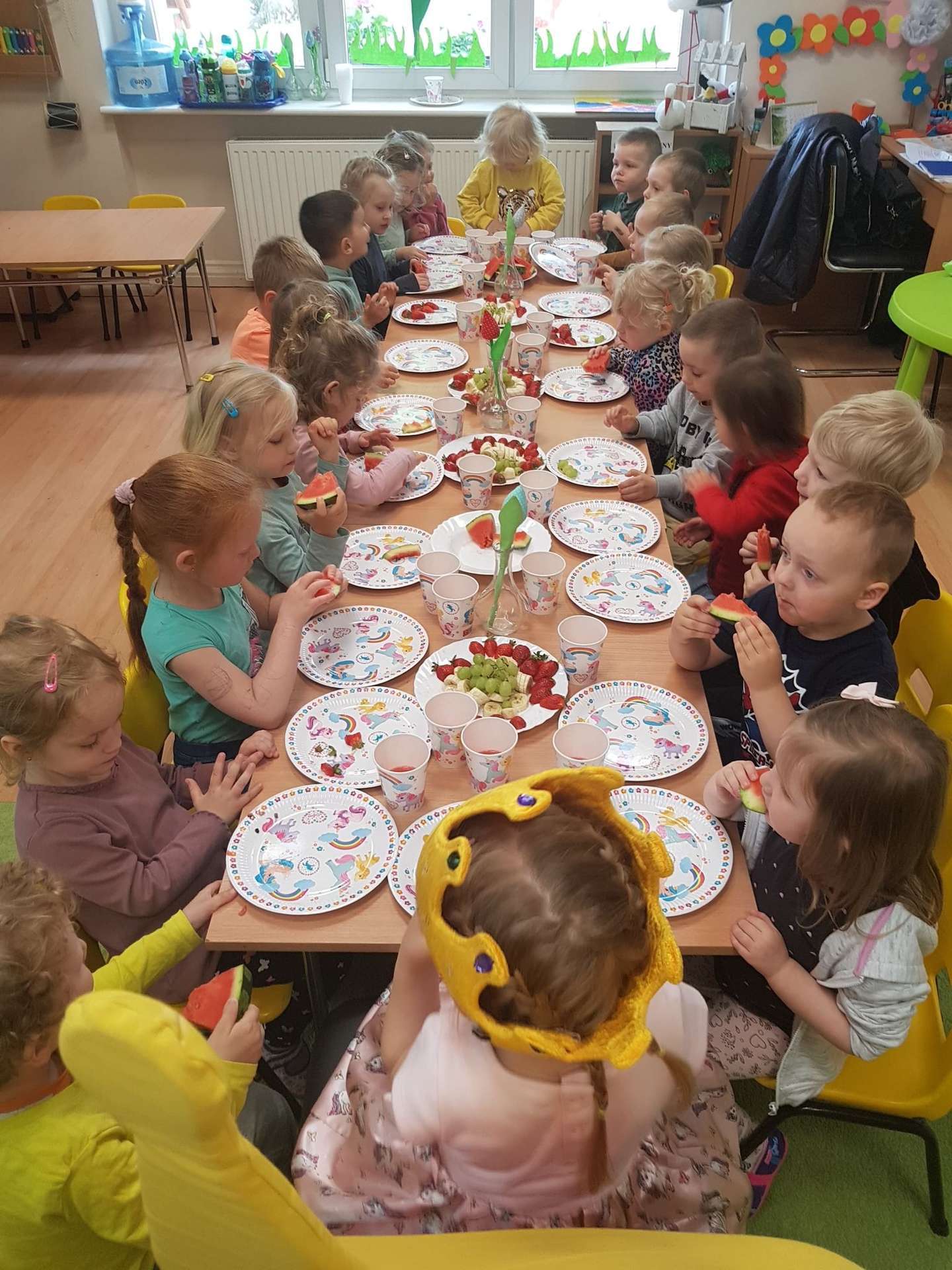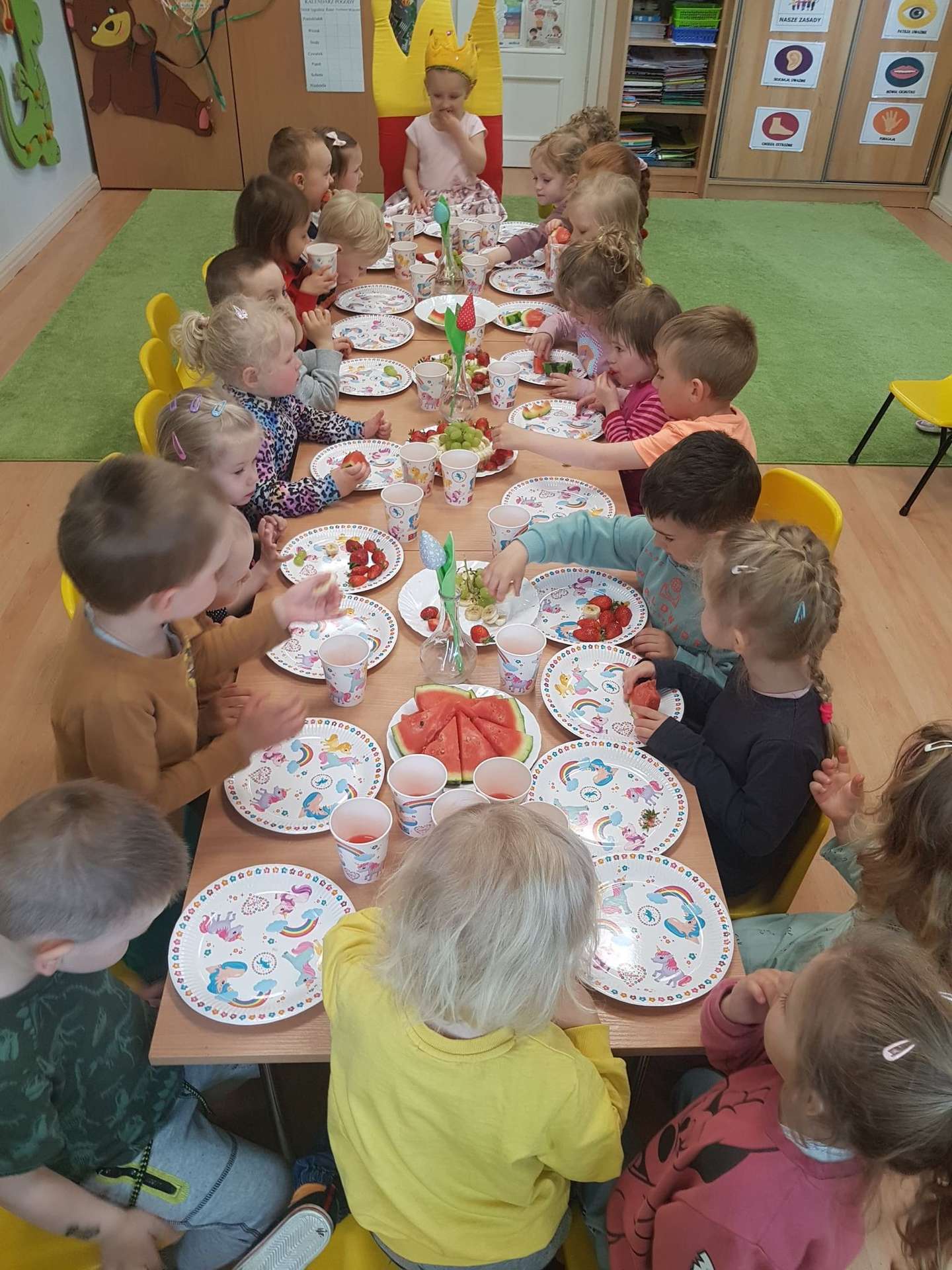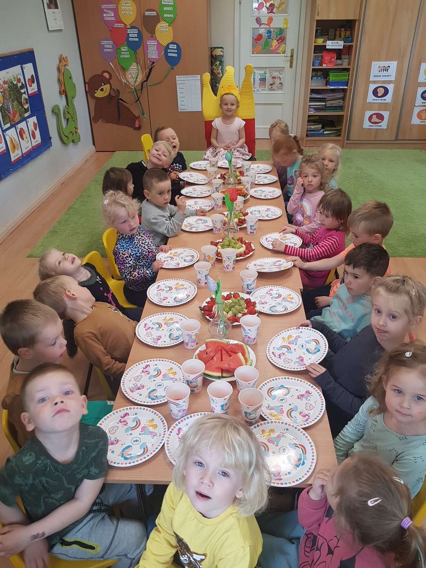 Idzie misio, idzie konik, małpka, piesek no i słonik. Wszyscy razem z balonami, z najlepszymi życzeniami. Bo to dzień radosny wielce -masz już jeden roczek więcej!