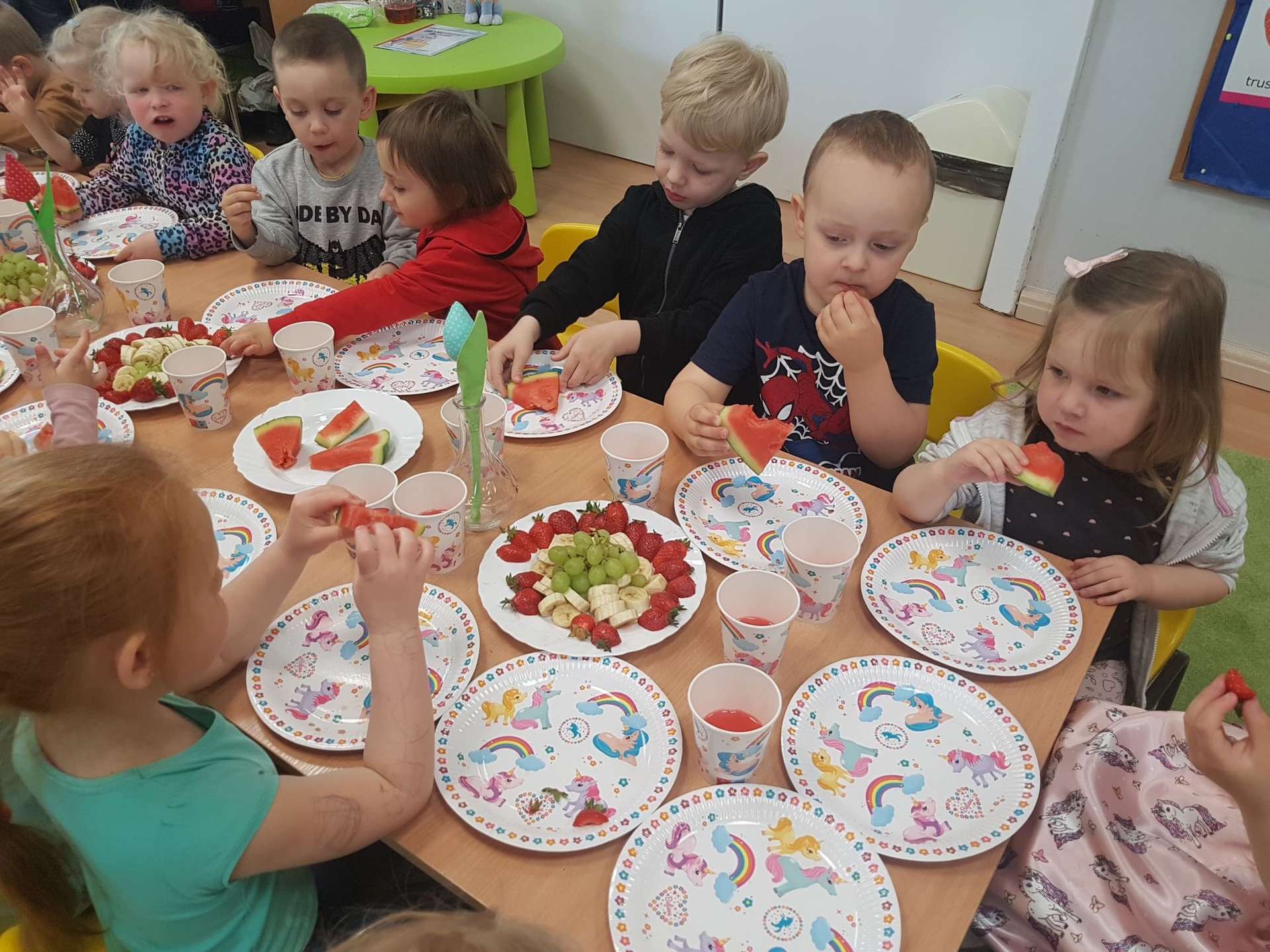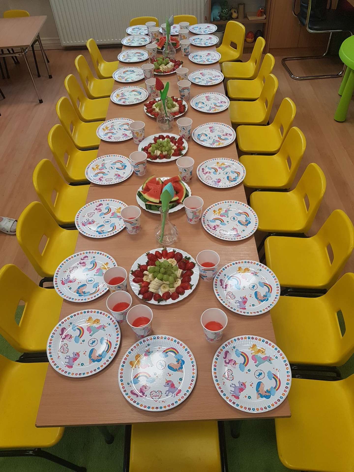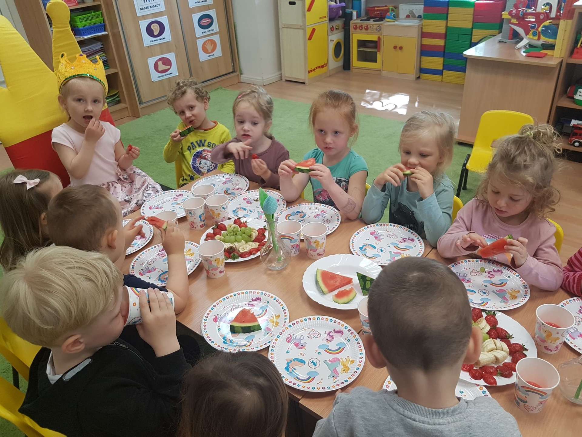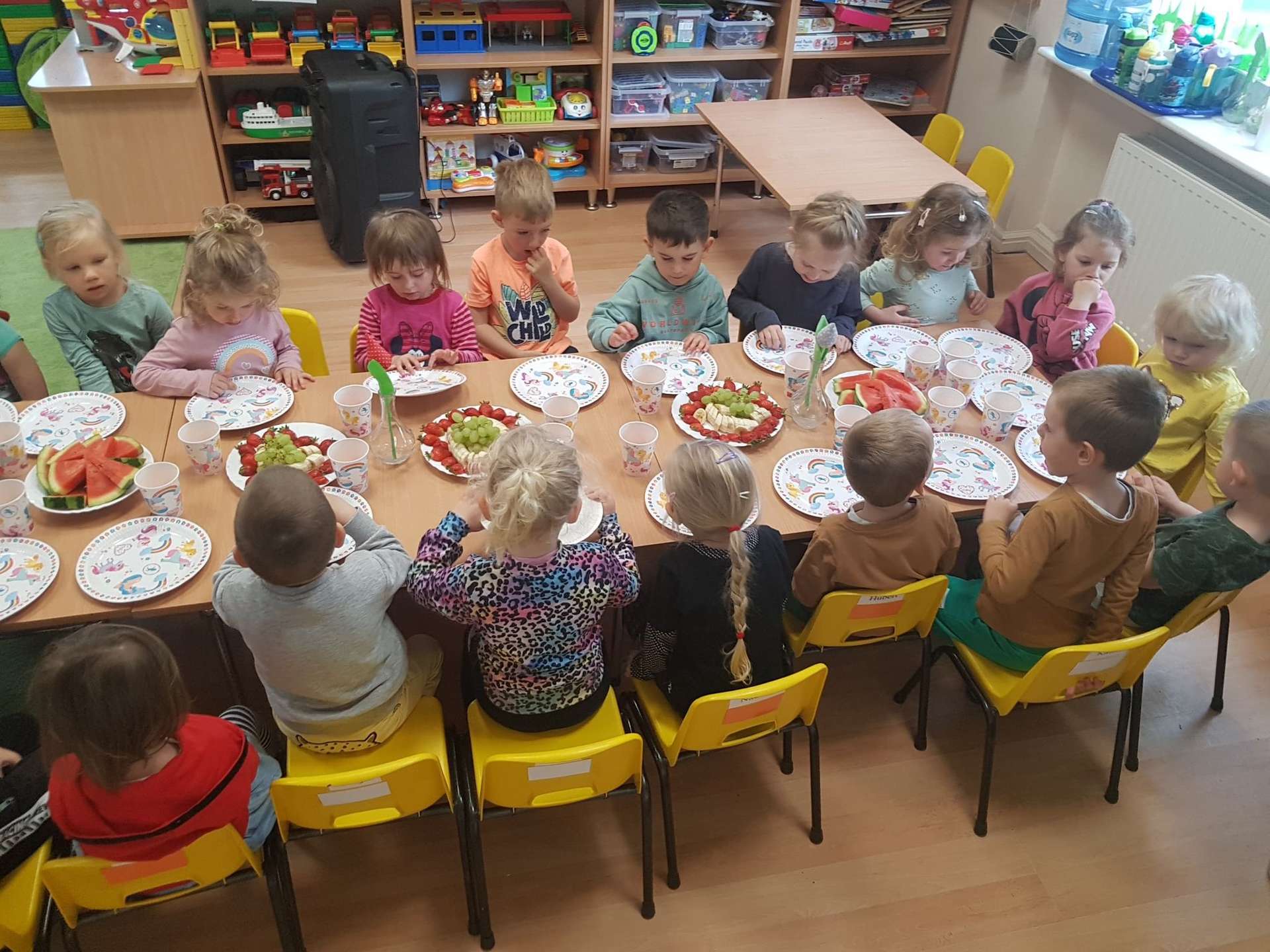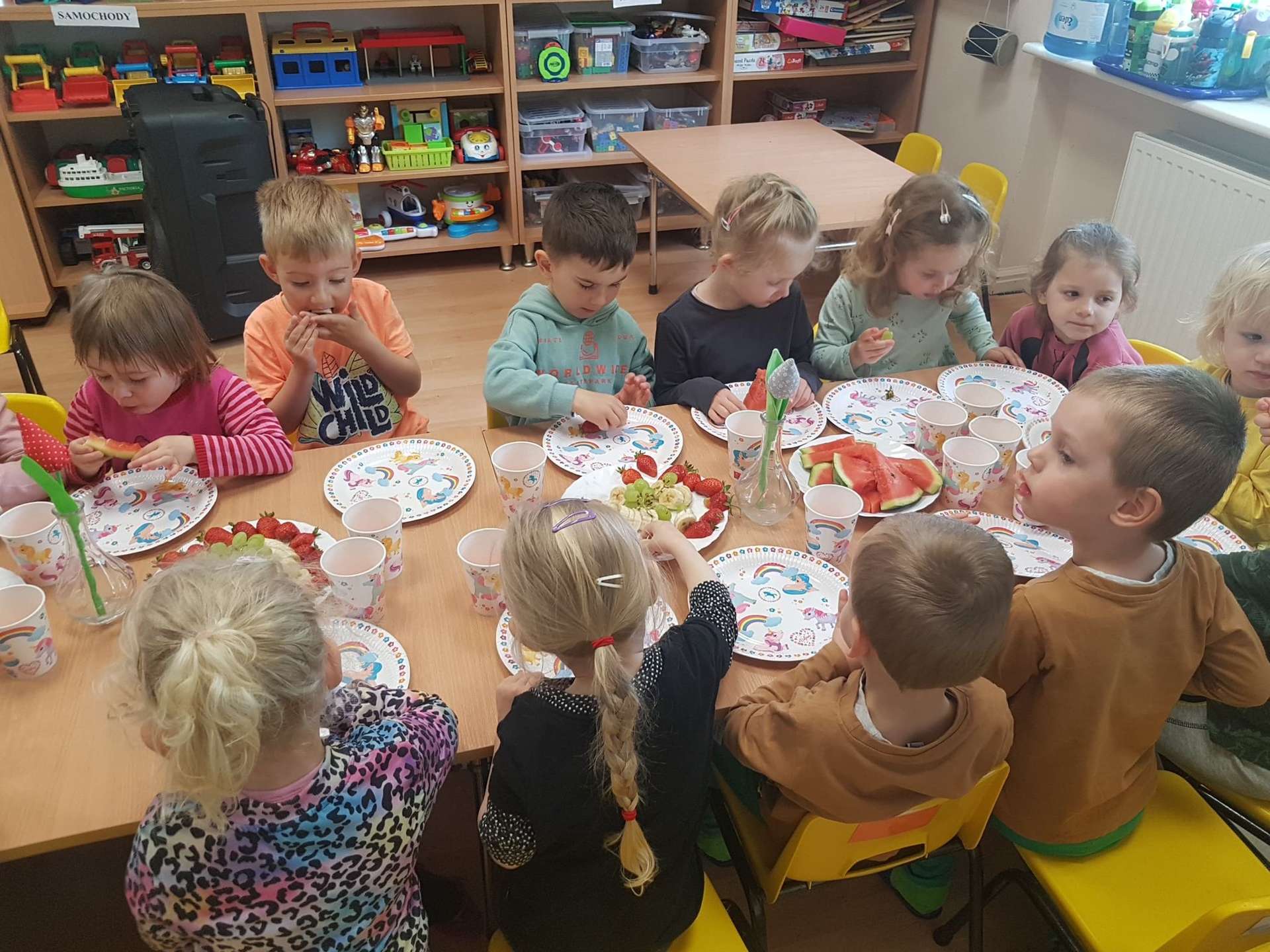 Idzie misio, idzie konik, małpka, piesek no i słonik. Wszyscy razem z balonami, z najlepszymi życzeniami. Bo to dzień radosny wielce -masz już jeden roczek więcej!