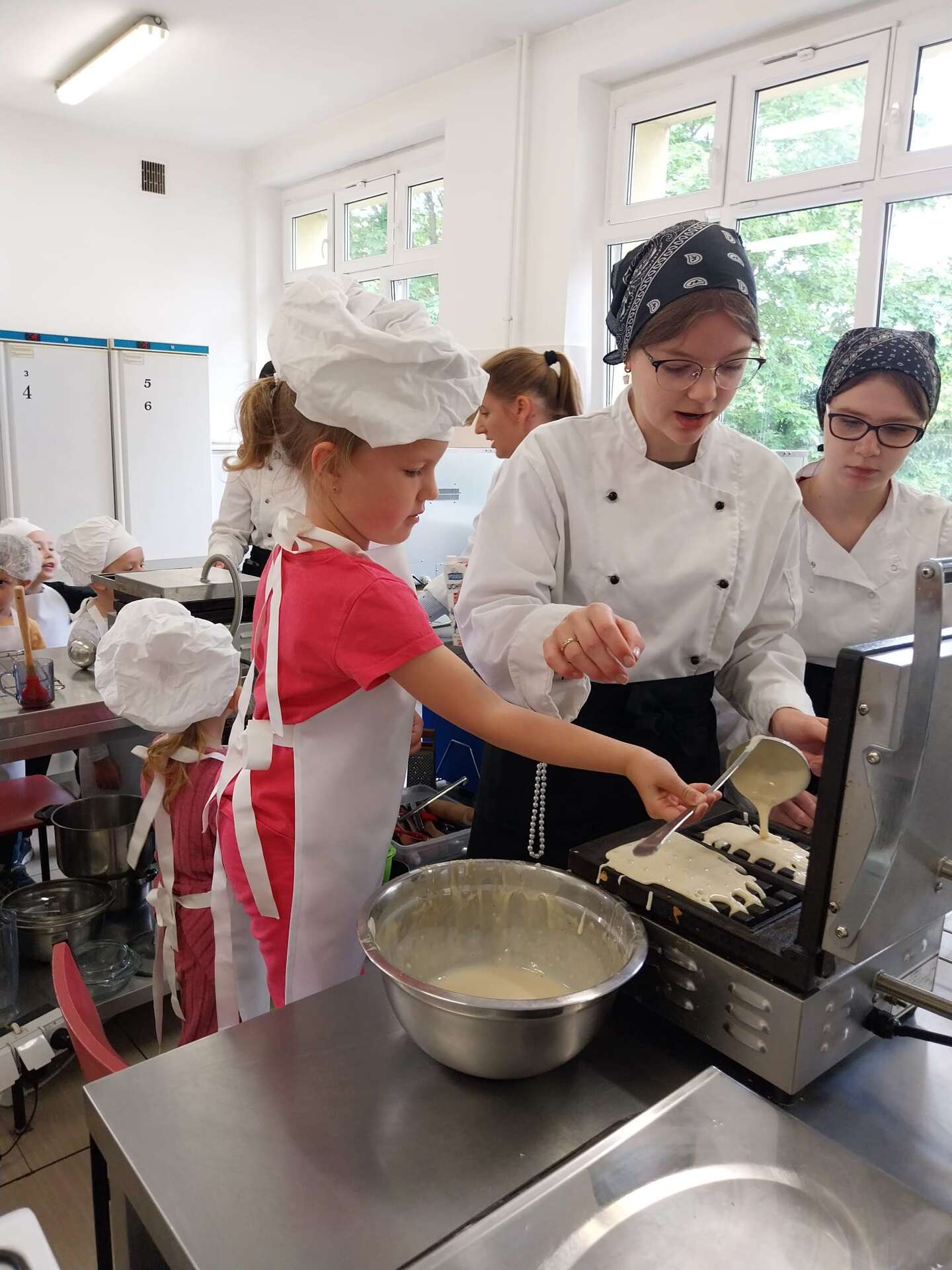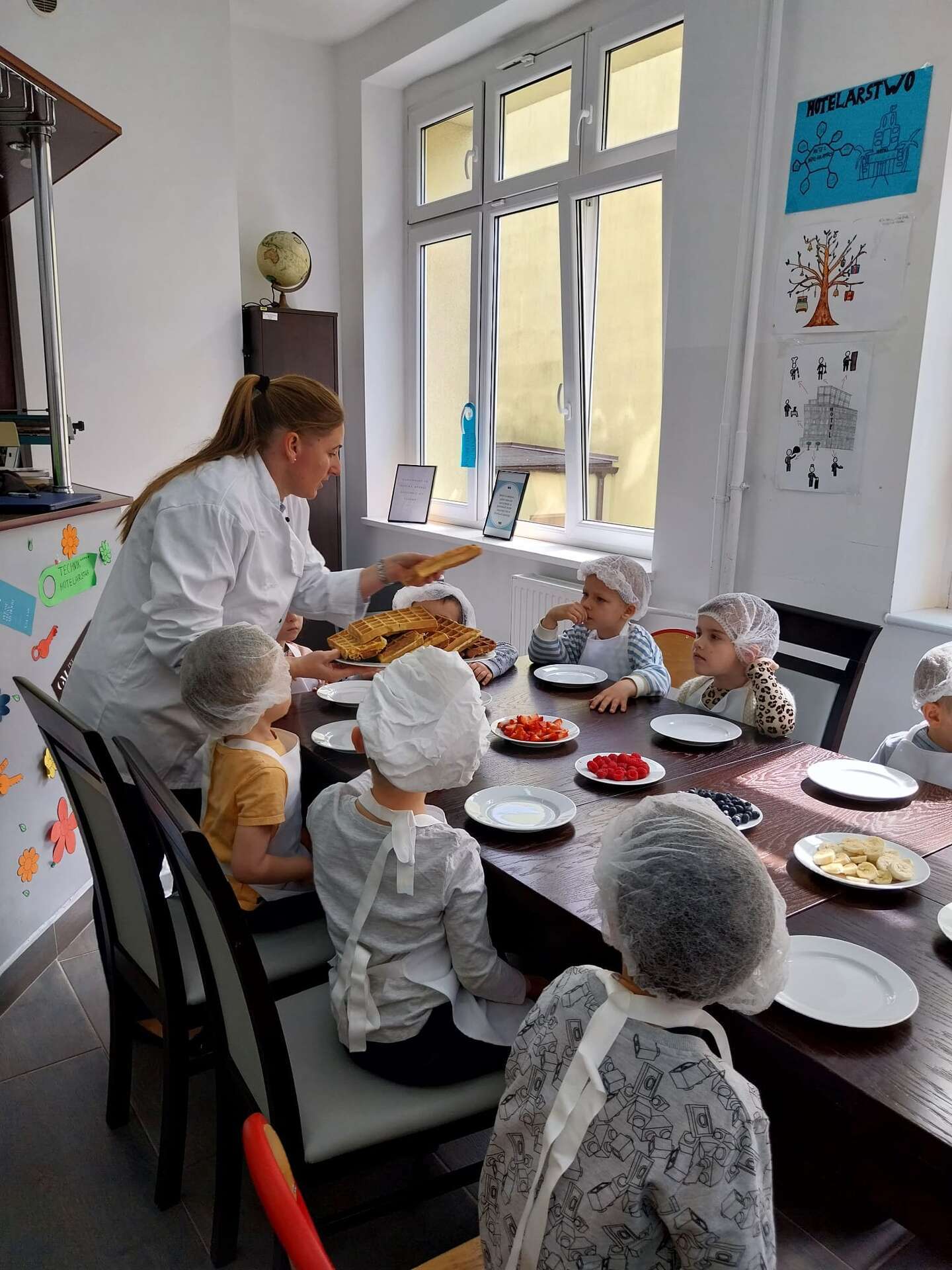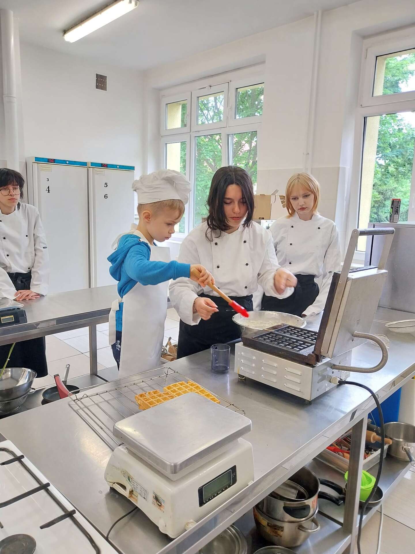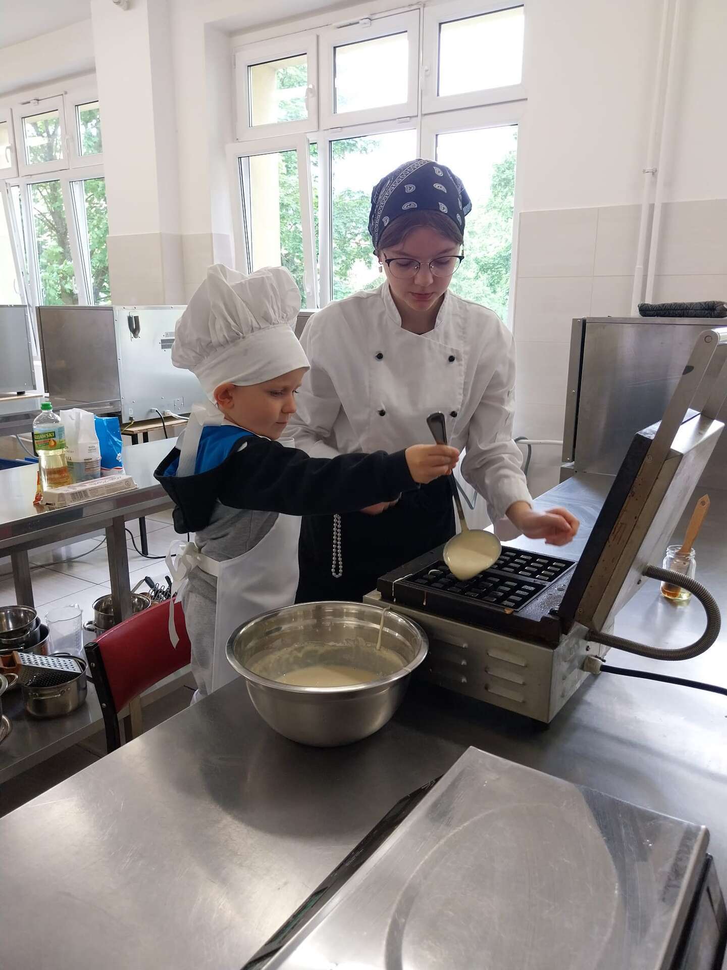 Dzisiaj odwiedziliśmy Zespół Szkół Gospodarki Żywnościowej i Agrobiznesu. Podczas zajęć z przyszłymi technologami żywienia, dzieci zdobywały wiedzę na temat żywienia i żywności a także jak bezpiecznie obsługiwać urządzenia do sporządzania potraw. Na zakończenie dzieci przygotowały gofry. Było pysznie i miło.